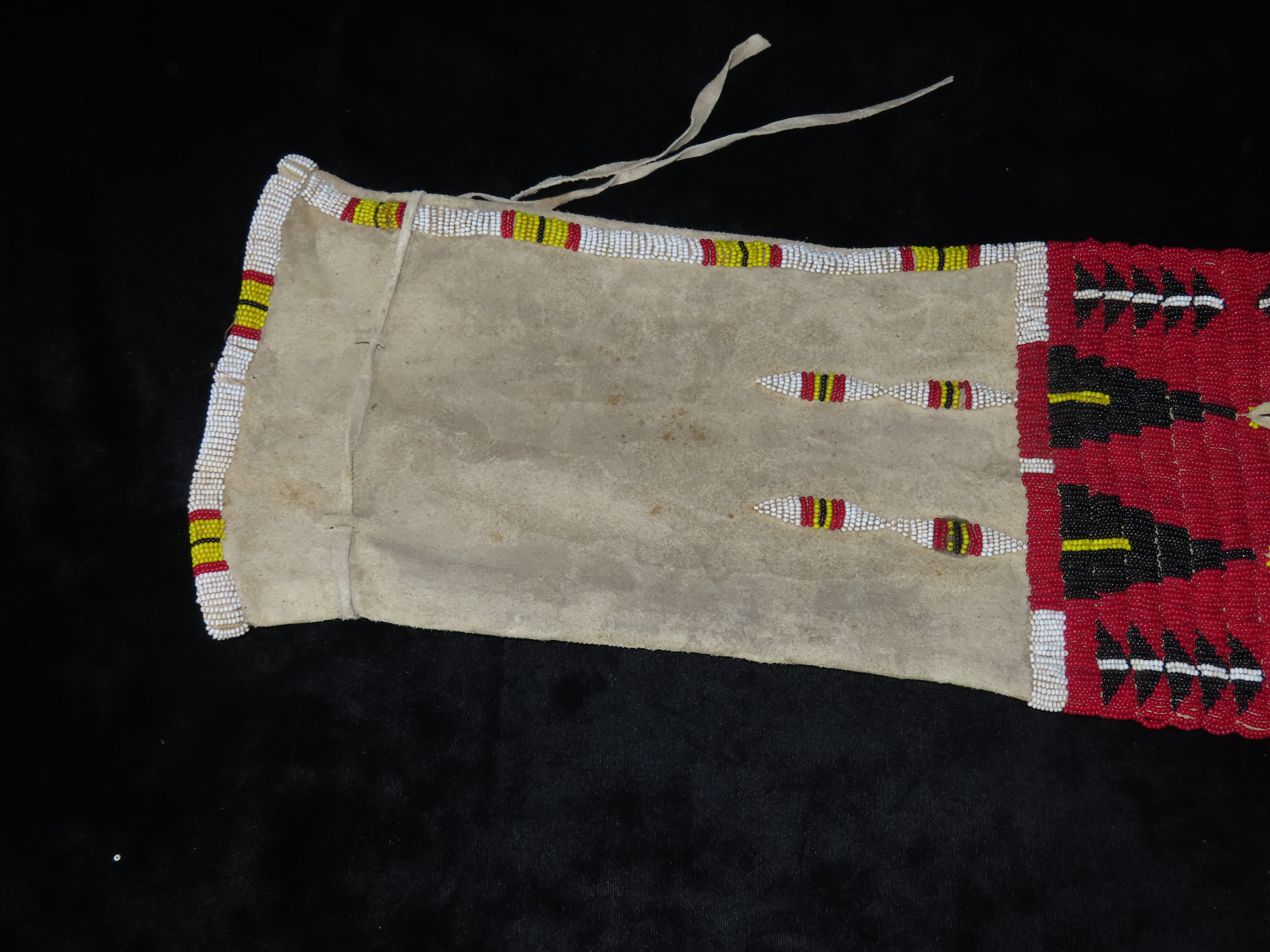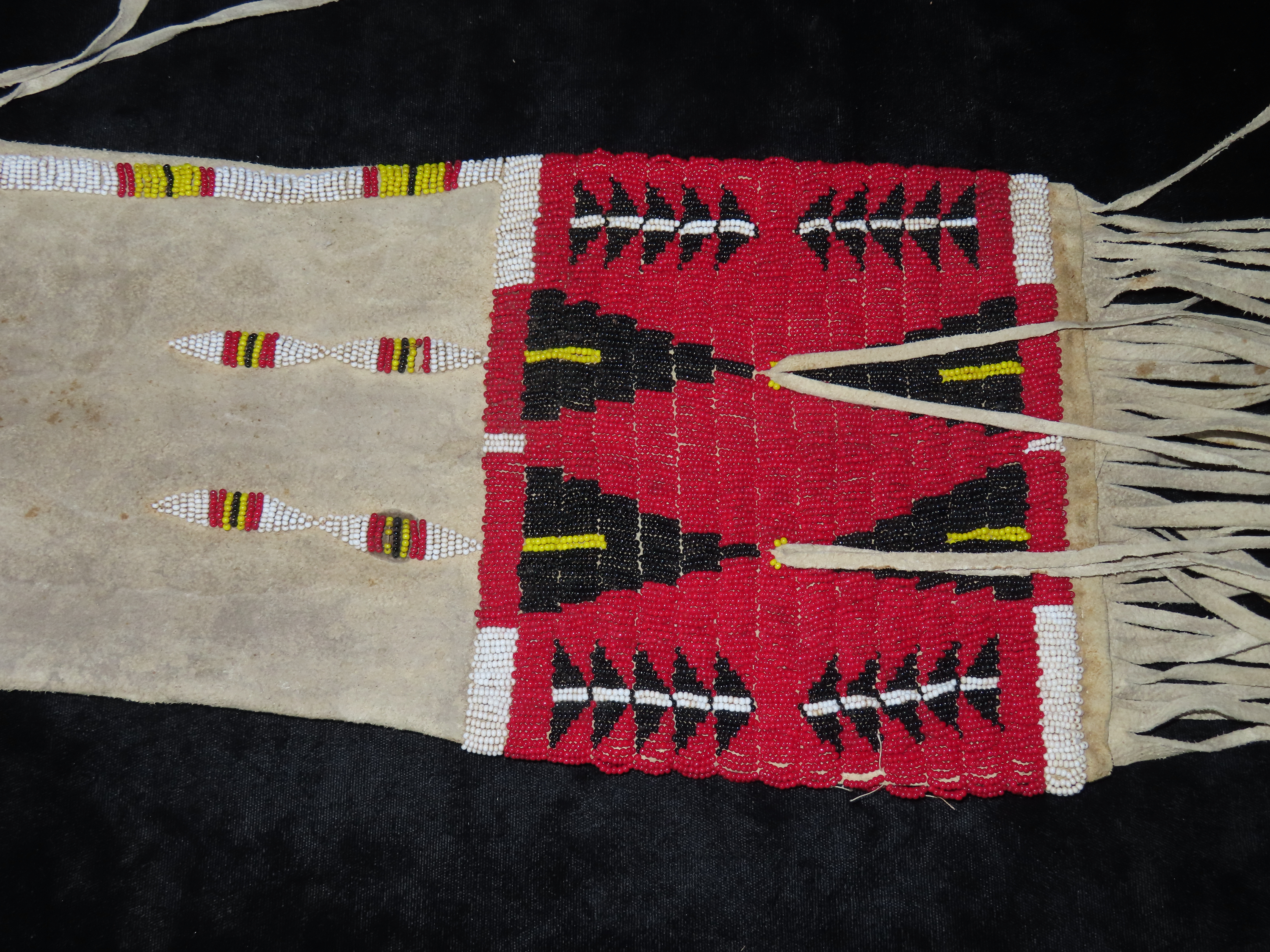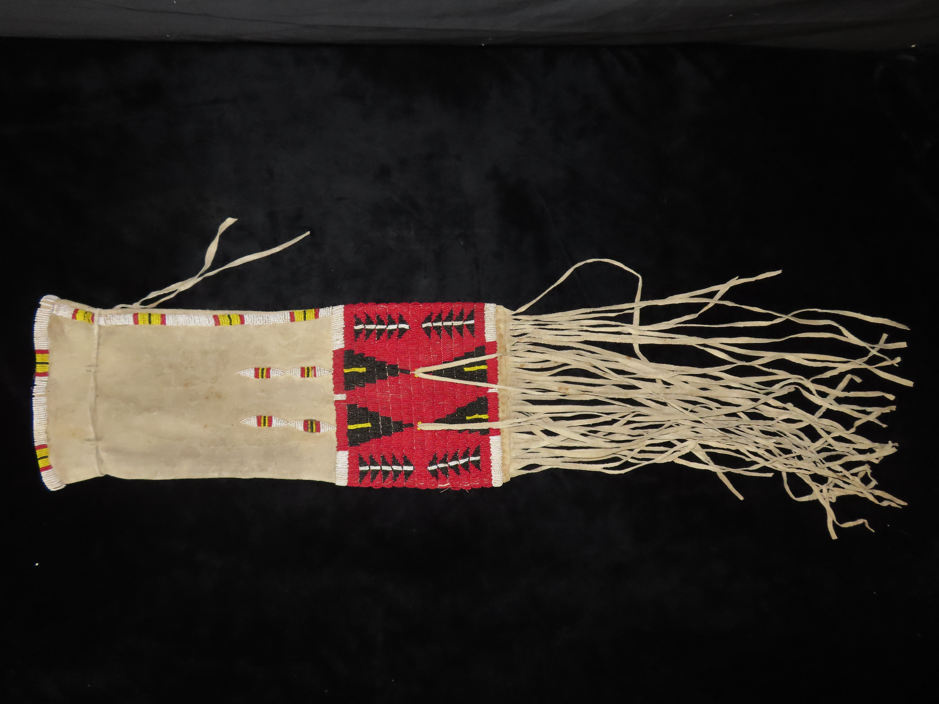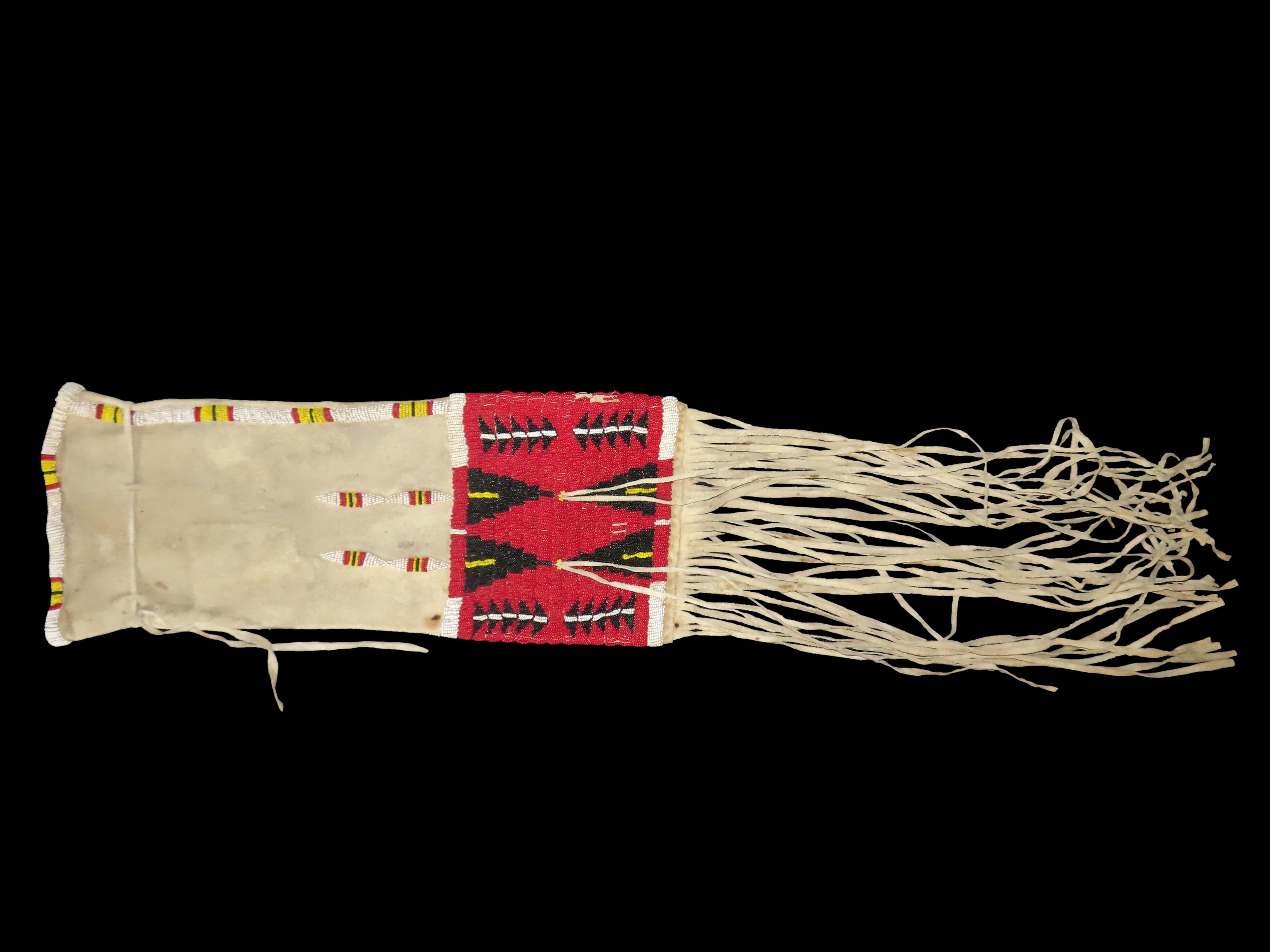 16″ Native American Fringed, Hand Beaded Hide Pipe Bag