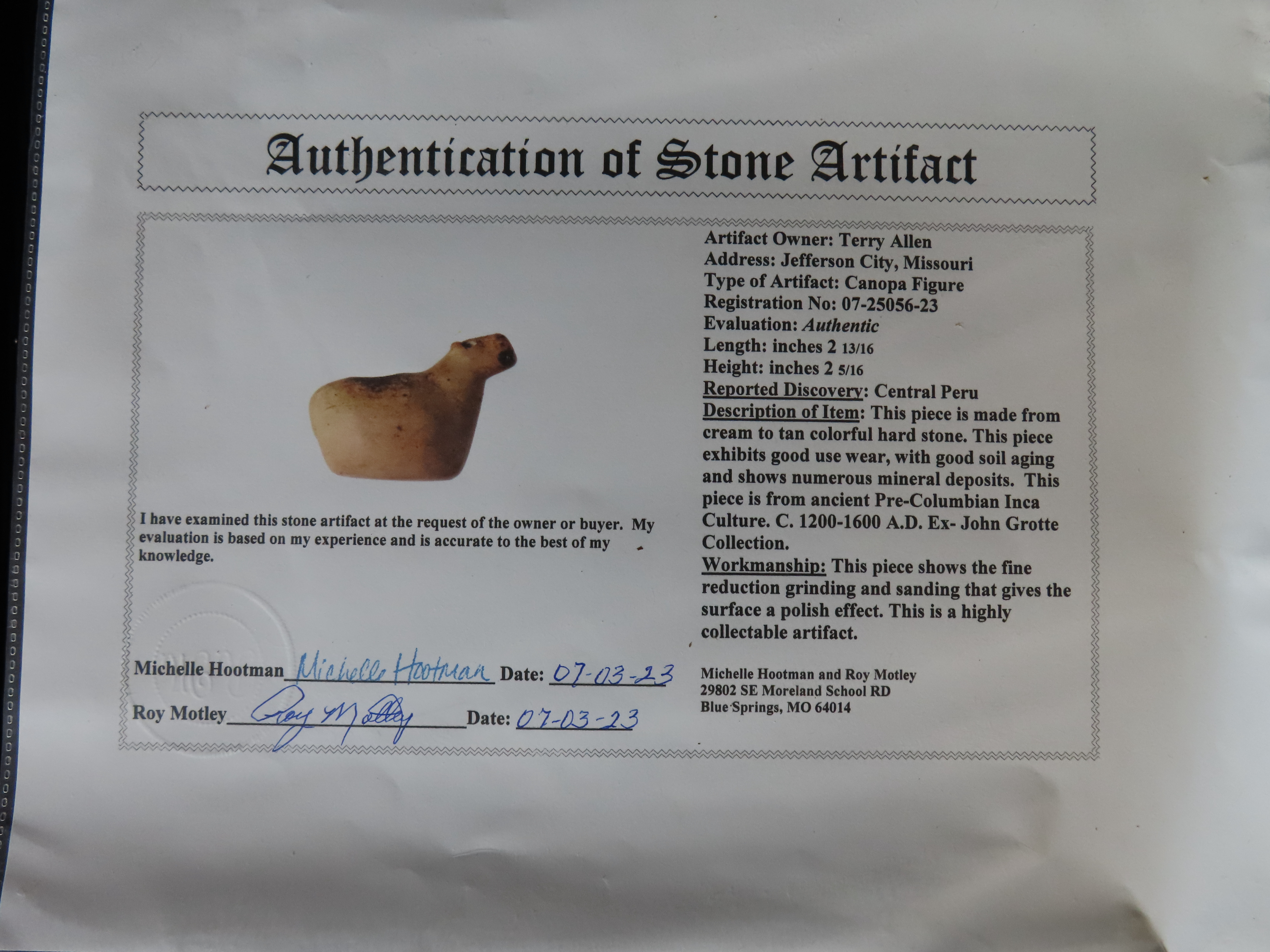 2.13/16″ Copena, Motley COA, Peru, Pre Columbian Artifact