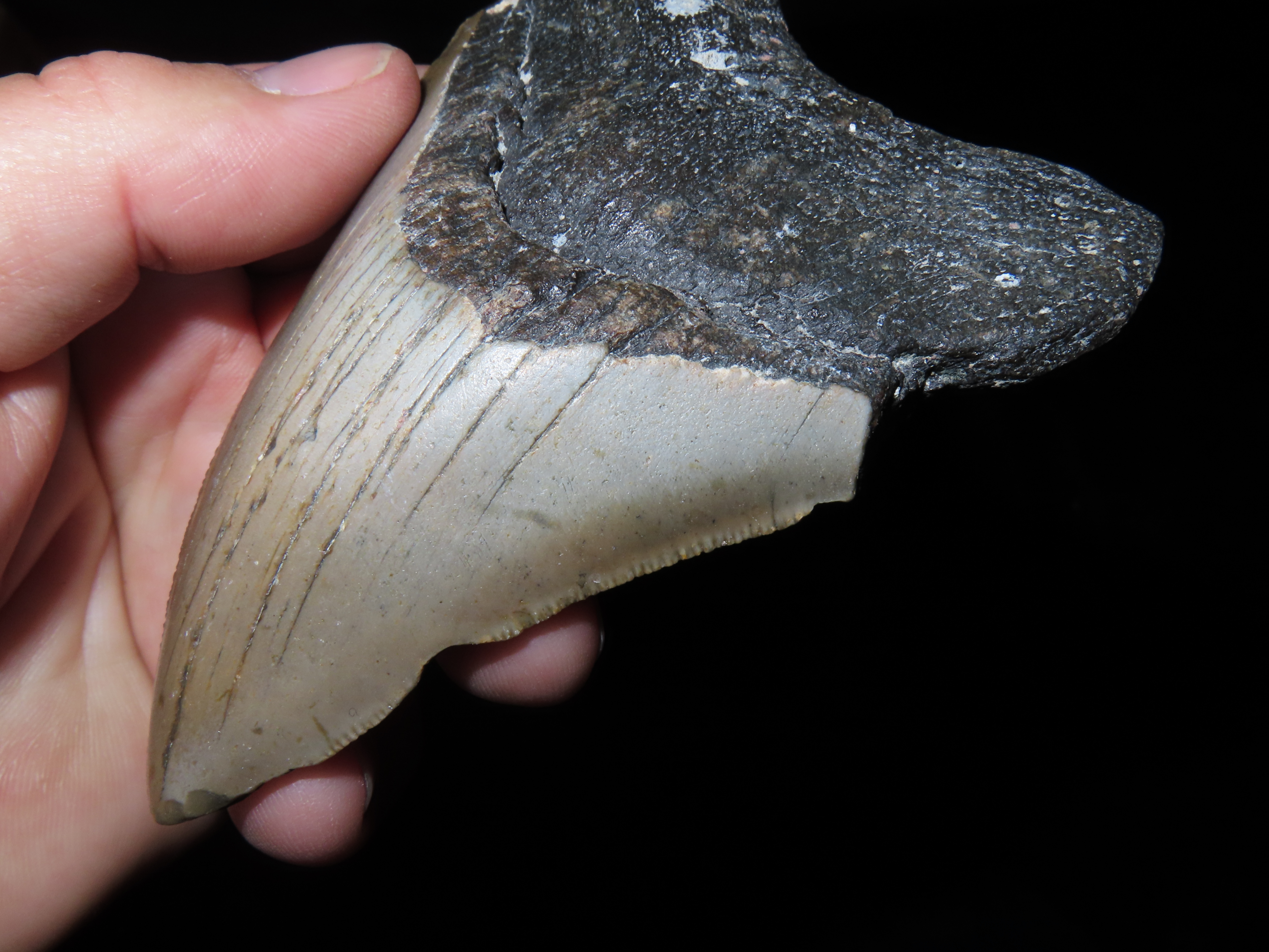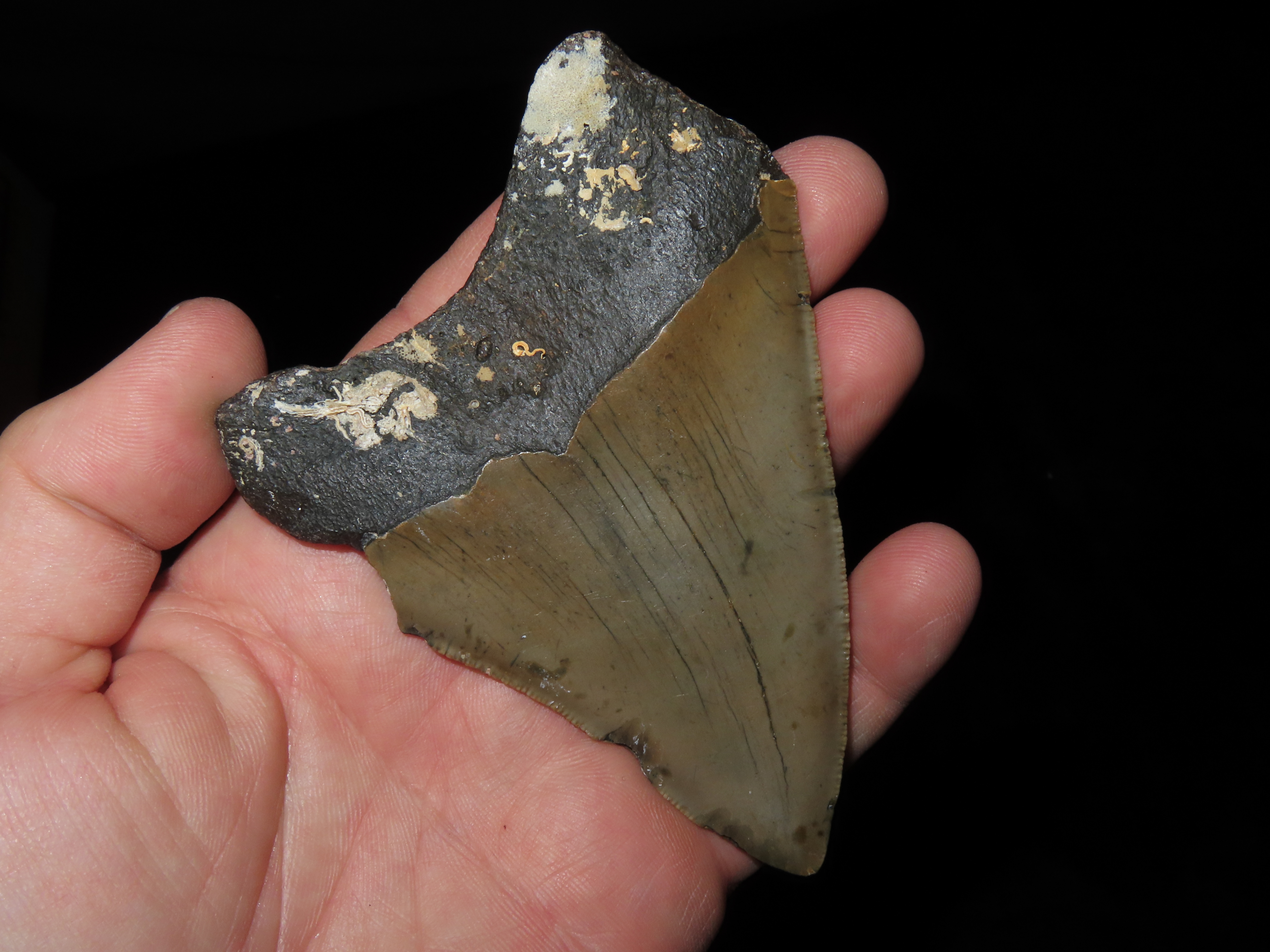 4.3/8″ Megaladon Shark Tooth, Fossil, Flordia