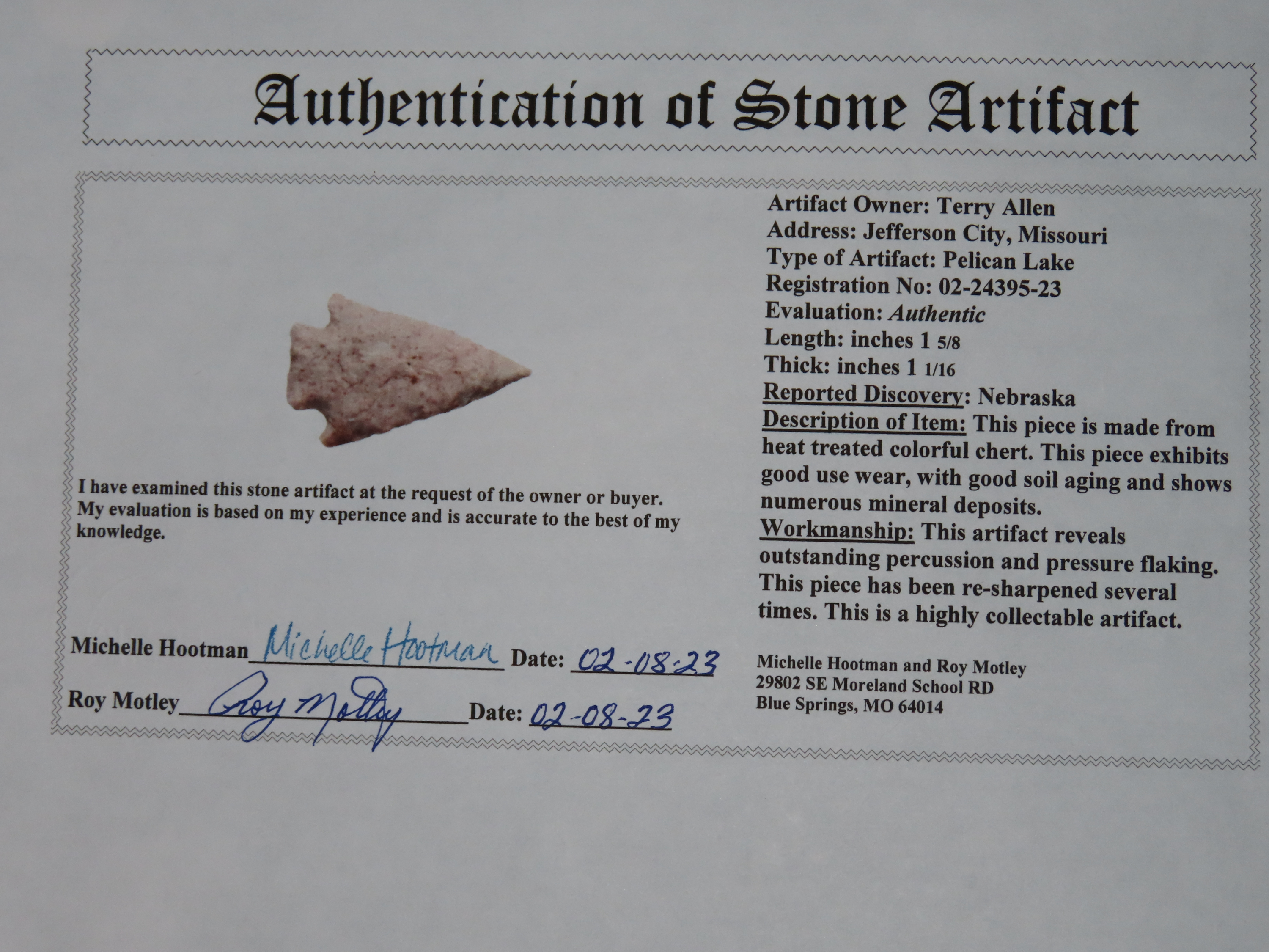 1.5/8" Pelican Lake, Motley COA, Nebraska,
