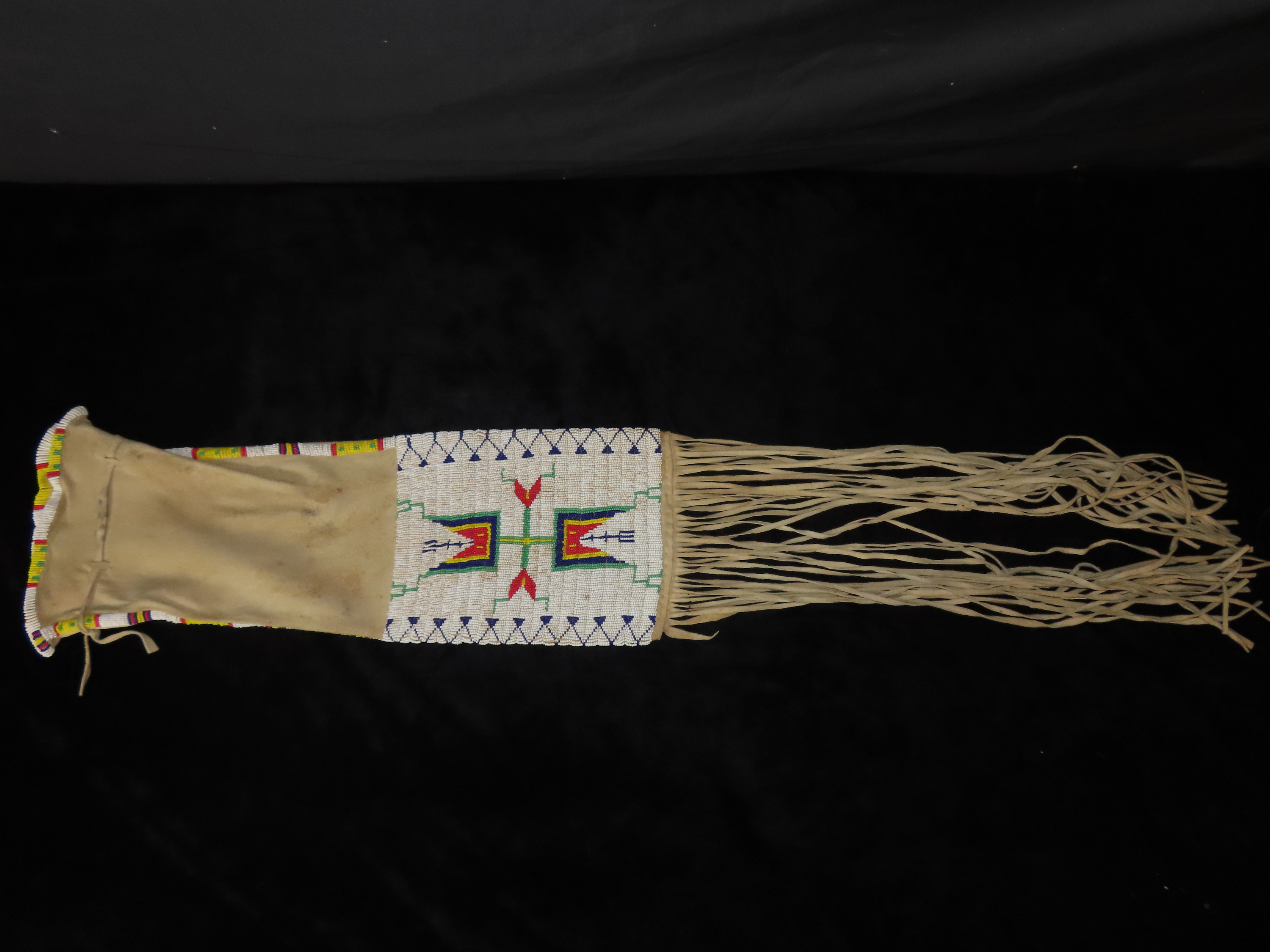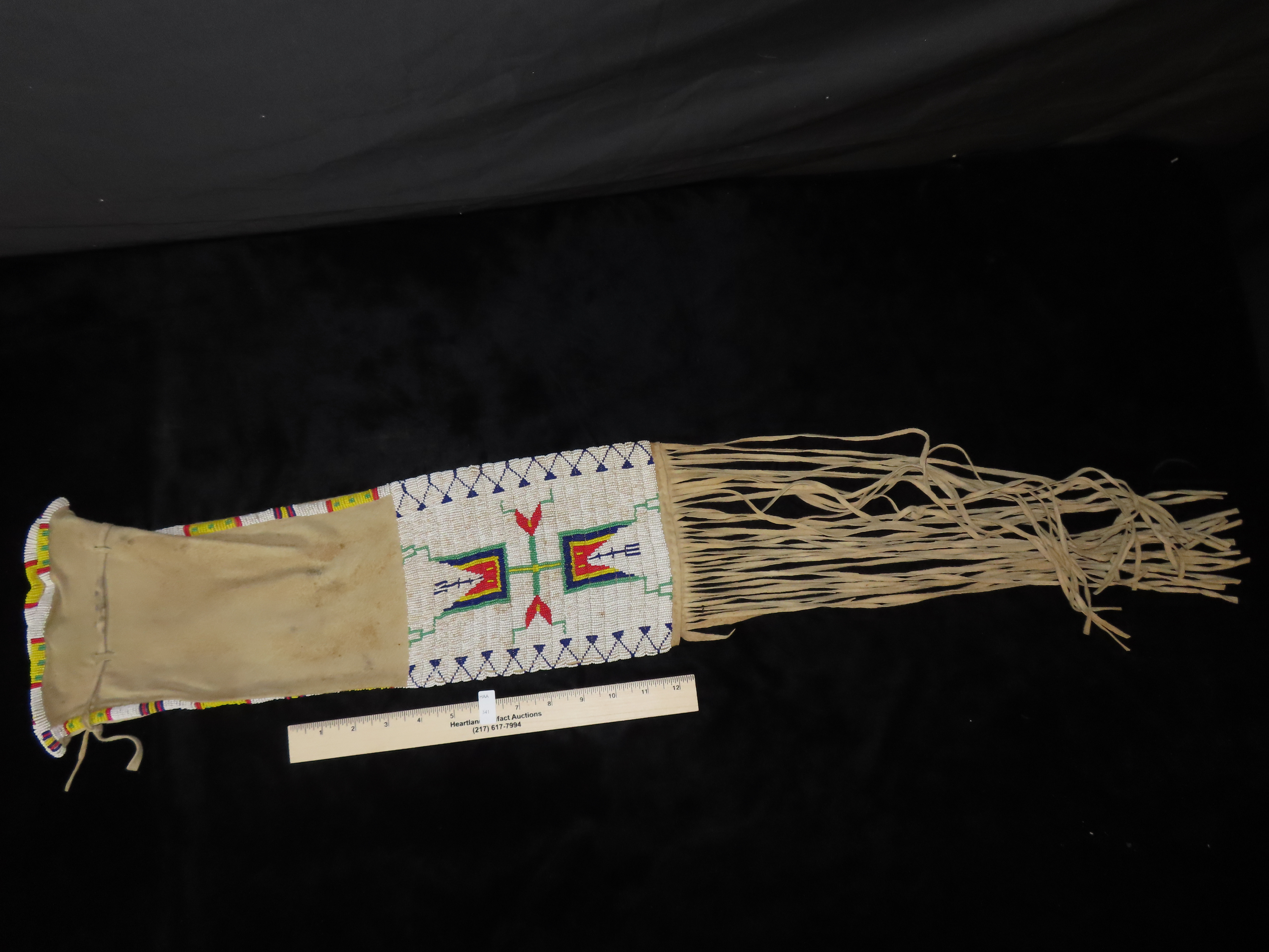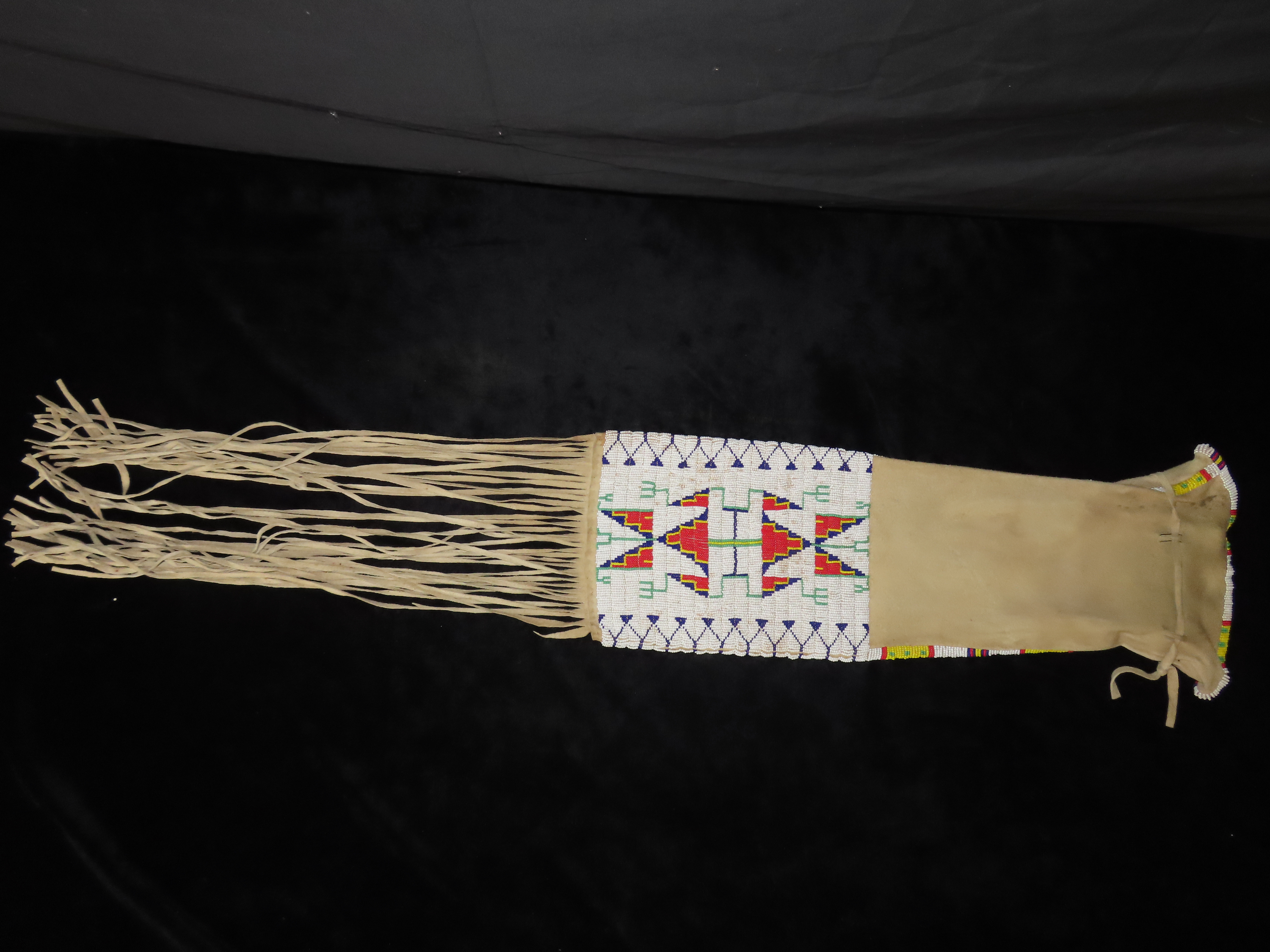 18″ Native American Fringed, Hand Beaded Hide Pipe Bag
