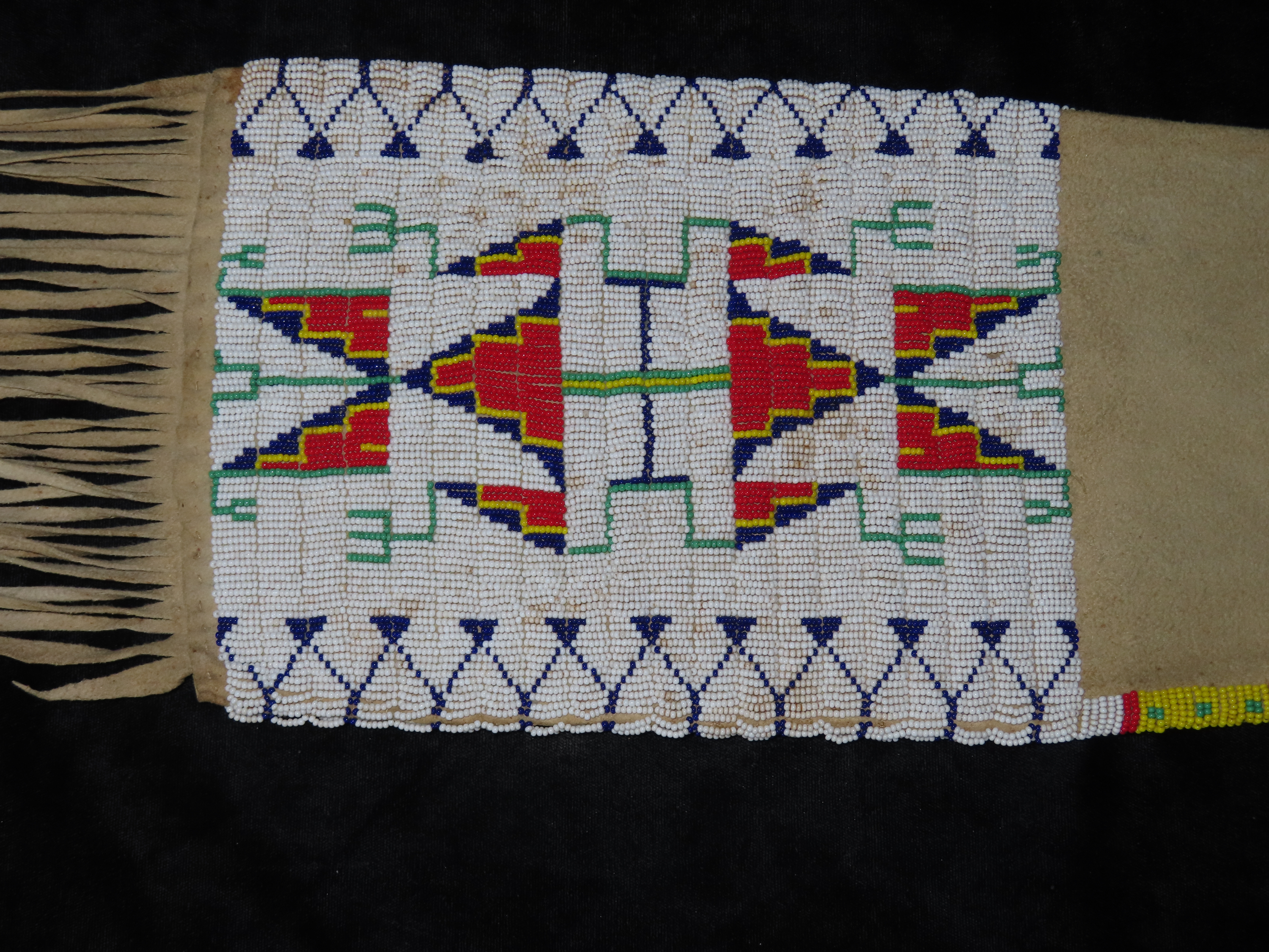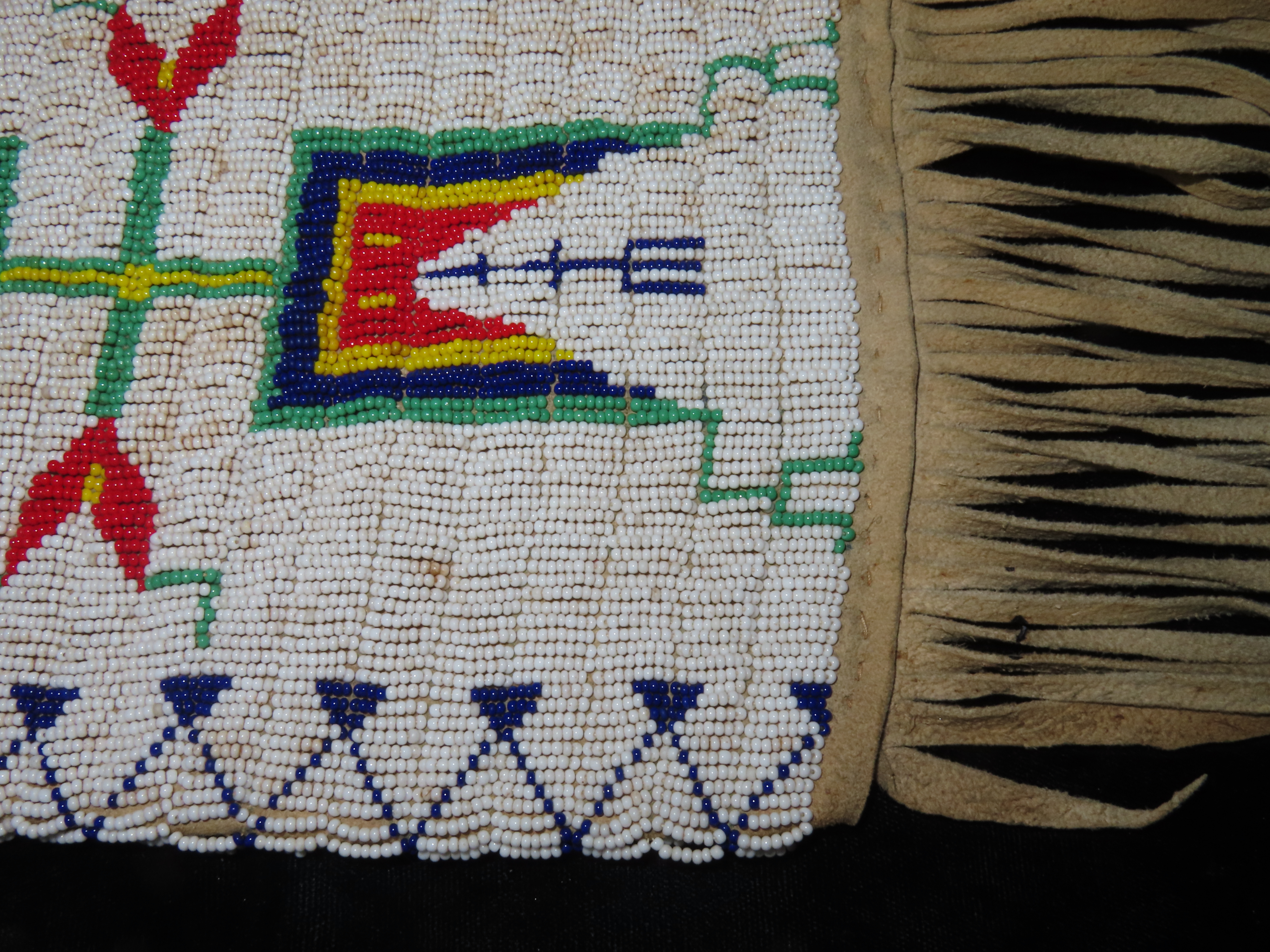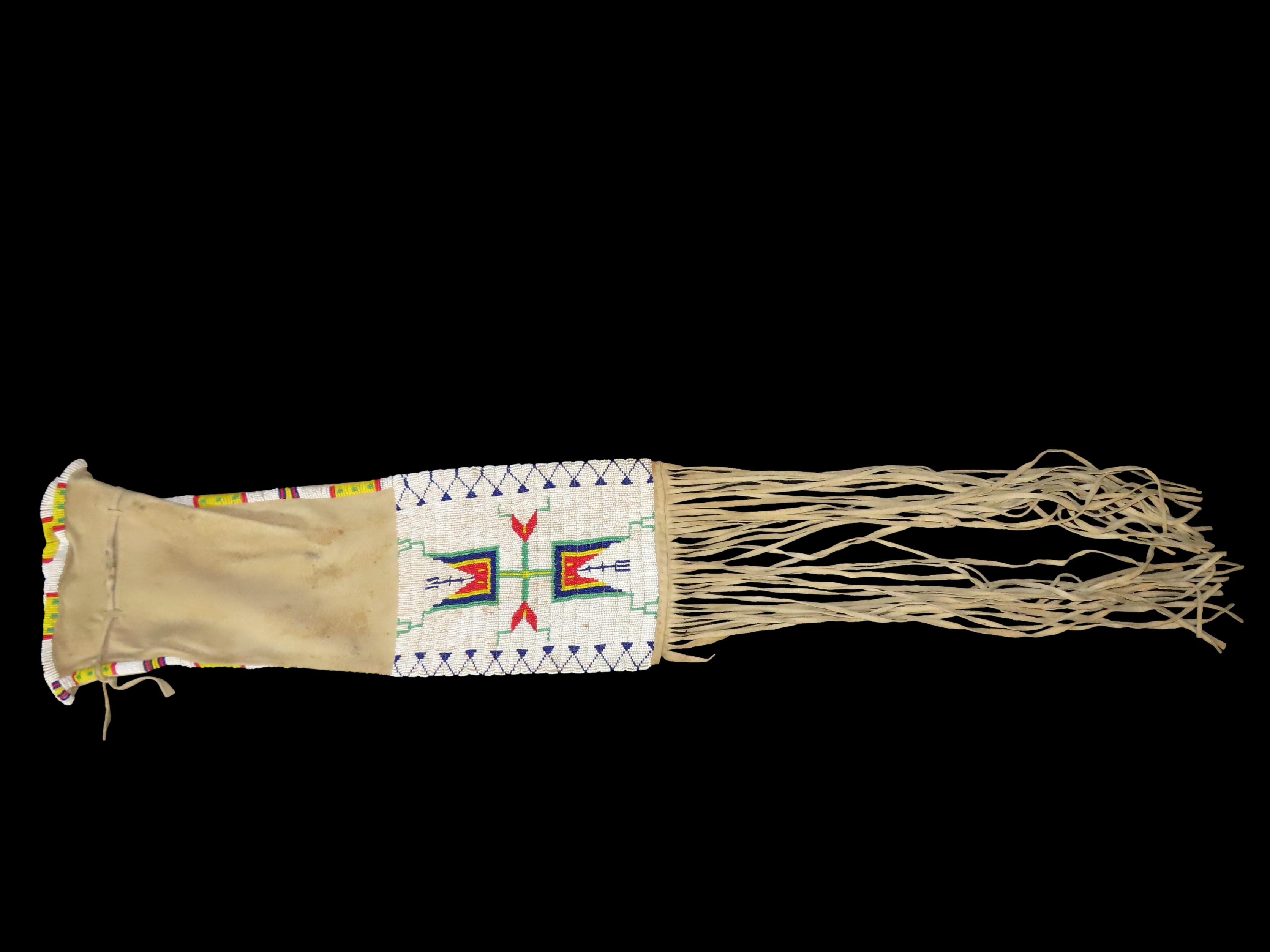 18″ Native American Fringed, Hand Beaded Hide Pipe Bag