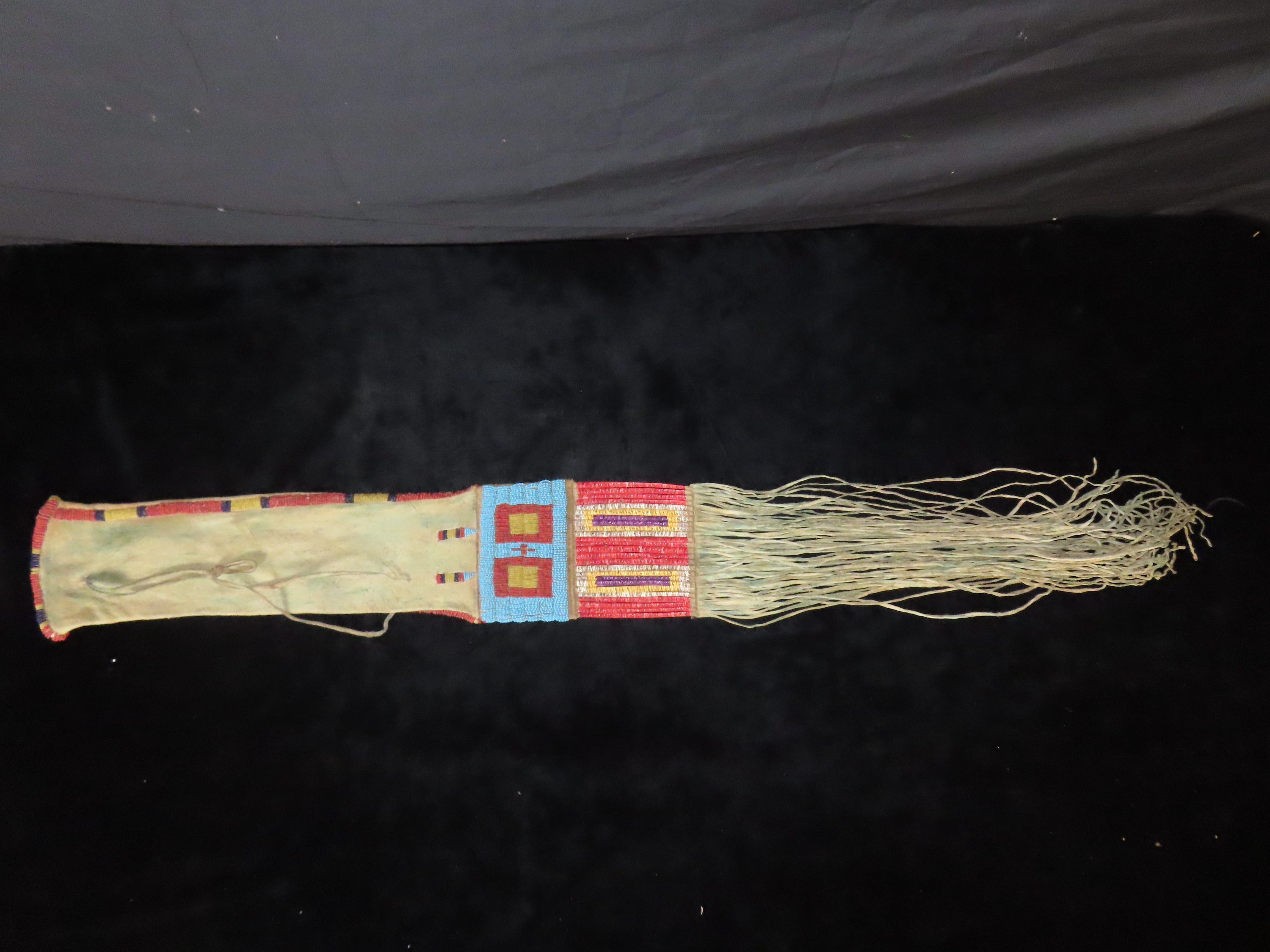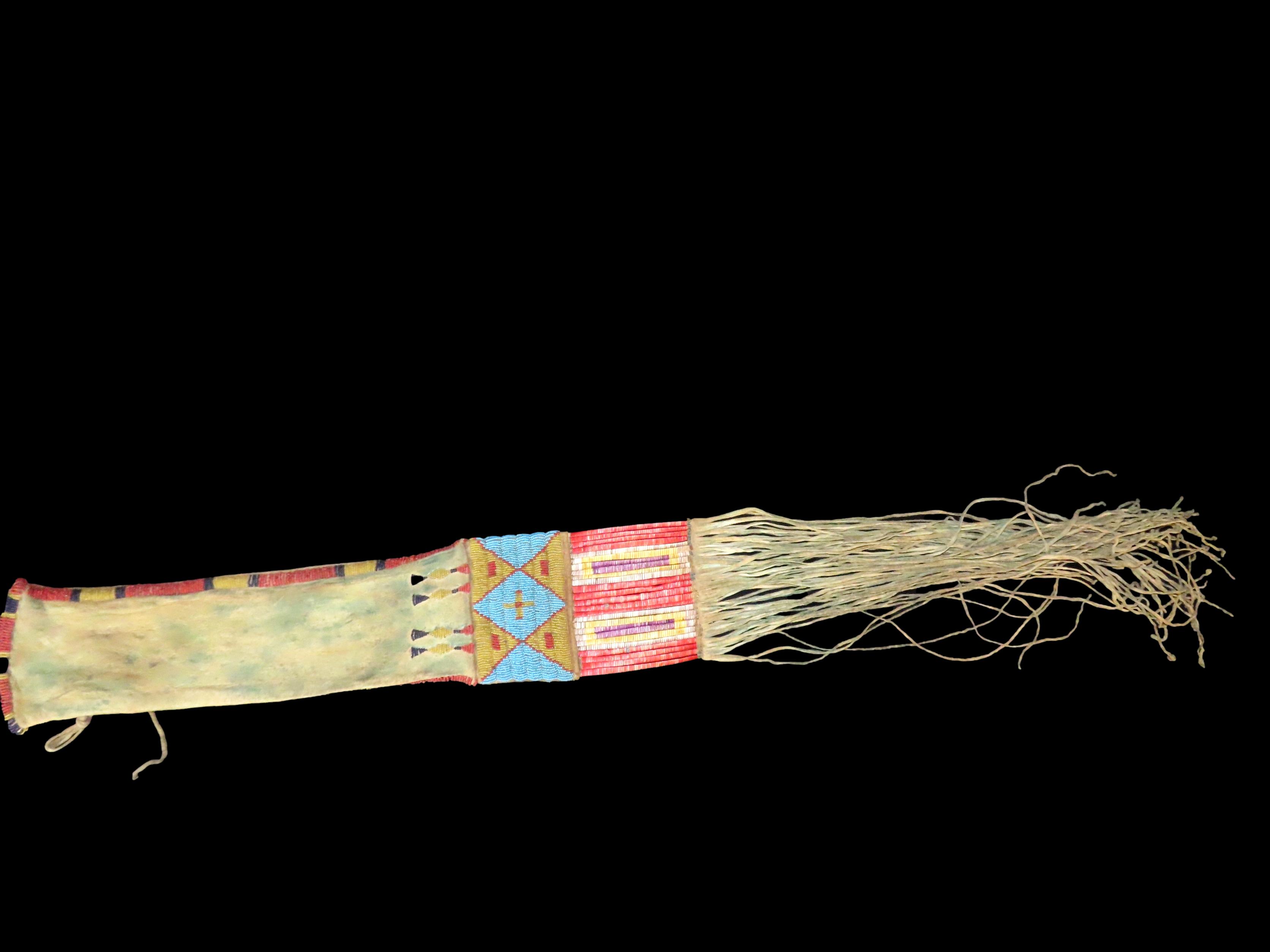 18″ Native American Fringed, Hand Beaded Hide Pipe Bag
