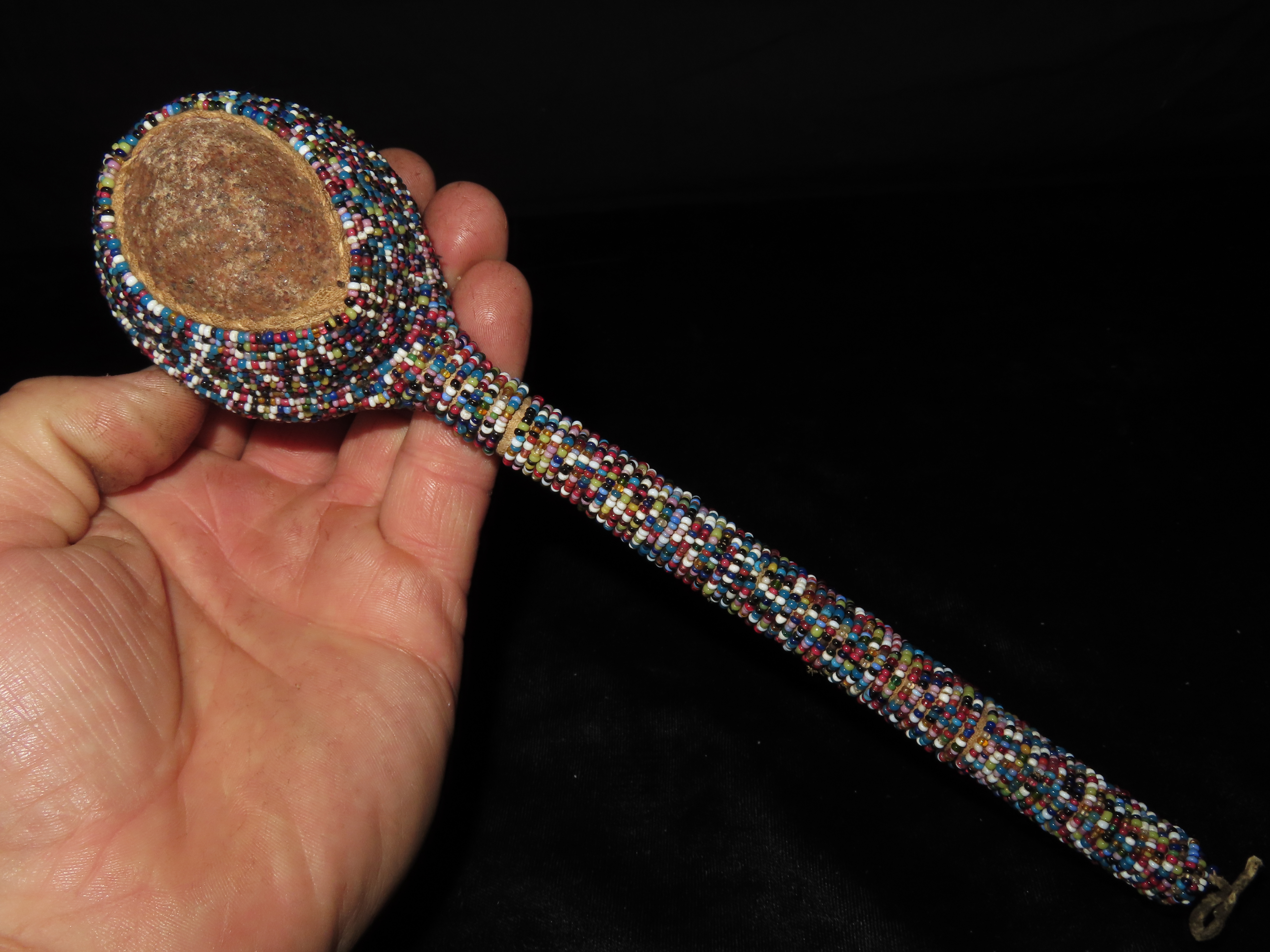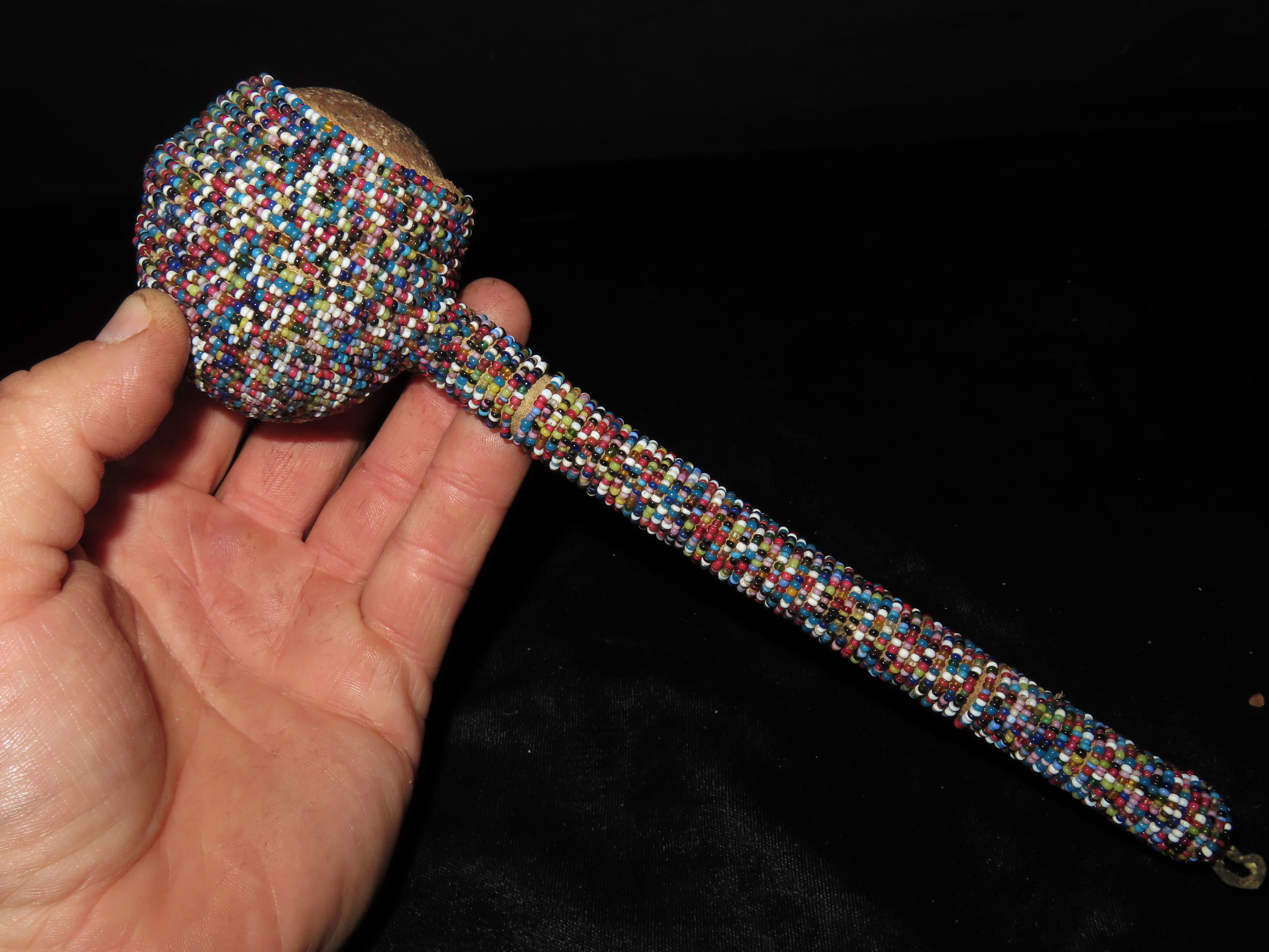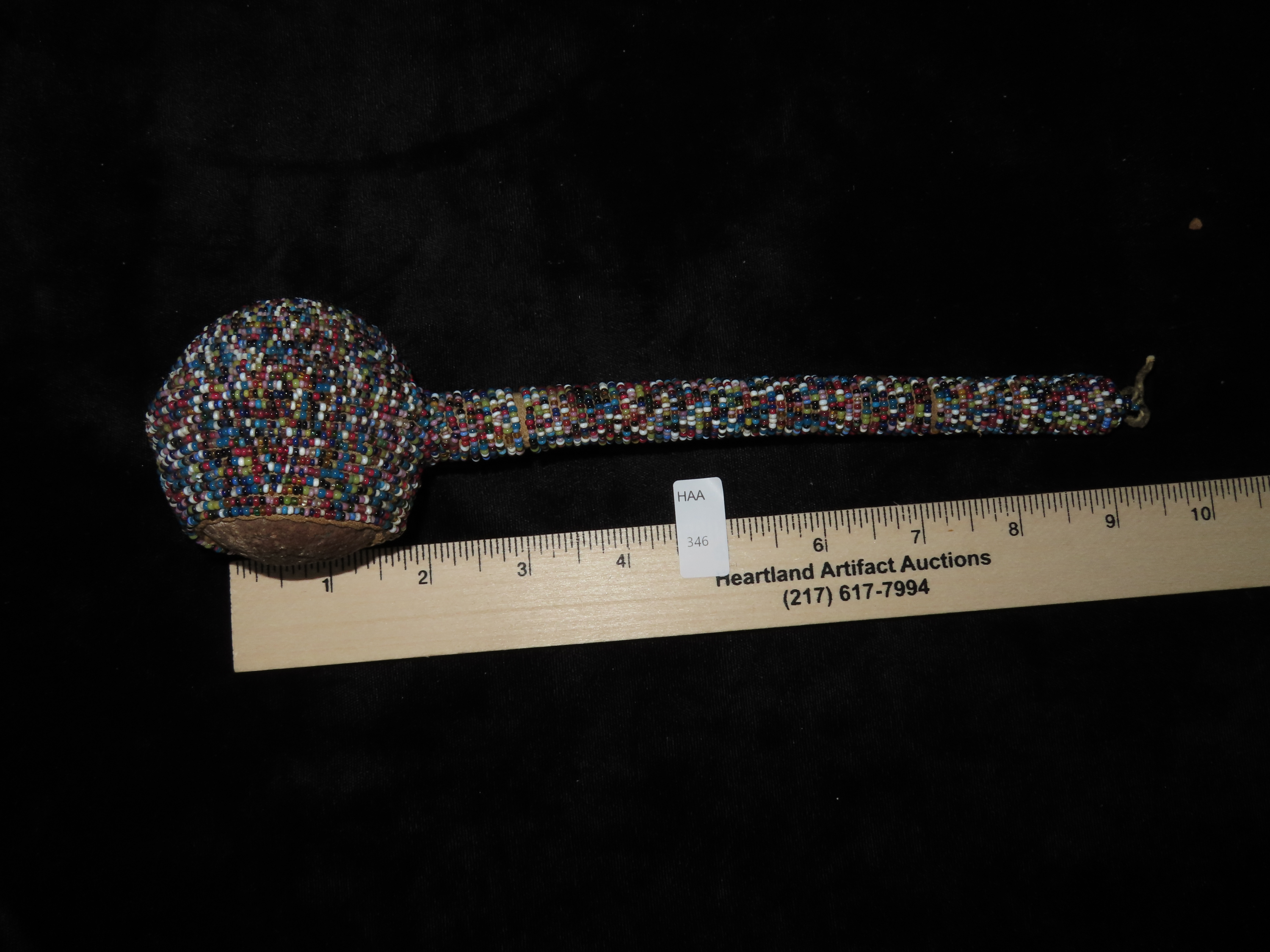 9 1/2" HEAVILY Beaded Stone Headed Plains Indian War Club