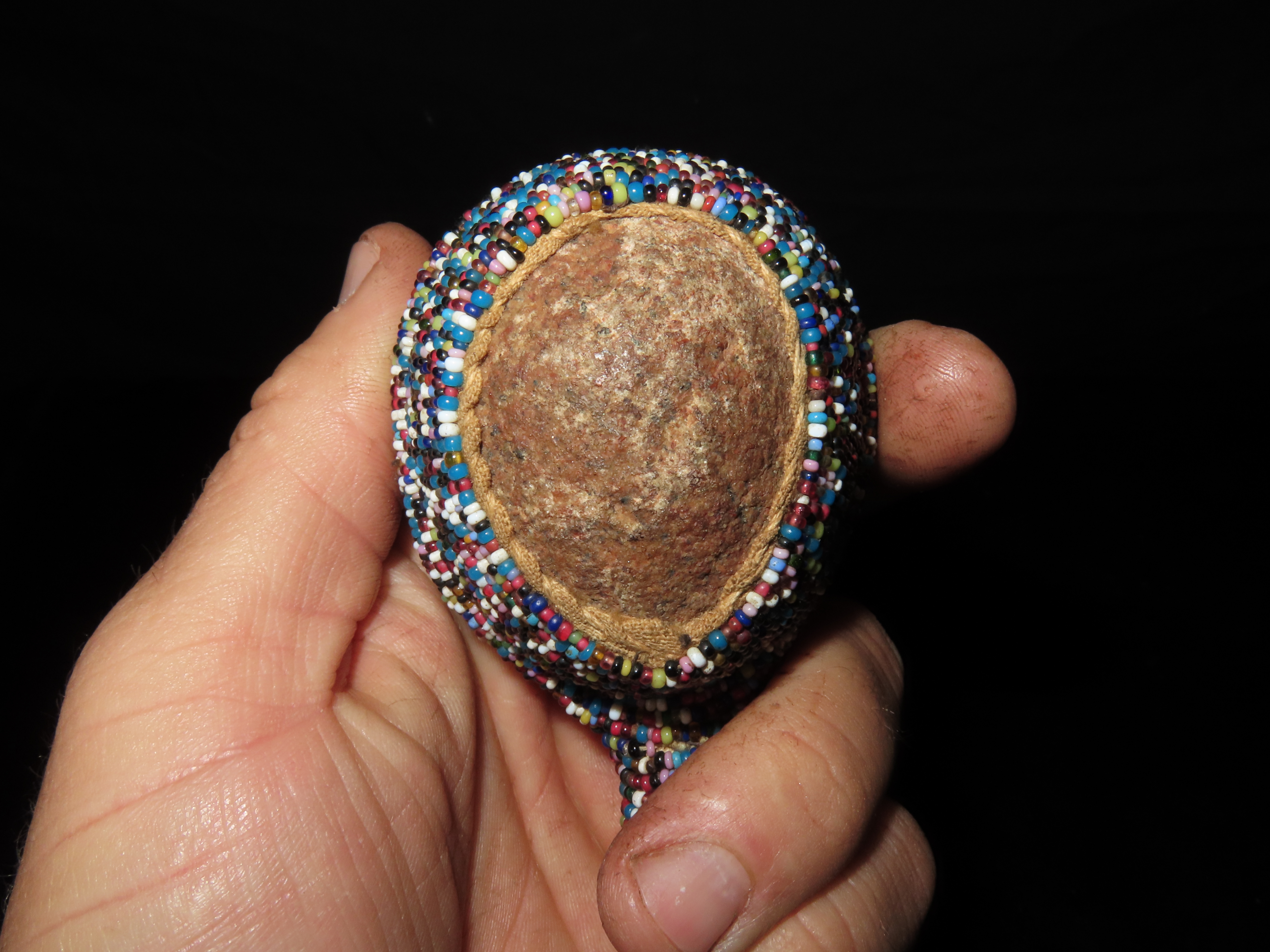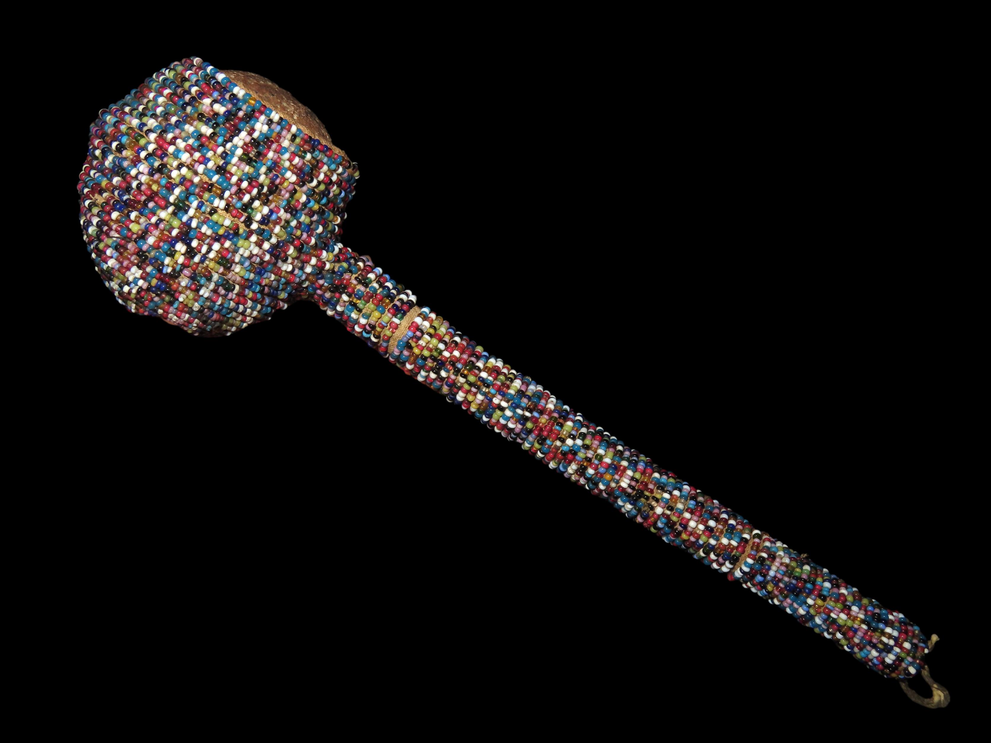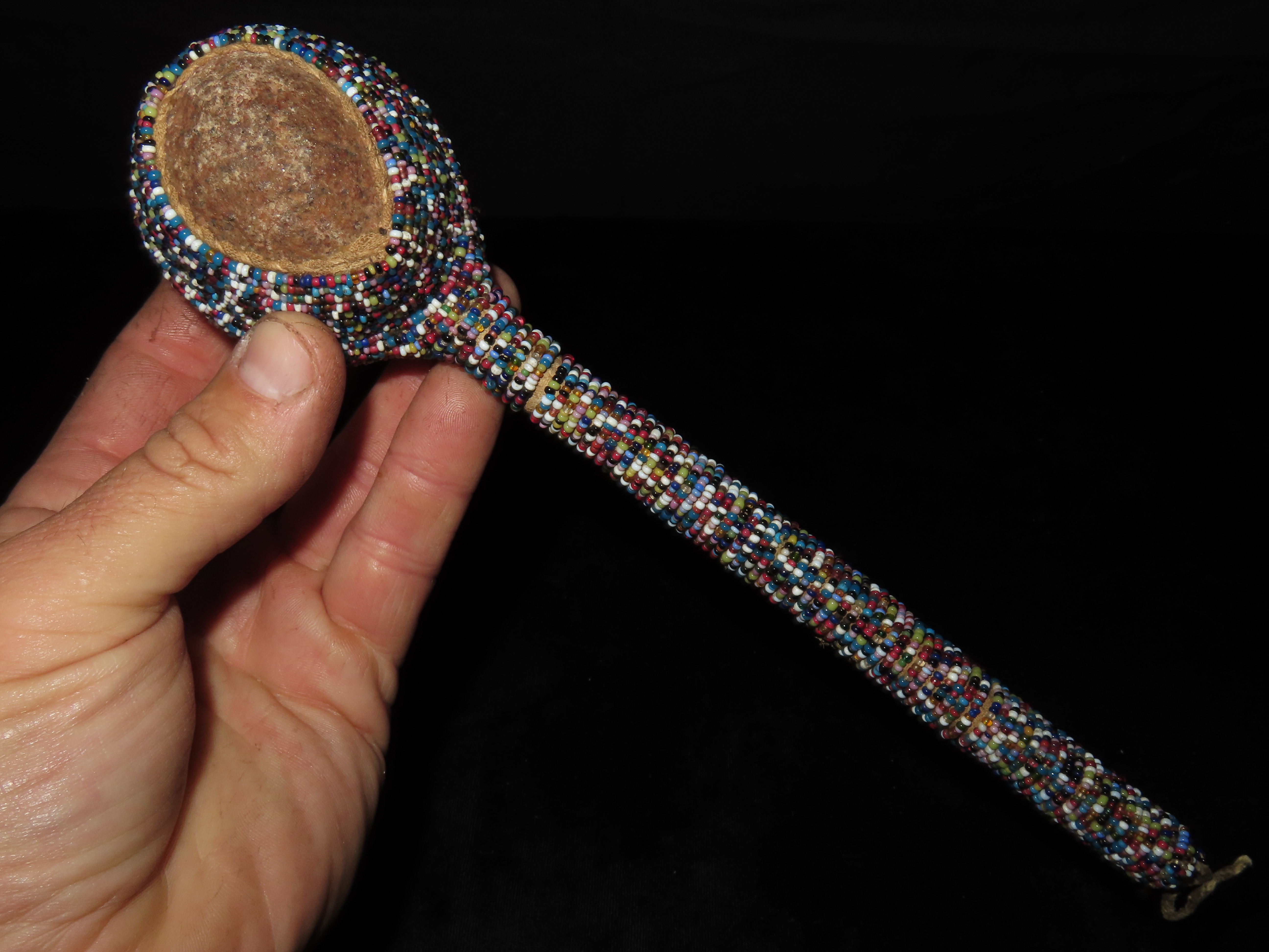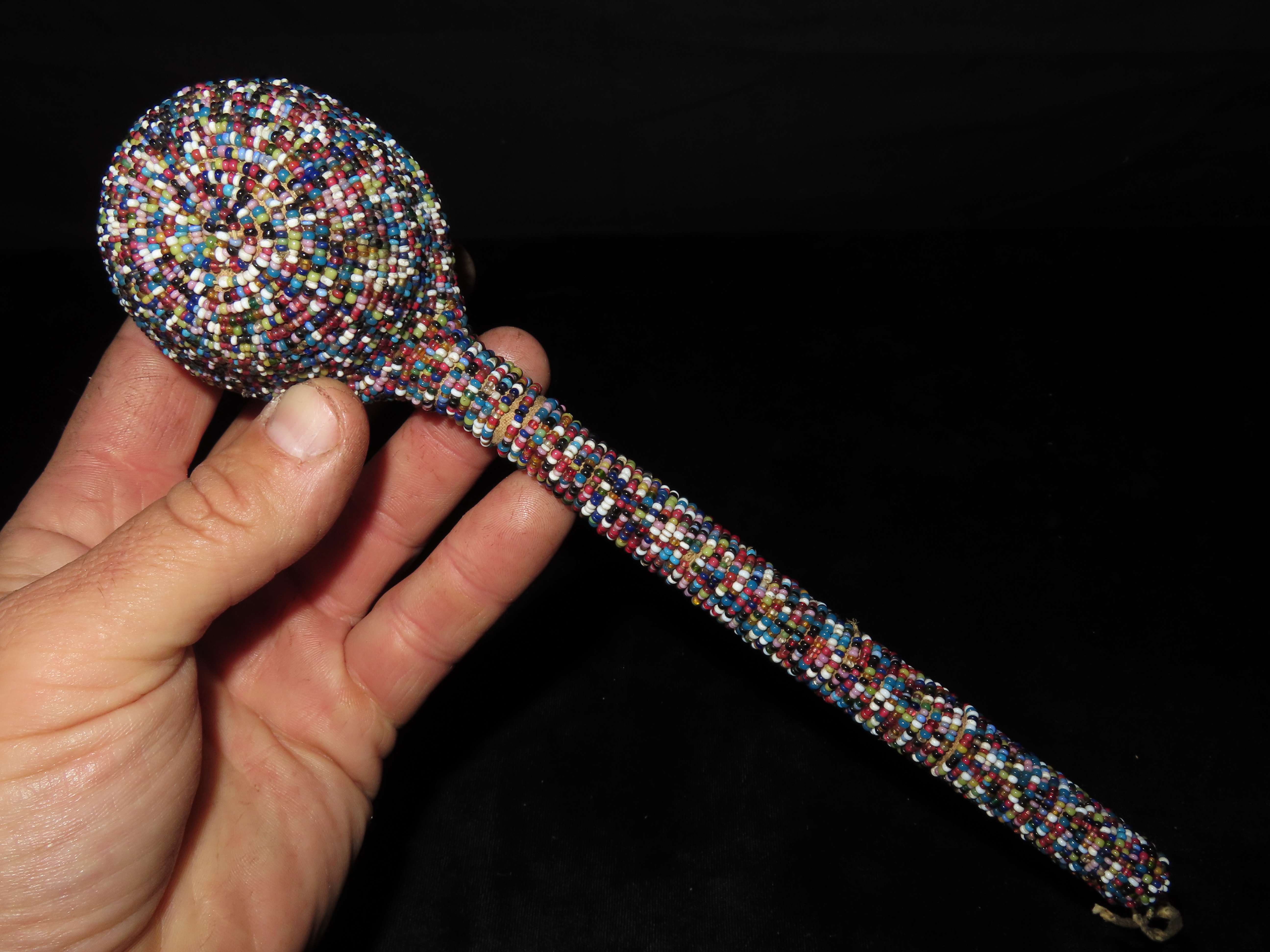 9 1/2" HEAVILY Beaded Stone Headed Plains Indian War Club