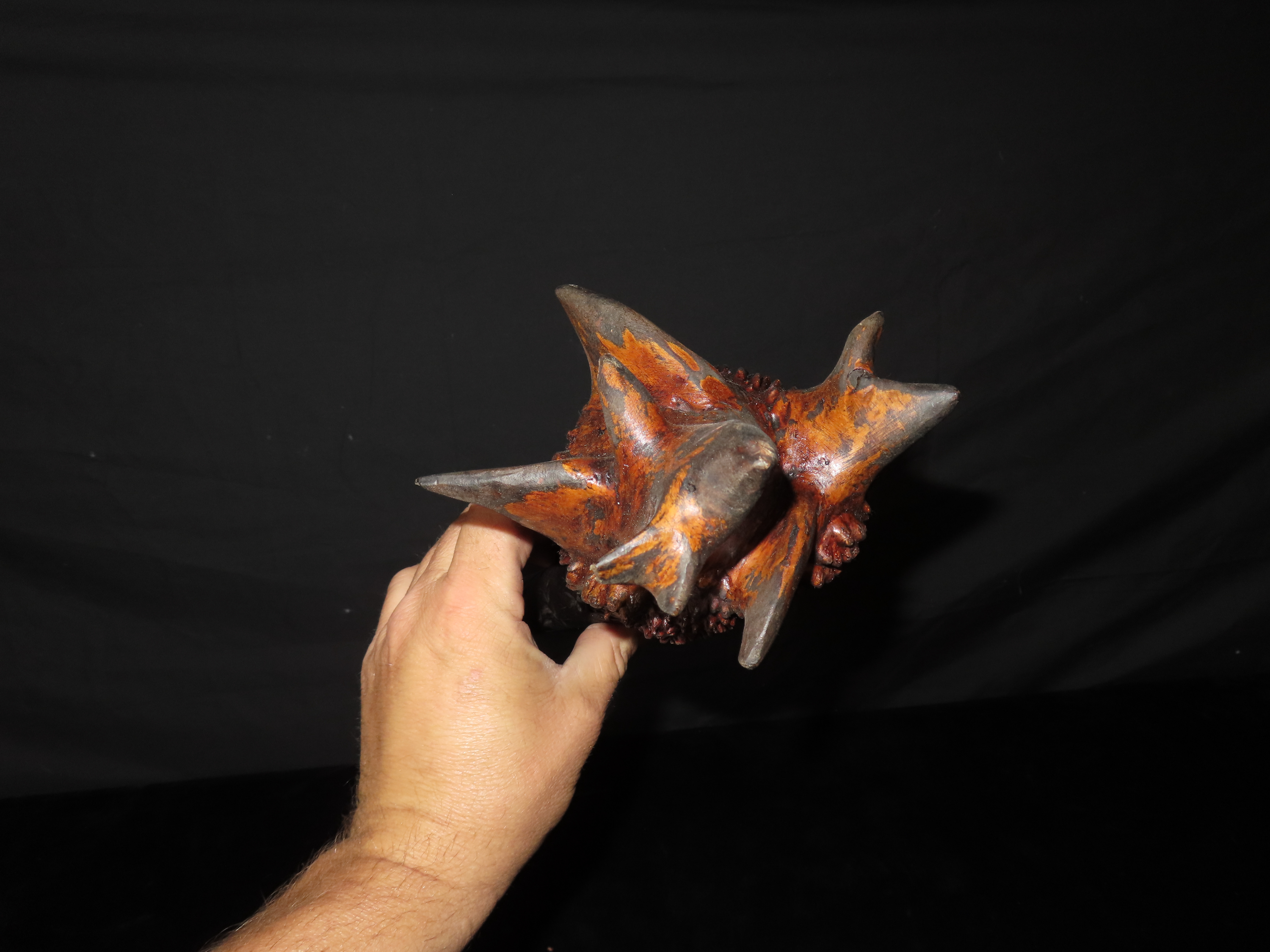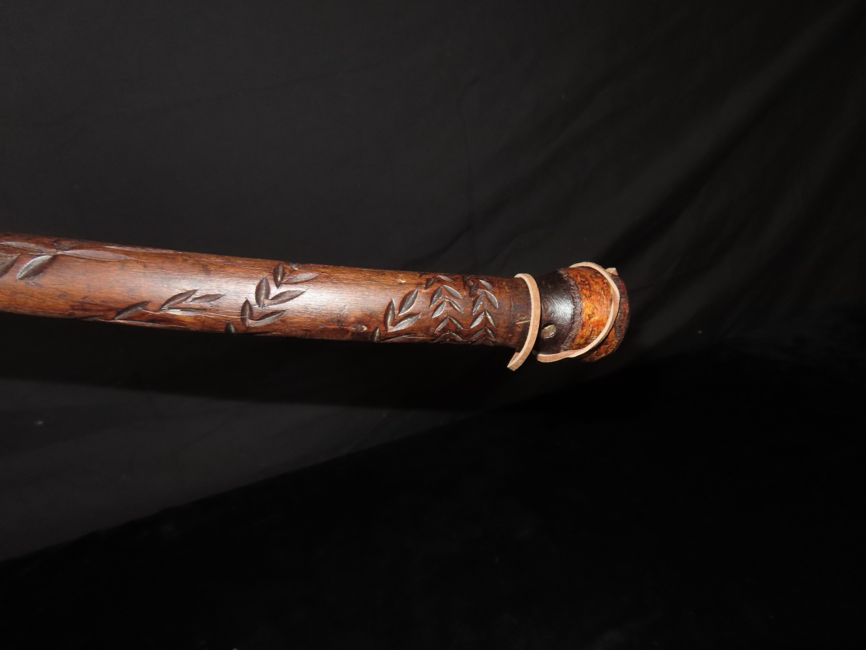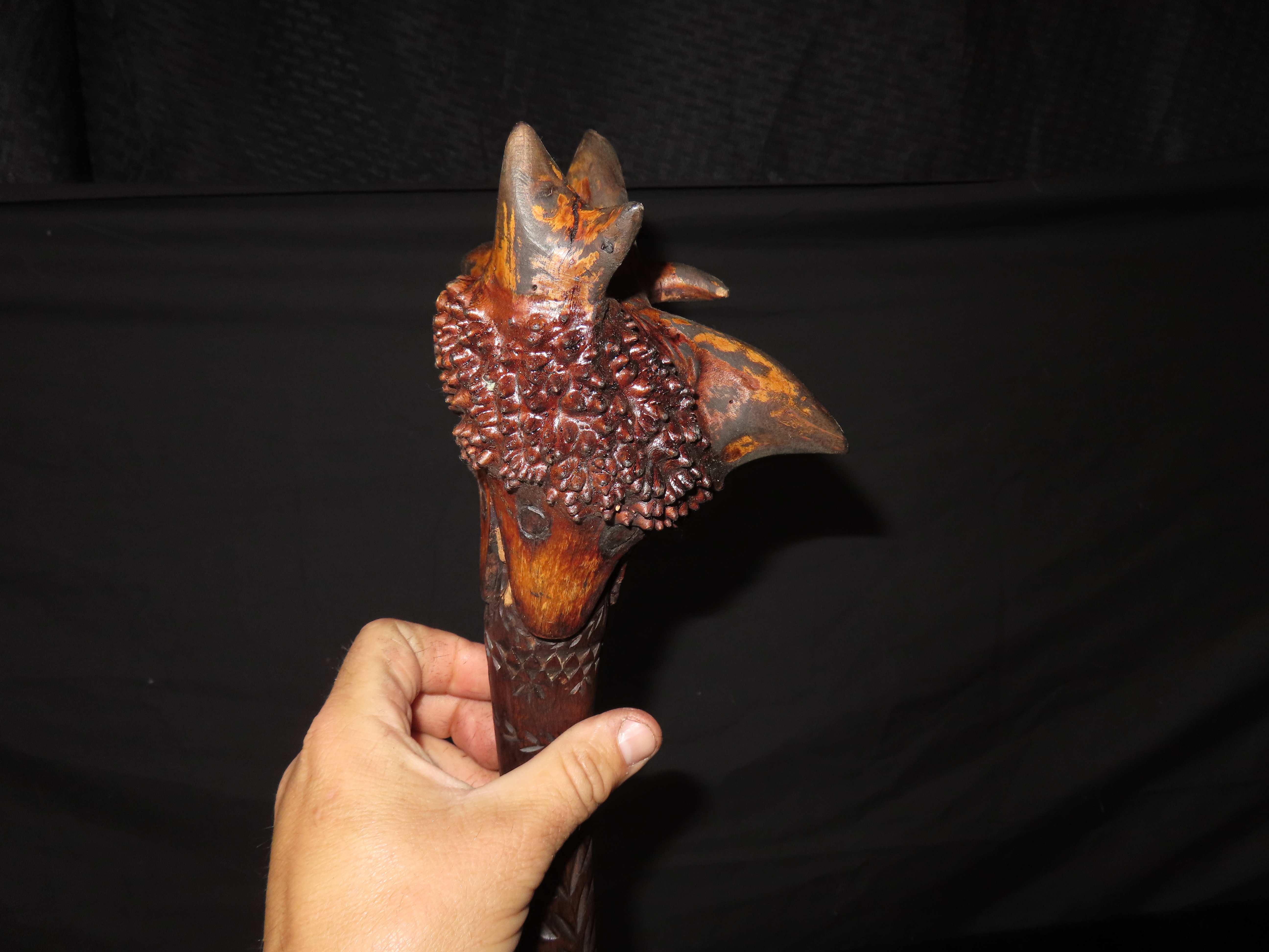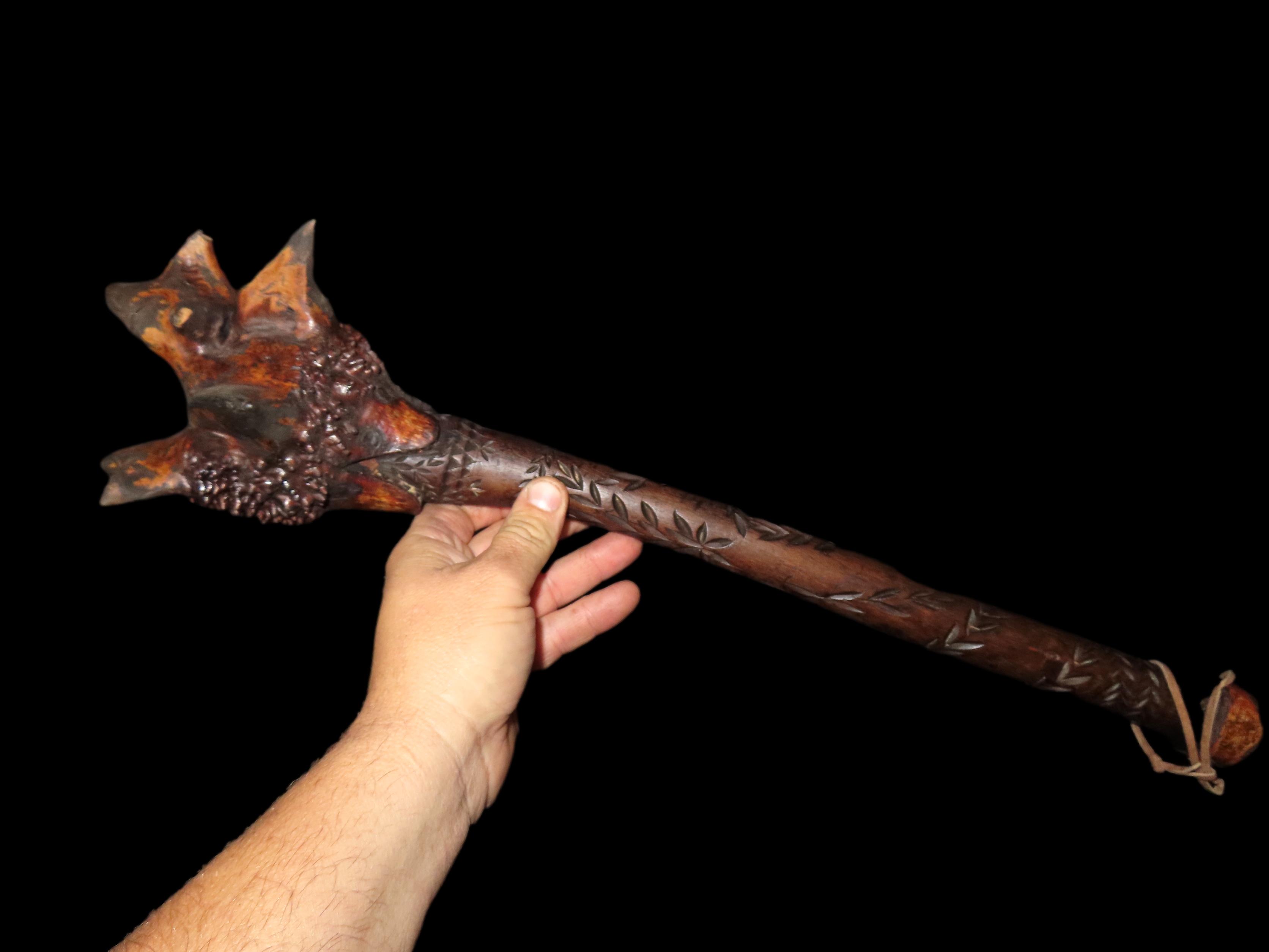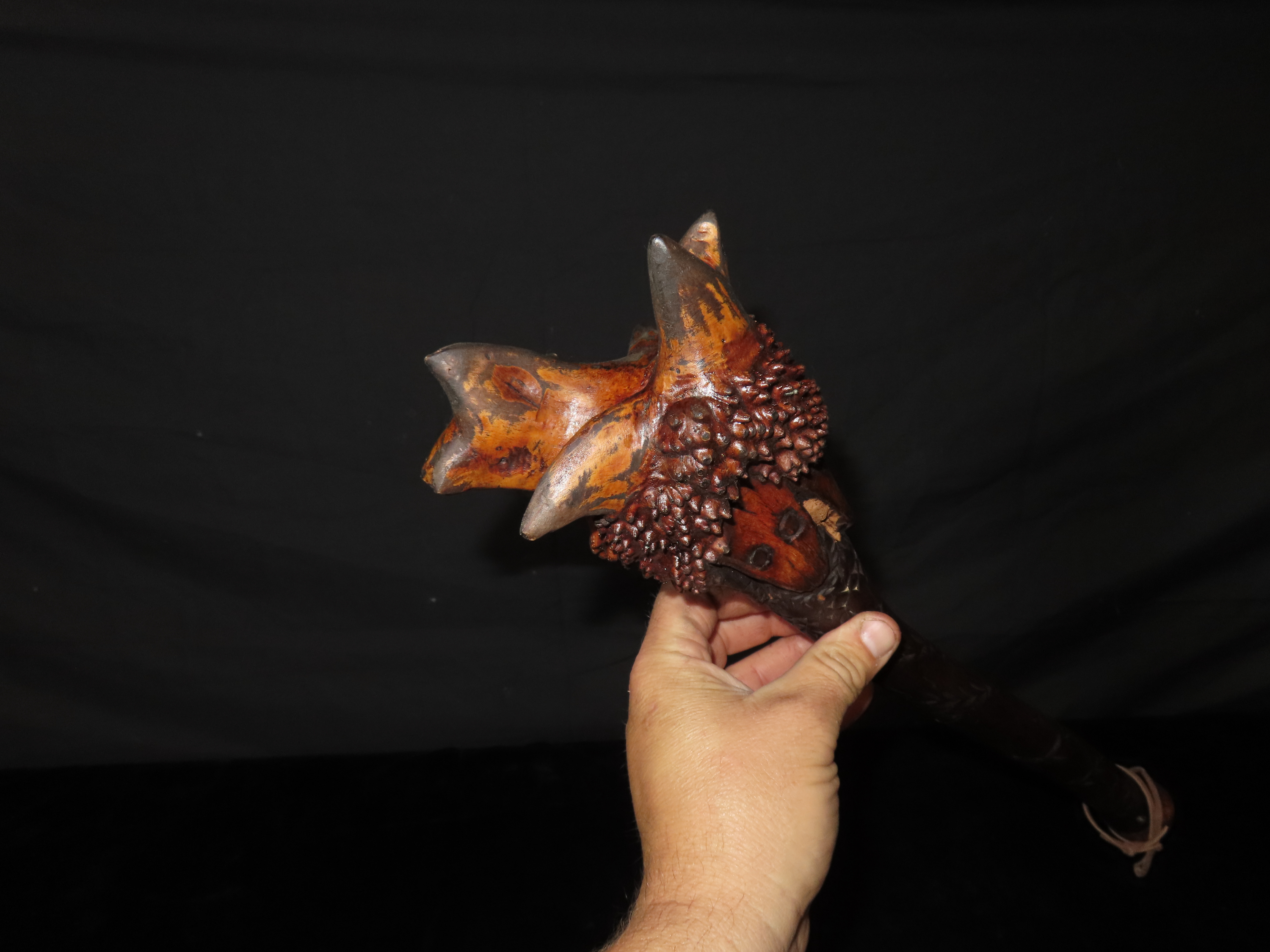 23″ Penobscot Root War Club, Very Intricately Carved, Several Porcupine Effigy carvings, Beautiful Patina to wood, And Beautiful Detailed Carving of Handle