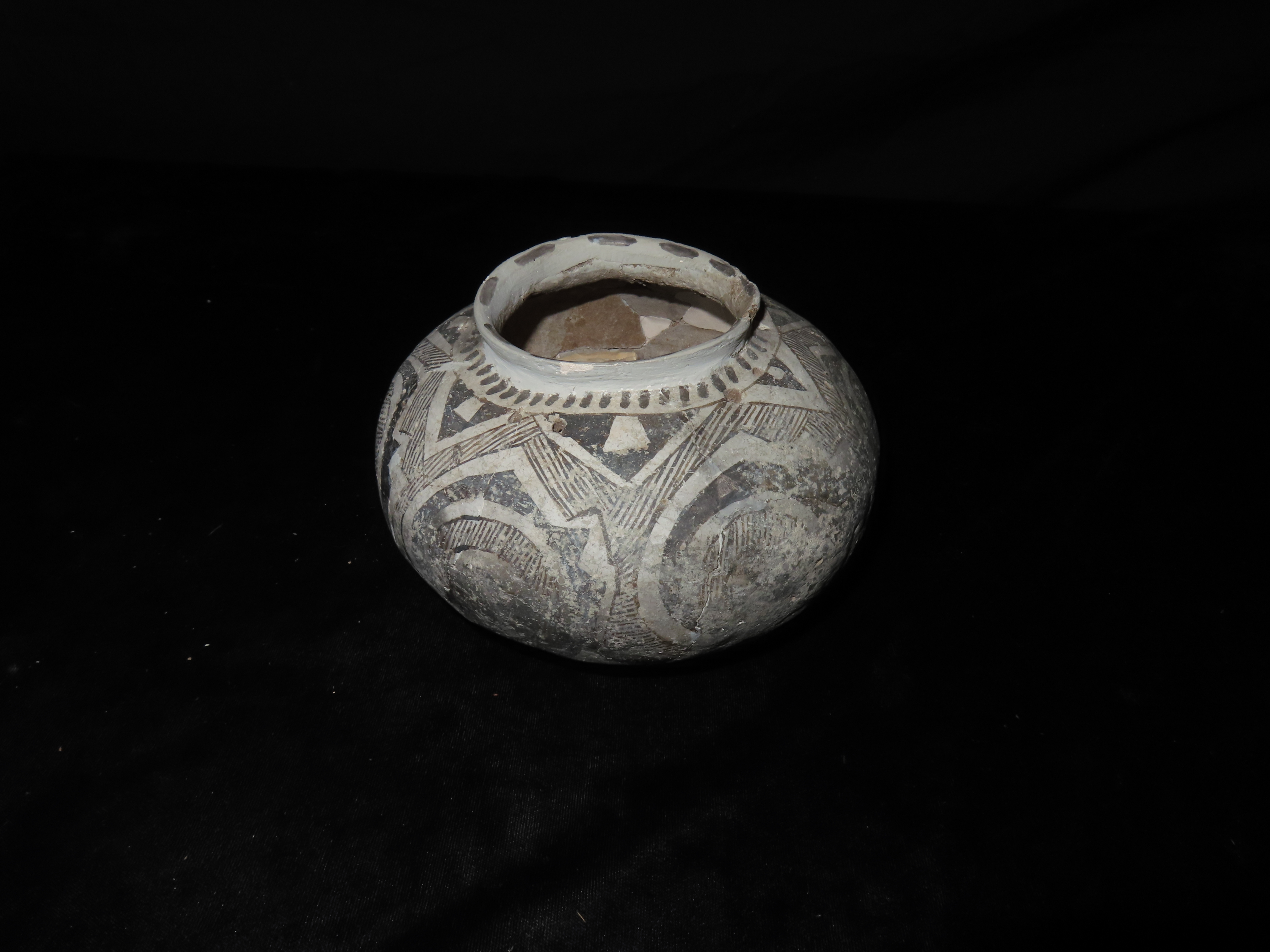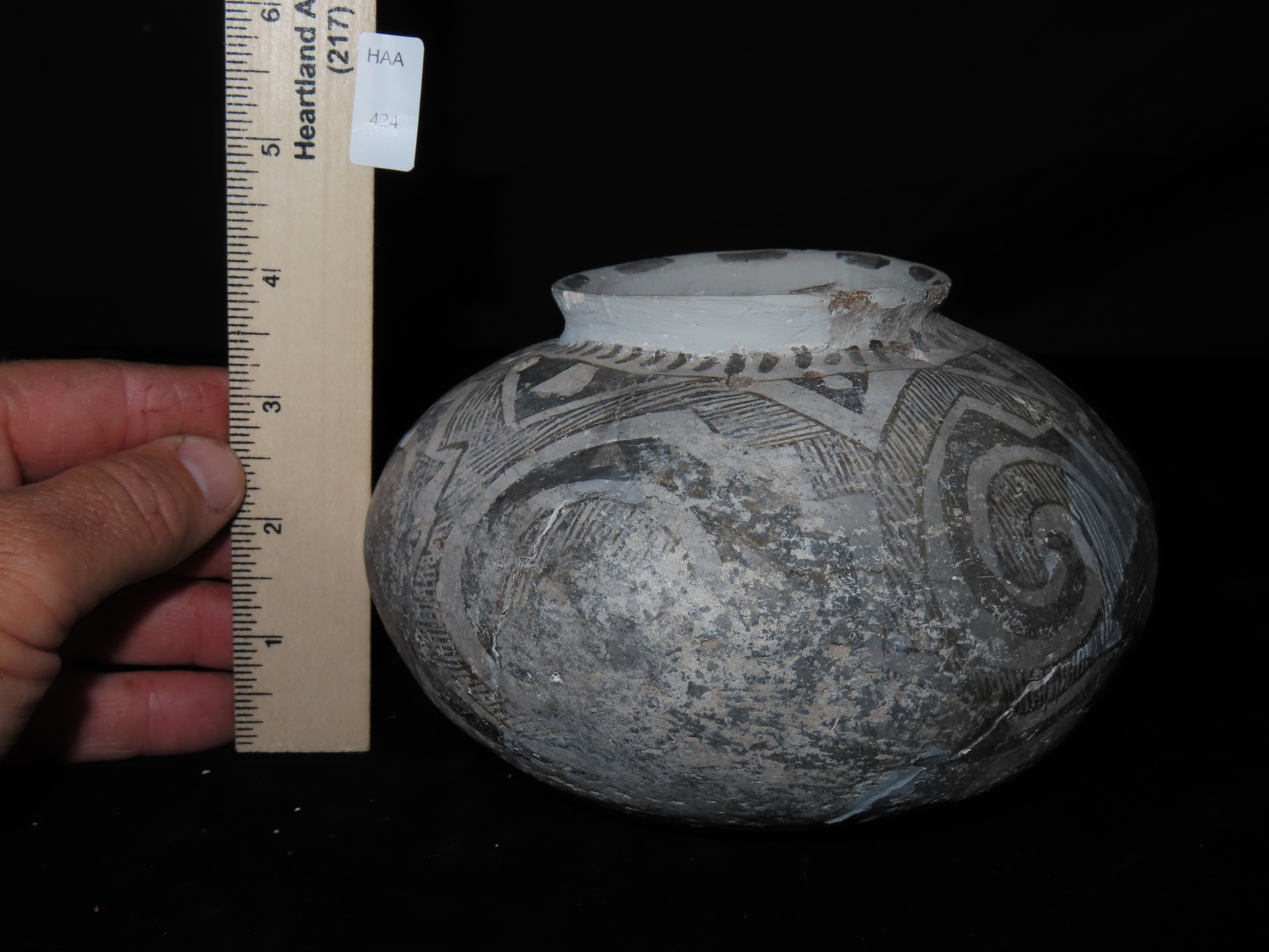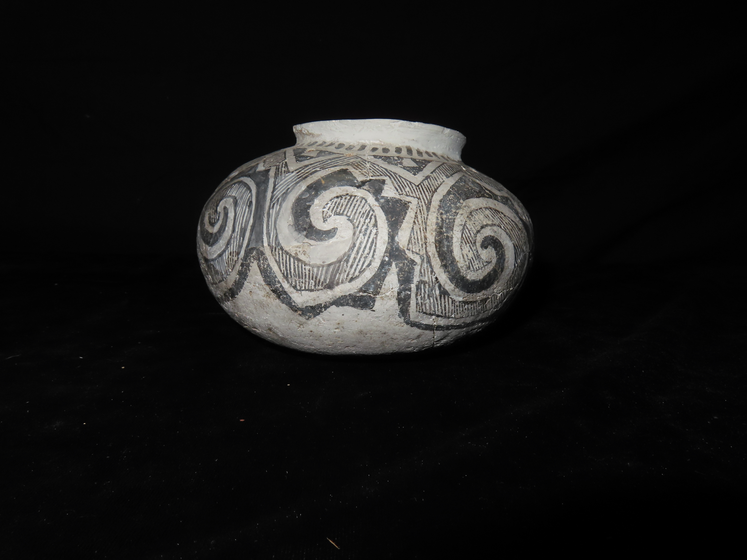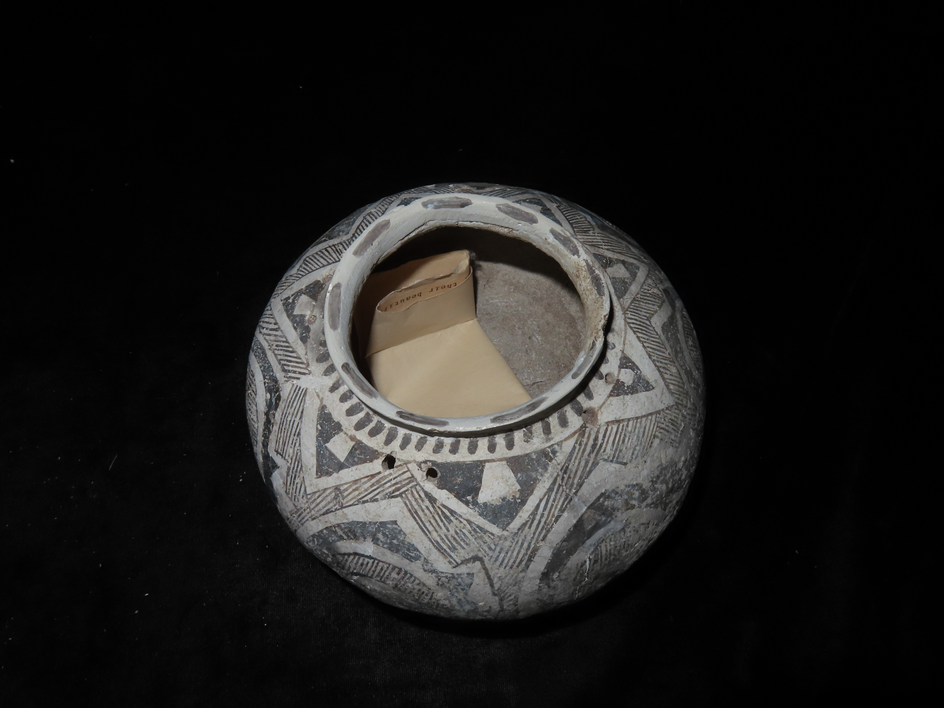 6″ Dia Black and White Pottery Vessel, AZ, Ex Randall May Collection