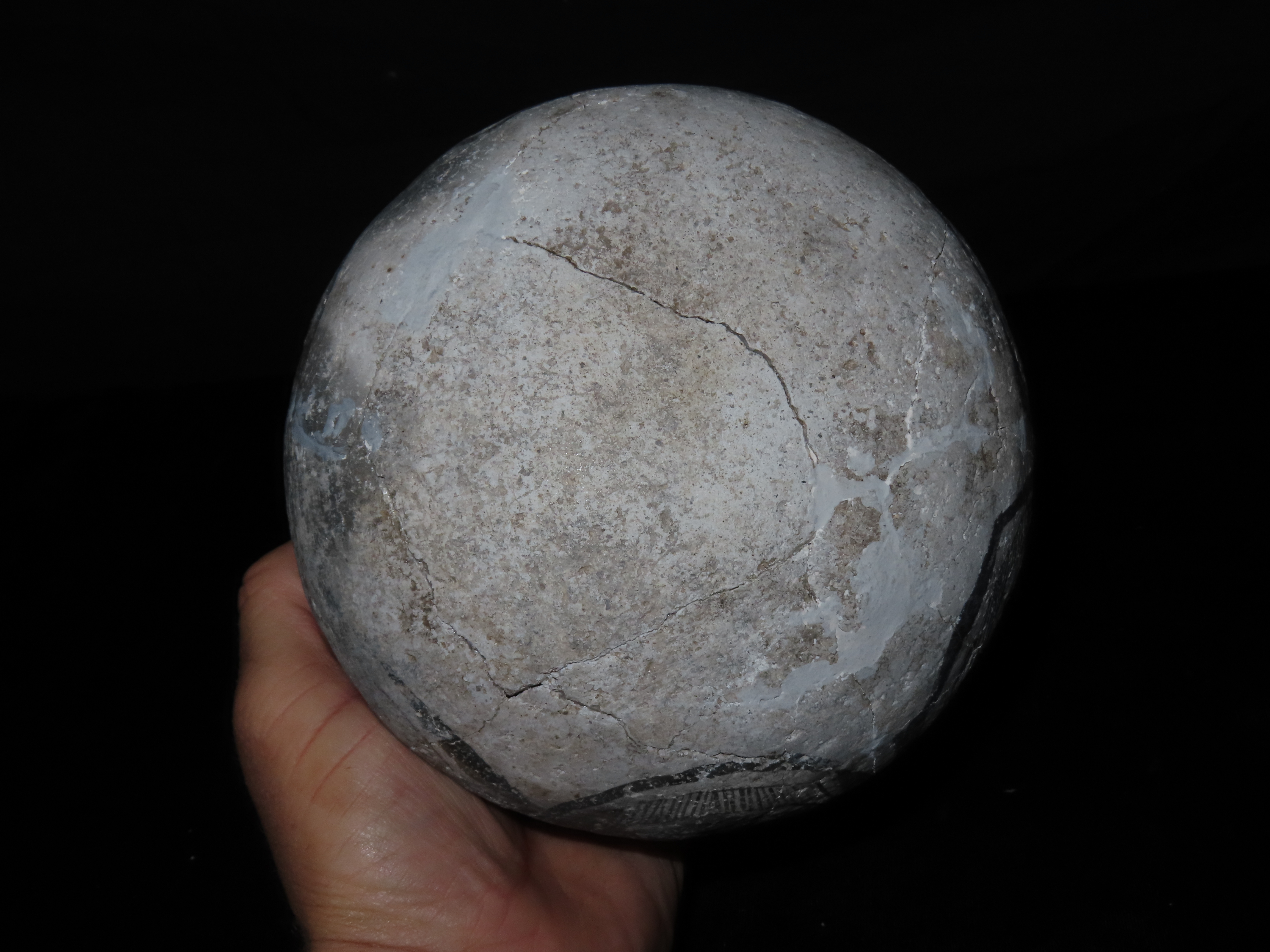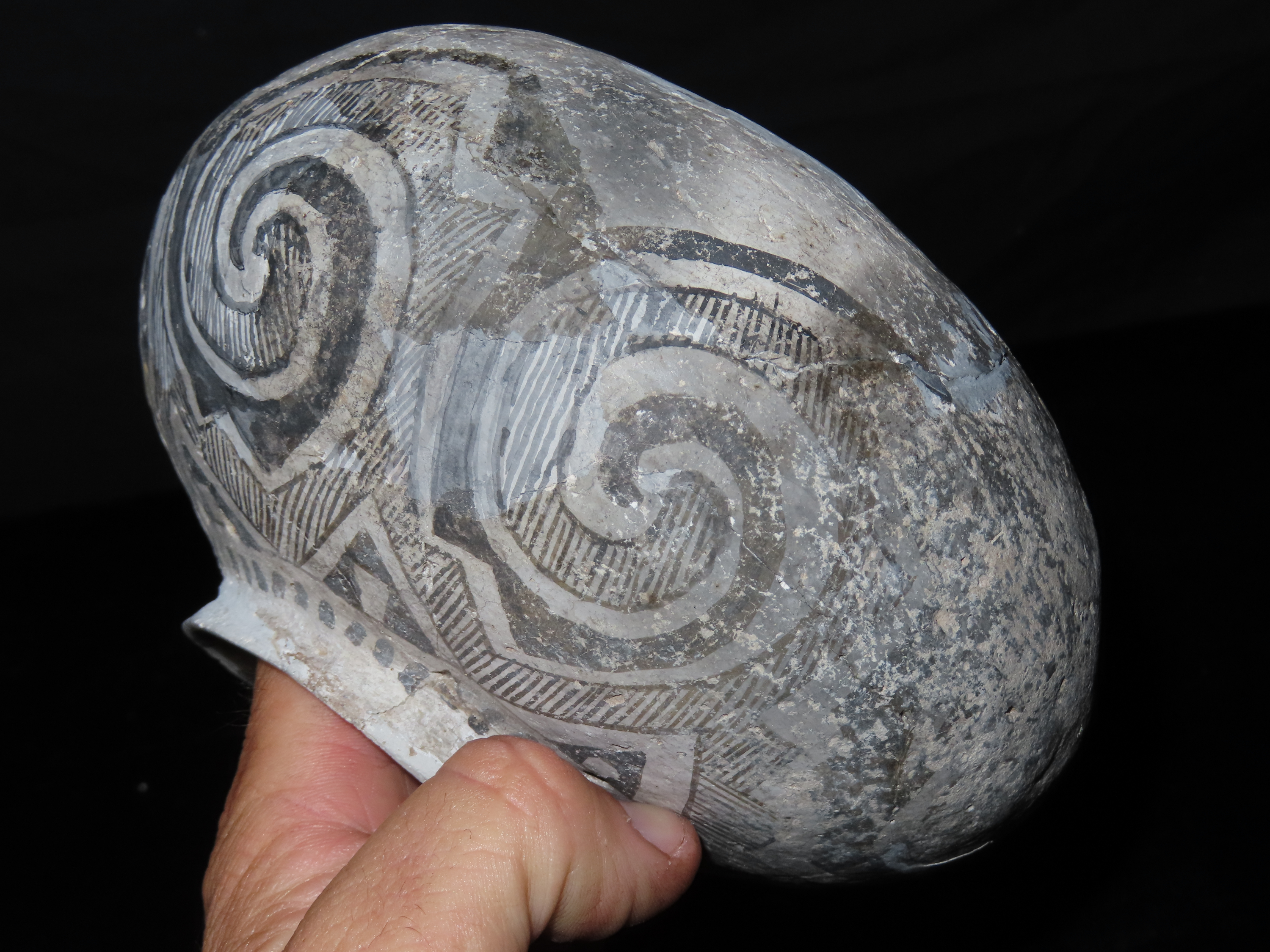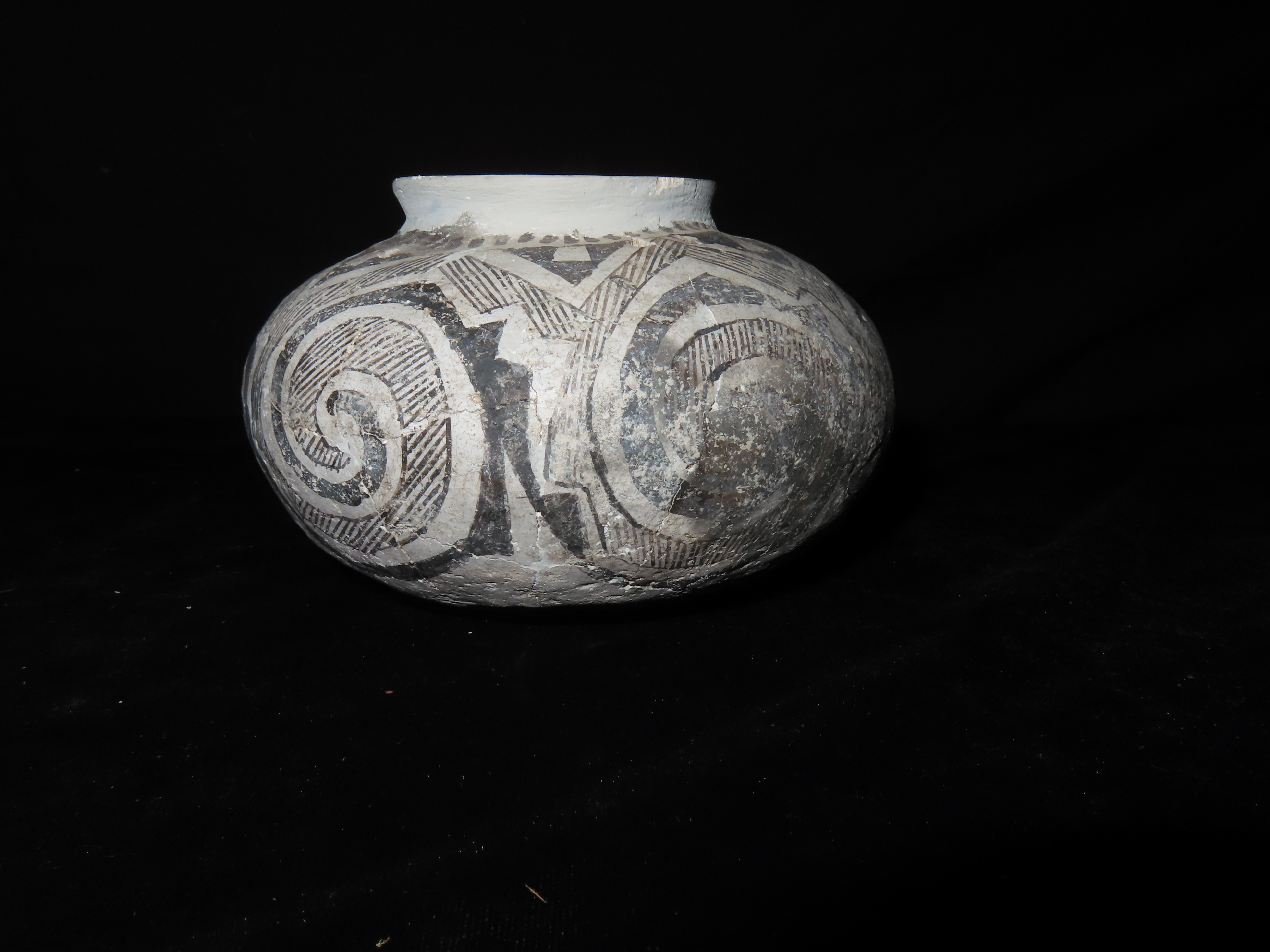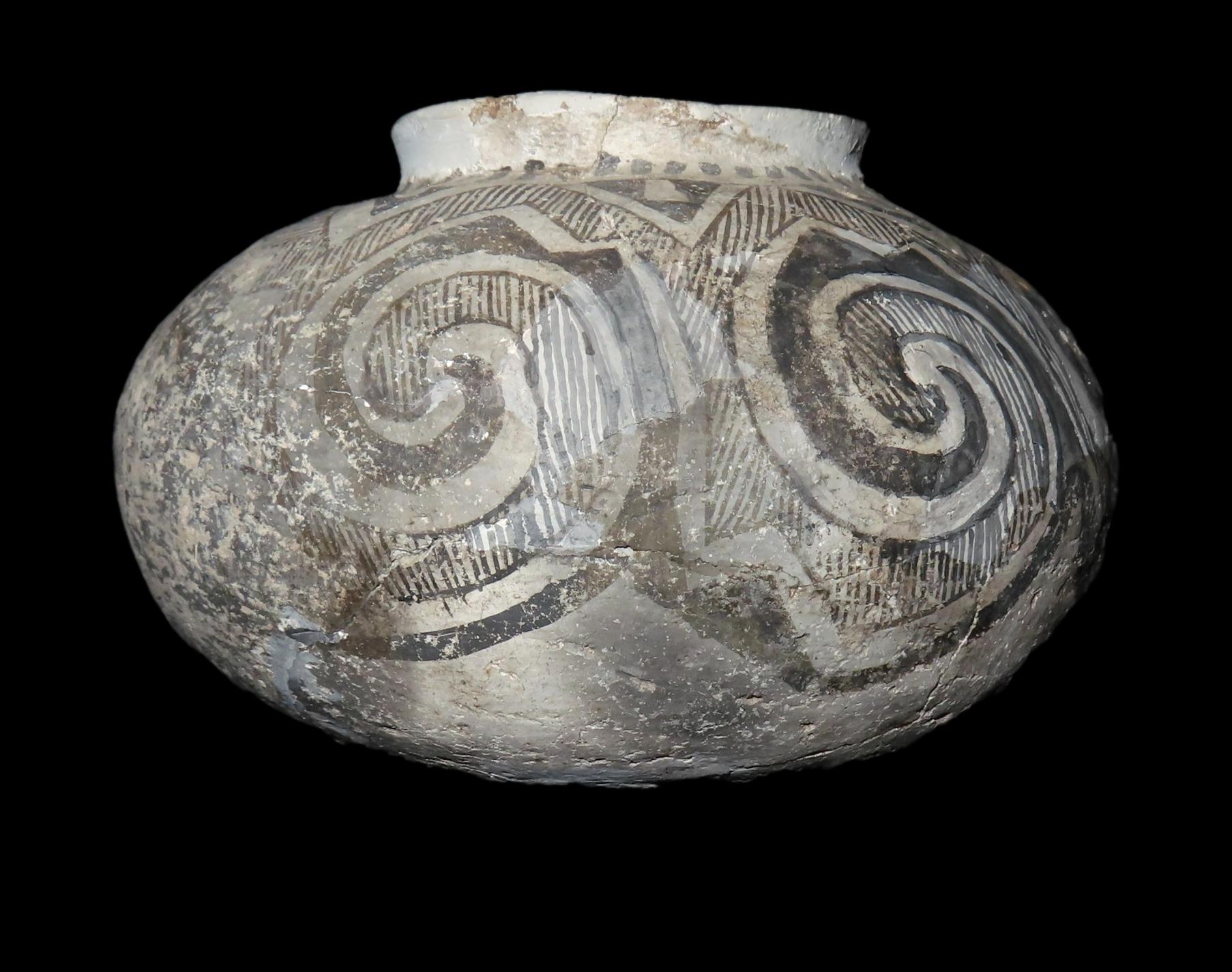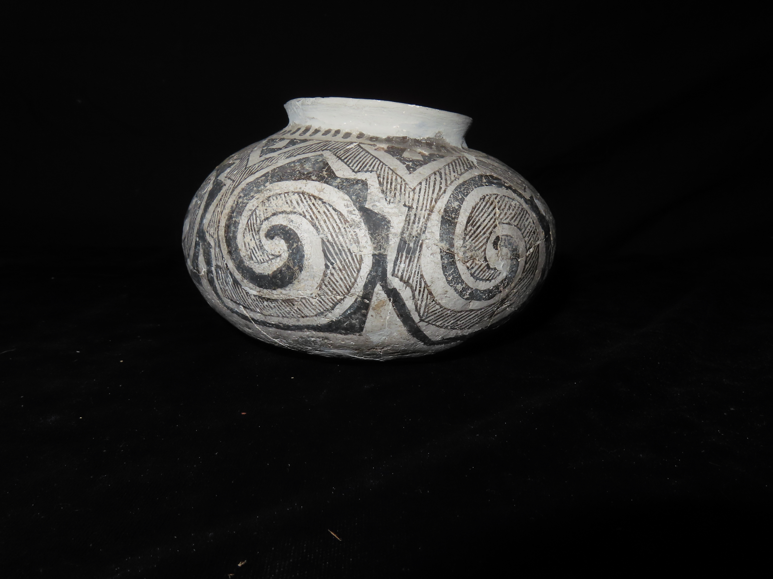 6″ Dia Black and White Pottery Vessel, AZ, Ex Randall May Collection