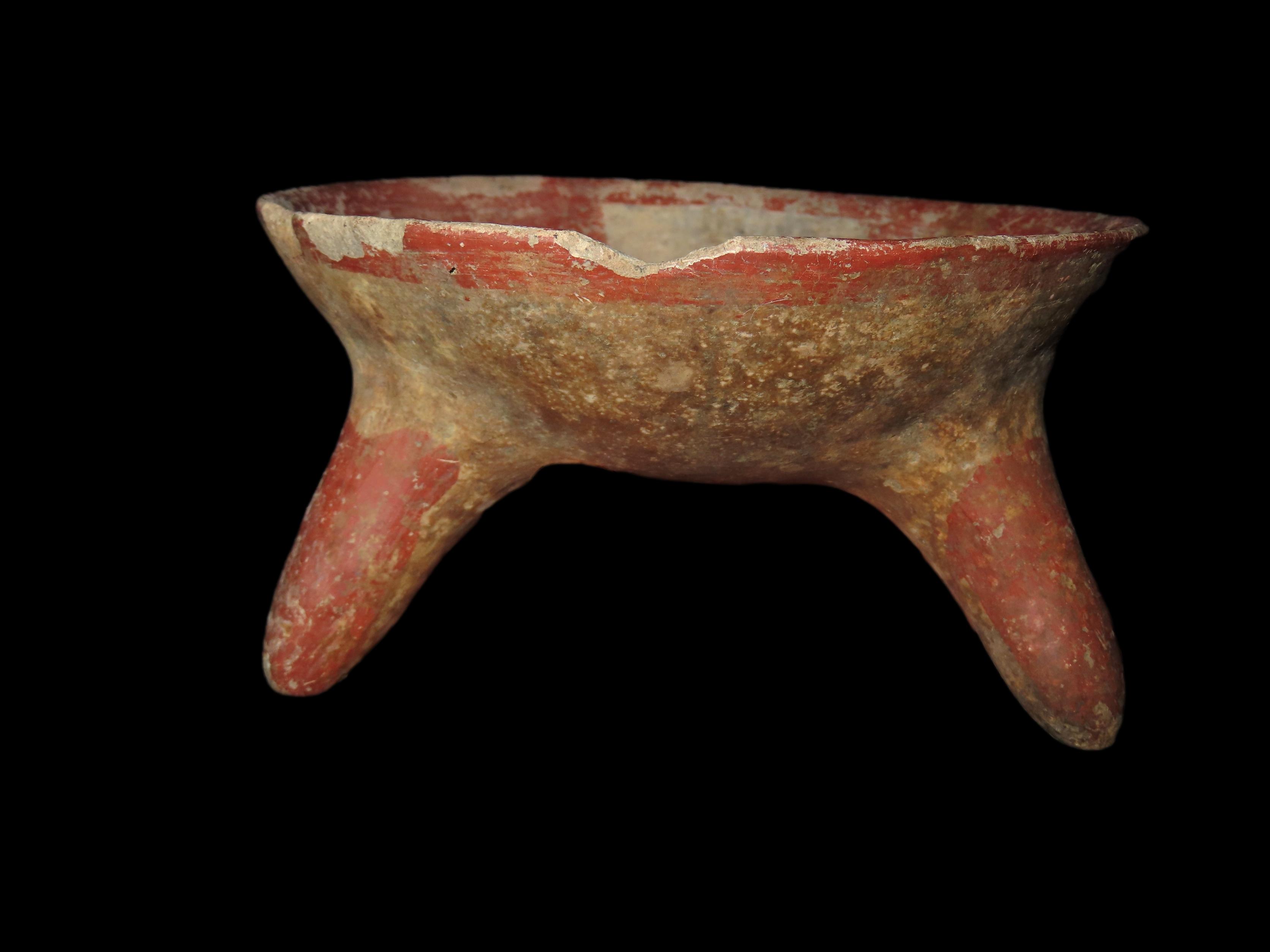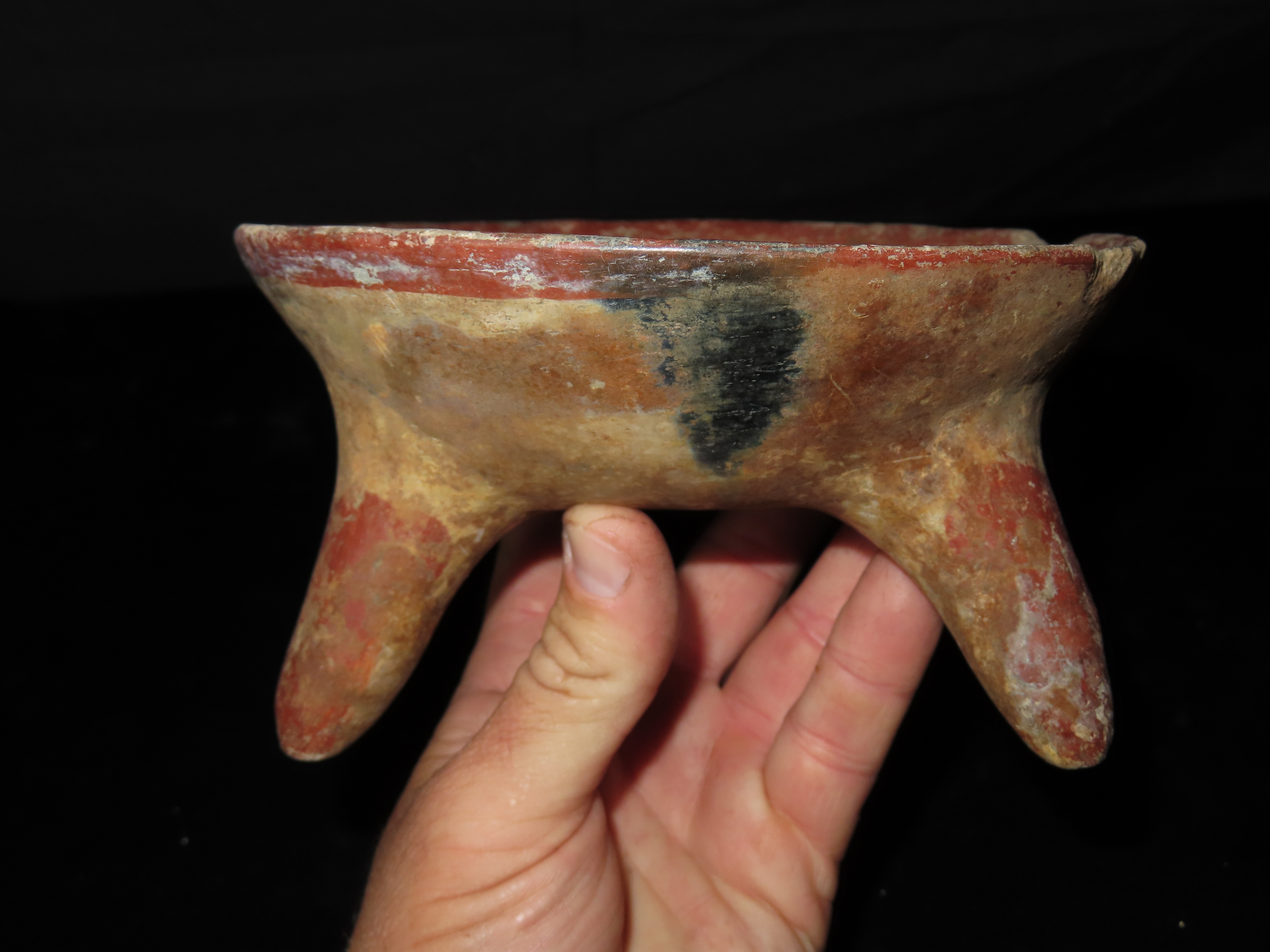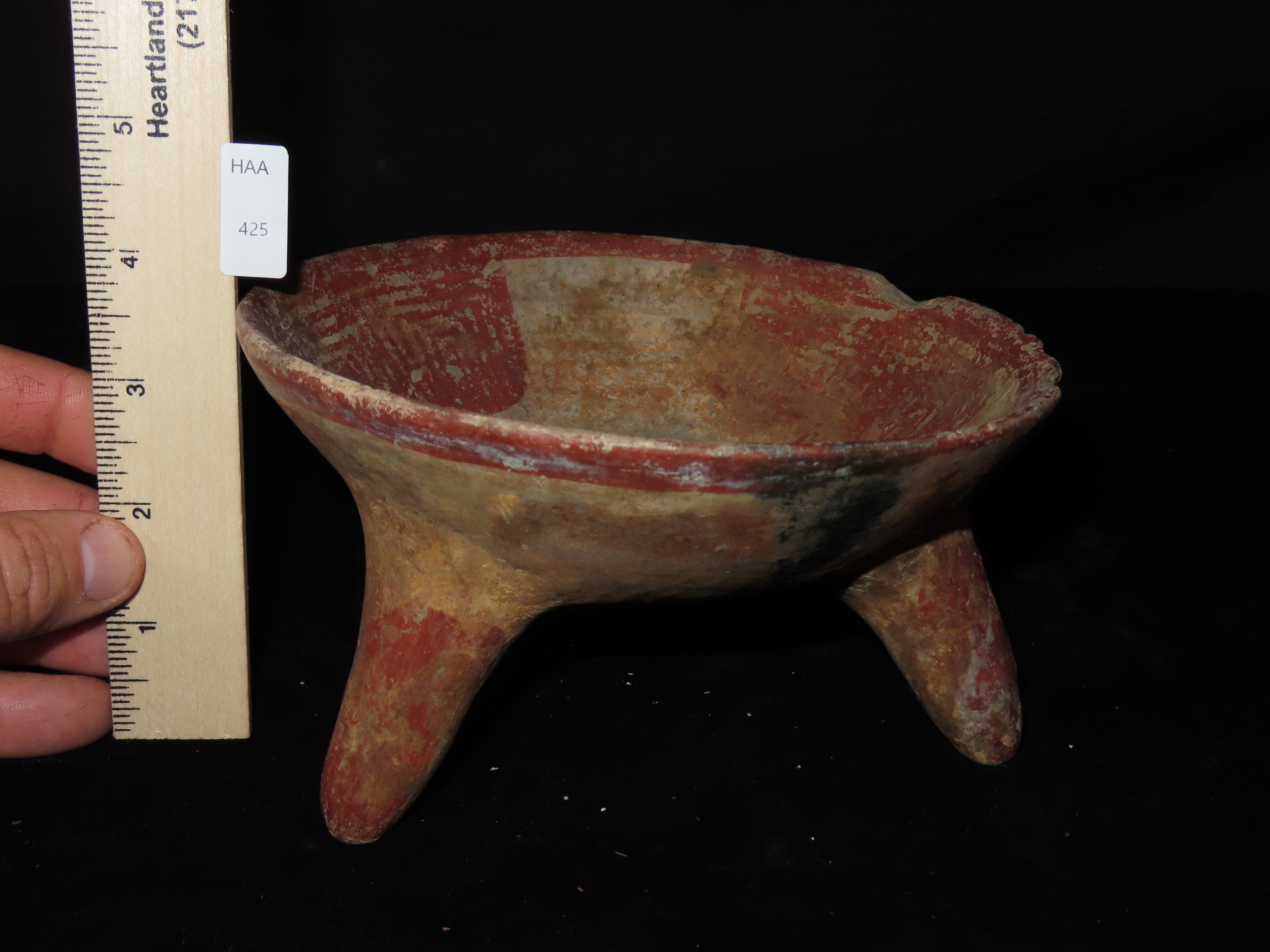 6.1/2″ Dia Tri Leg Pre Columbian Pottery Vessel, Ex Randall May Collection
