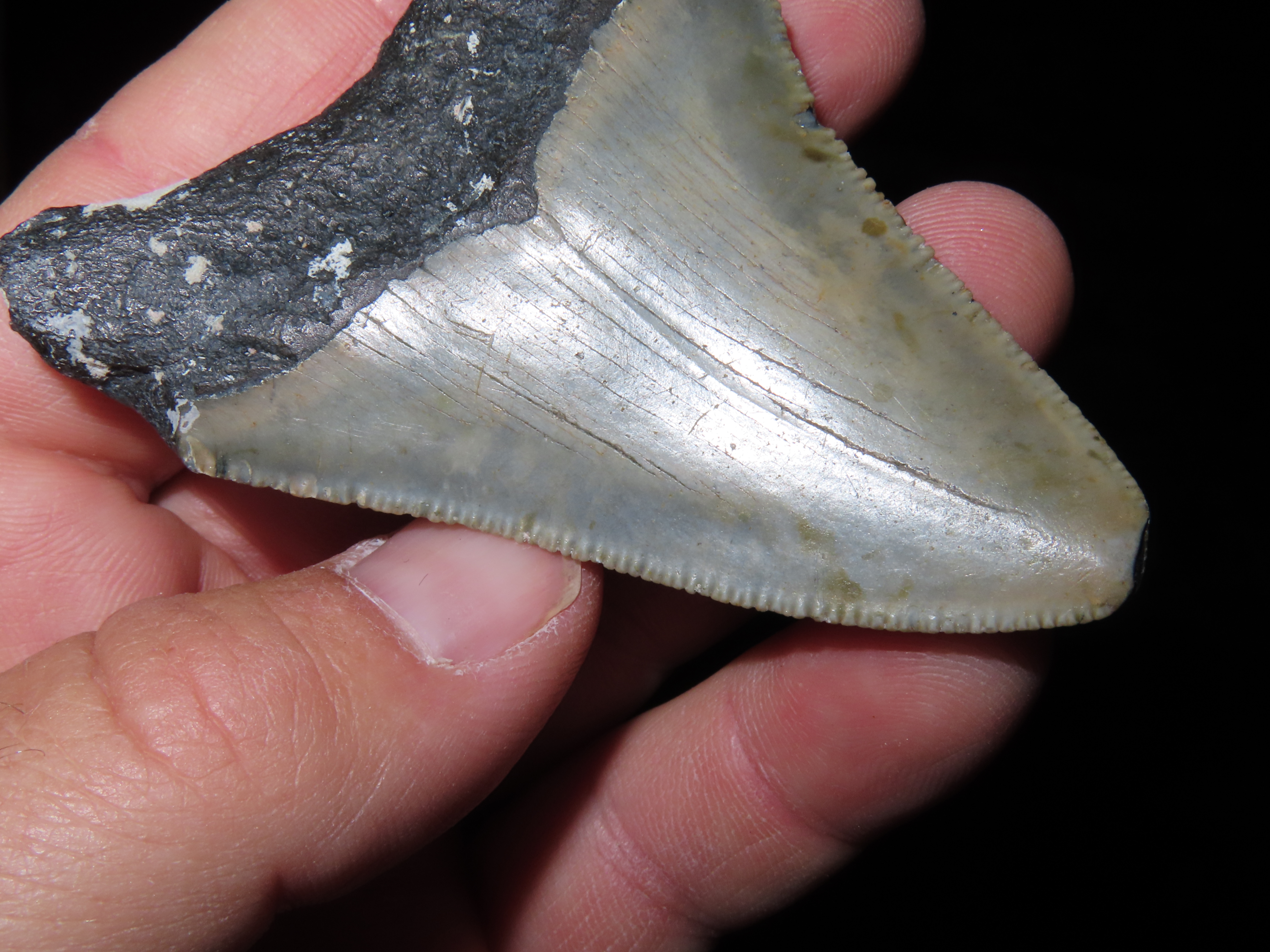 3″ Fossilized Megalodon Shark Tooth, found in South Carolina
