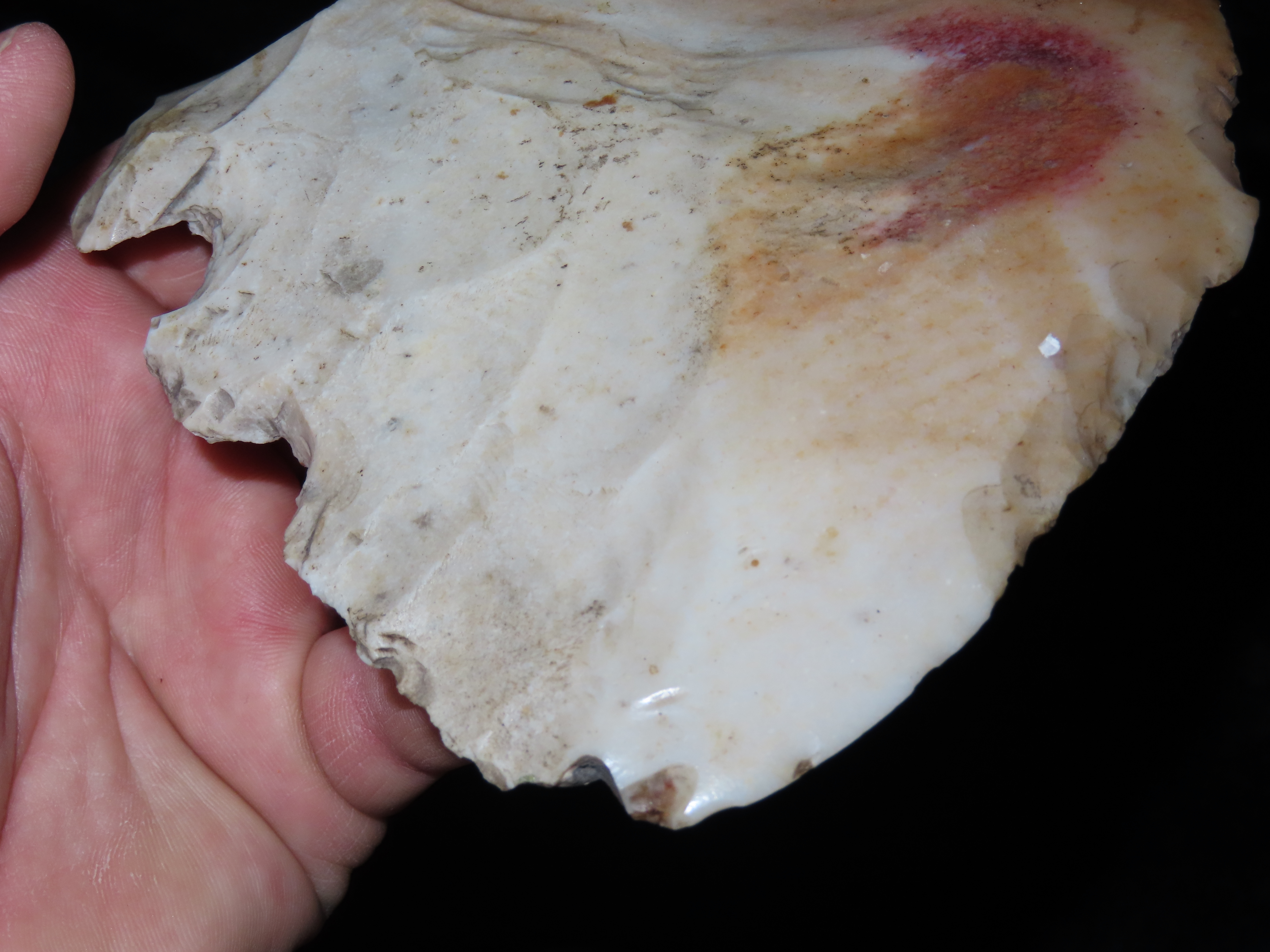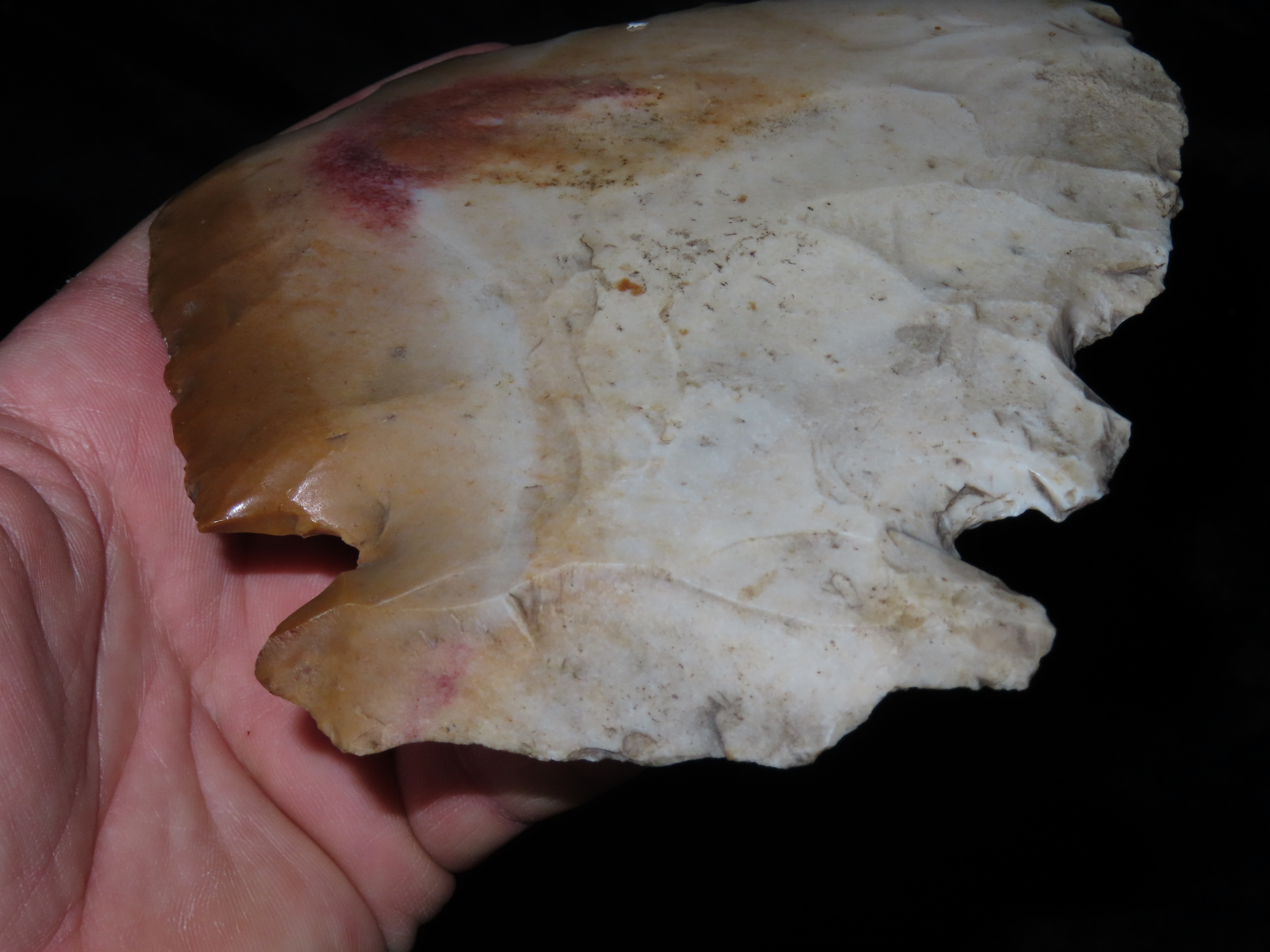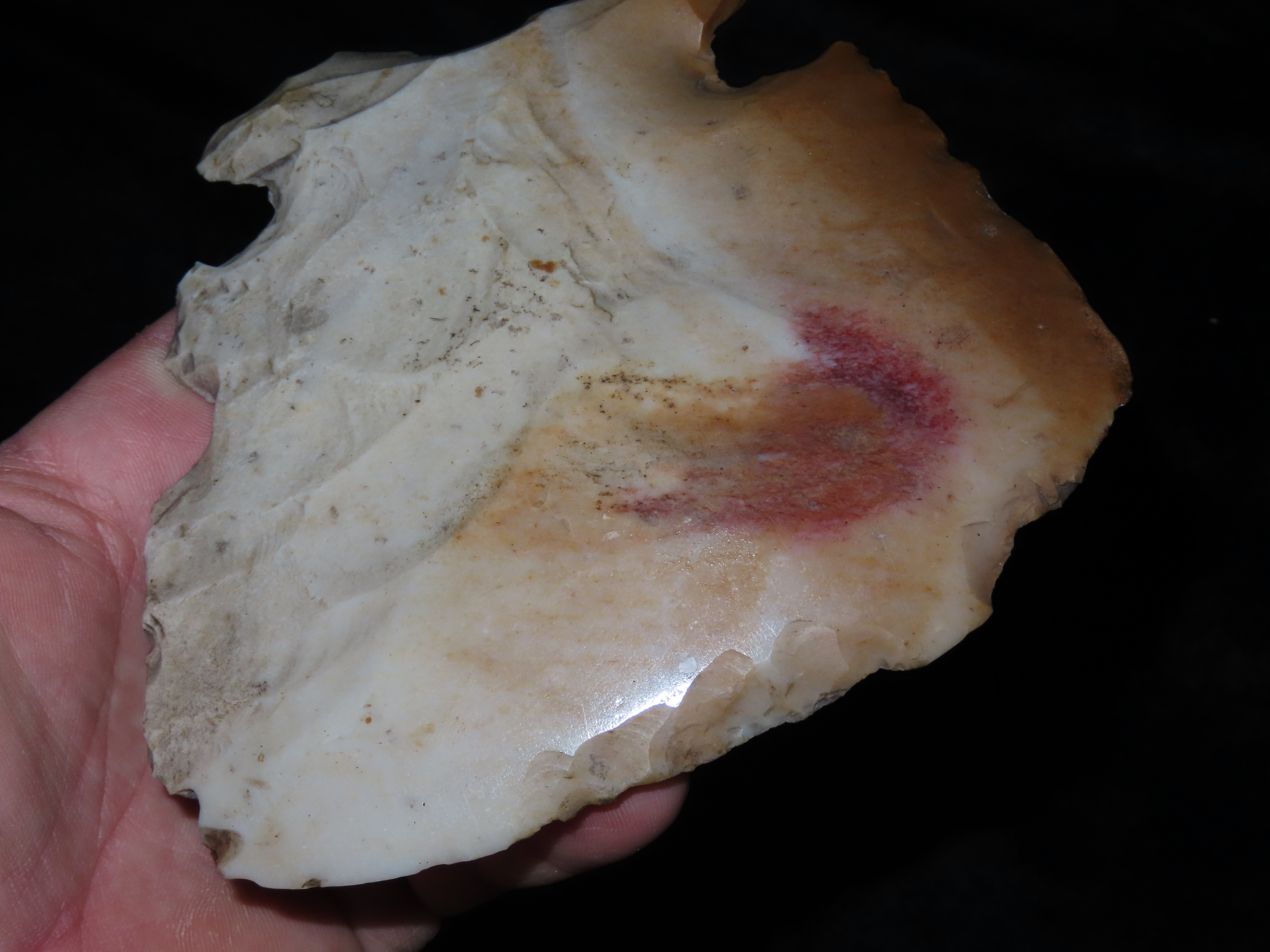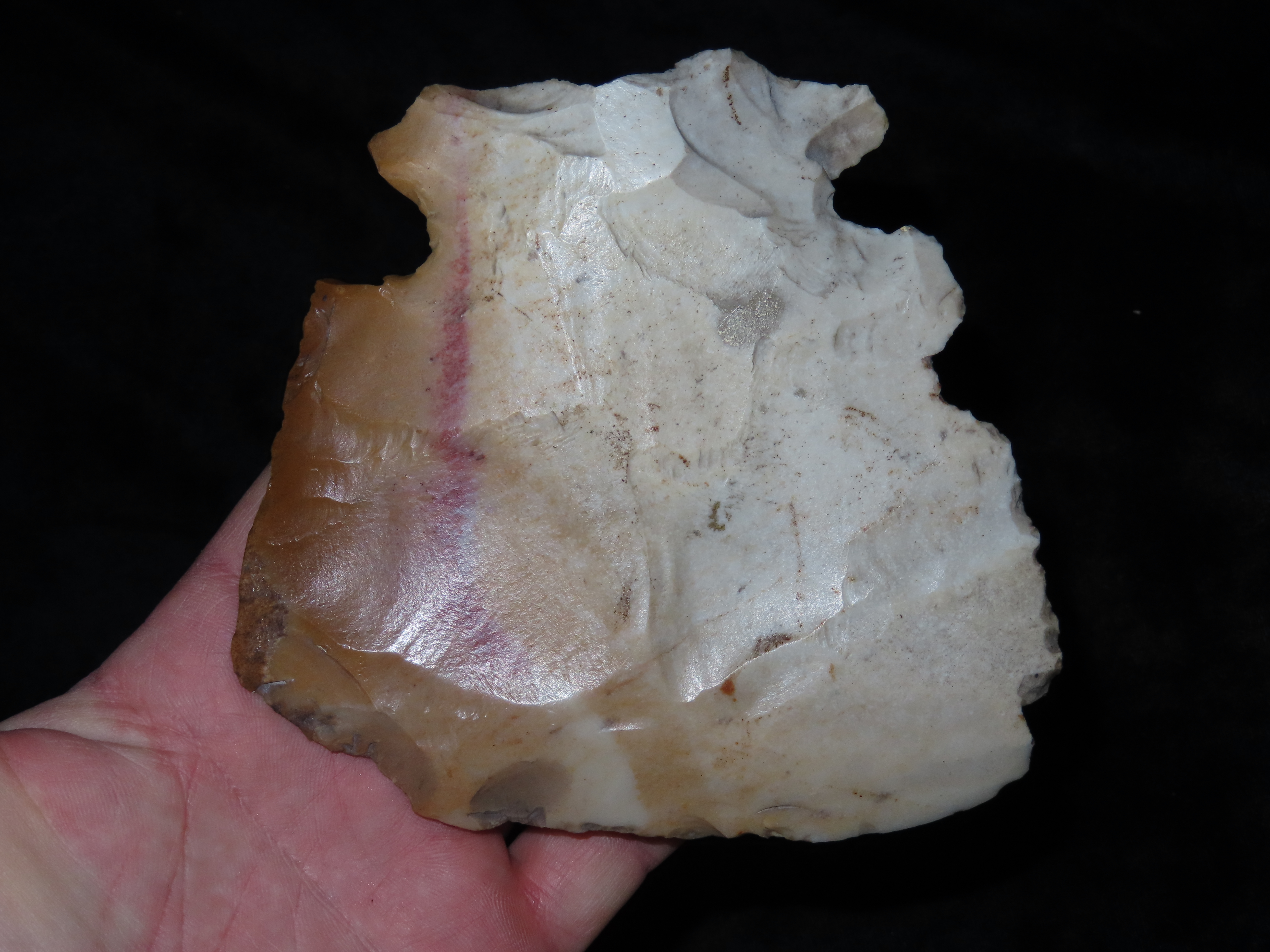 5 1/8″ Hoe/Spade, Notched, Excellent Wear Polish, found in Marceline Missouri, Ex Kussman Collection