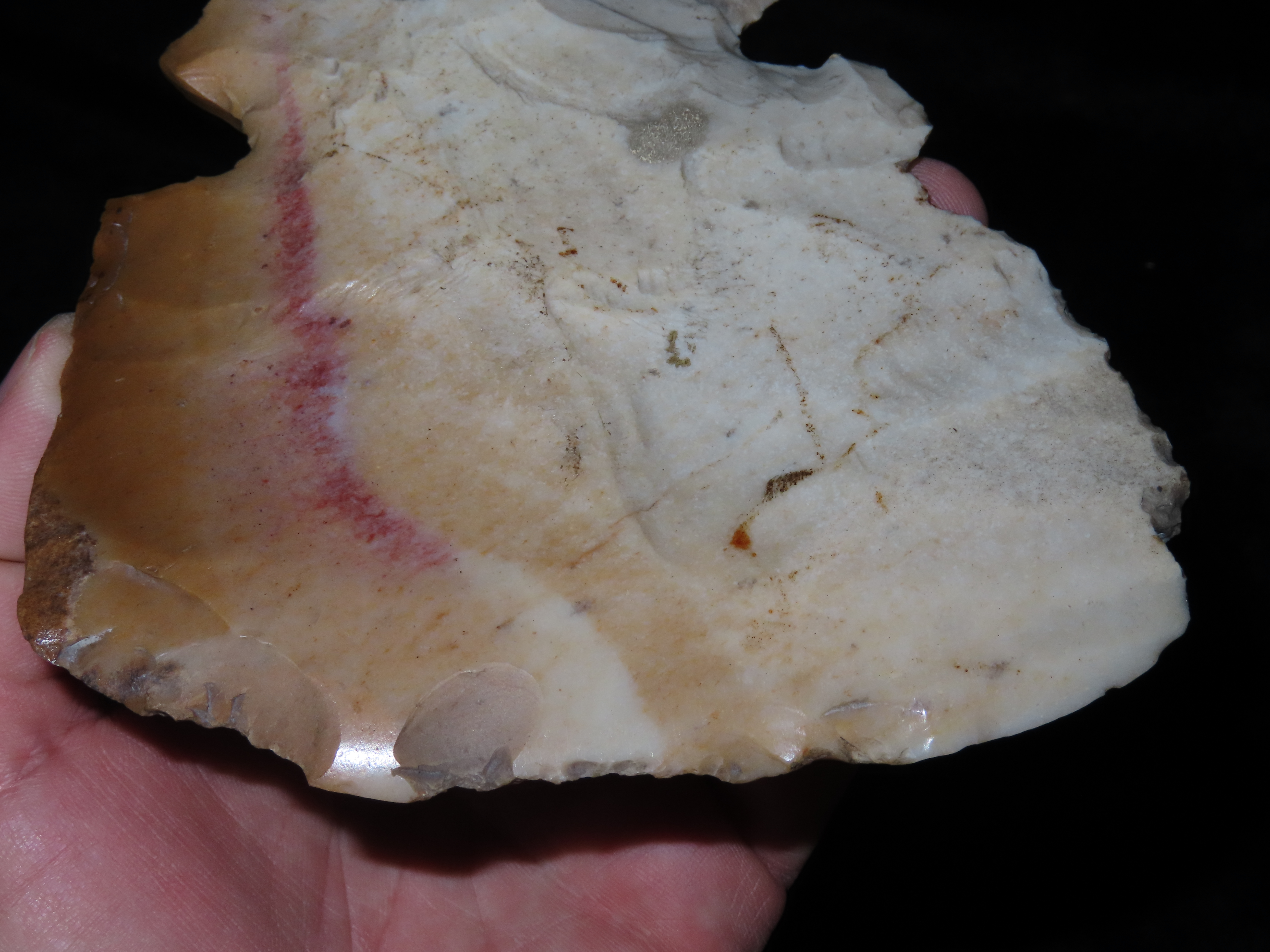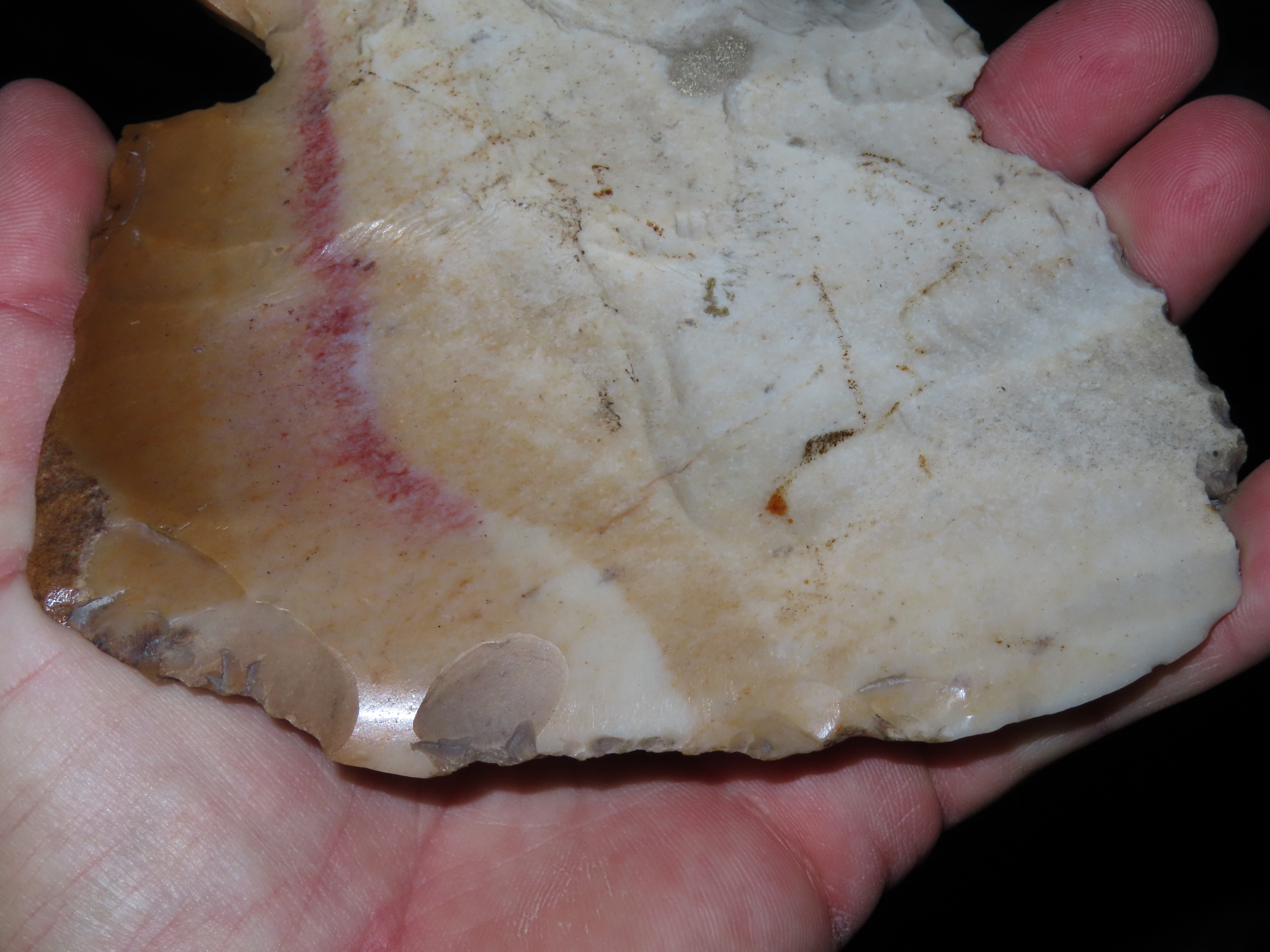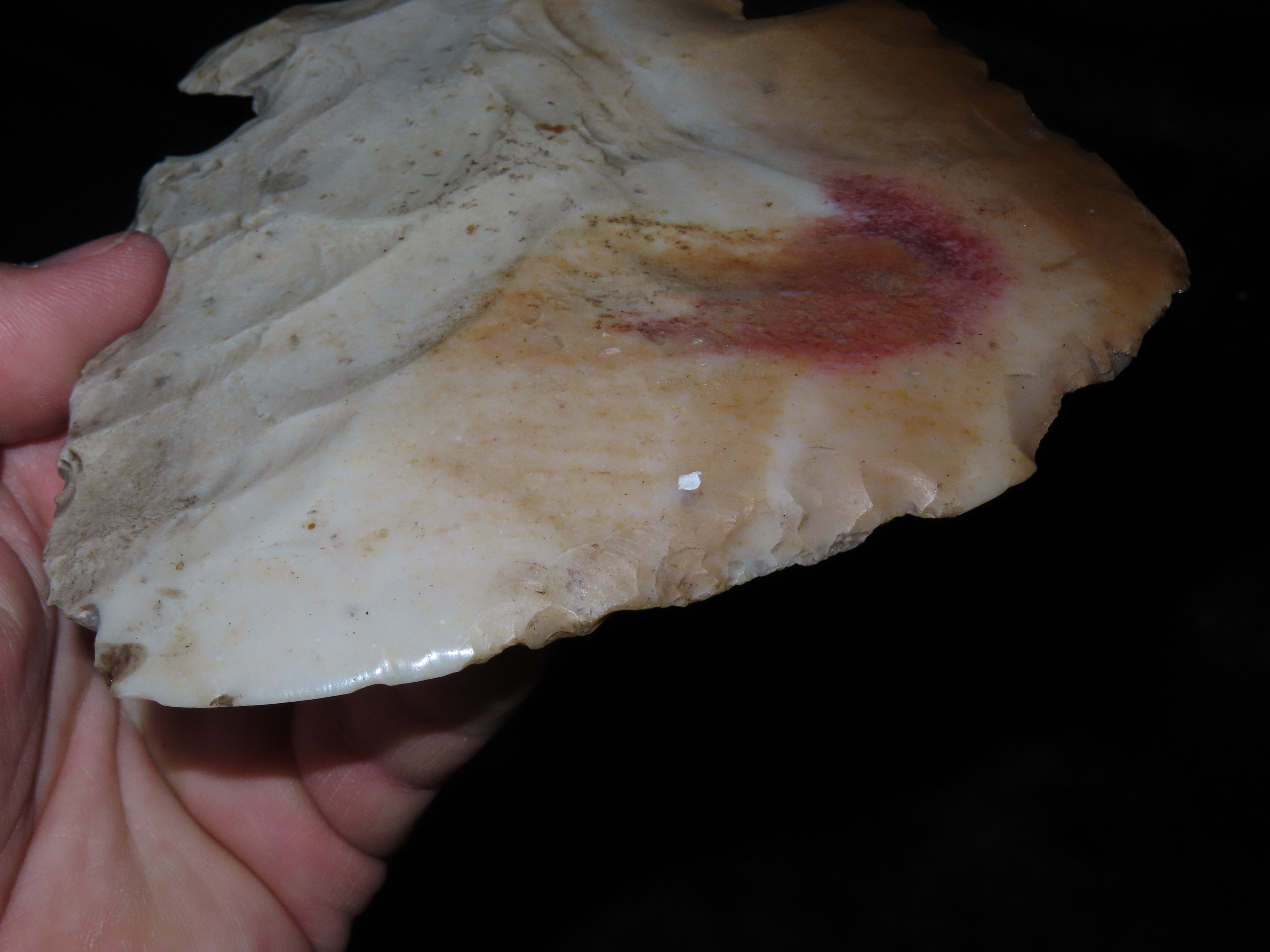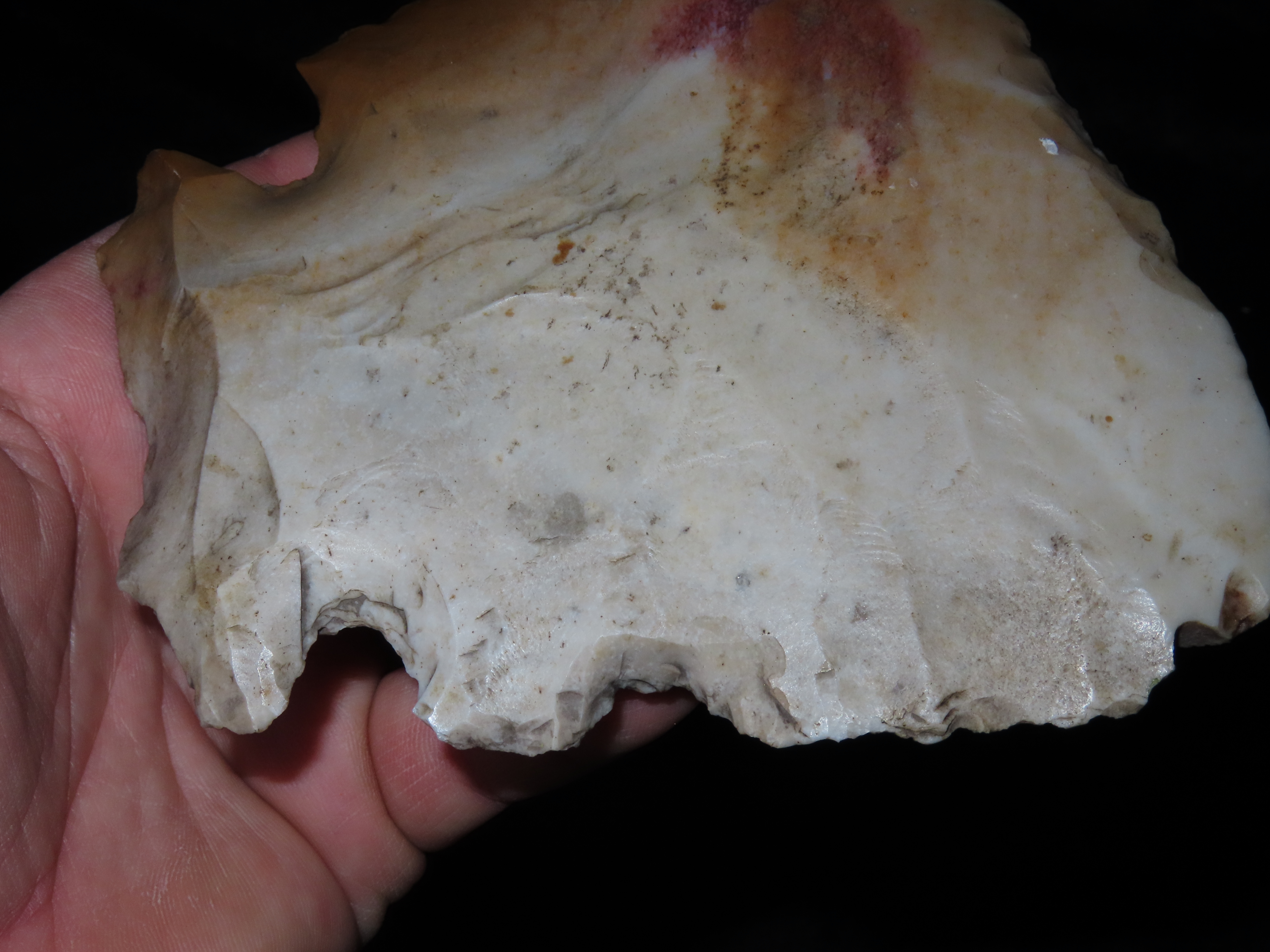 5 1/8″ Hoe/Spade, Notched, Excellent Wear Polish, found in Marceline Missouri, Ex Kussman Collection