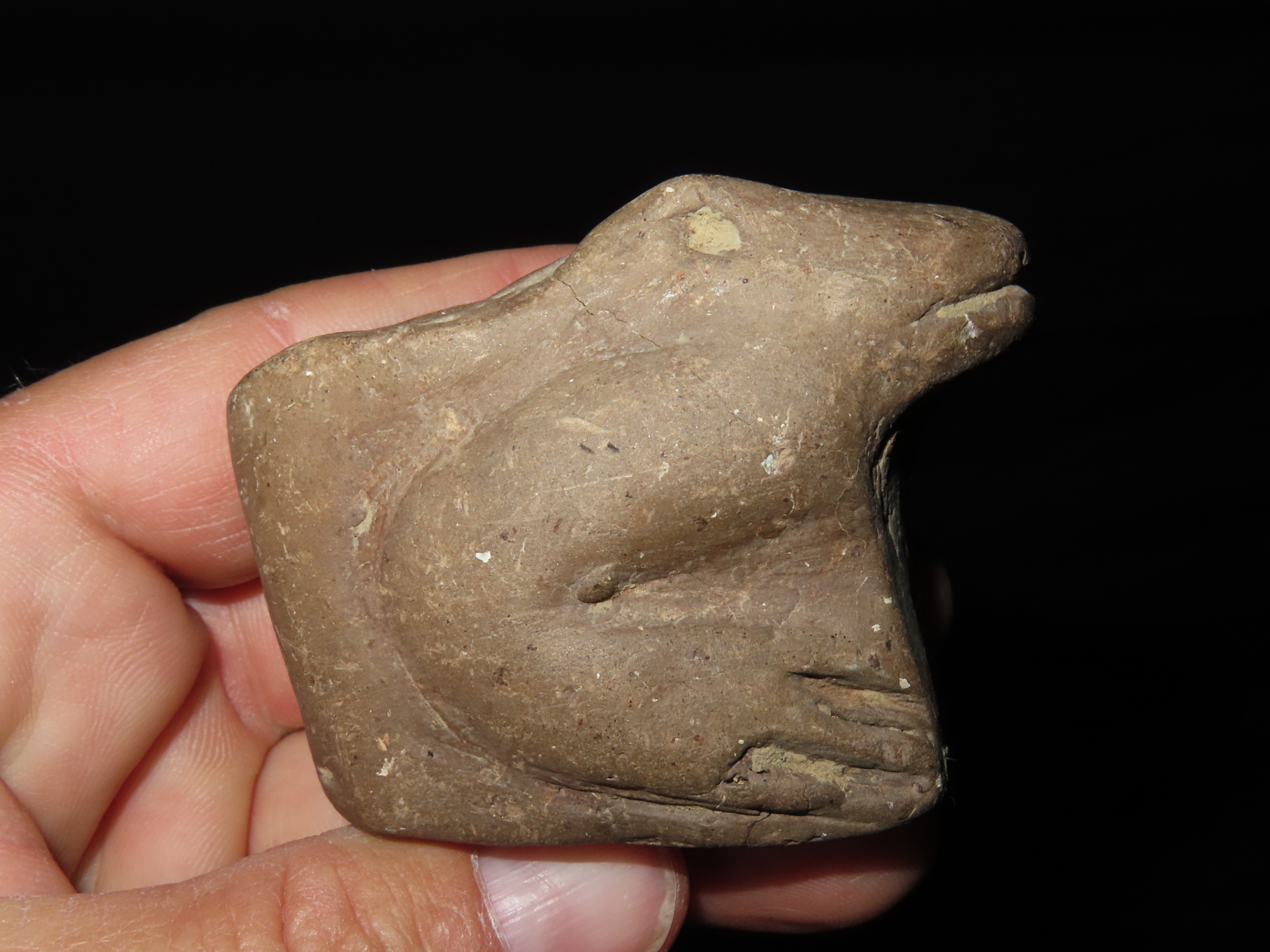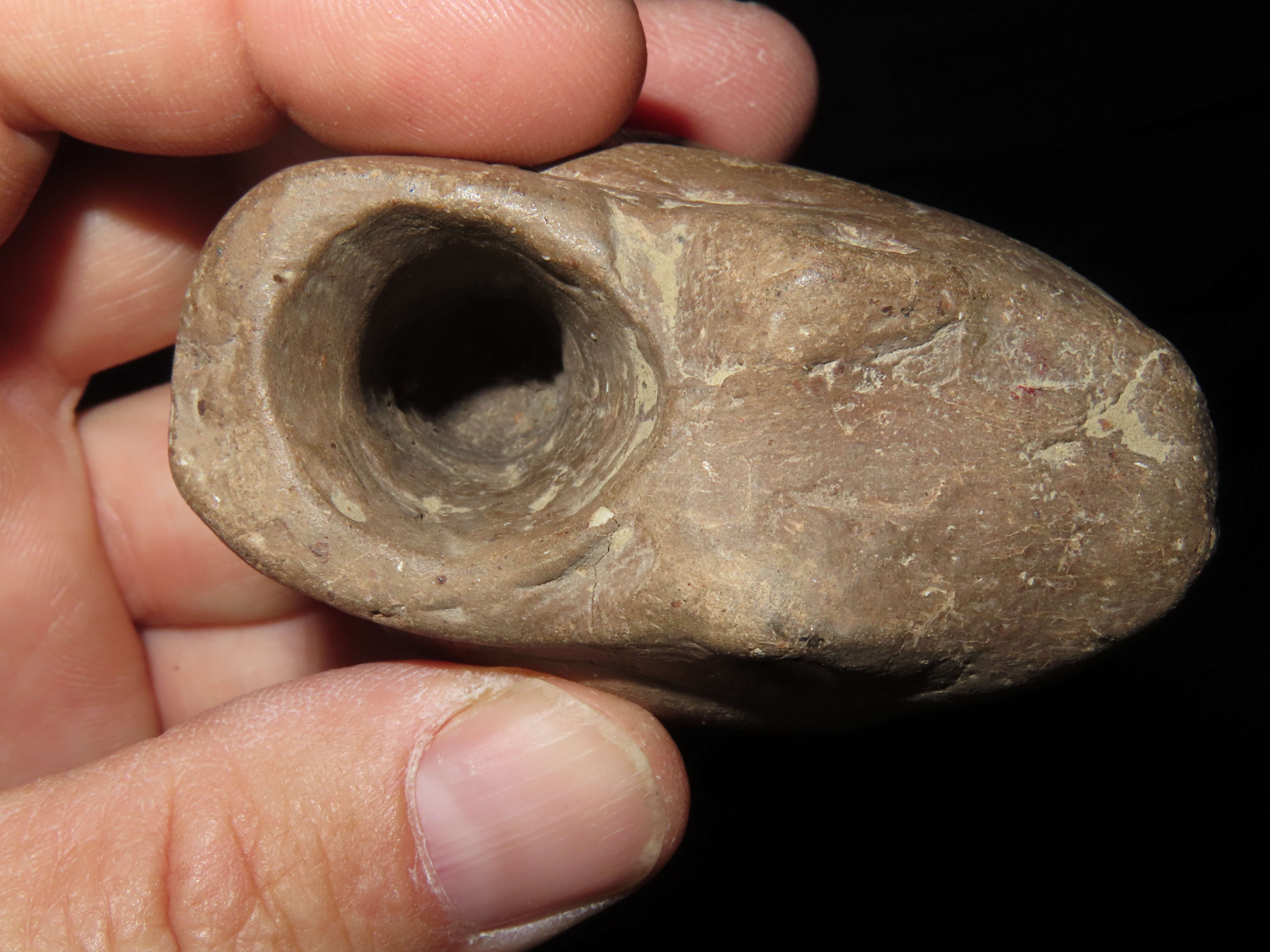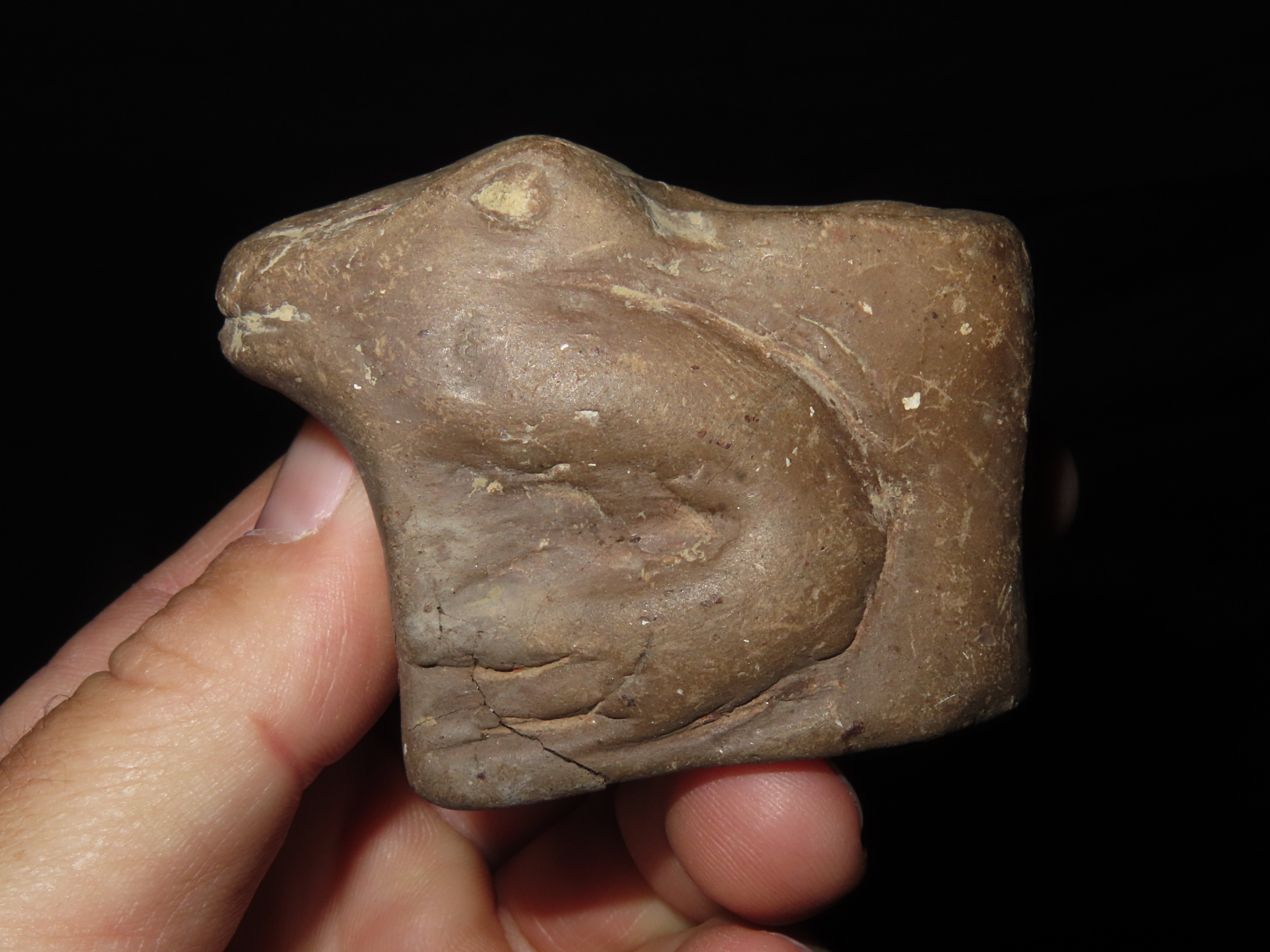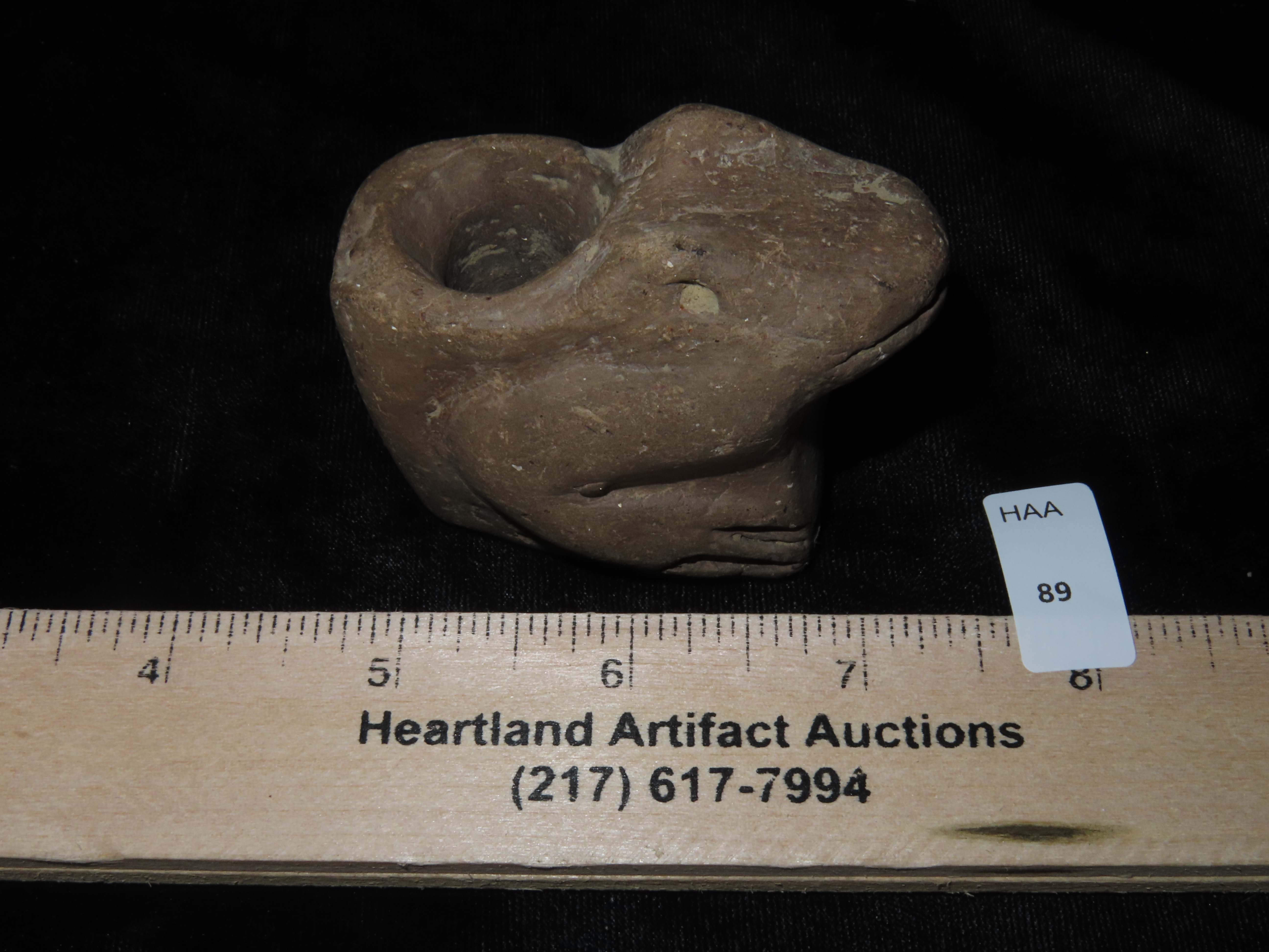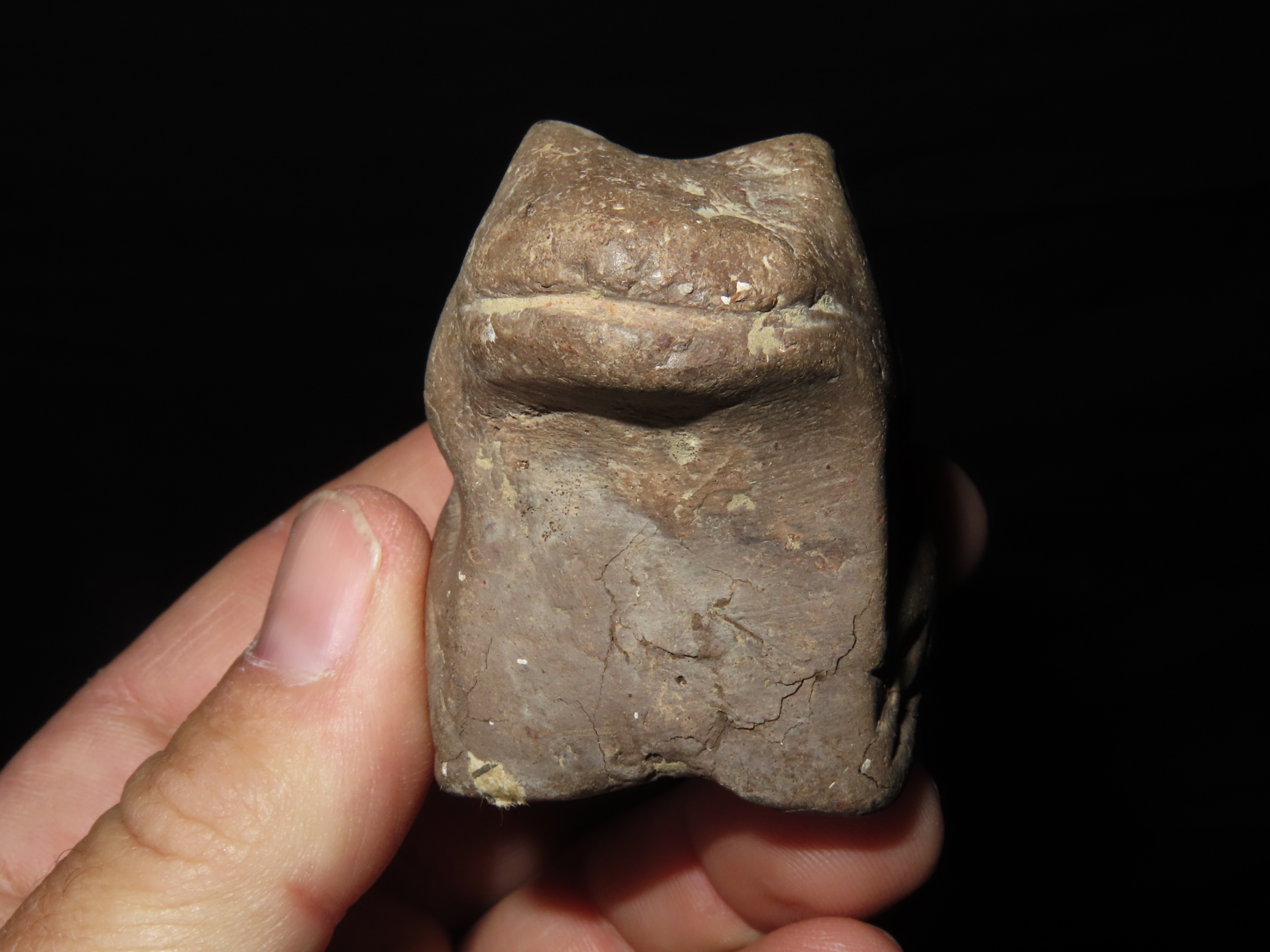2 5/8″ Frog Effigy Pottery Pipe, found in Dekalb Co., Illinois
