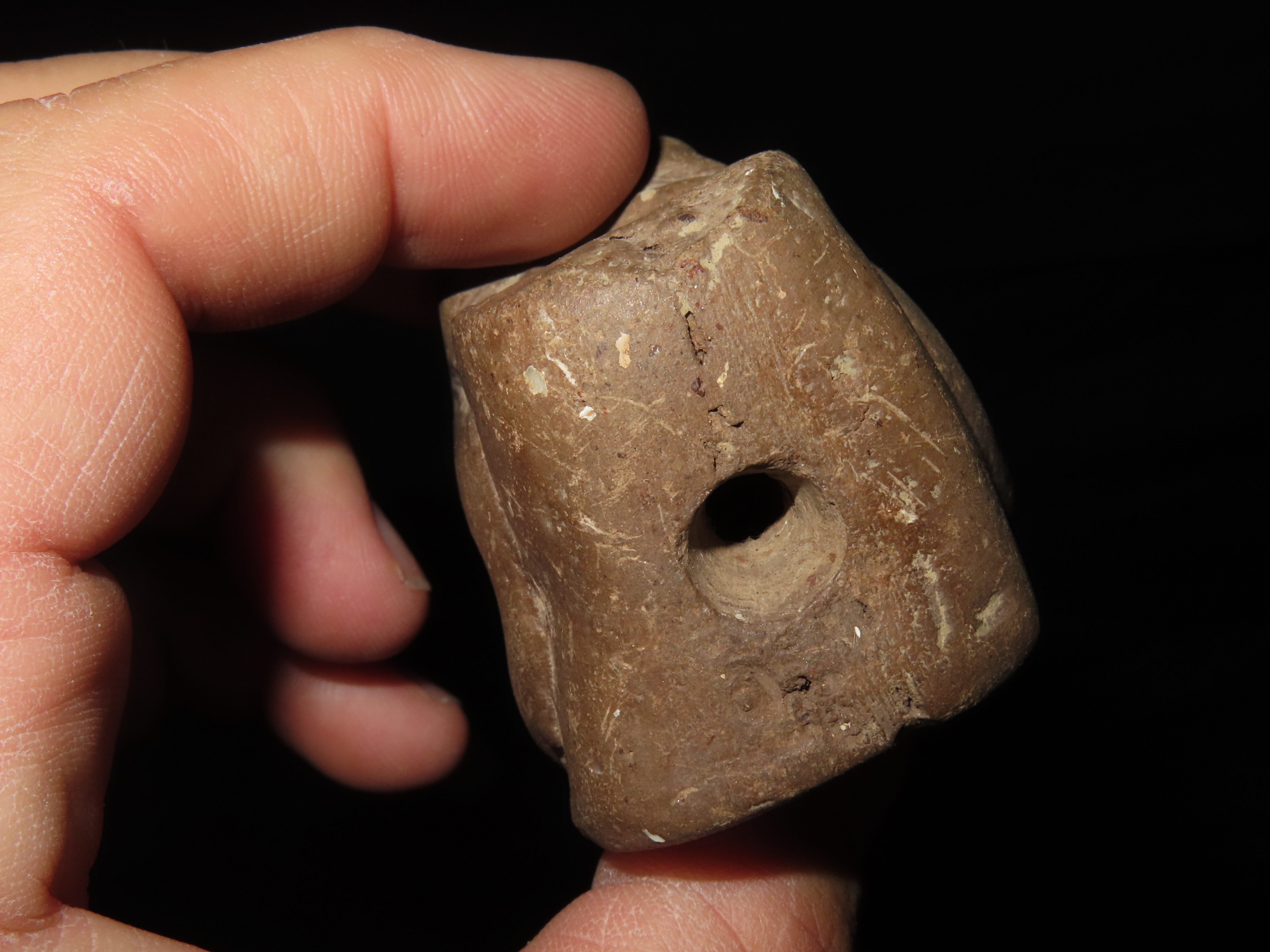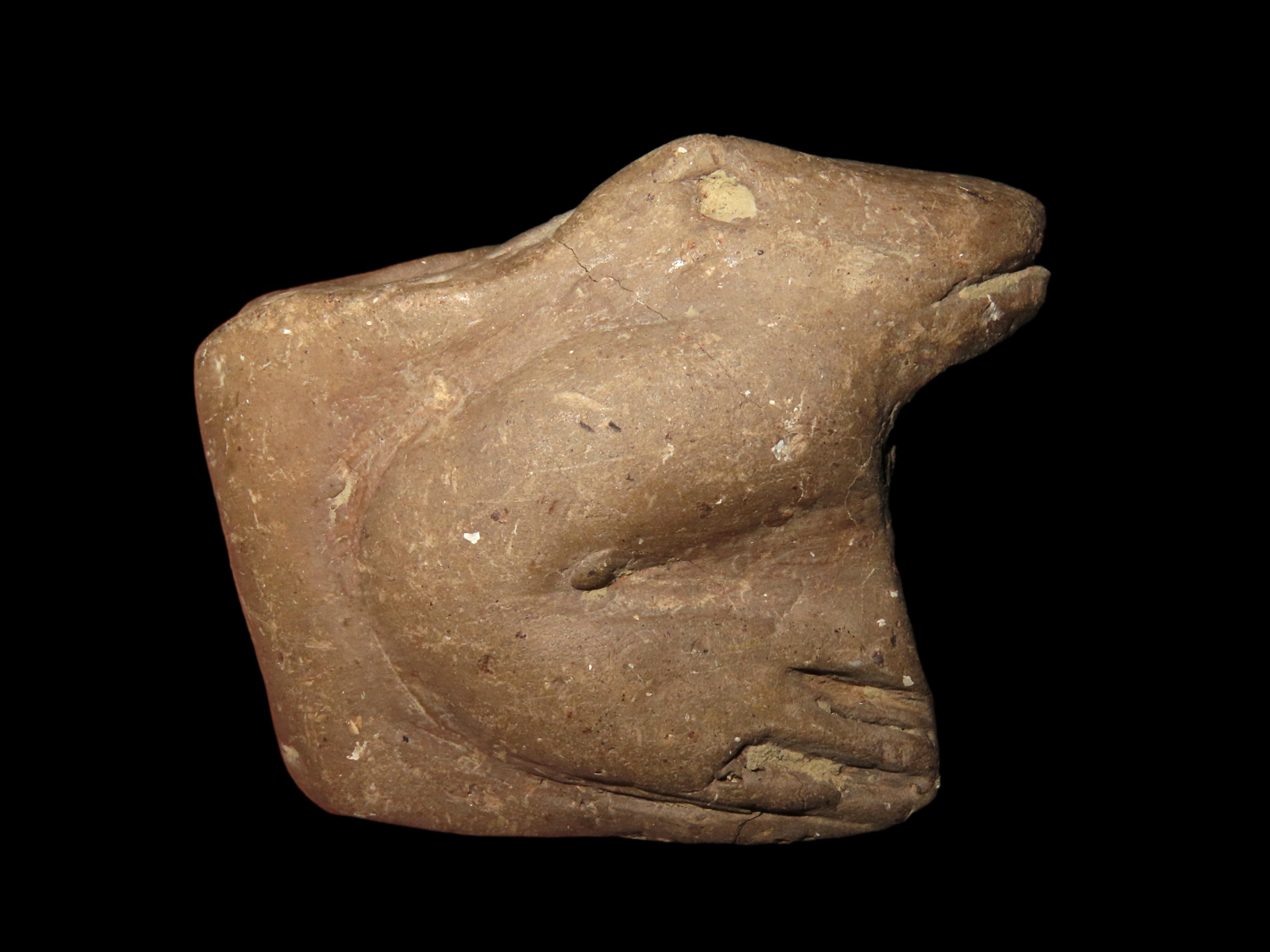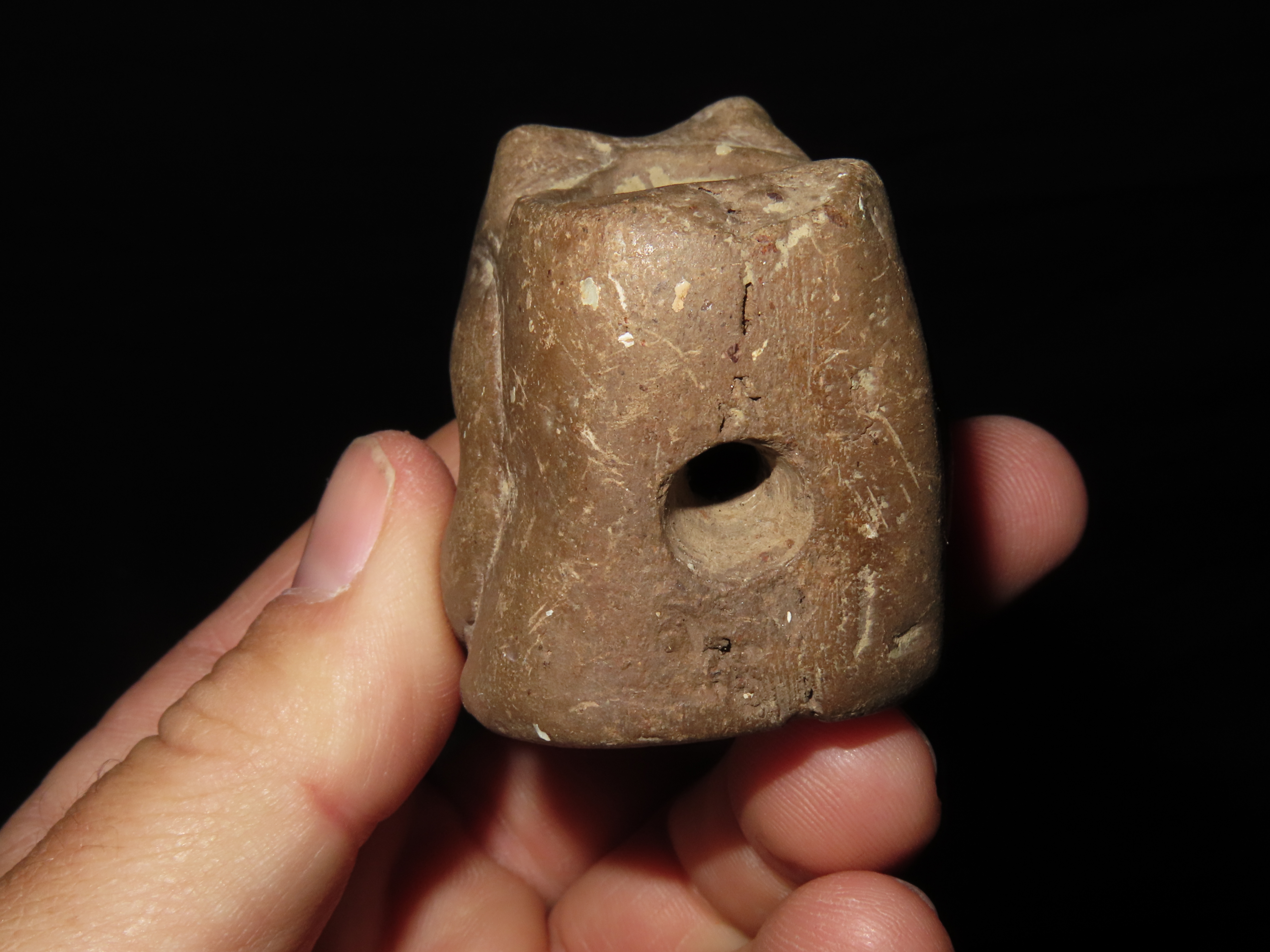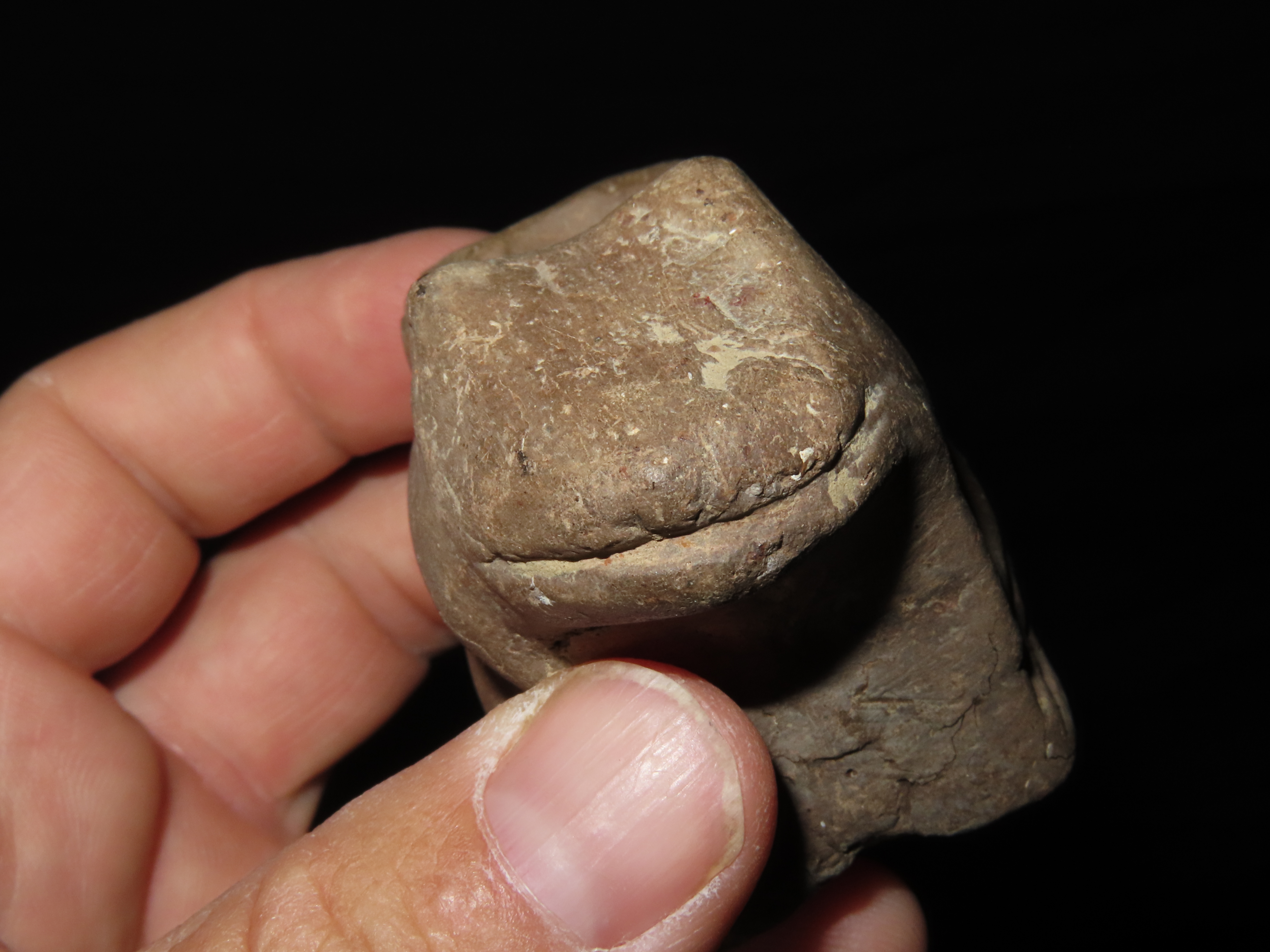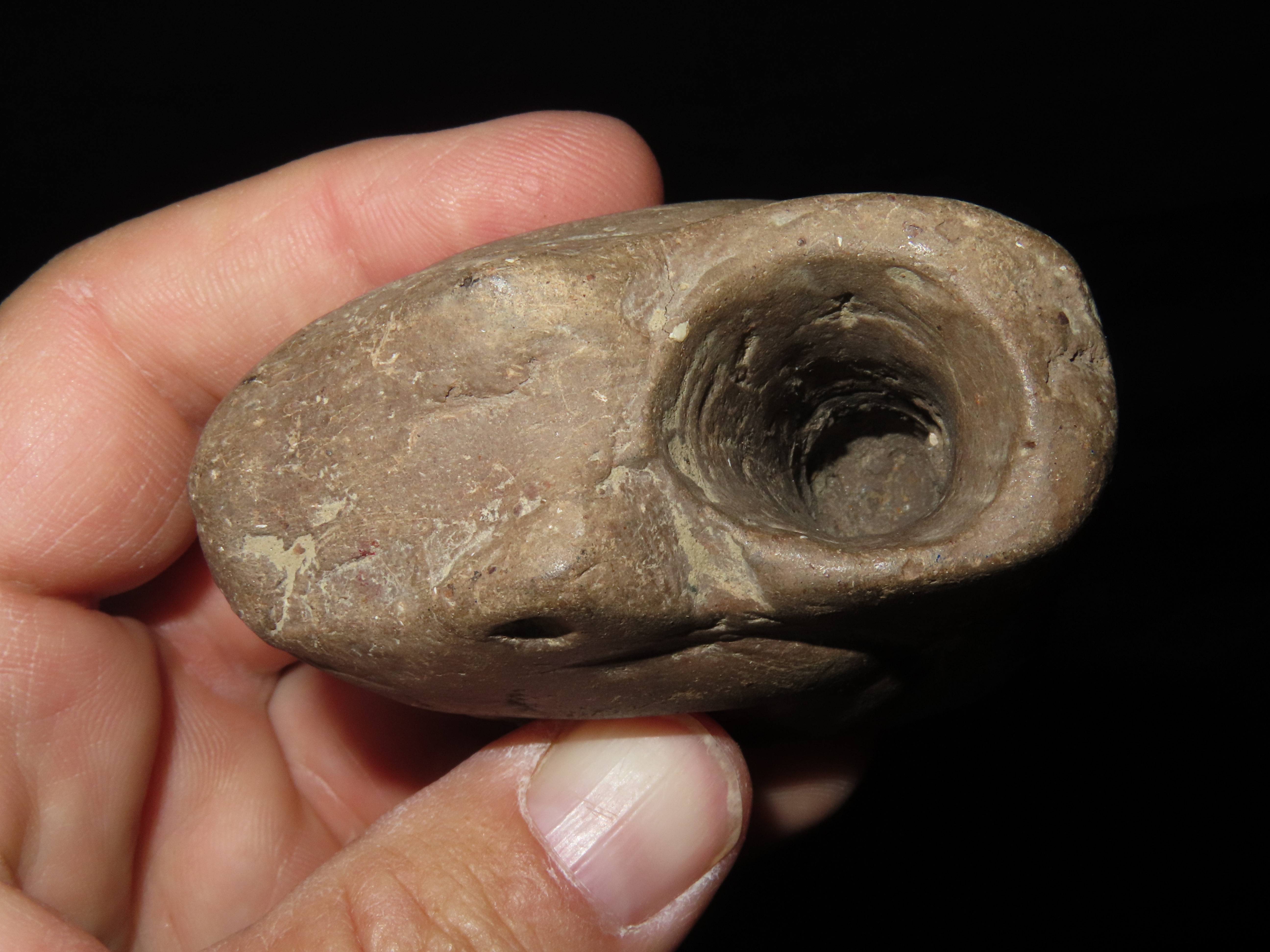 2 5/8″ Frog Effigy Pottery Pipe, found in Dekalb Co., Illinois