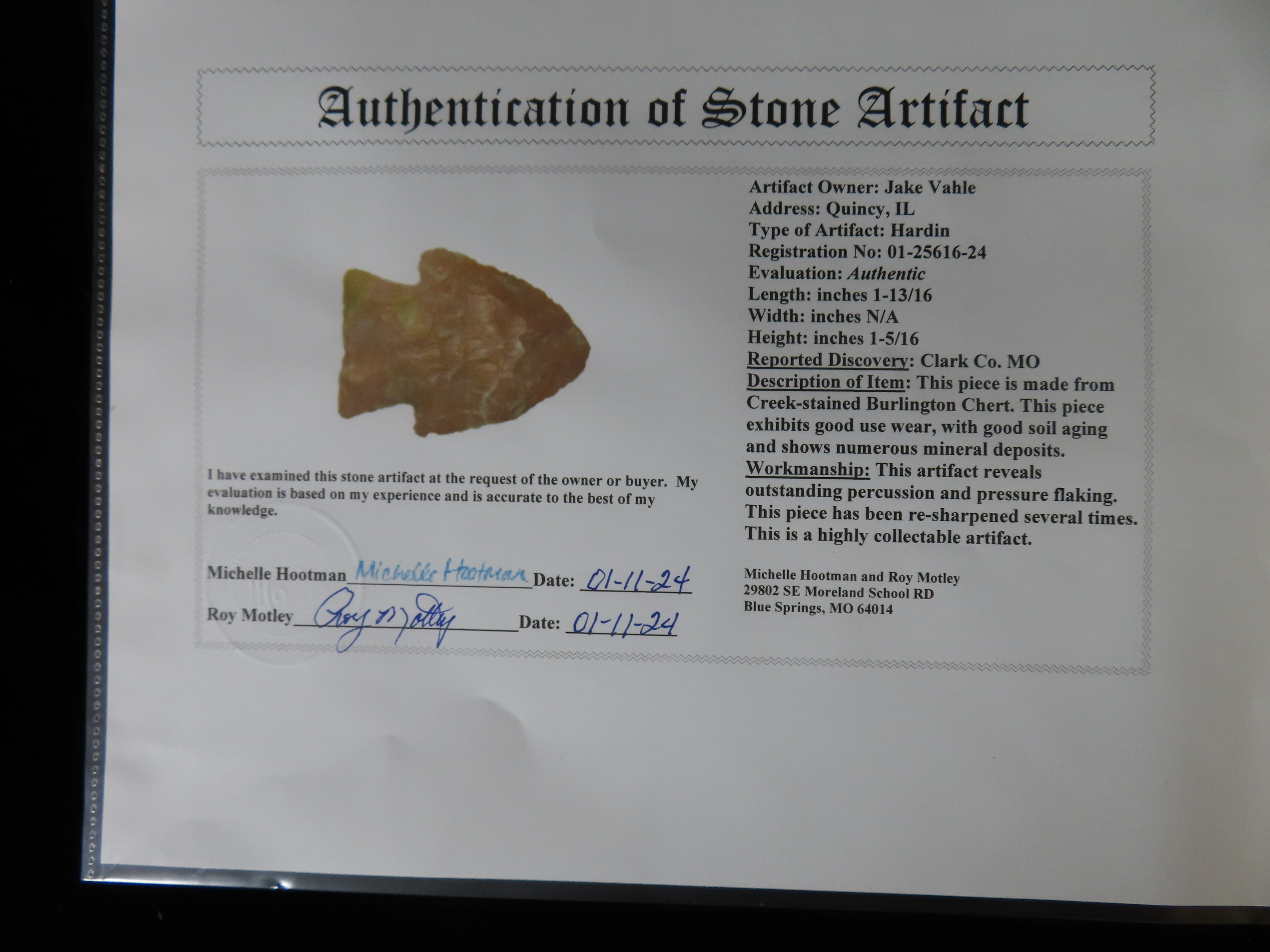 1 13/16″ Harding, Motley COA, found in Clark Co., Missouri, Ex Jake Vahle Collection, Quincy, Illinois