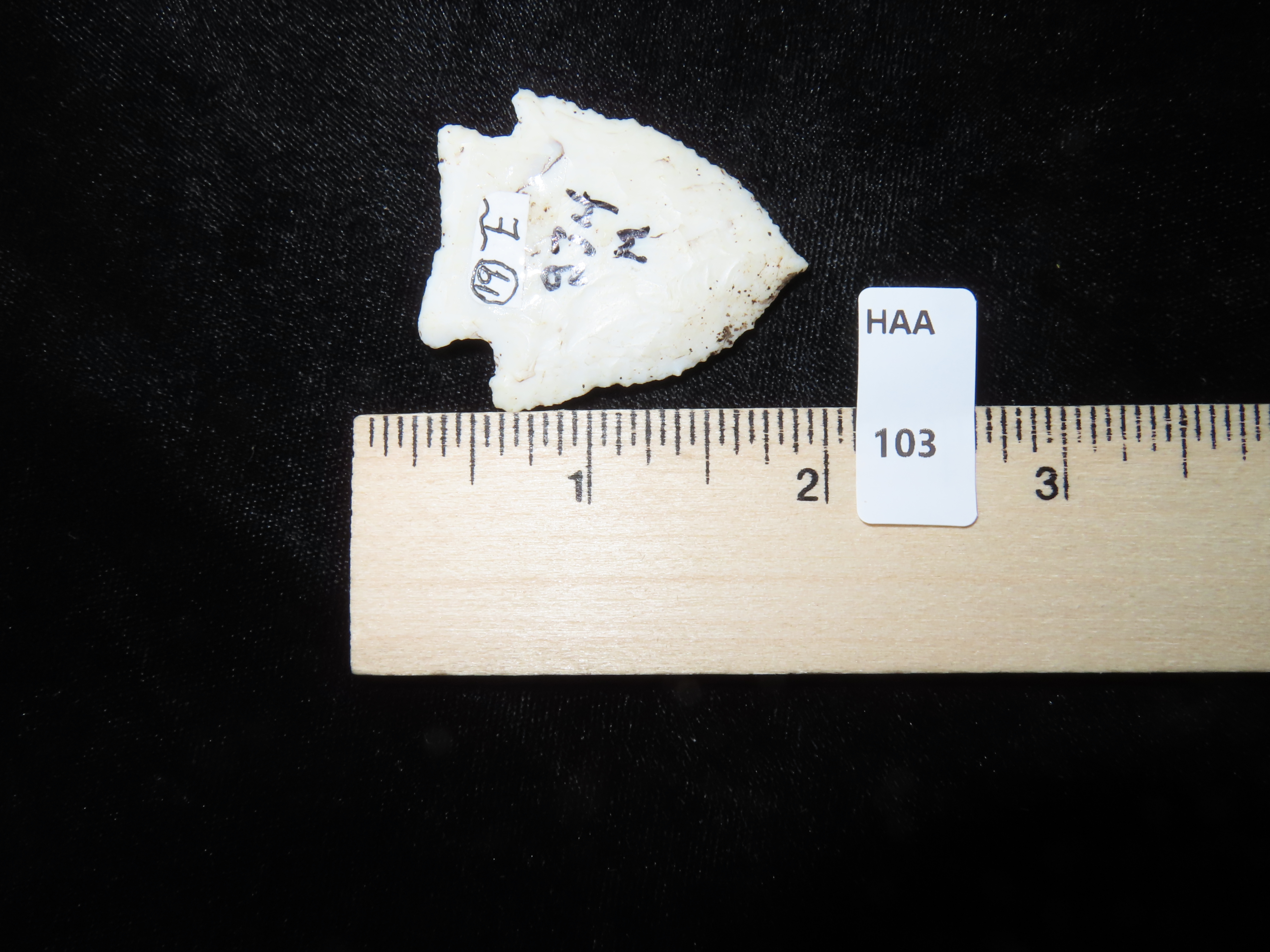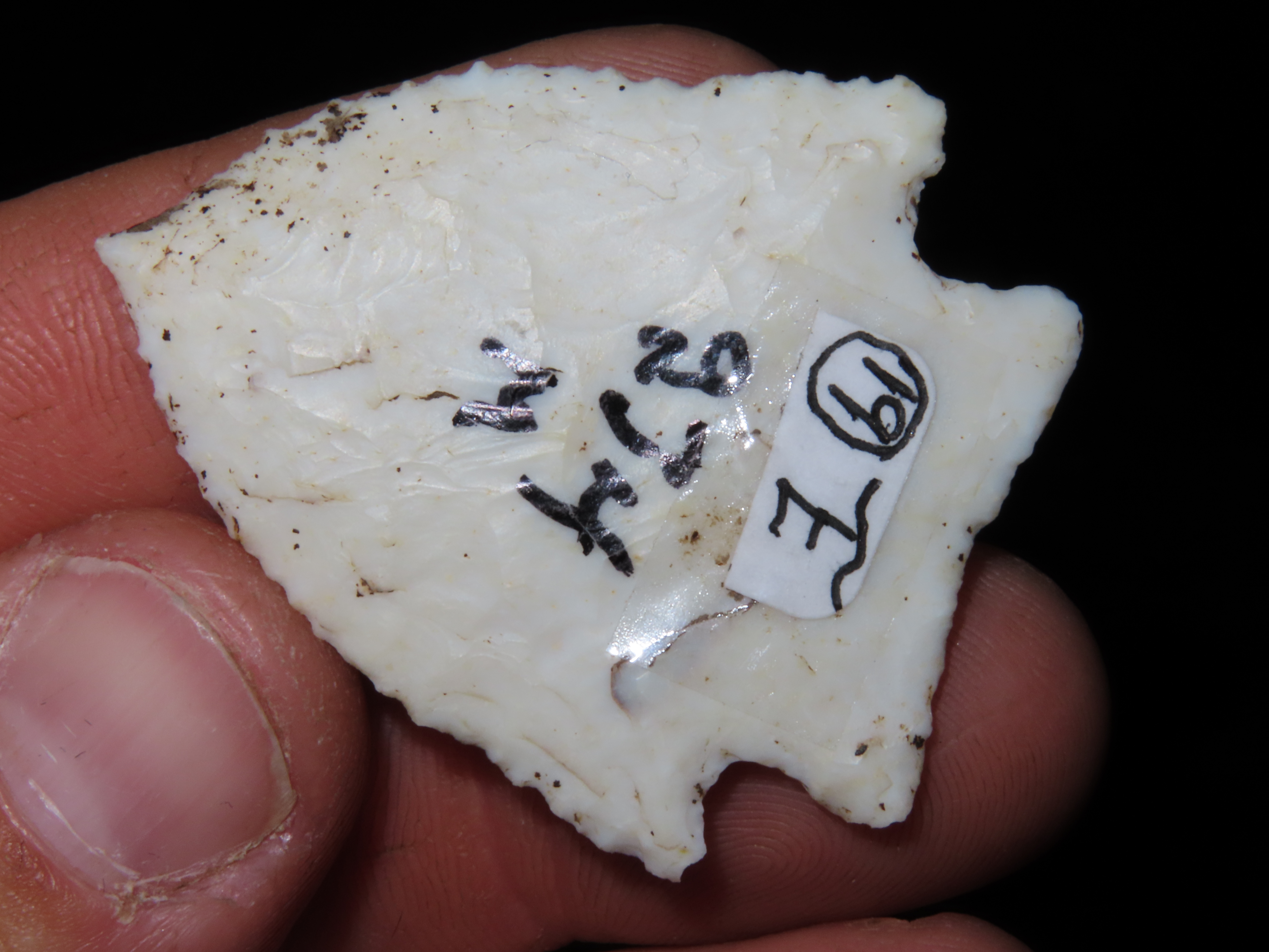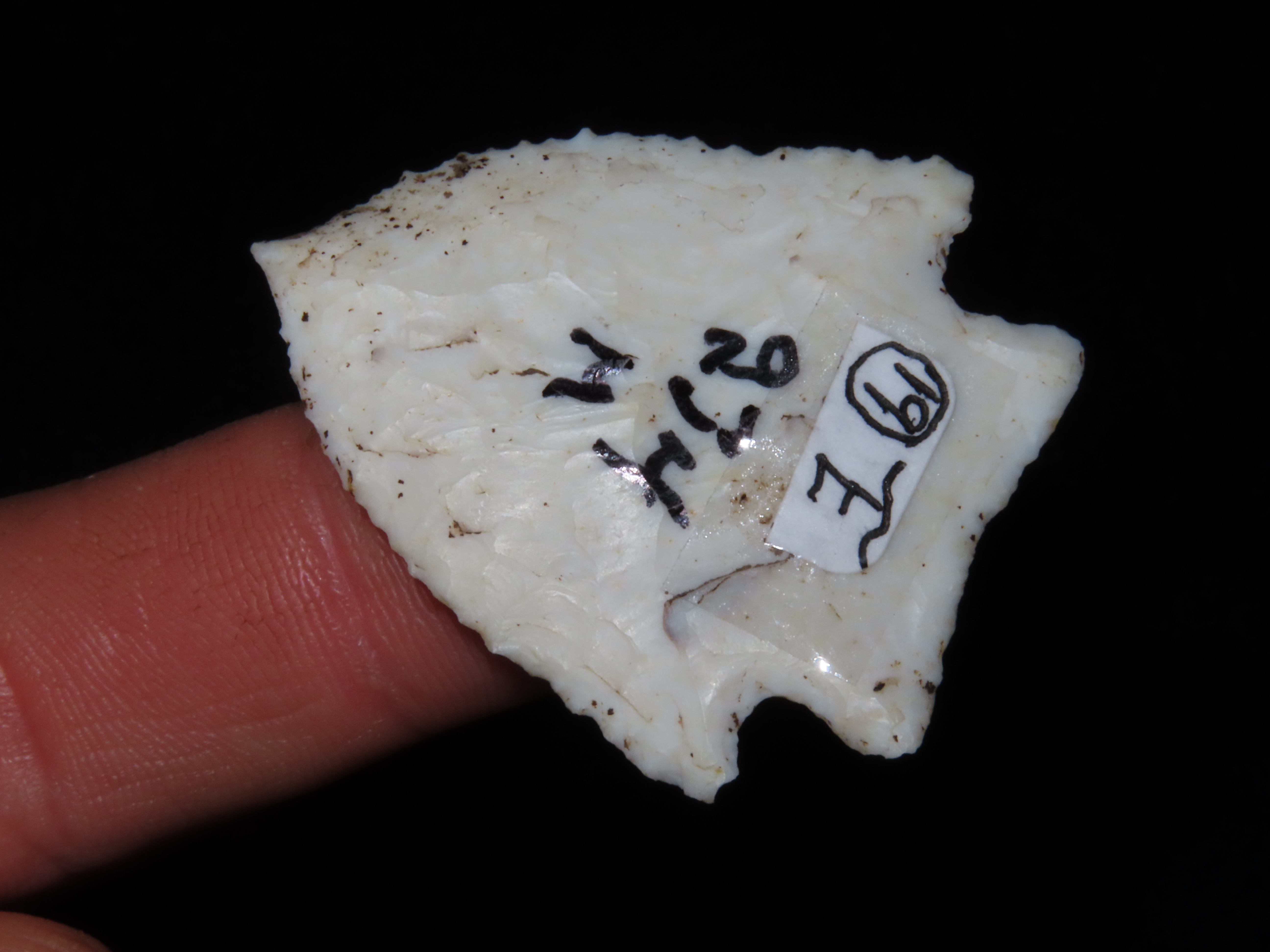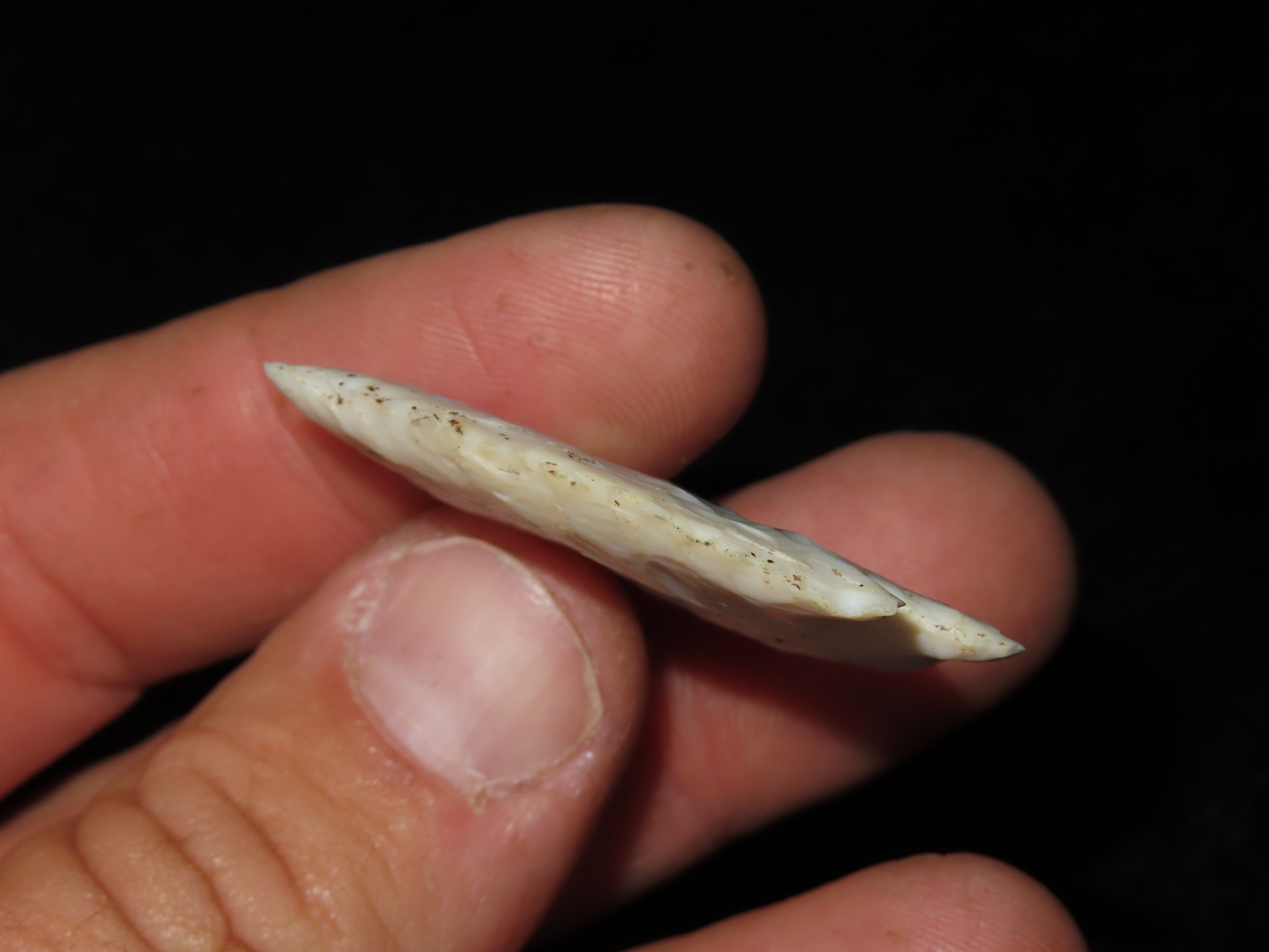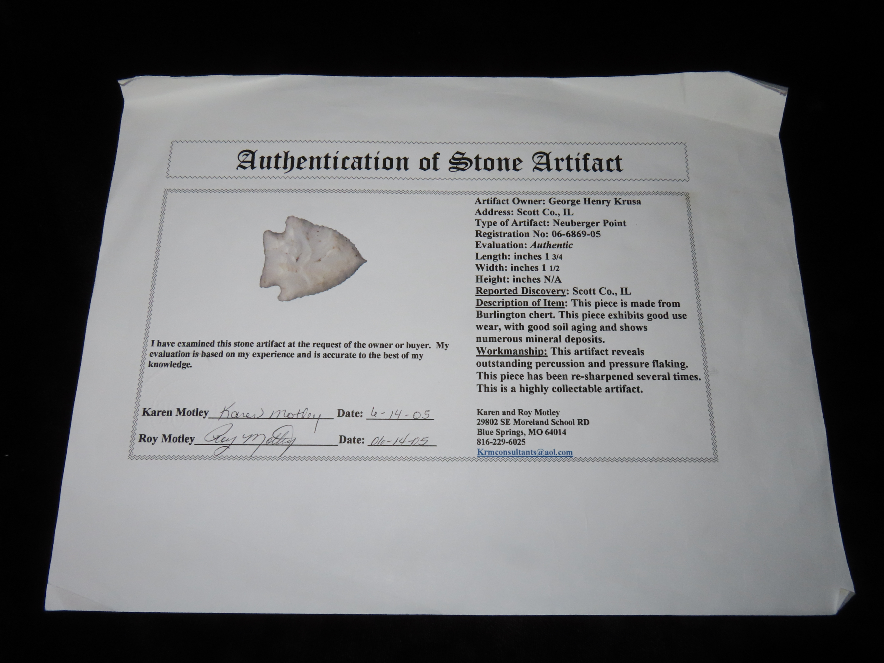 1 3/4″ Neuberger Point, Motley COA, needle tip, found in Scott Co., Illinois, Ex George Henry Krusa Collection