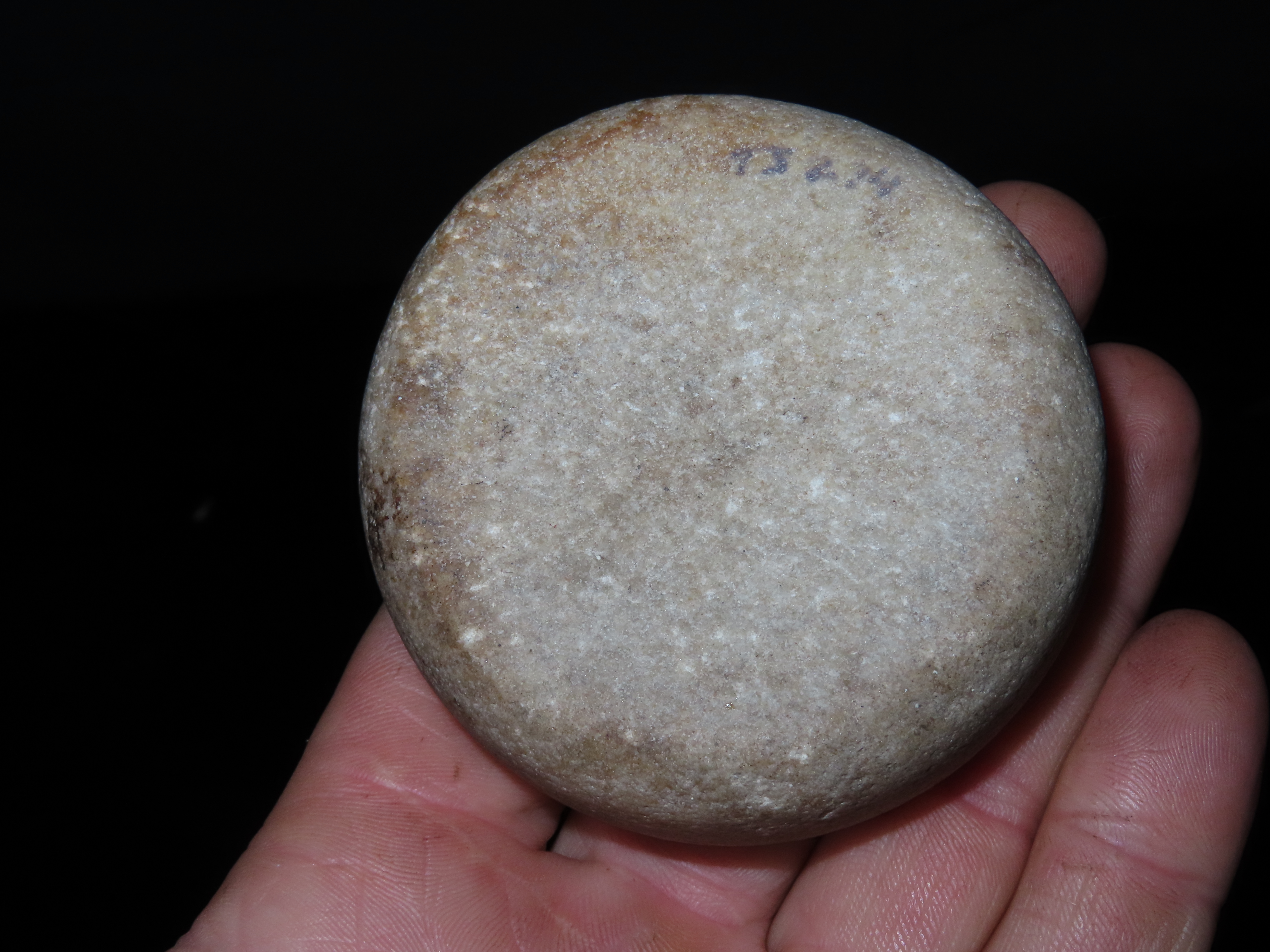 2 3/4″ White Quartz Discoidal, found in Spencer Co., Indiana