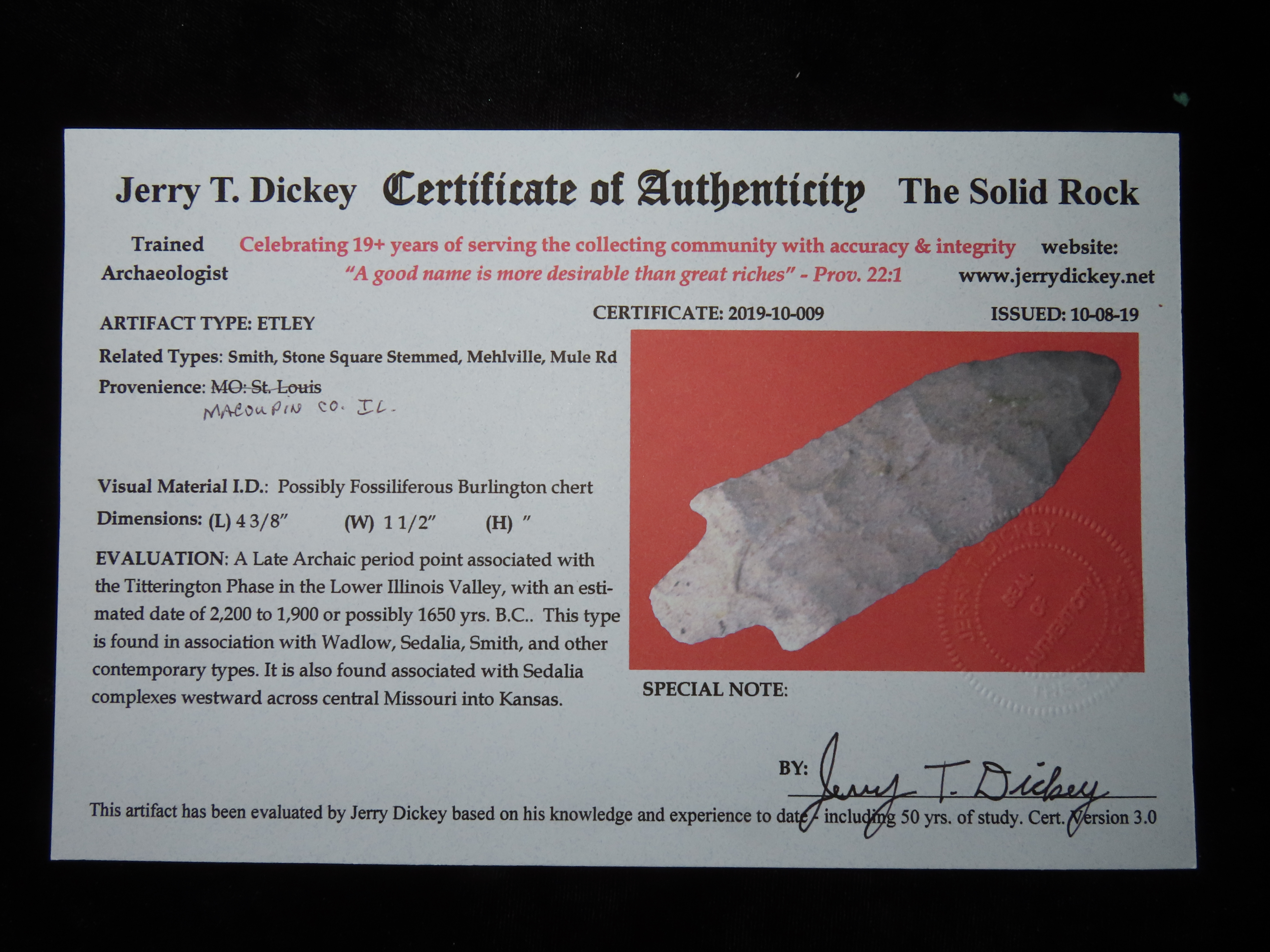 4 1/2″ Etley, Dickey COA Macoupin Co. Illinois EX George Robertson Coll.
