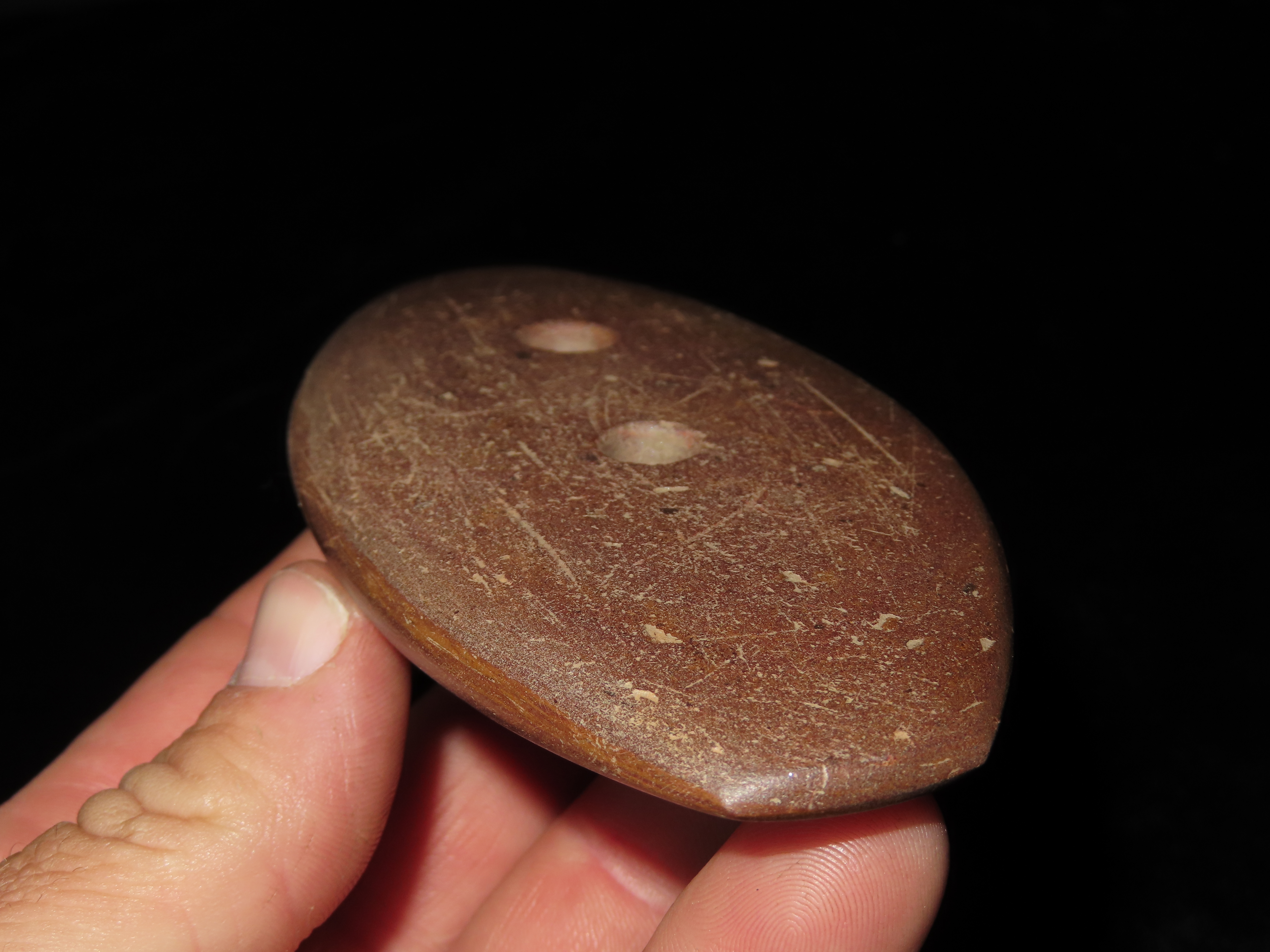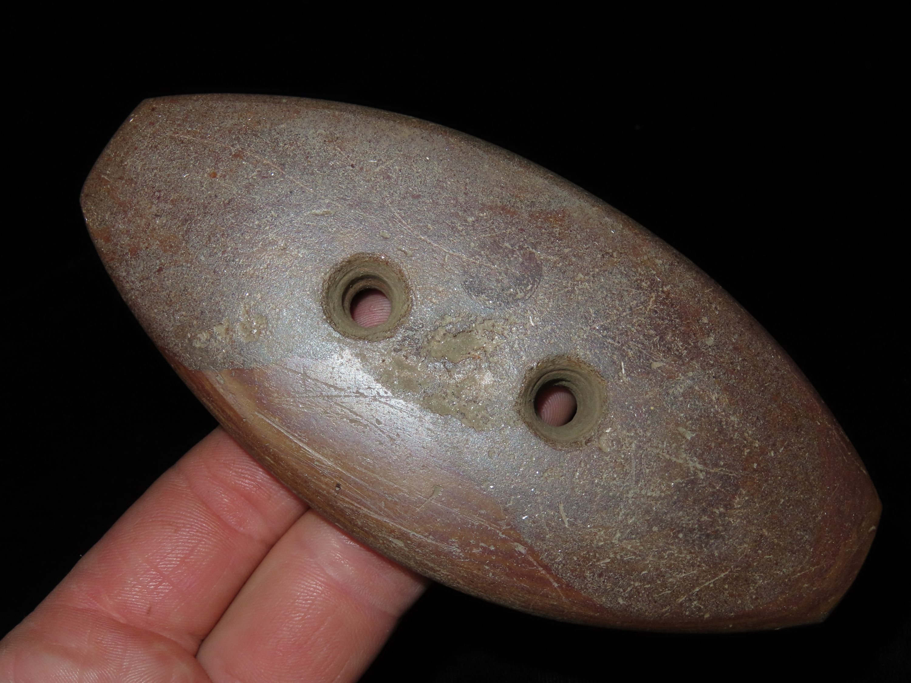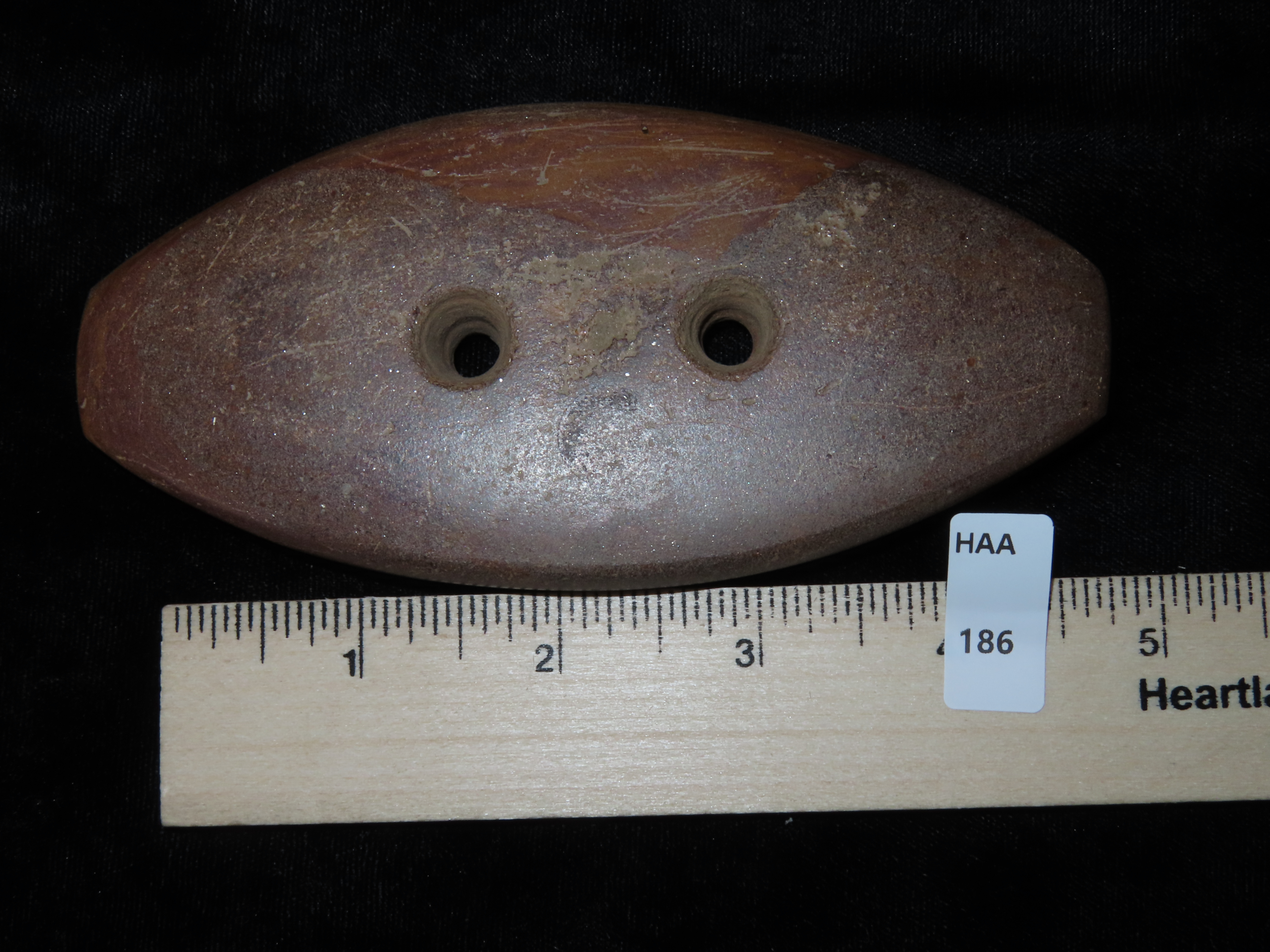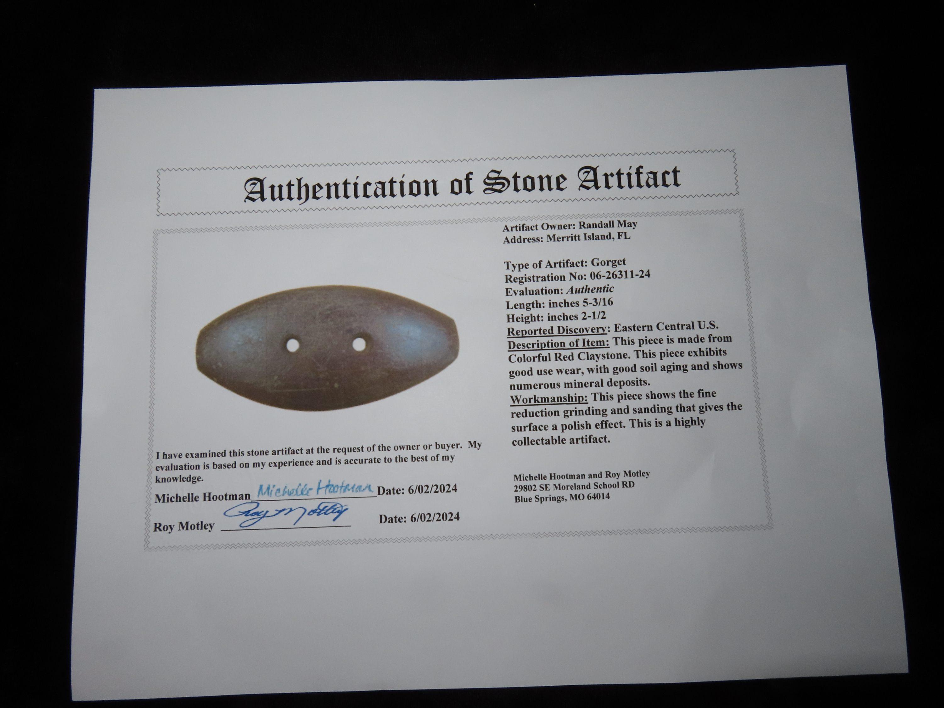 5 3/16″ Gorget Motley COA, Eastern Central US, EX Randall May Coll.