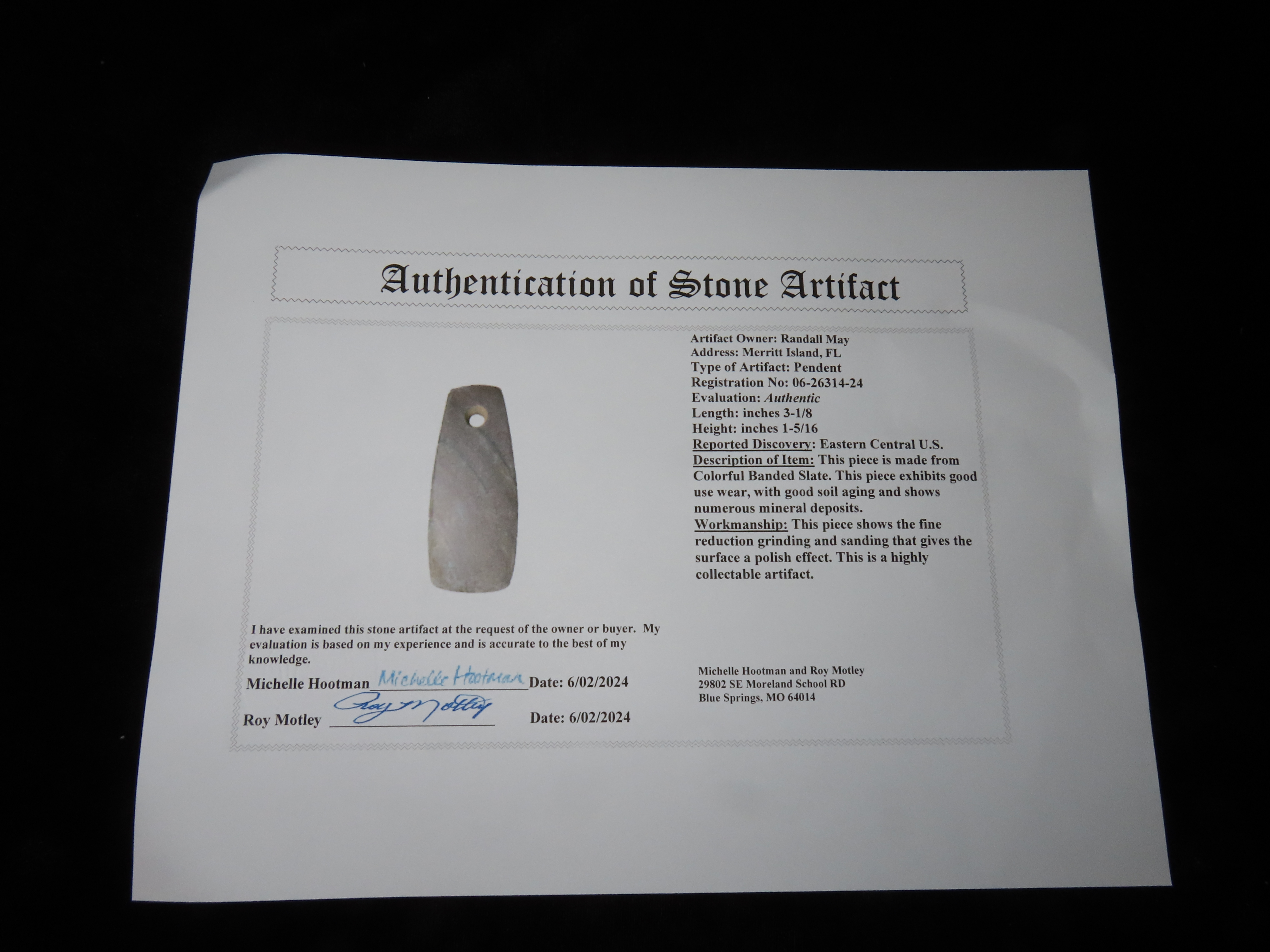 3 1/8″ Pendent, Motley COA, Eastern Central US, EX Randall May Coll.