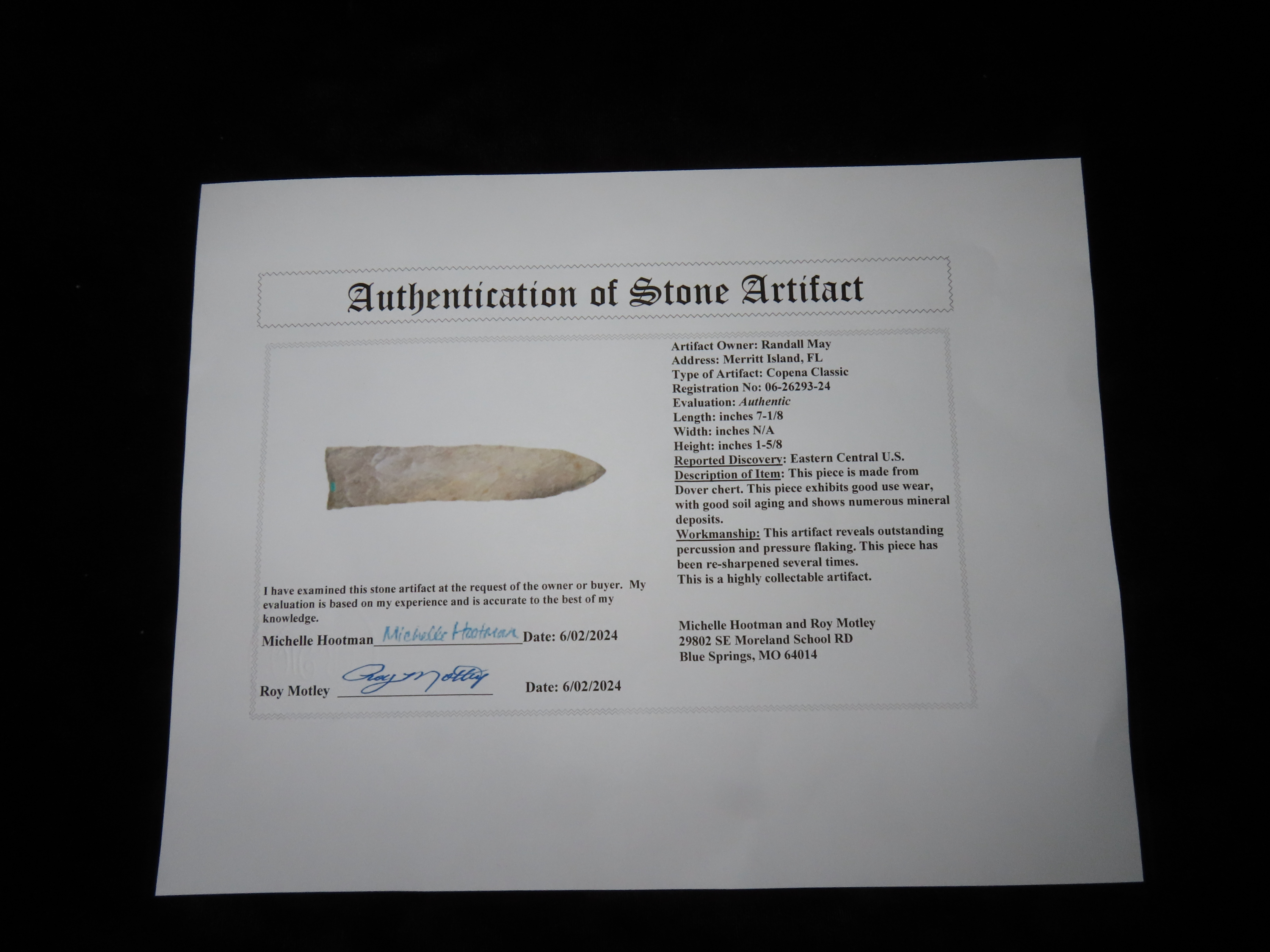 7 1/8″ Copena Classic, Motley COA, Eastern Central US, EX Randall May Coll.