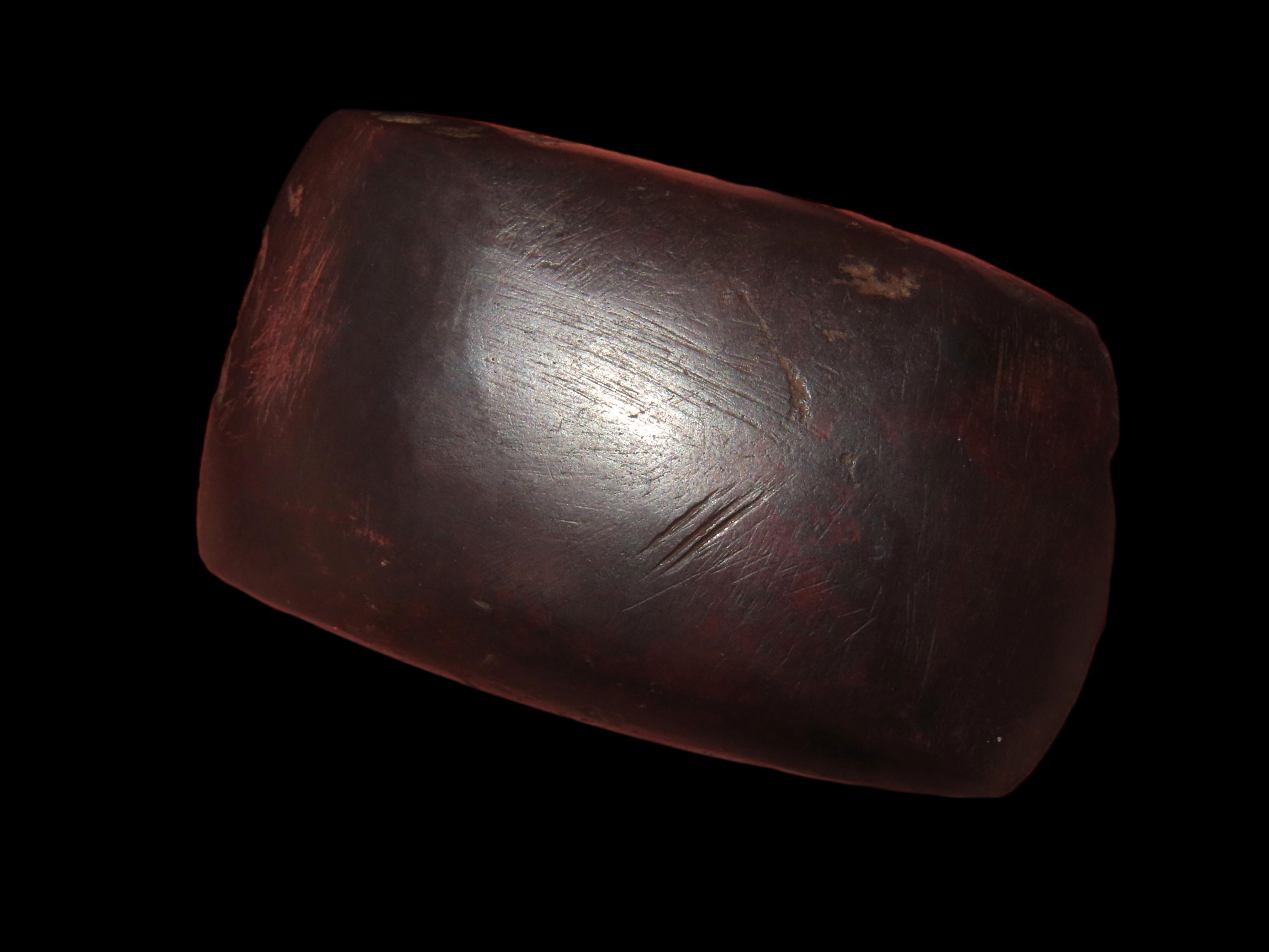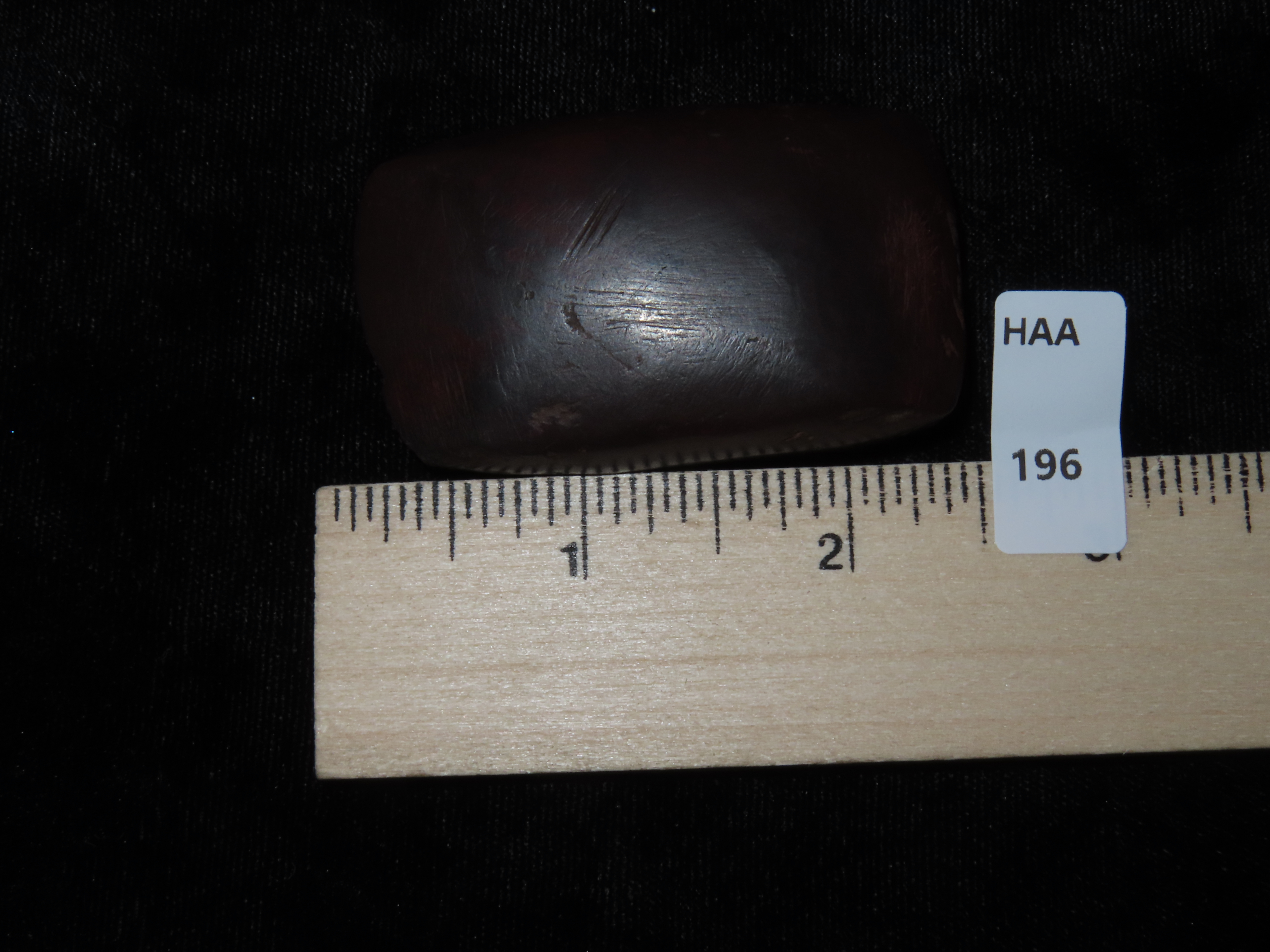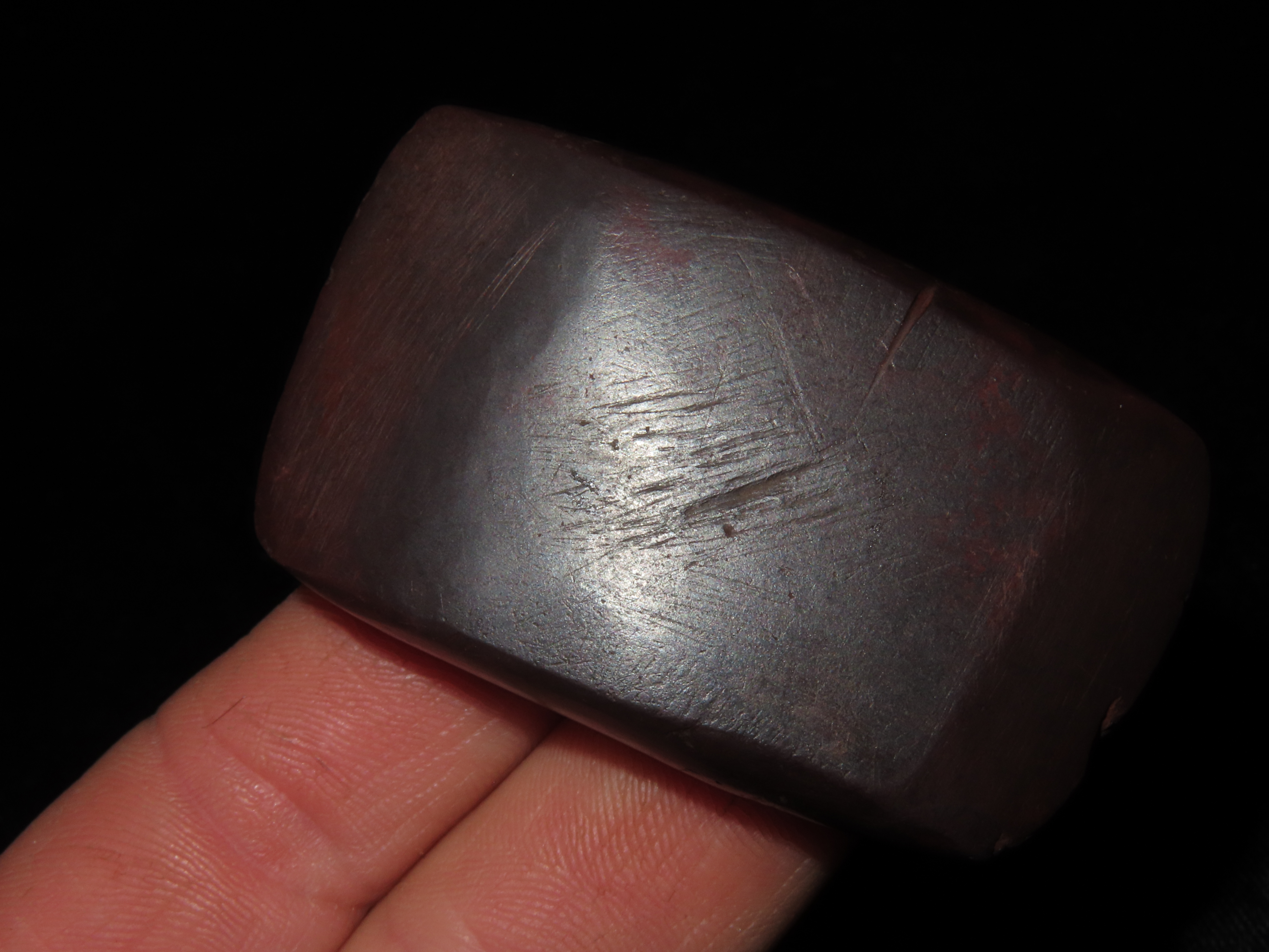 2 1/4″ Double Bitted Hematite Celt, Missouri EX Randall May Coll.