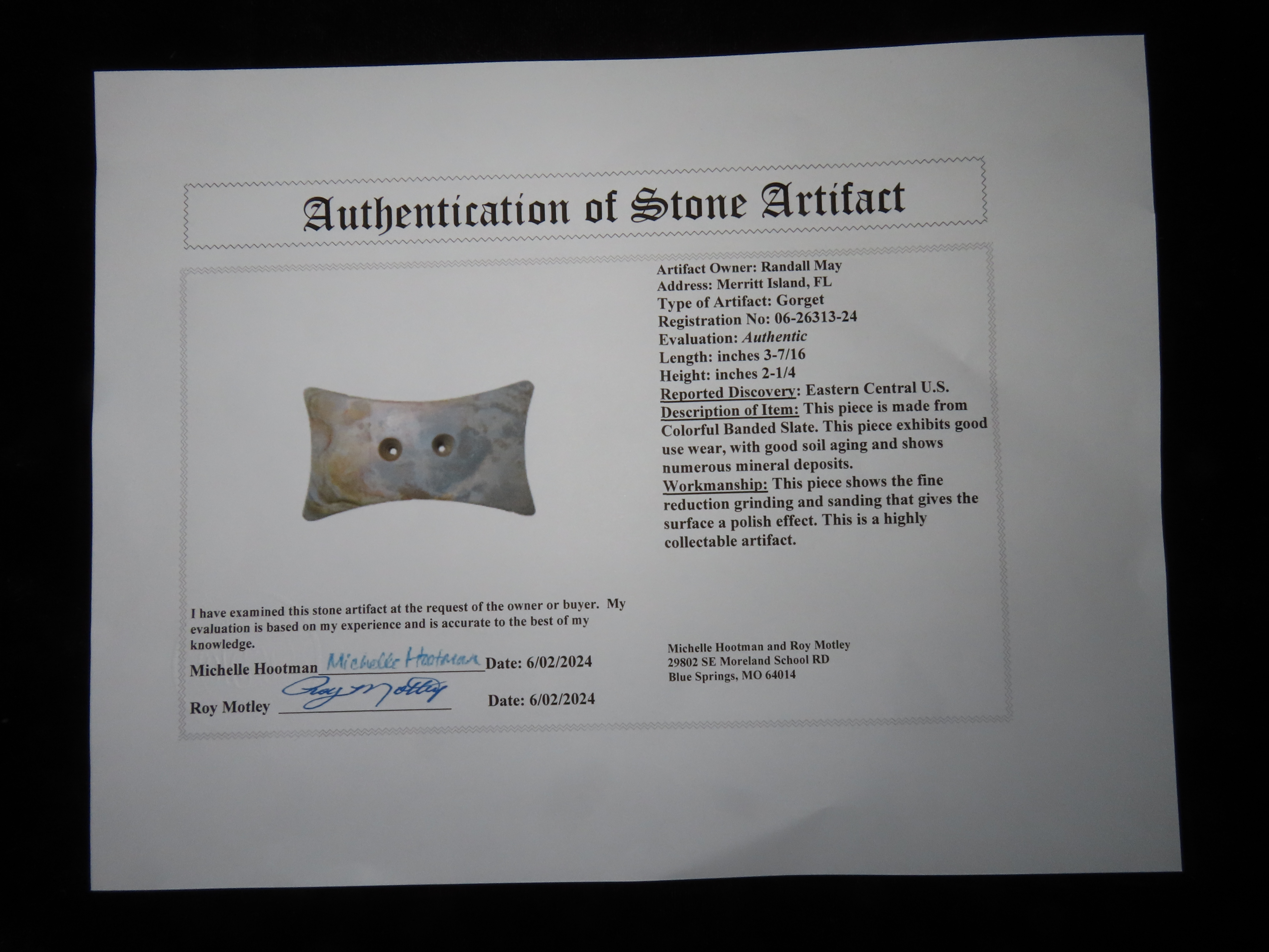 3 7/16″Gorget, Motley COA, Central US, EX Randall May Coll.