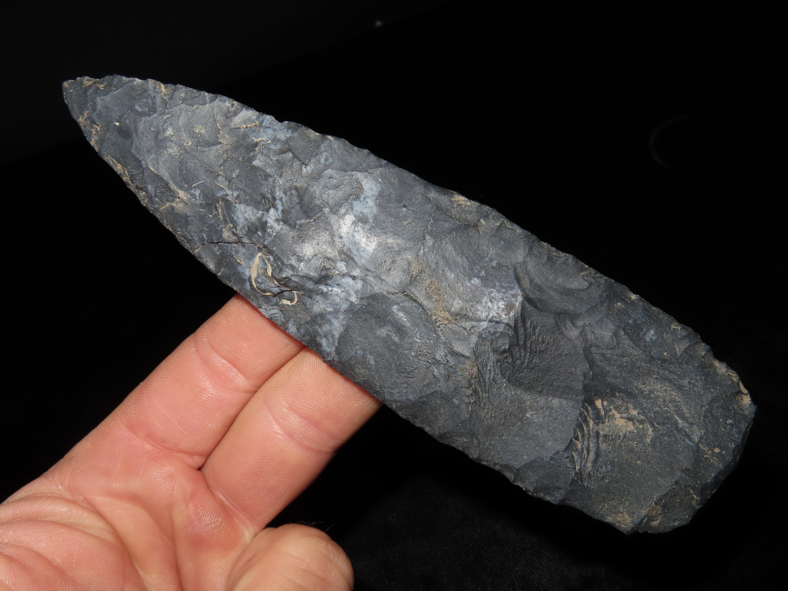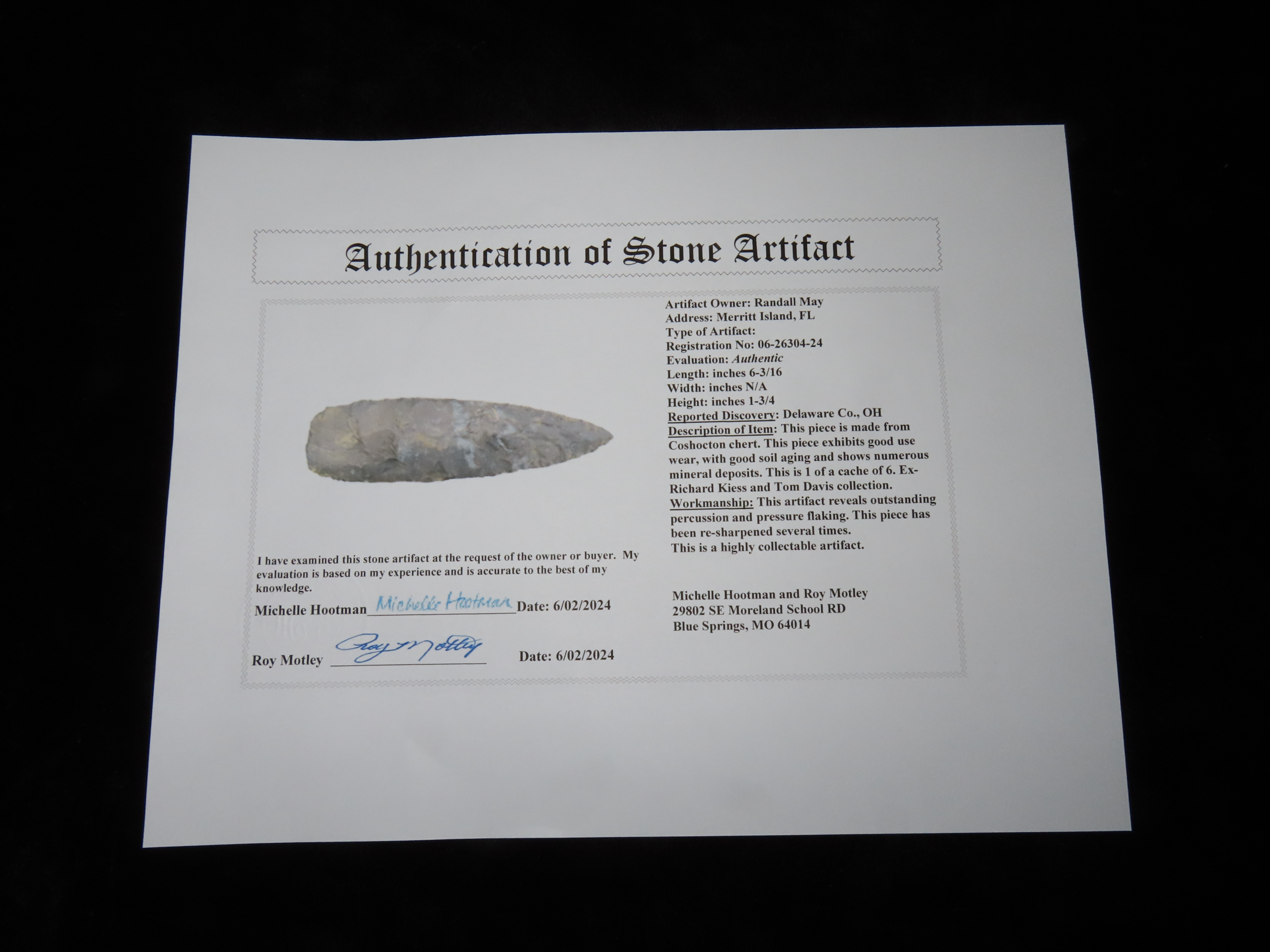 6 3/16″Cache Blade, Motley COA, Stanfield / Cobbs, 1 of 6 found in Delaware Co. Ohio, EX Randall May Coll. Ex Tom Davis, Ex Richard Kiess