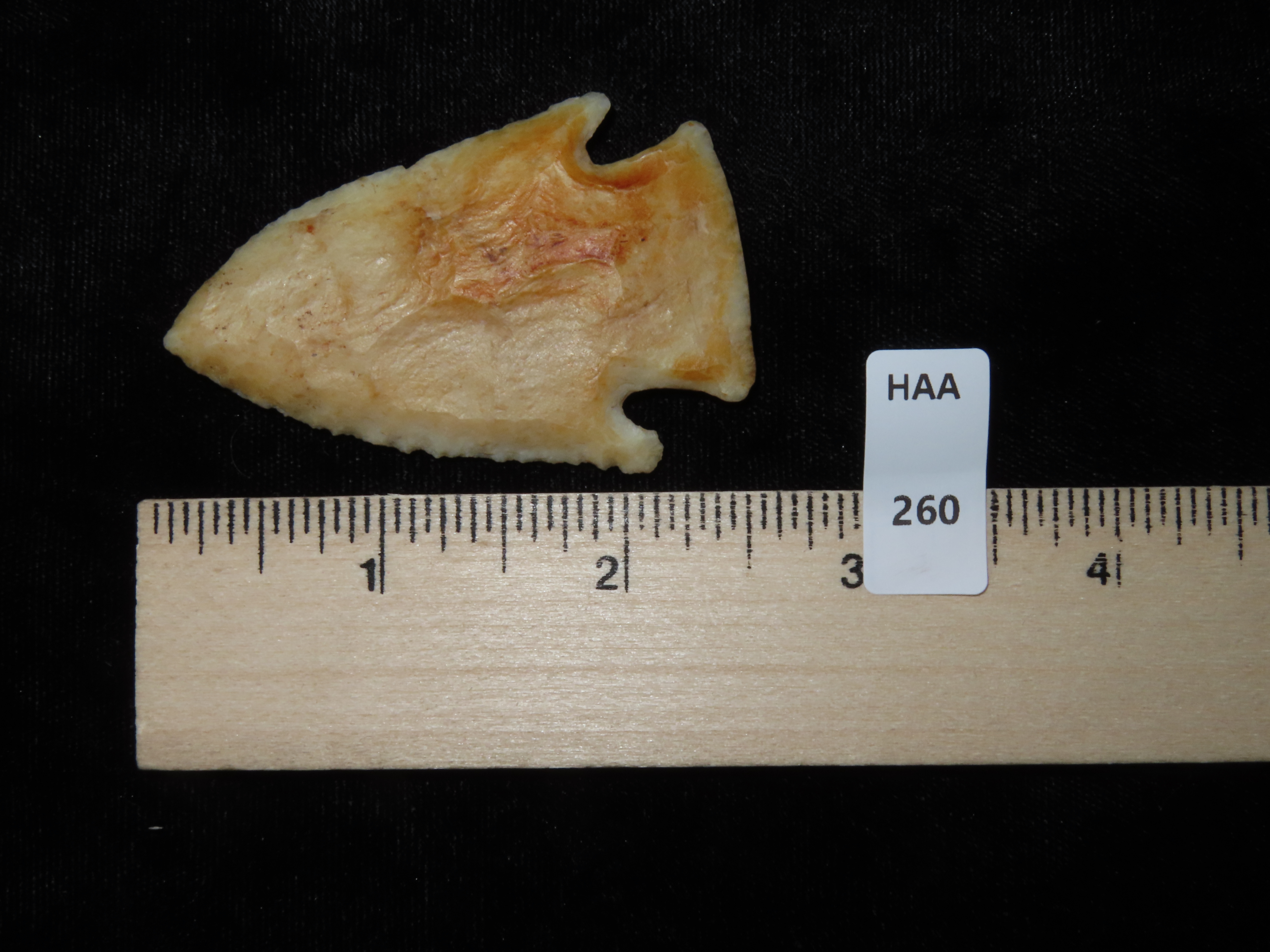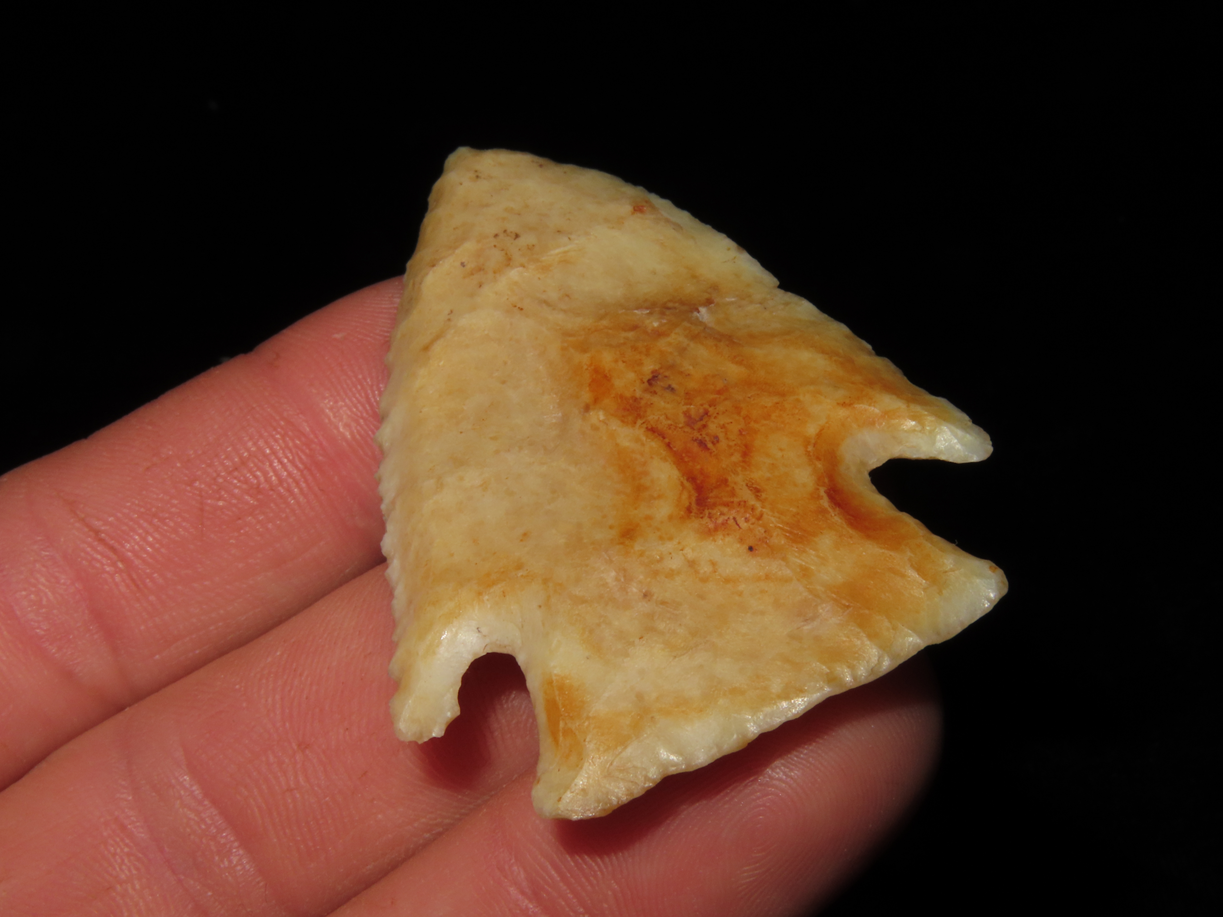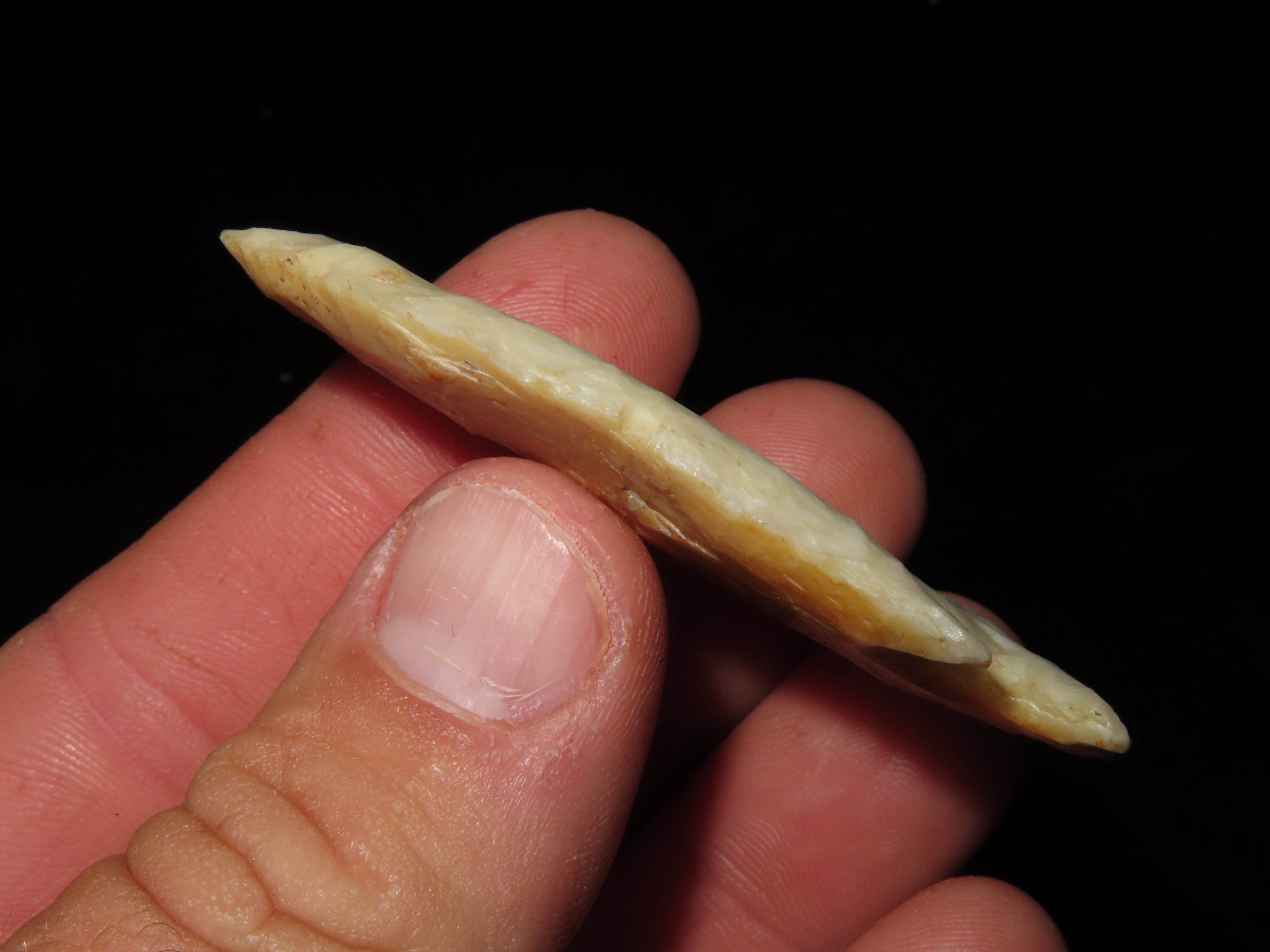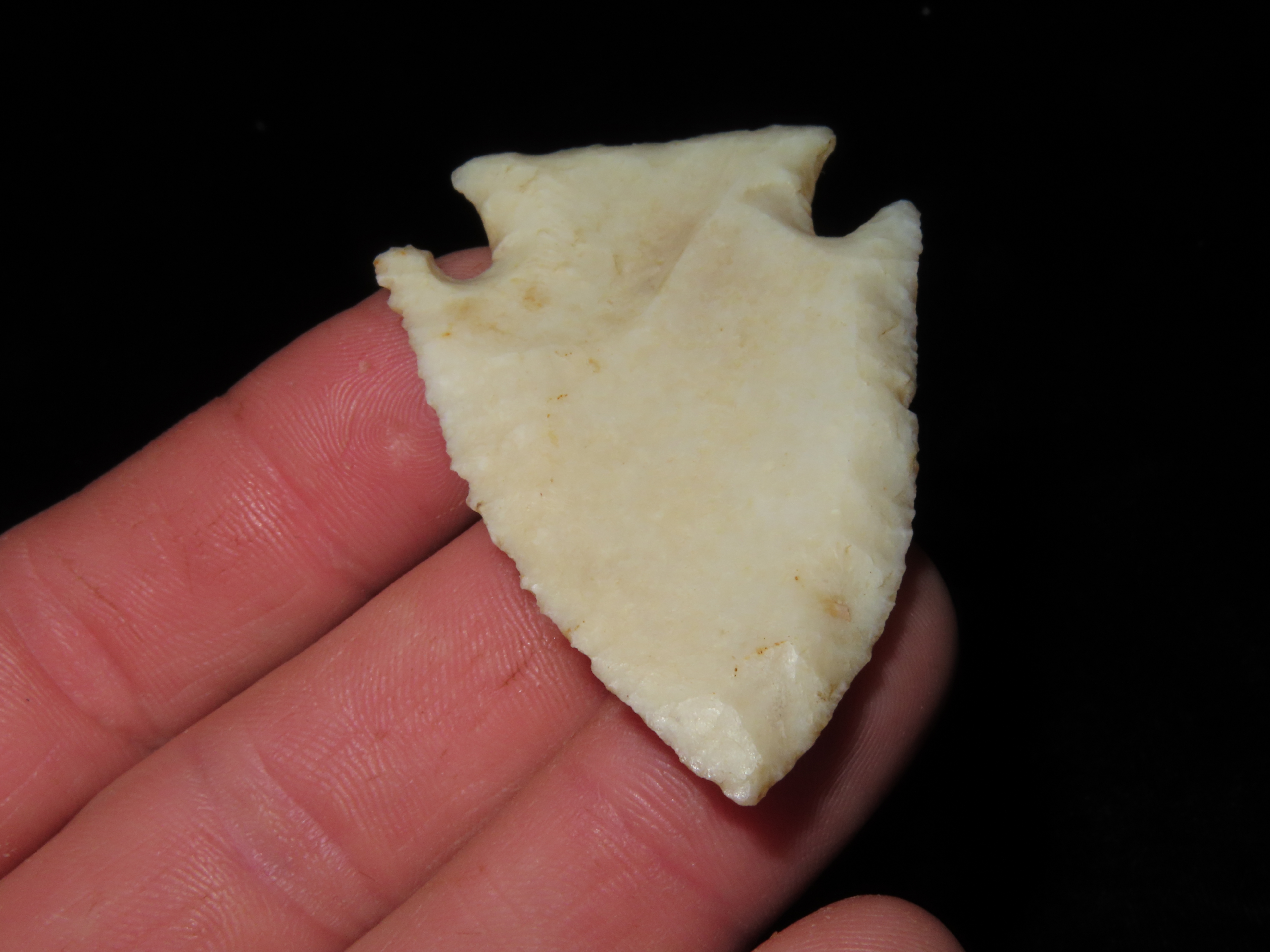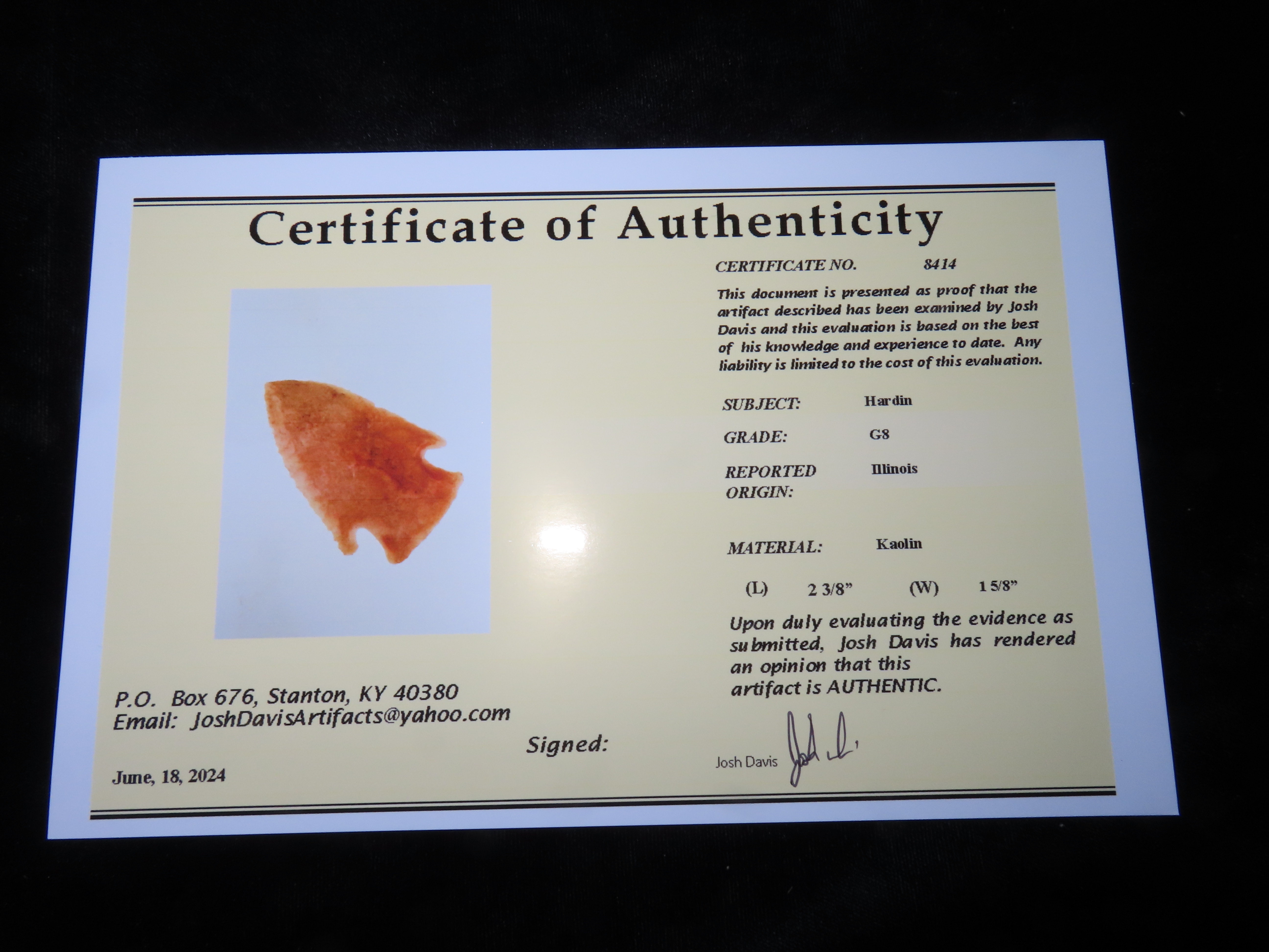 2 3/8″ Hardin, Davis COA, Nice Translucent Point made of Kaolin, found in Illinois, Ex Josh Davis Collection