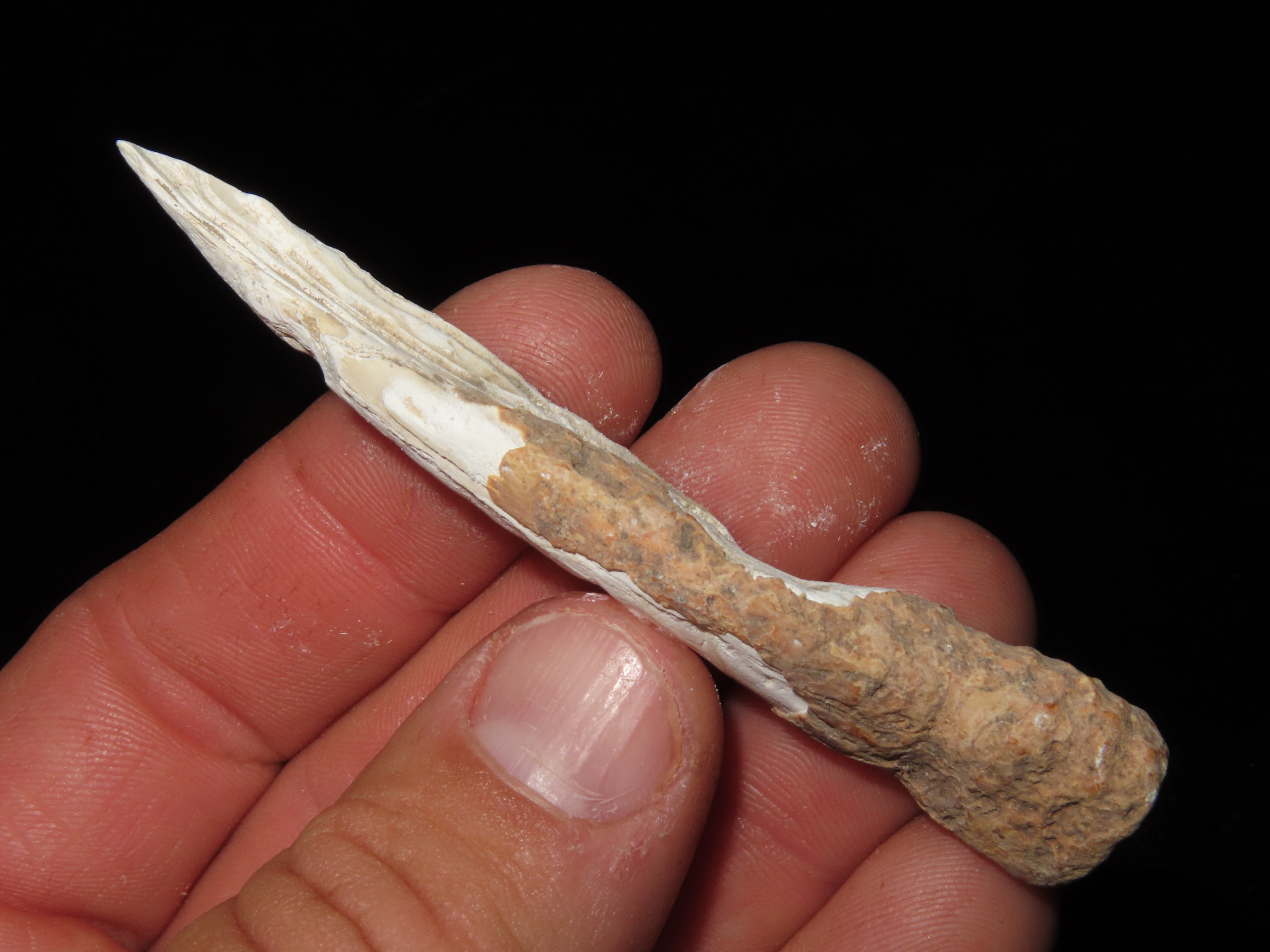 3 1/2″ Conch Shell Ear Spool/Pendant, Grooved around one end, found in Illinois, Ex Donny Johns Collection