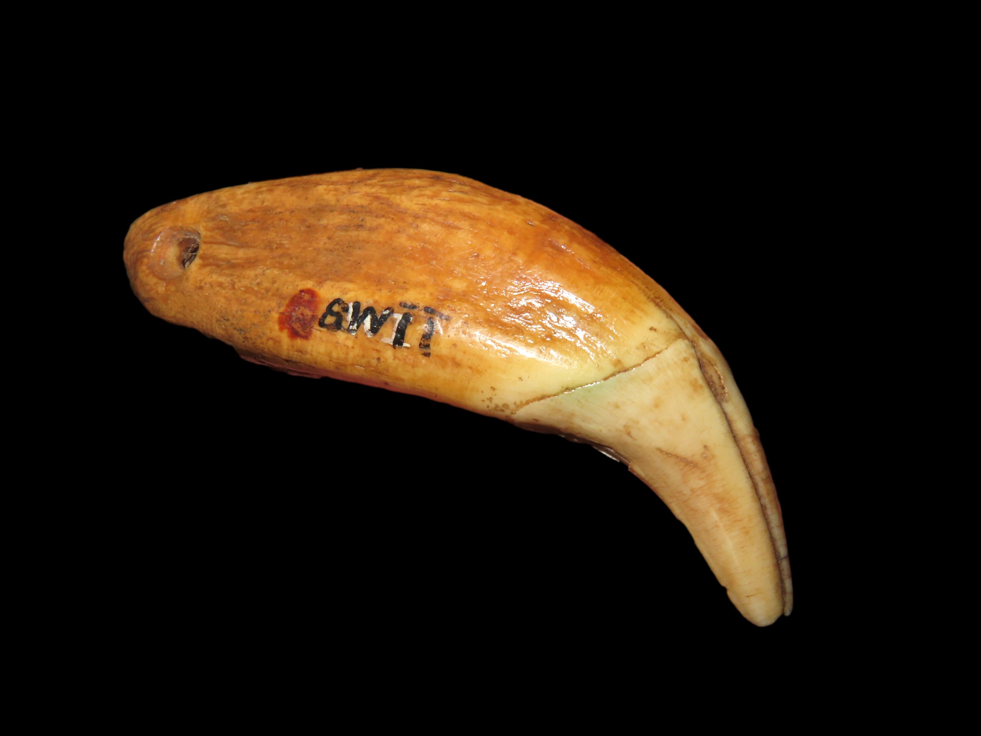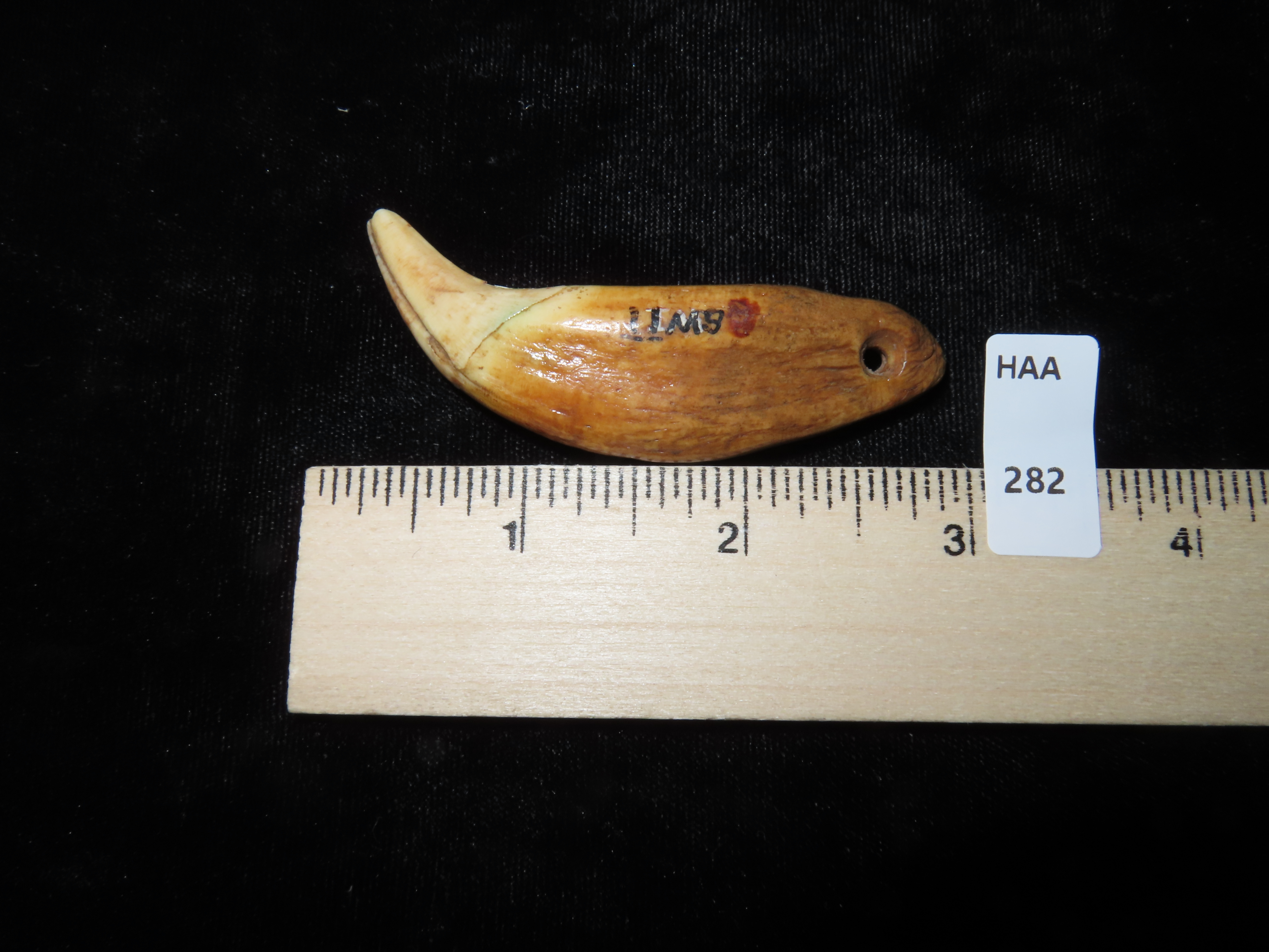 2 3/4" Drilled Bear Tooth Pendant, found in Illinois, Ex Donny Johns Collection