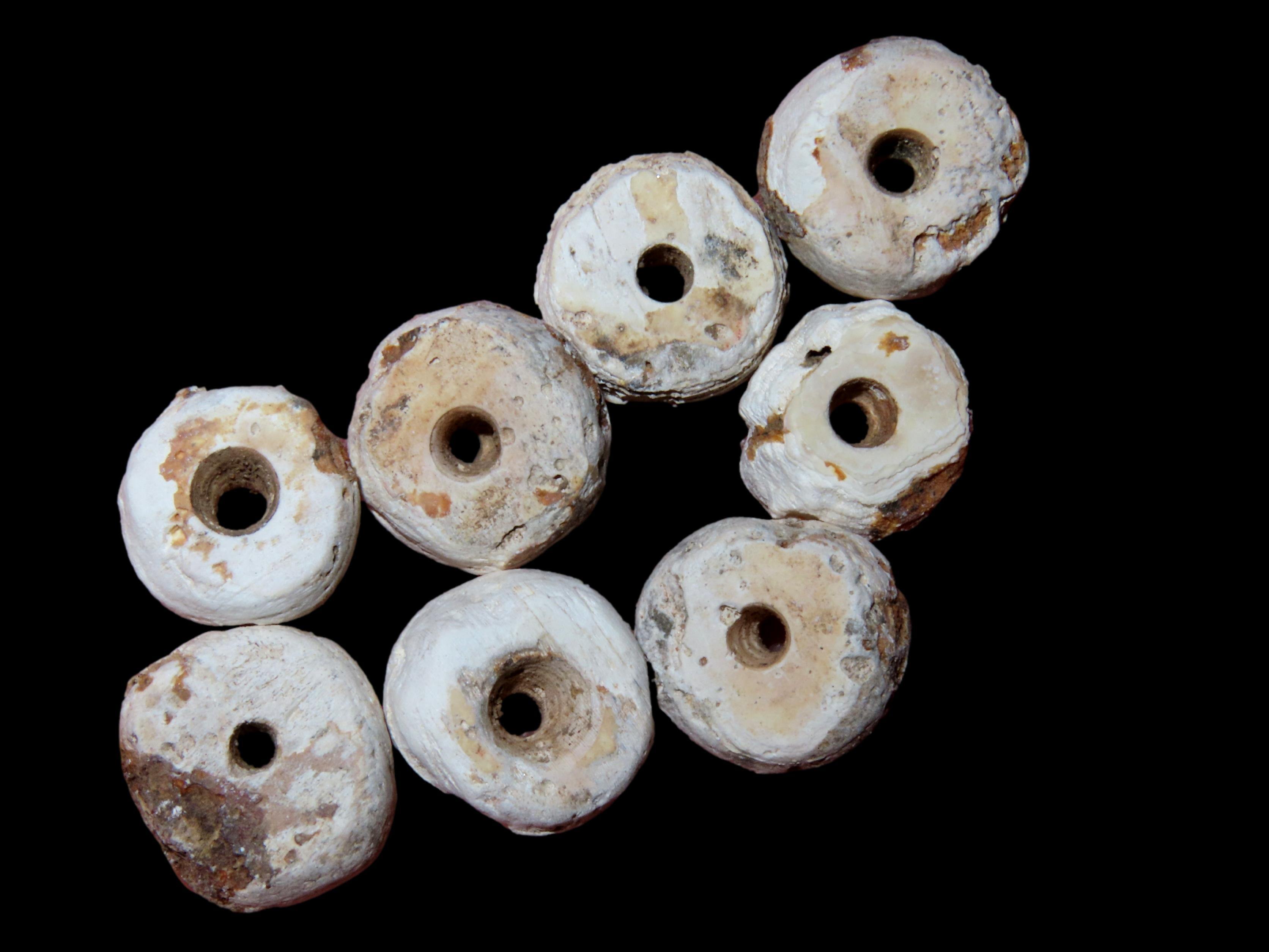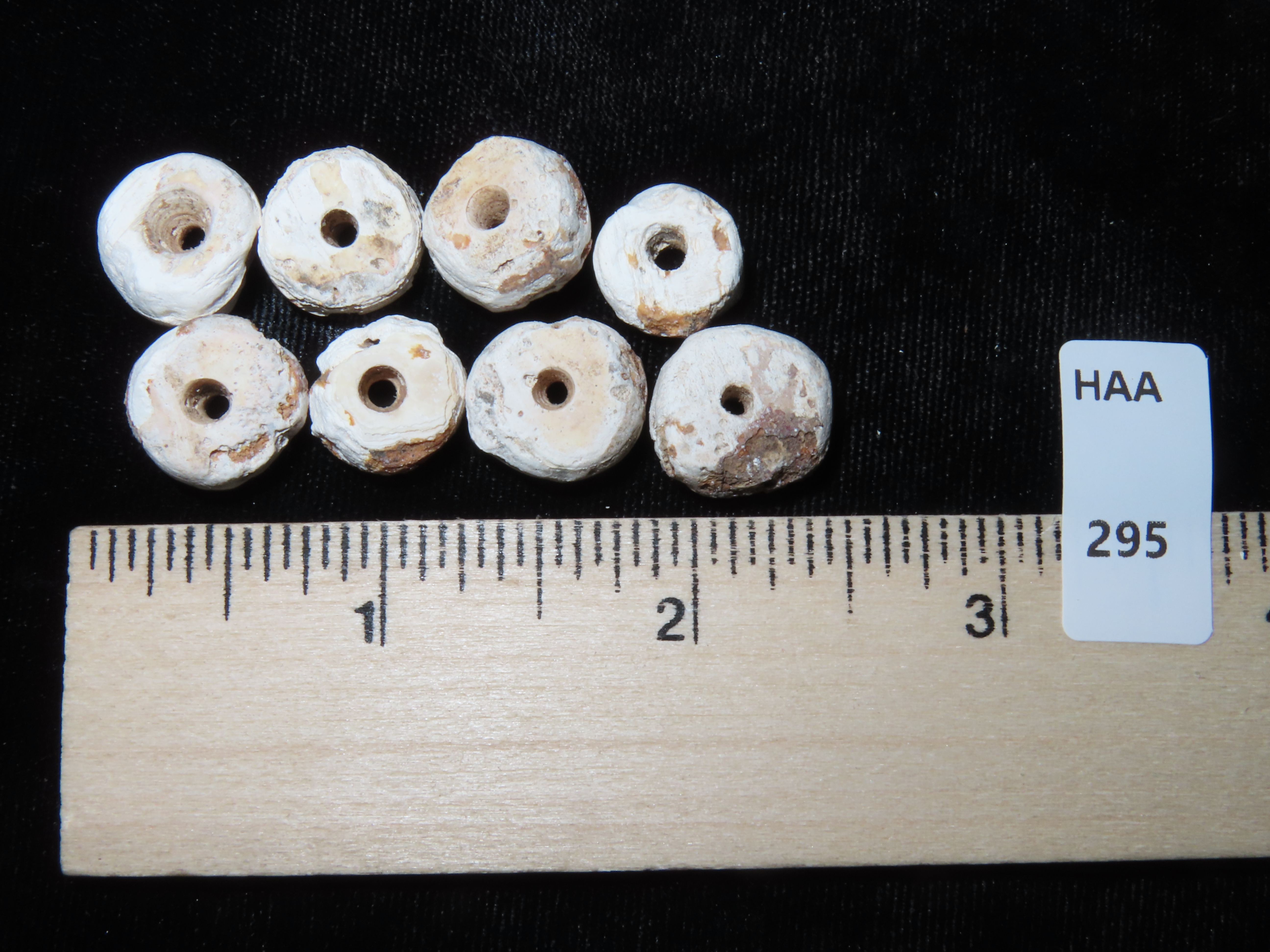 Group of 8 Shell Beads, found in Illinois, Ex Donny Johns Collection