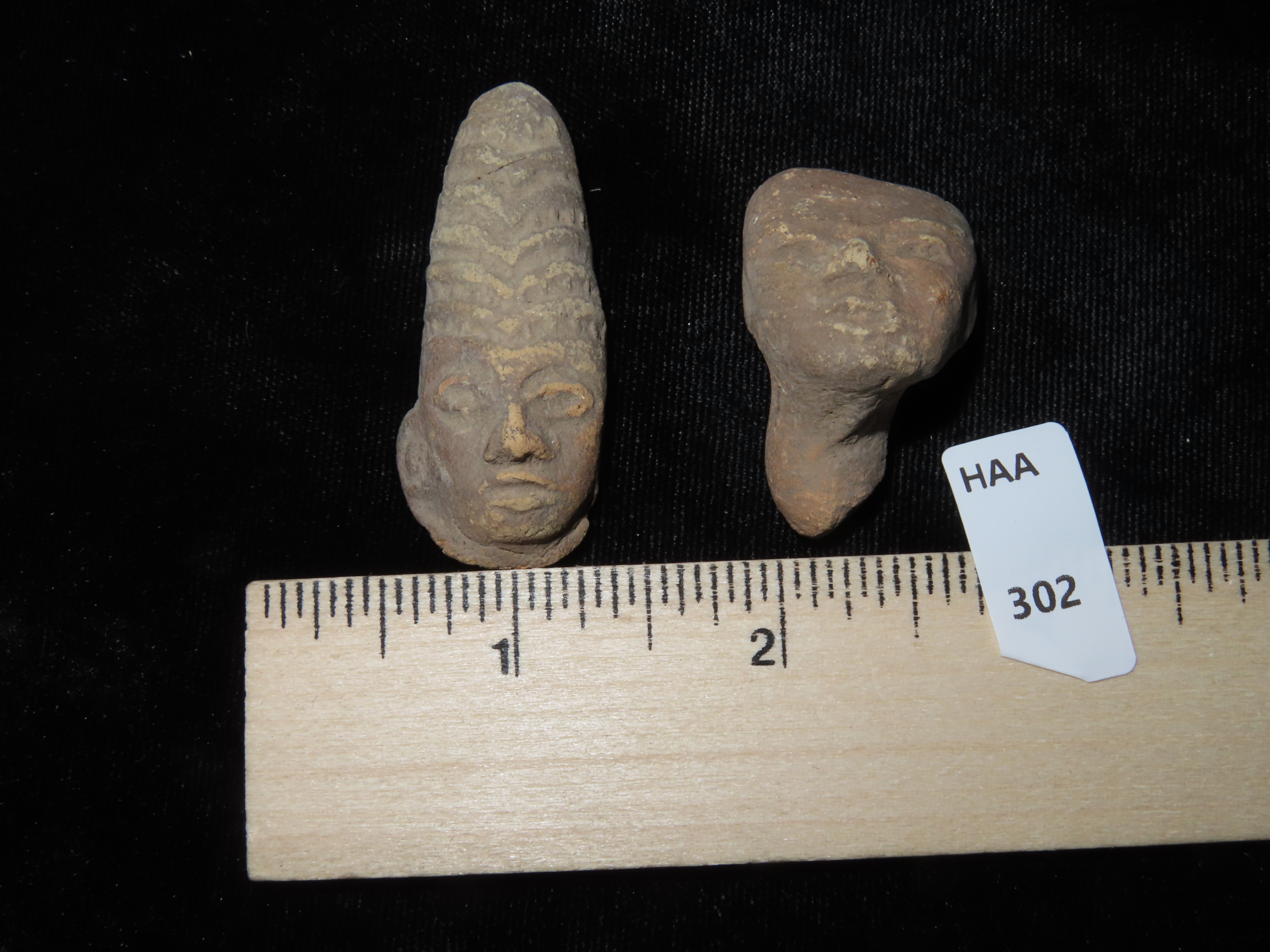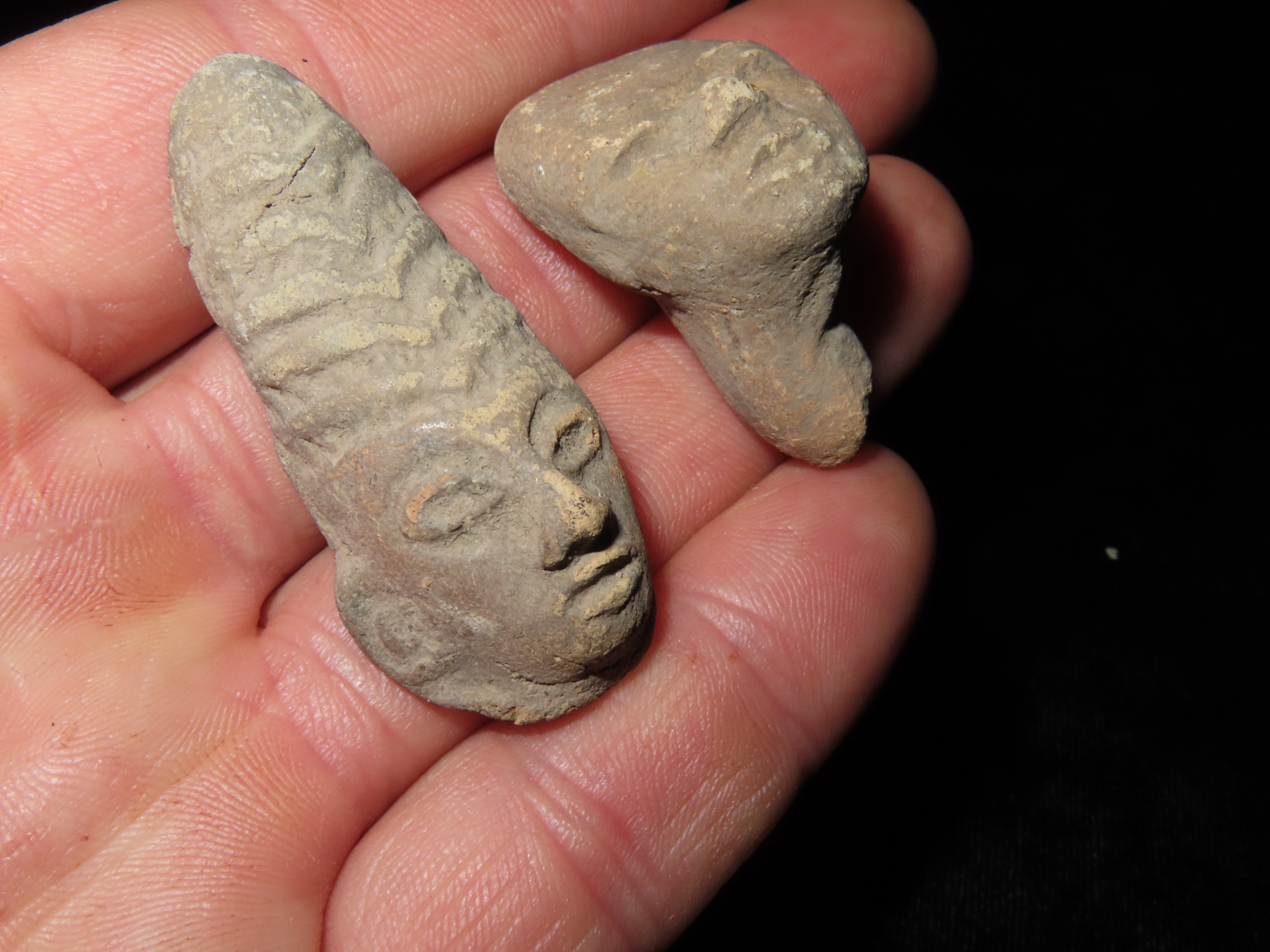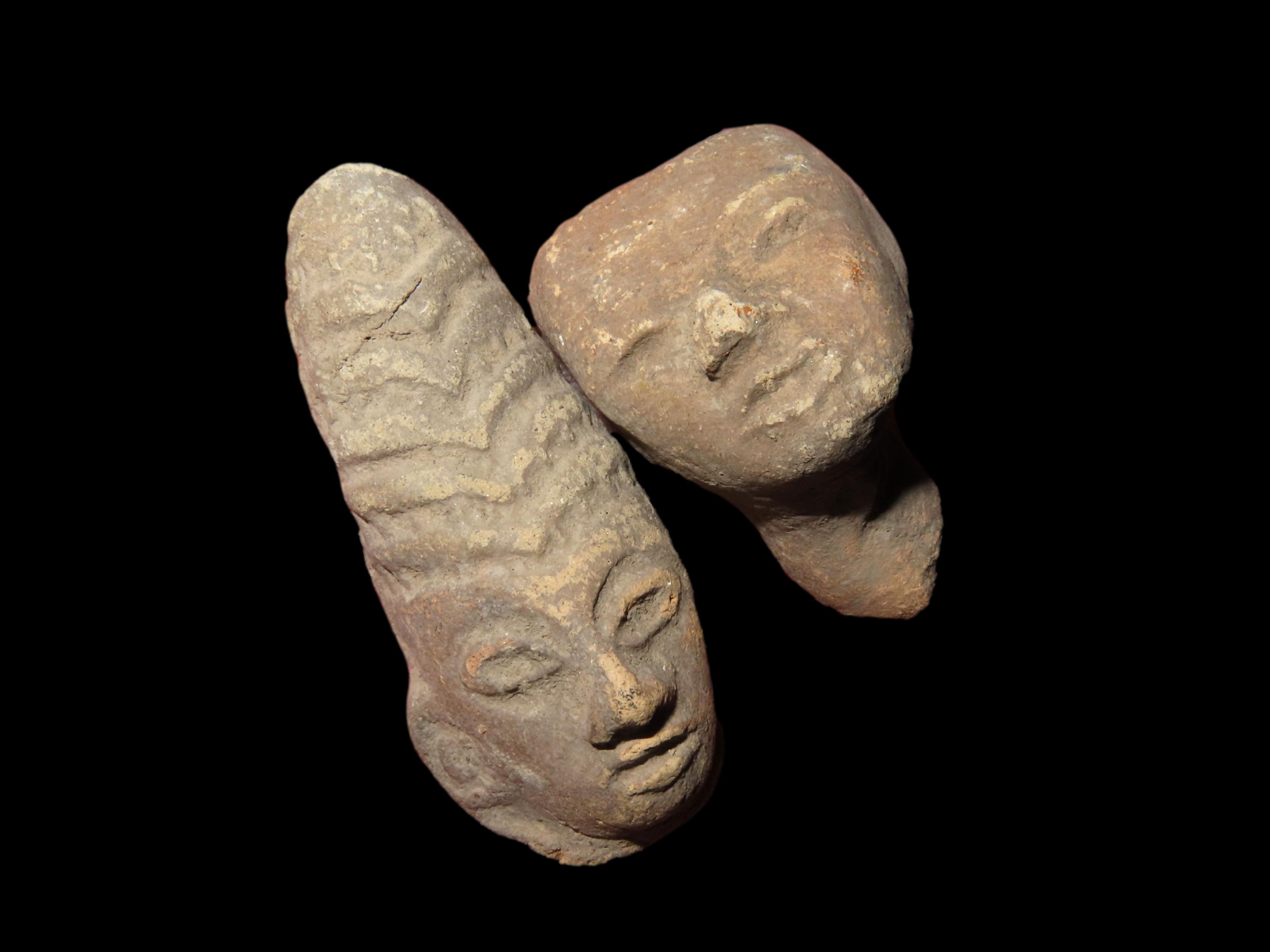 Set of 2 Pre-Colombian Pottery Effigy Heads, largest measures 2 1/8", found in South America Ex Ernest Brose Collection
