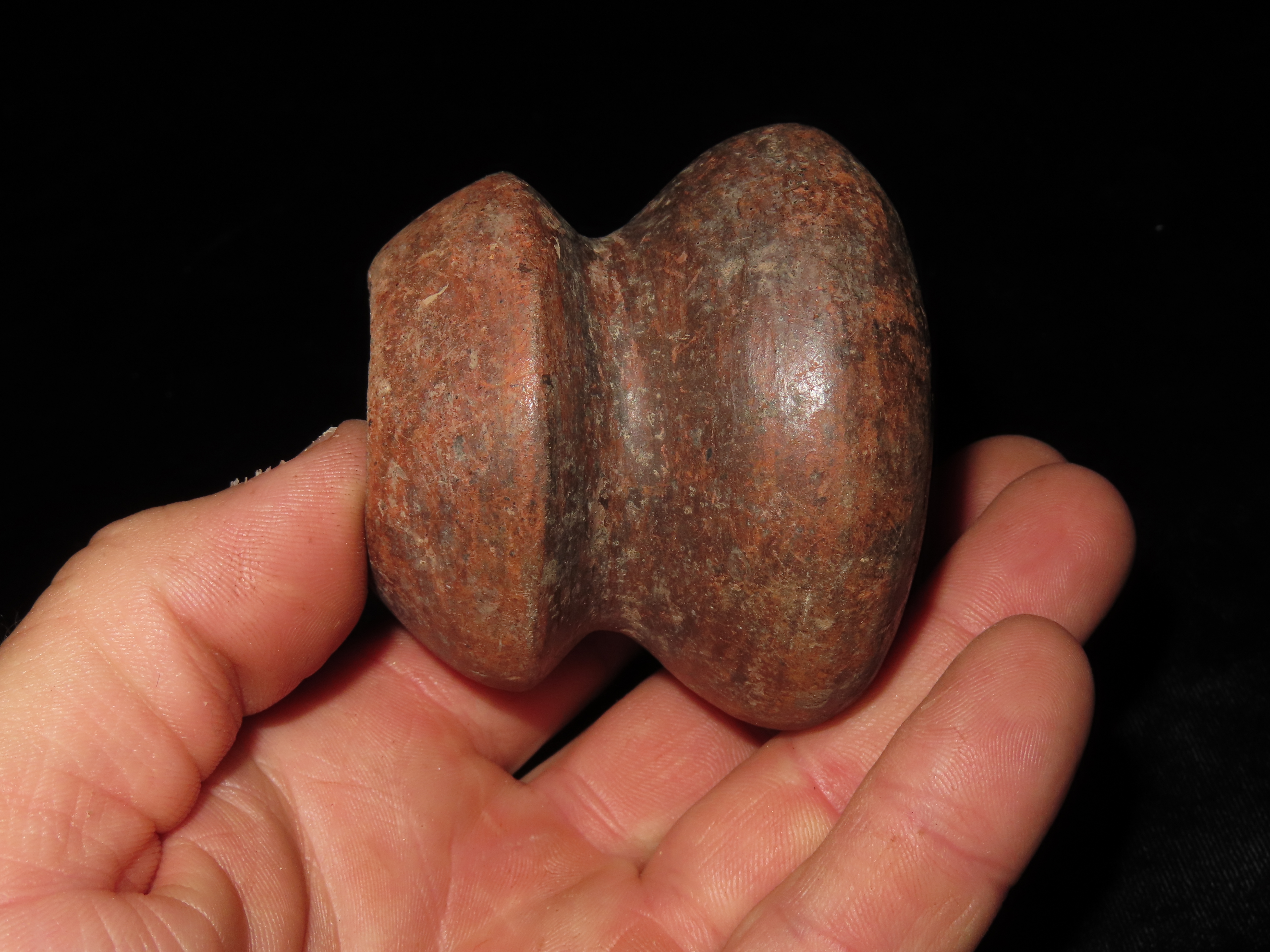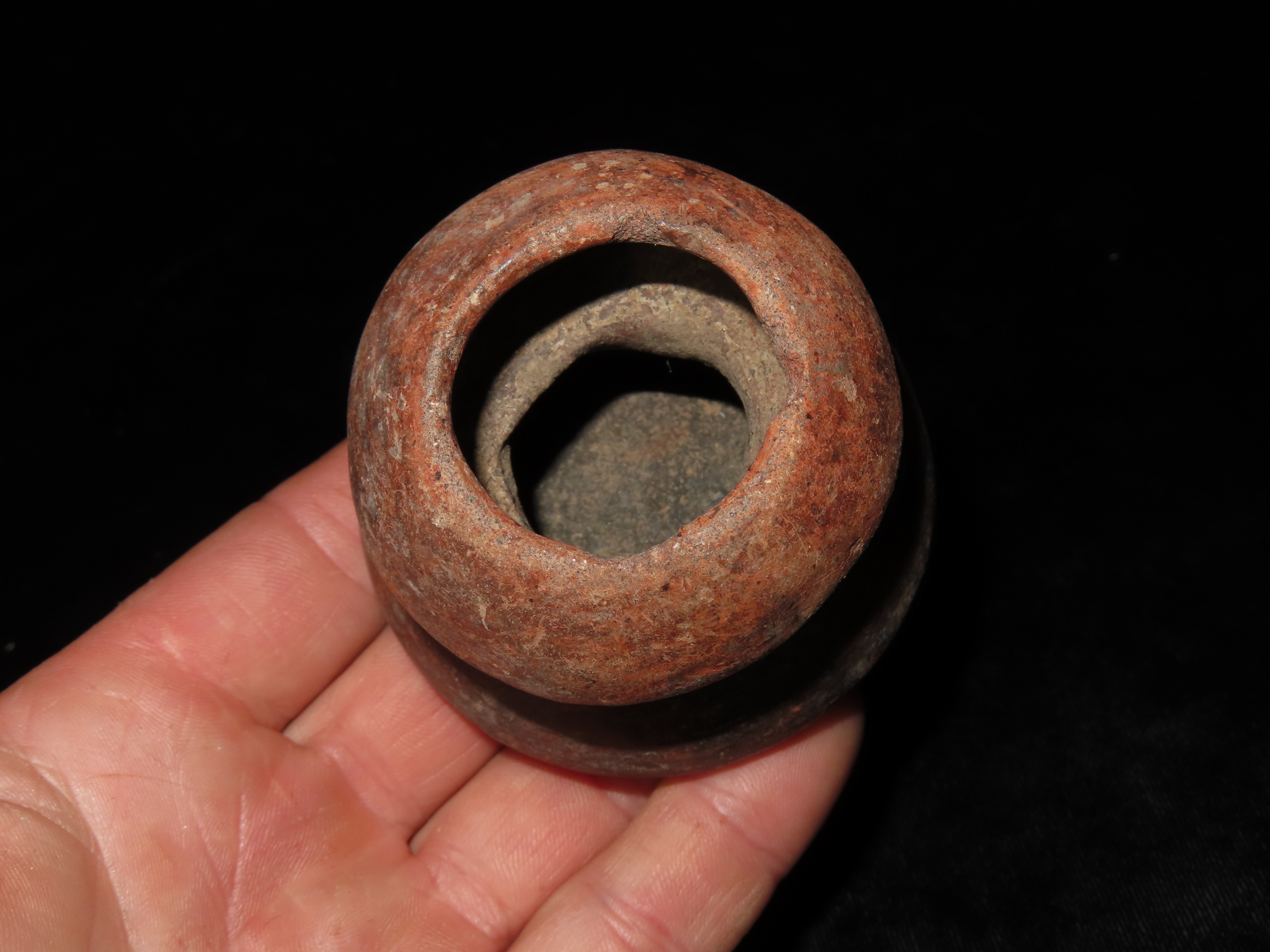 2 1/2" Pre-Colombian Pottery Vessel, Fully Grooved around middle, found in South America Ex Ernest Brose Collection