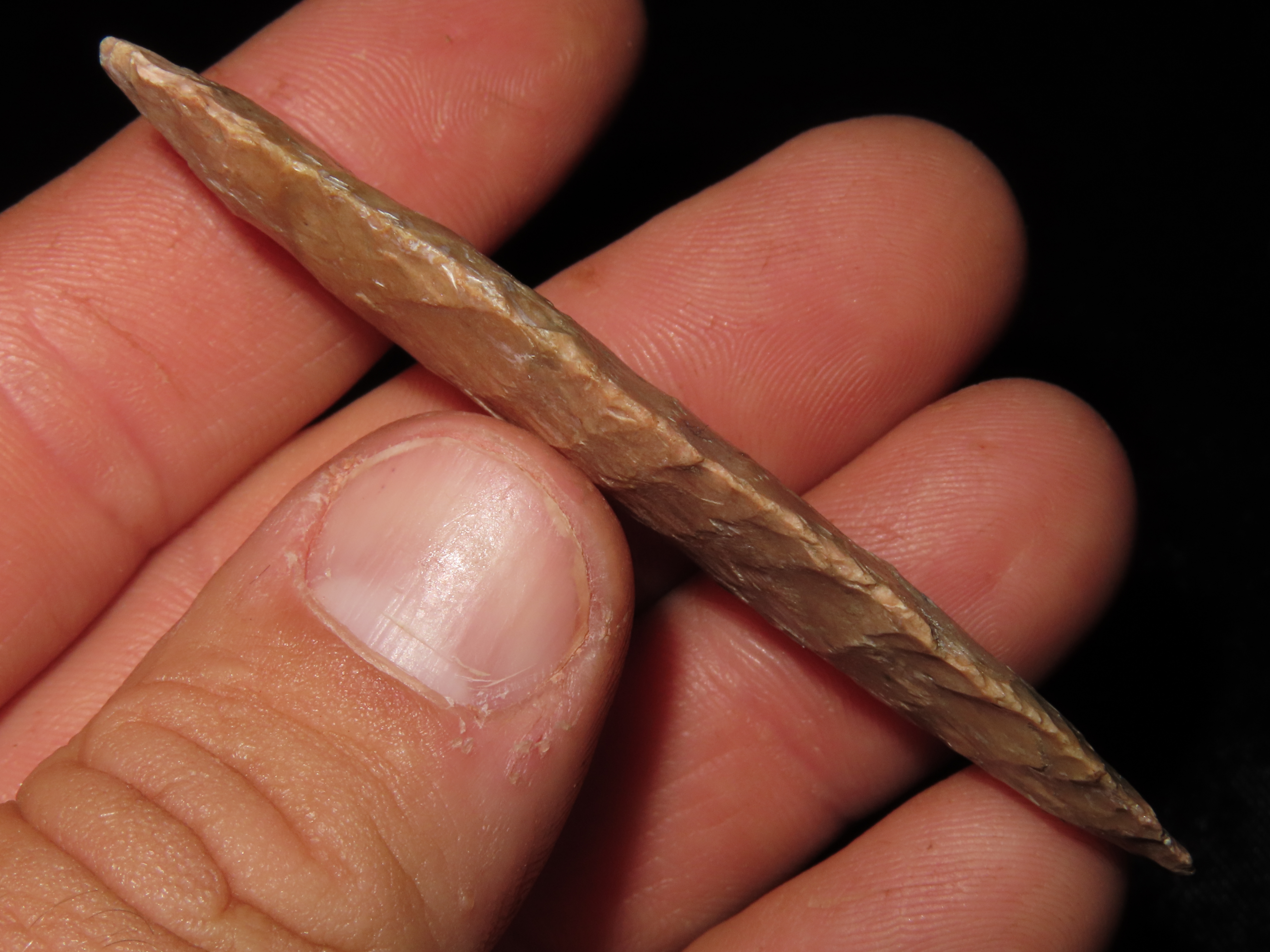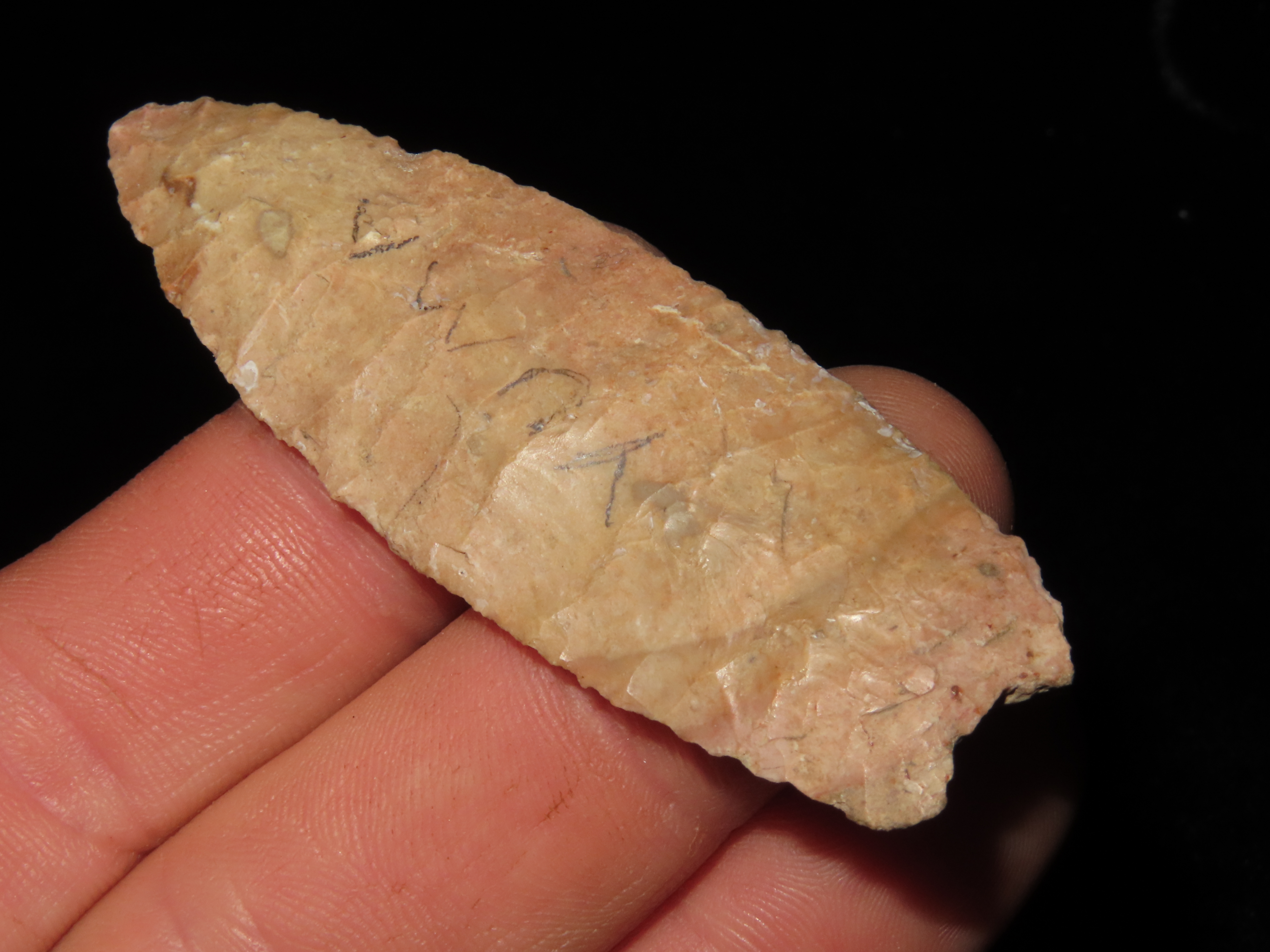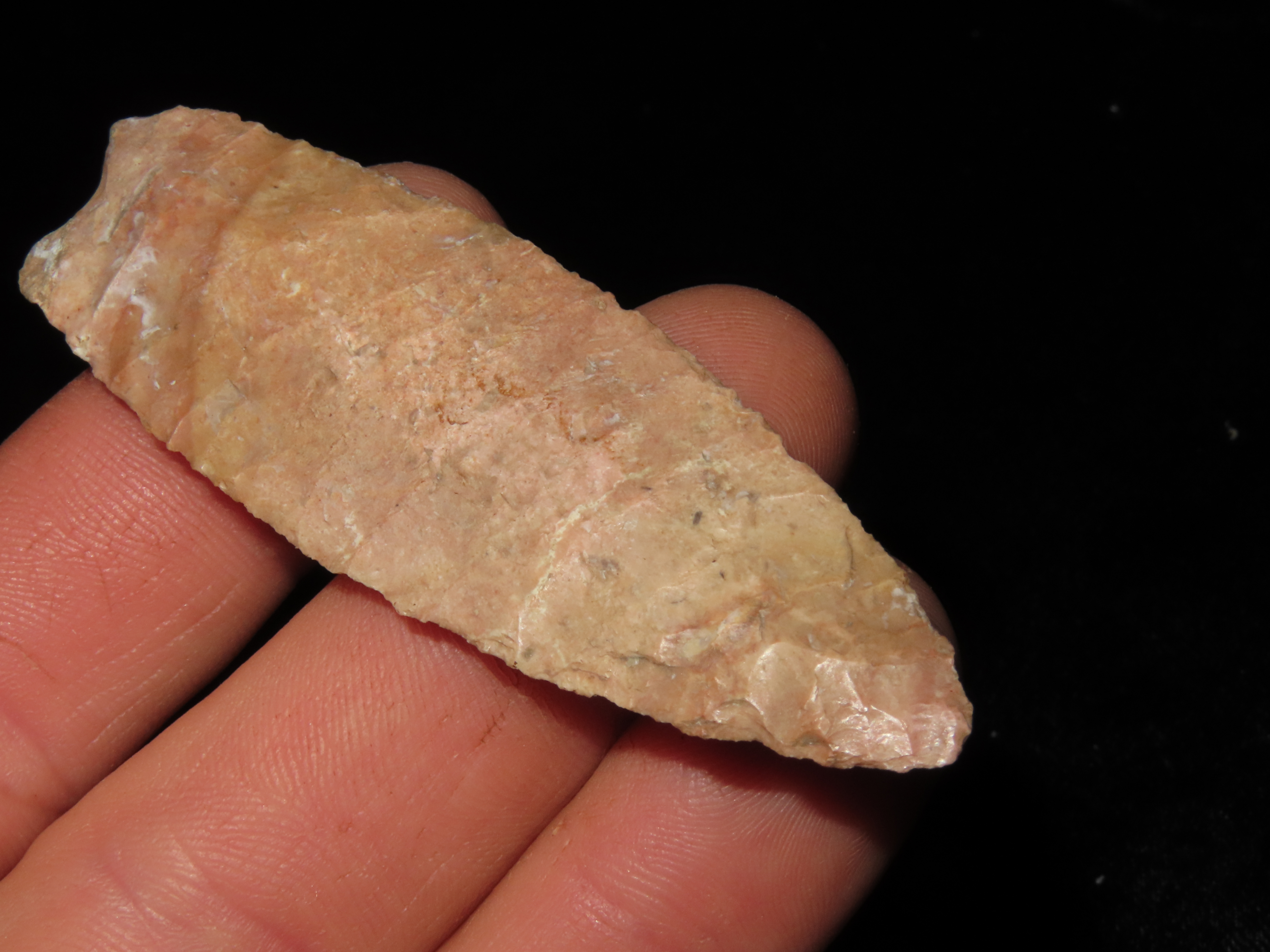 2 7/8″ Agate Basin, featuring great flaking, found near Yuma, Arizona Ex Ernest Brose Collection