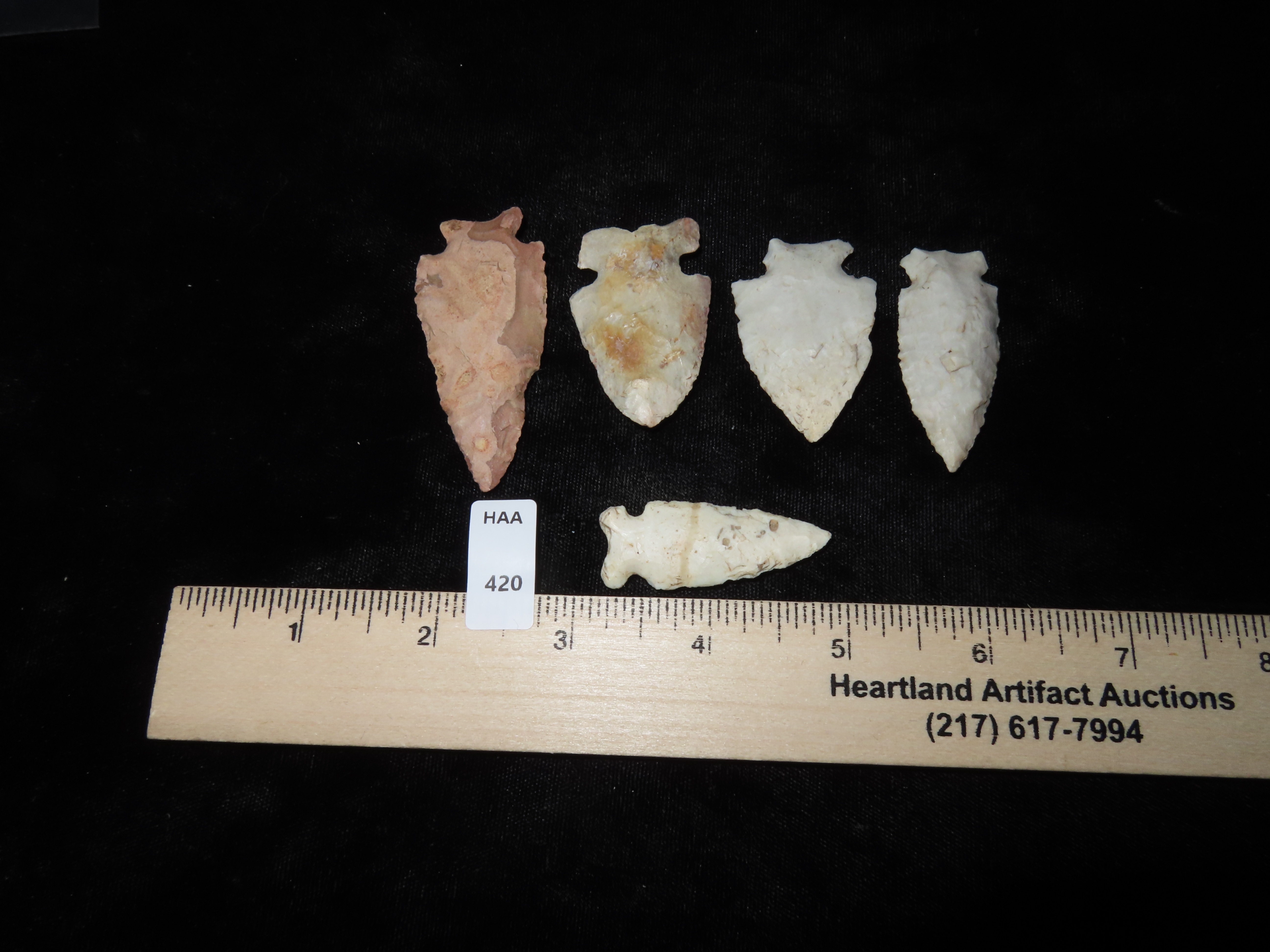 Lot of 5 Illinois & Missouri Archaic Points Ex Ernest Brose Collection