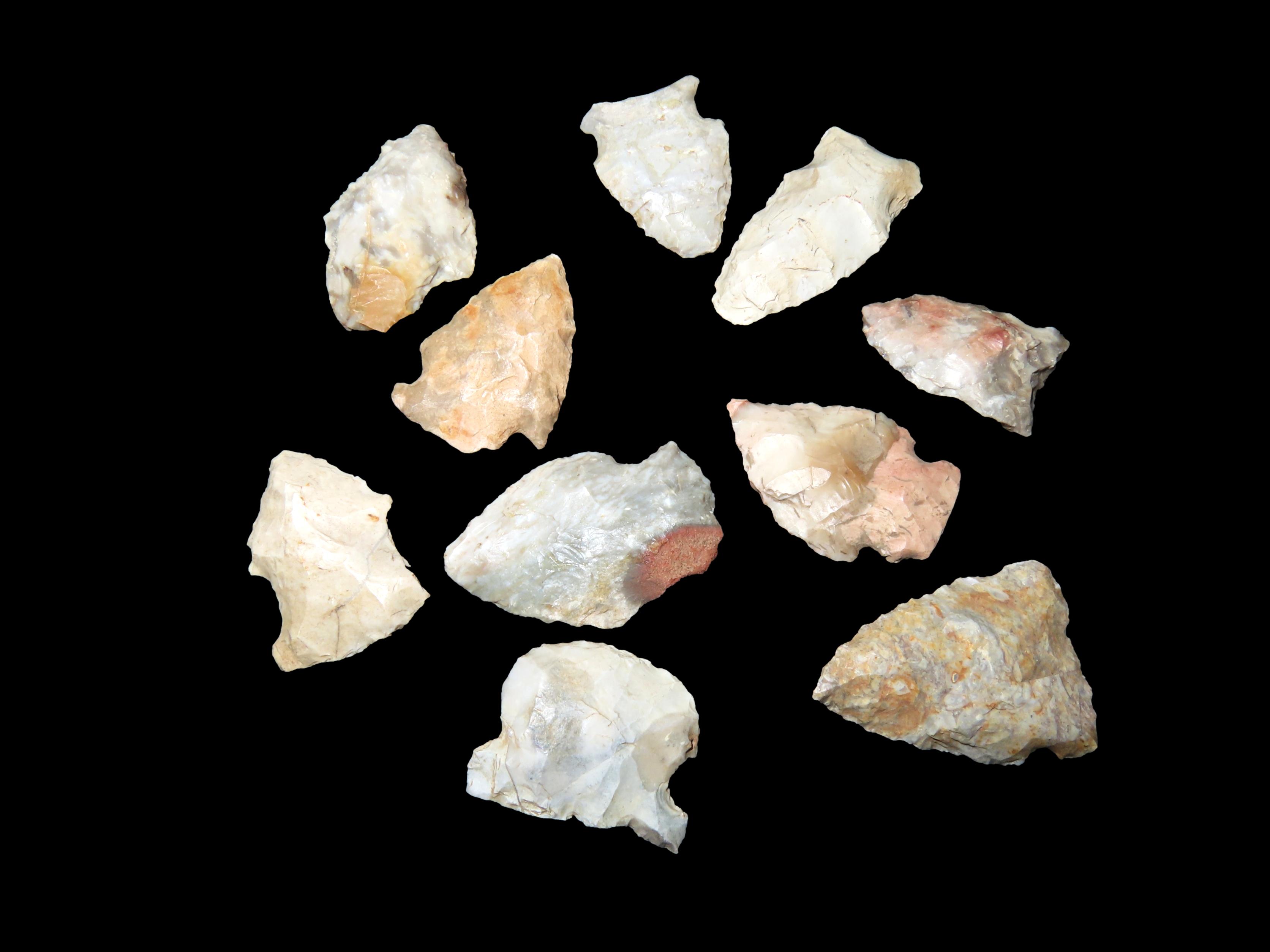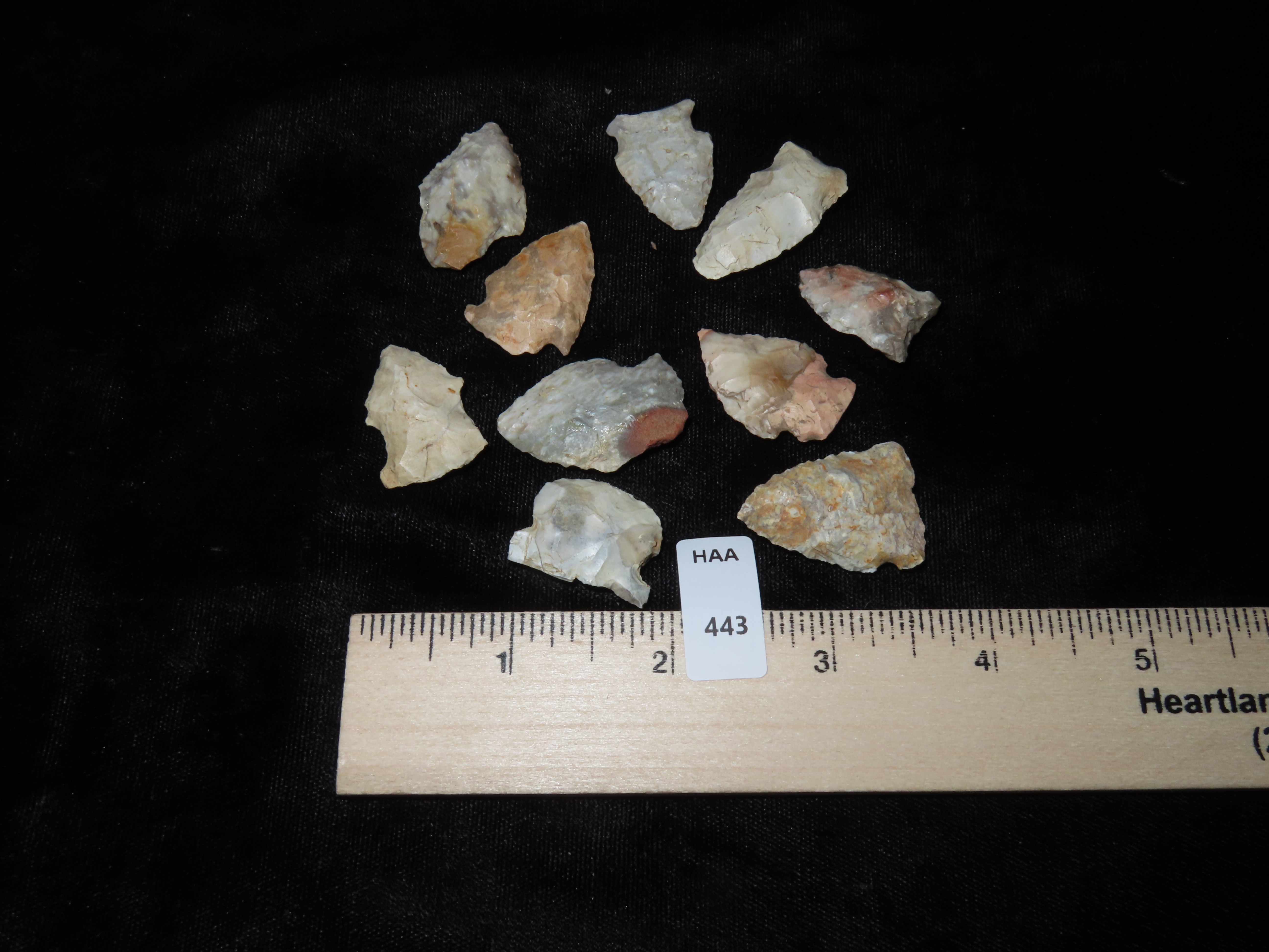 Grouping of 10 Woodland and Archaic Points, found in DeKalb Co., Illinois