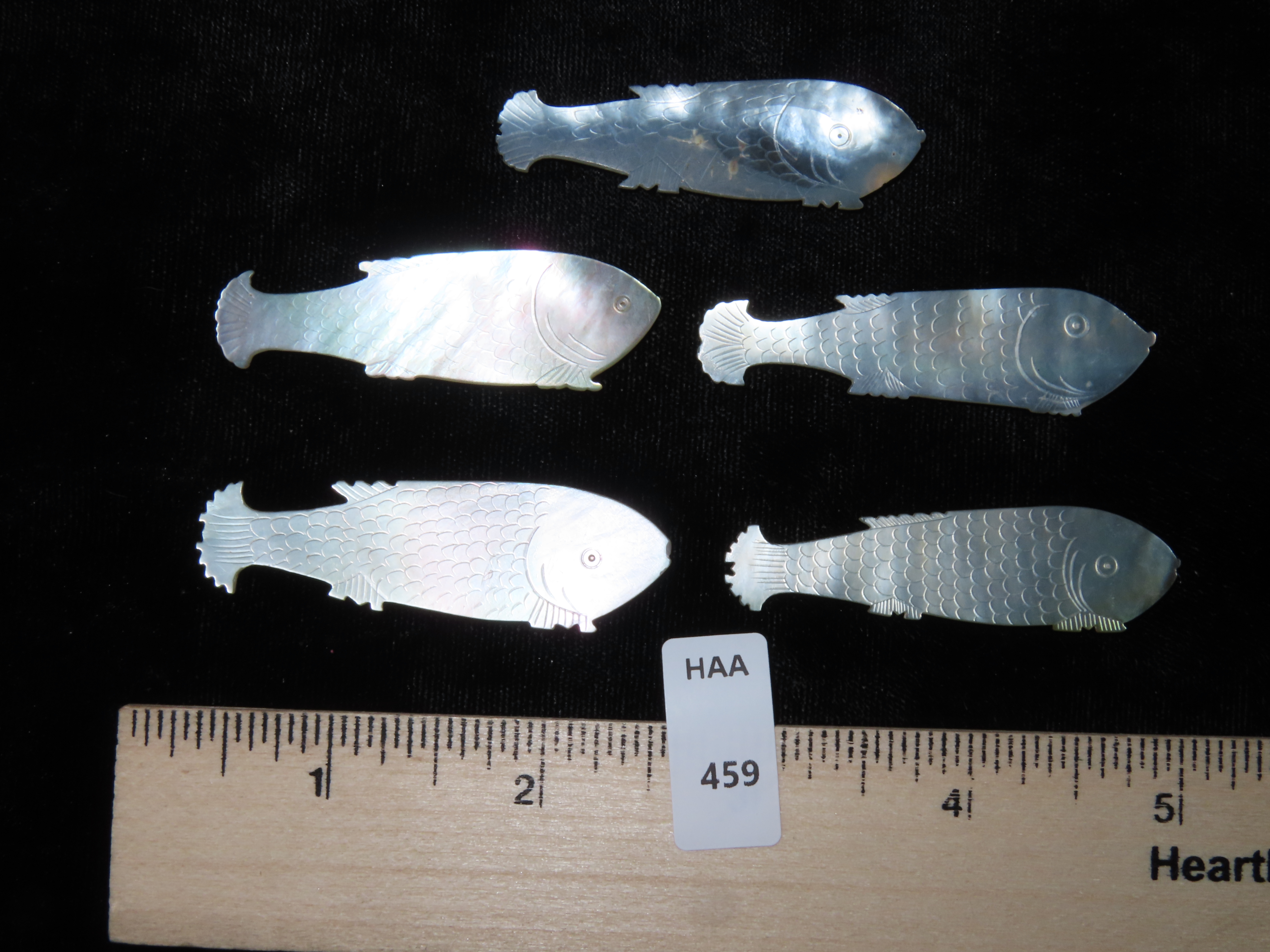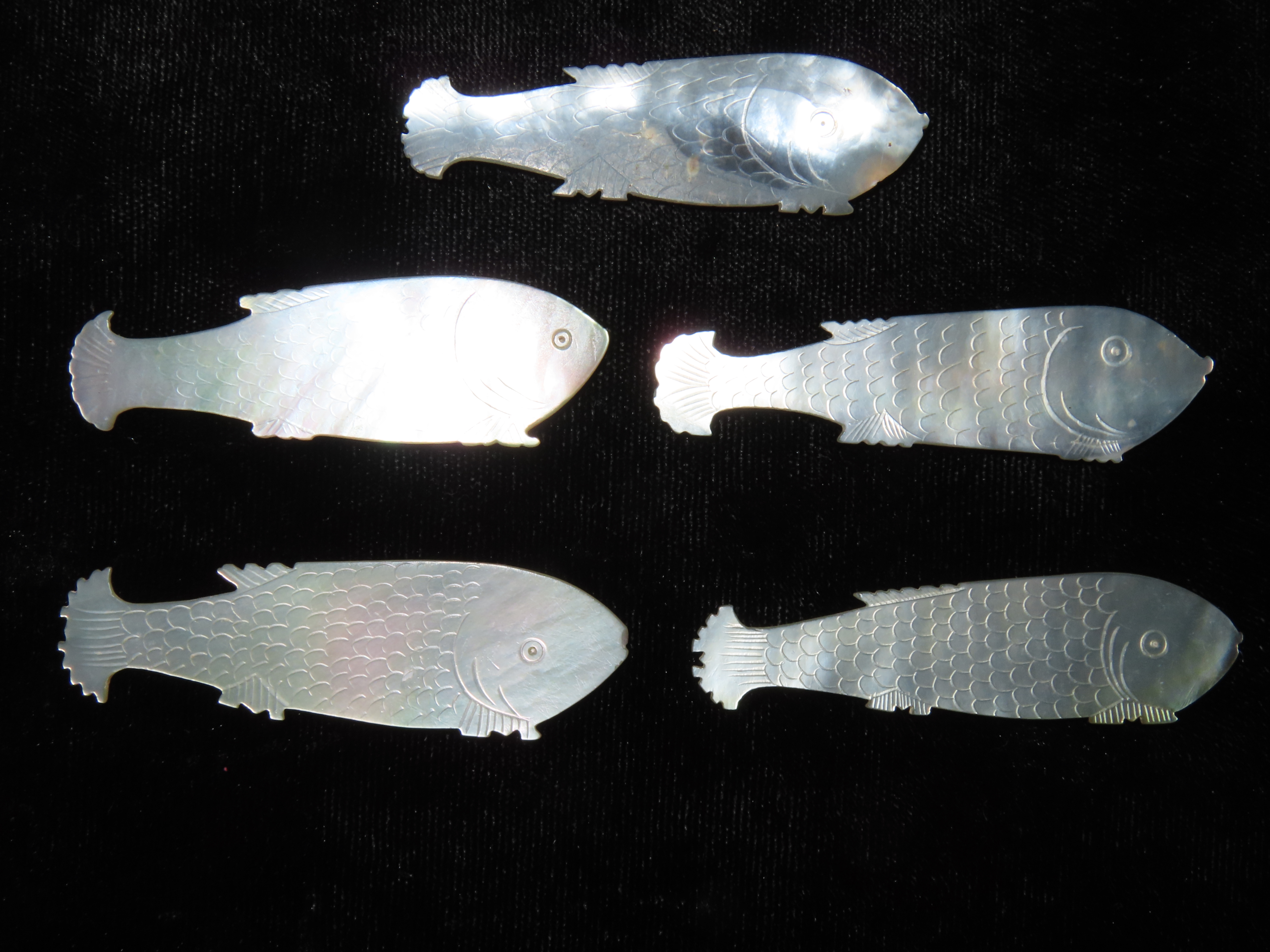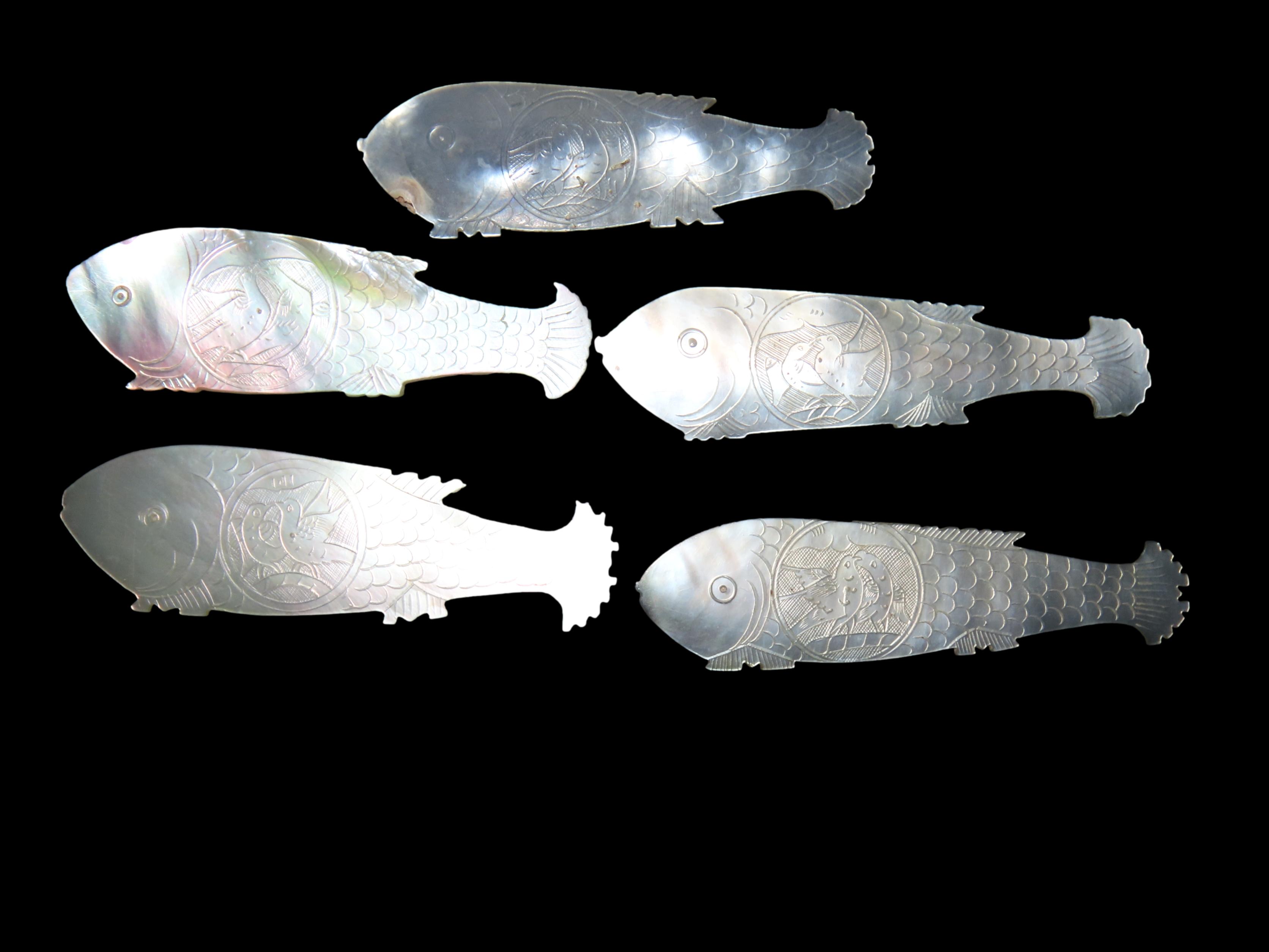 Set of 5 Engraved Chinese Koi Mother-Of-Pearl Gaming Counters , Ex Randall May Collection