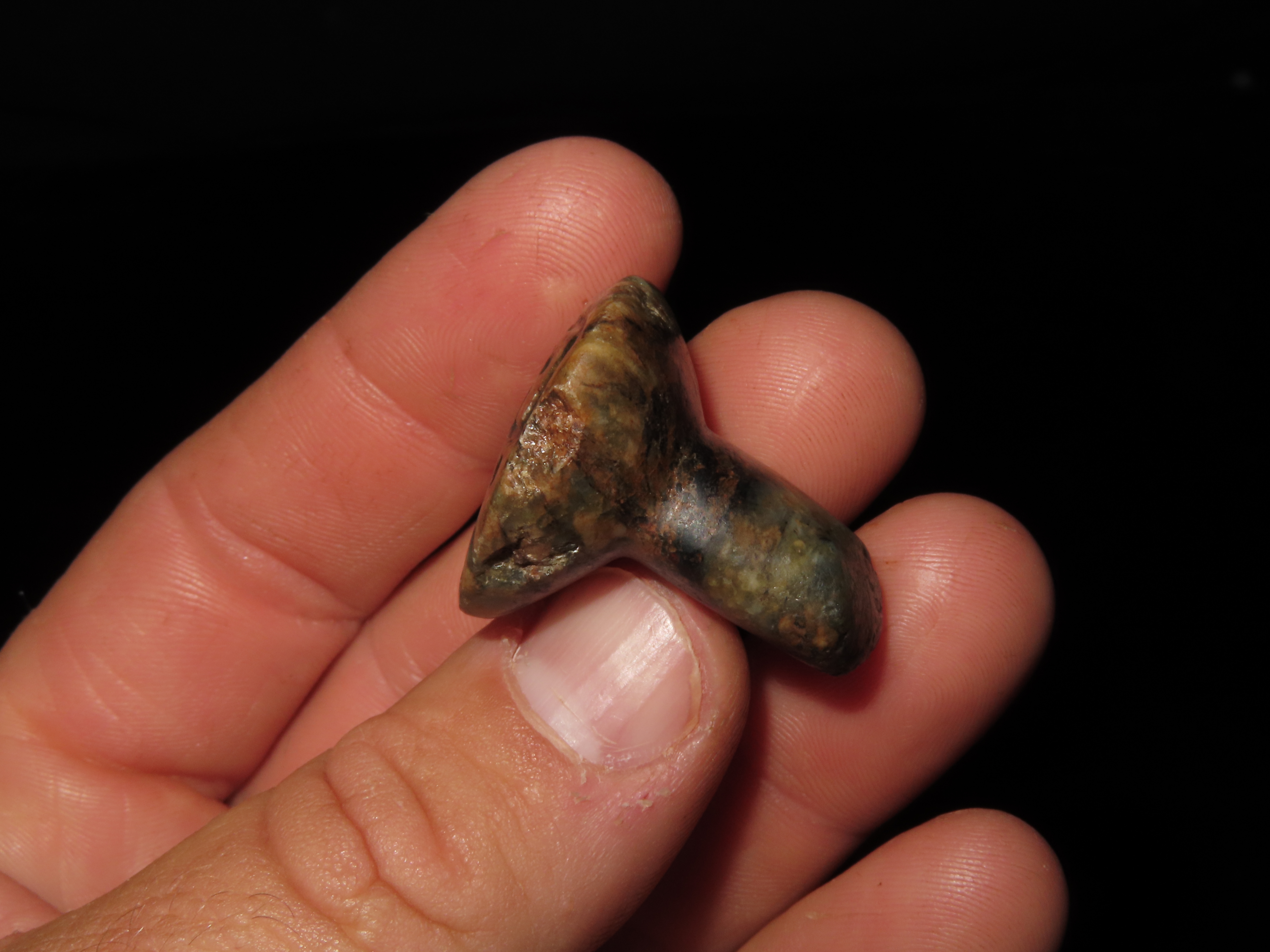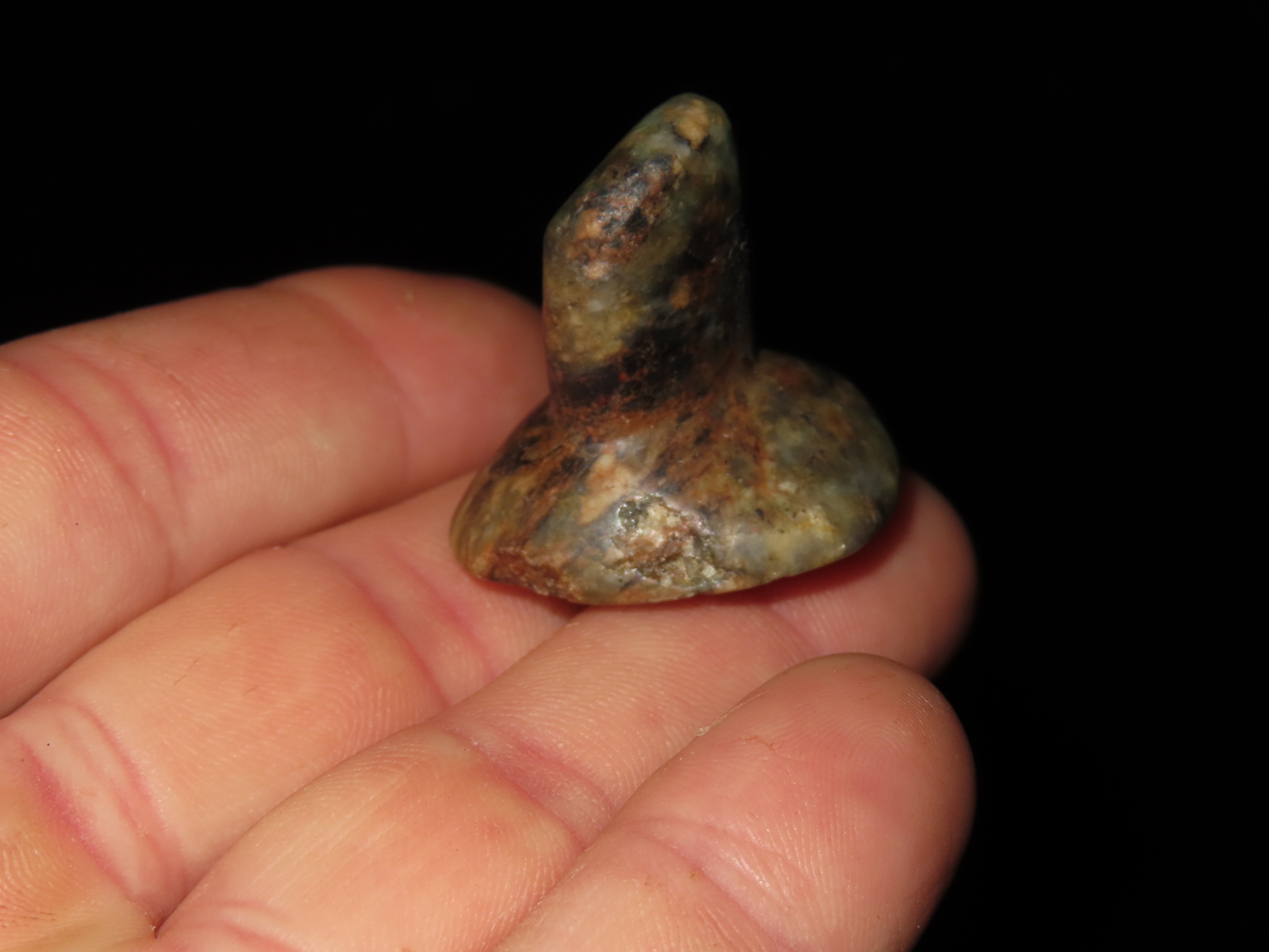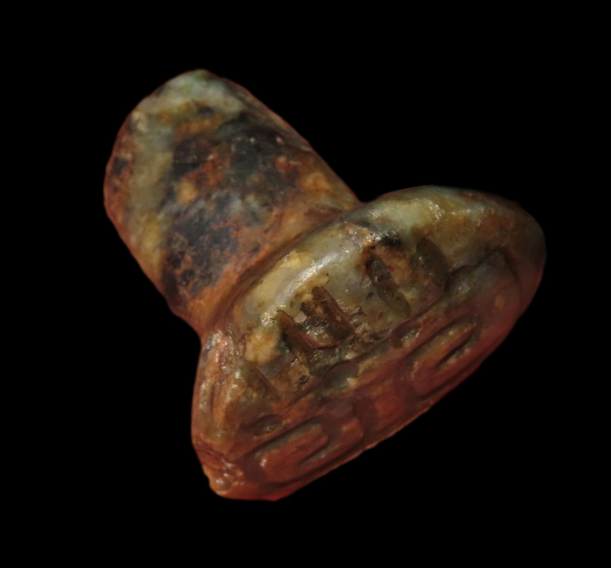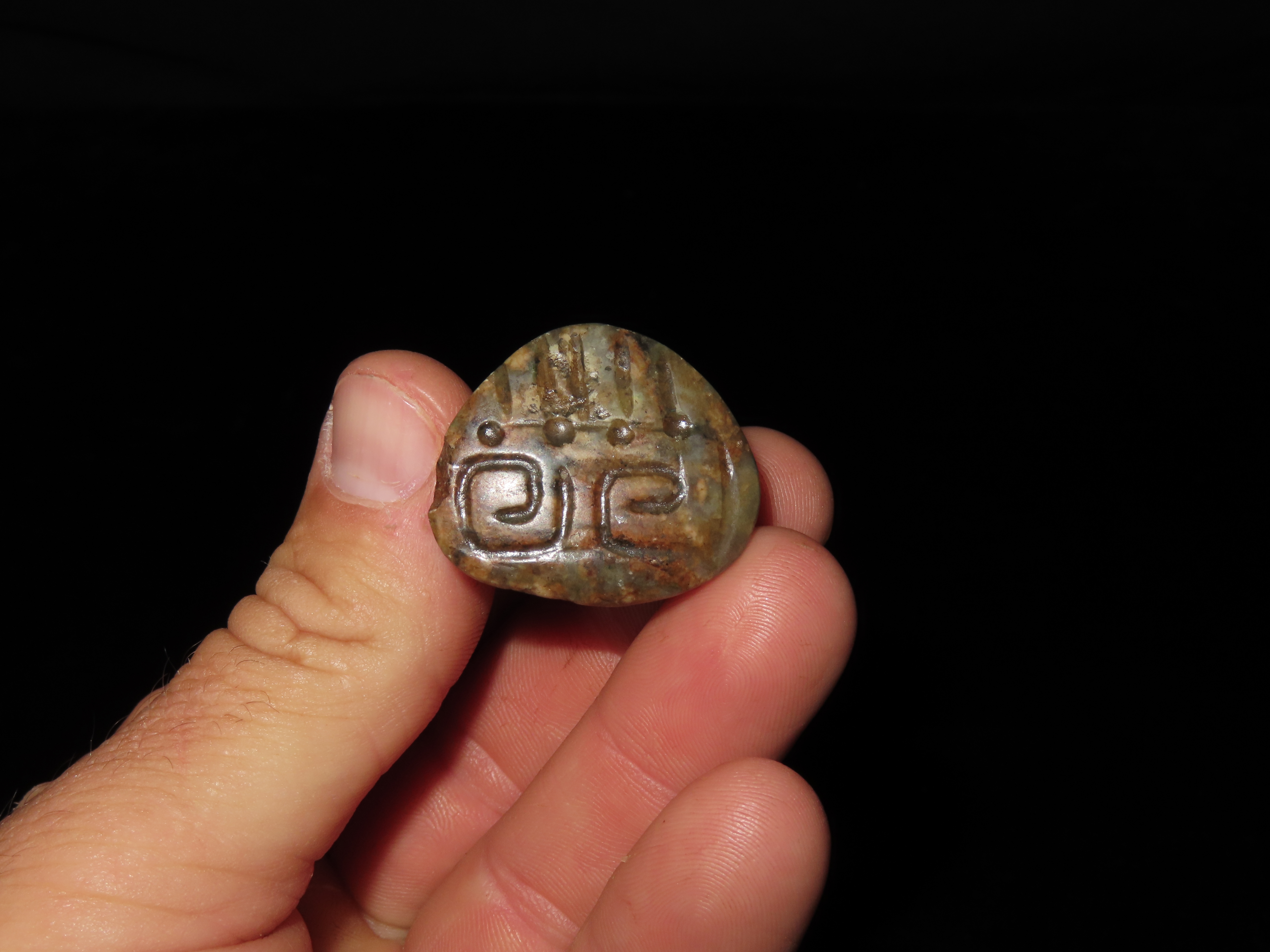 1 3/8″ Pre-Colombian Incised Jade Labret Decoration, found in South America, Ex Randall May Collection