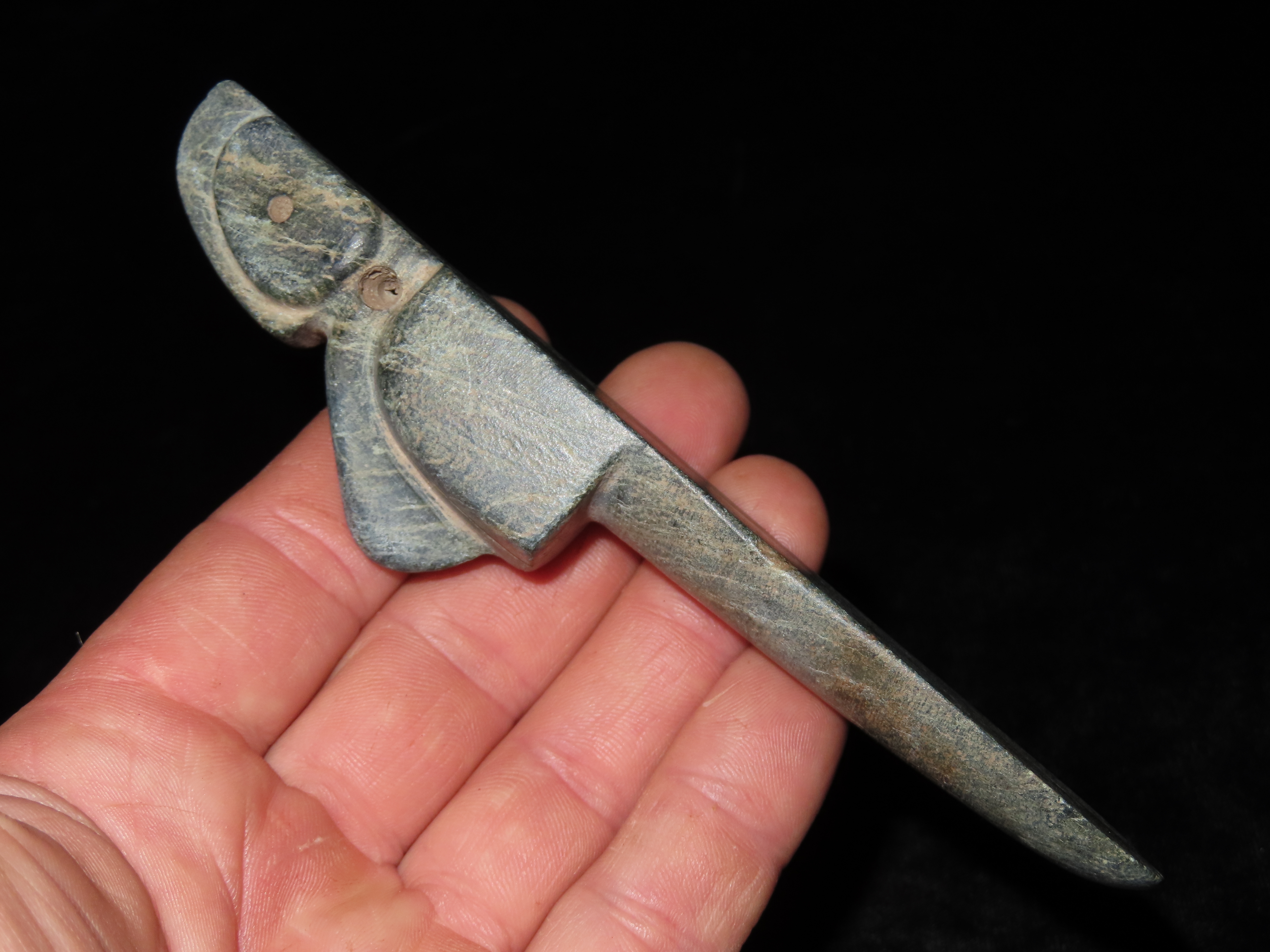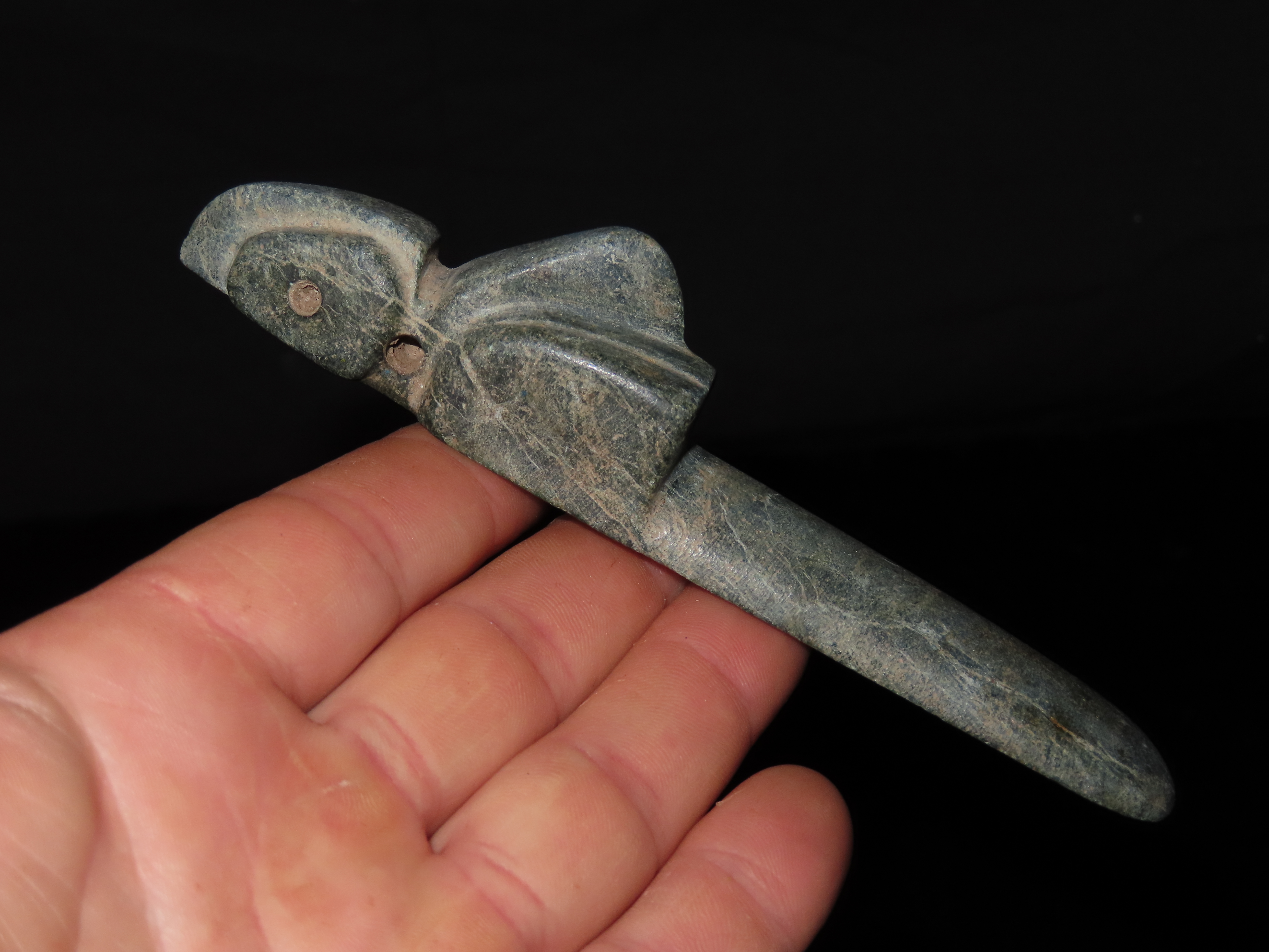 5″ Pre-Colombian Axe God Bird Effigy Pendant, found in Costa Rica, ca. 500 BC to 900 AD, Ex Randall May Collection