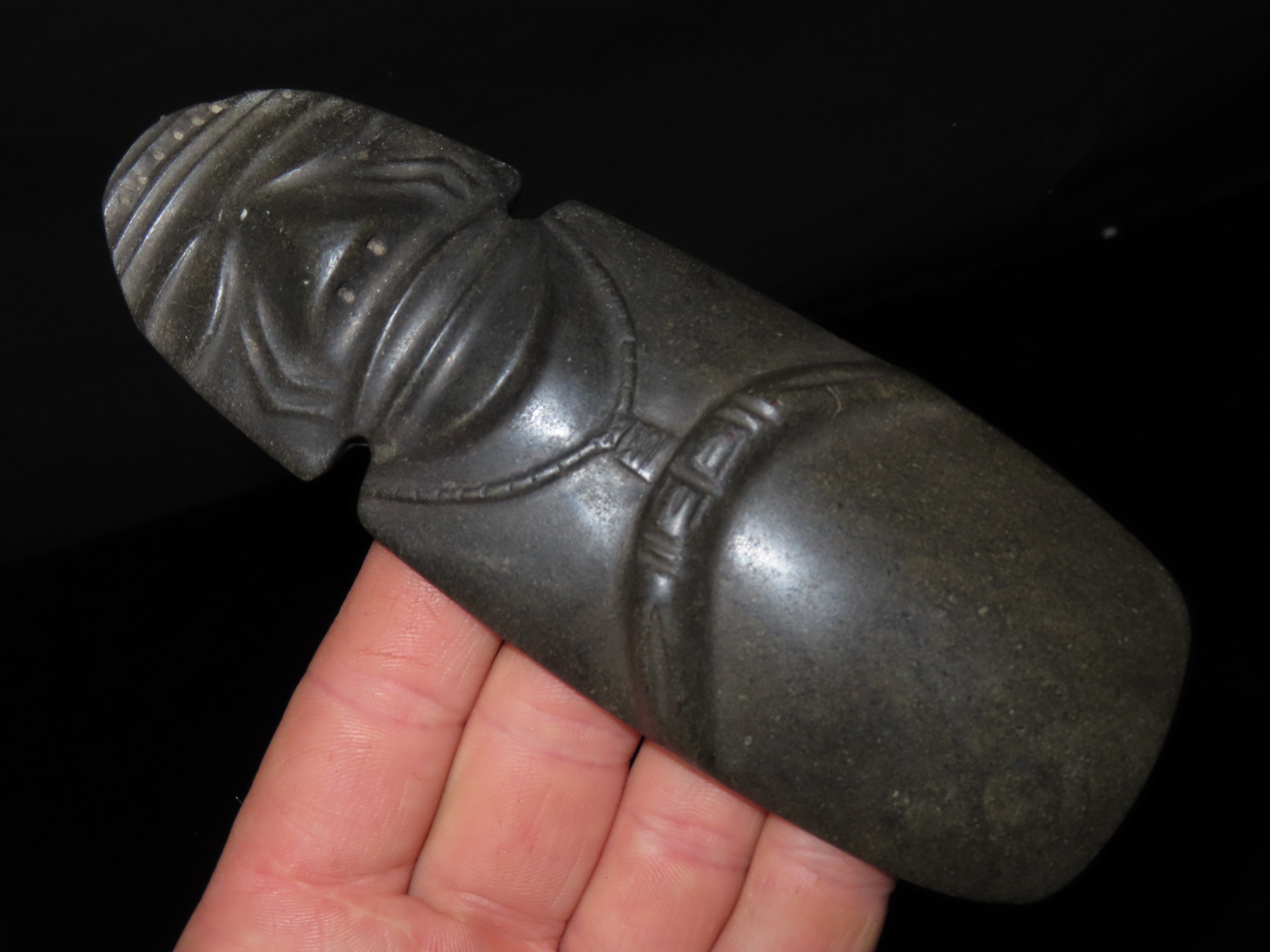 6 1/8″ Pre-Colombian Axe God Pendant, found in Costa Rica, ca. 500 BC to 900 AD, Ex Randall May Collection
