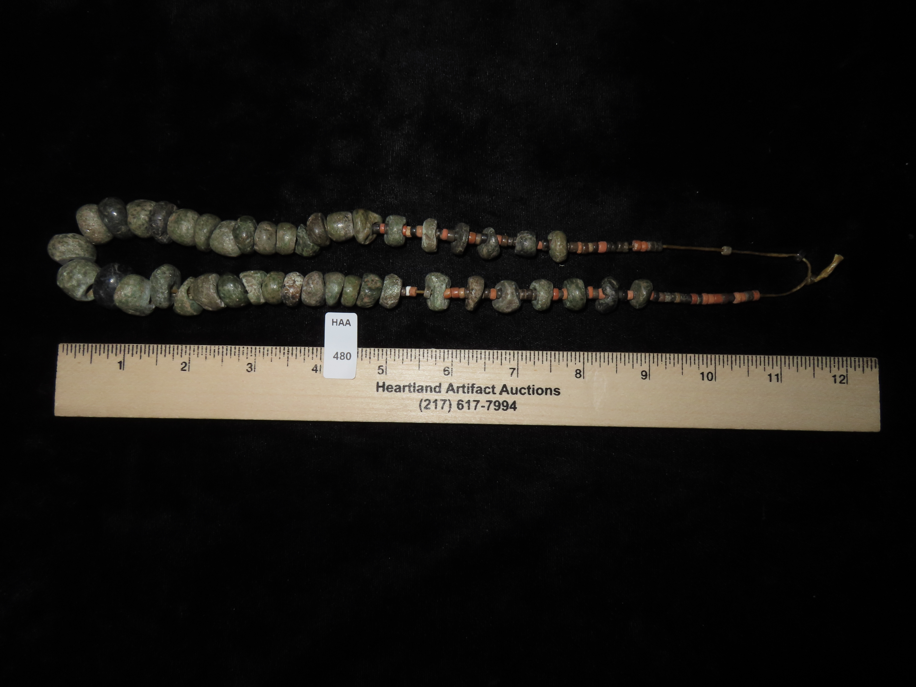 20″ Strand of Pre-Colombian Jade and Stone Beads, found in South America, Ex Randall May Collection