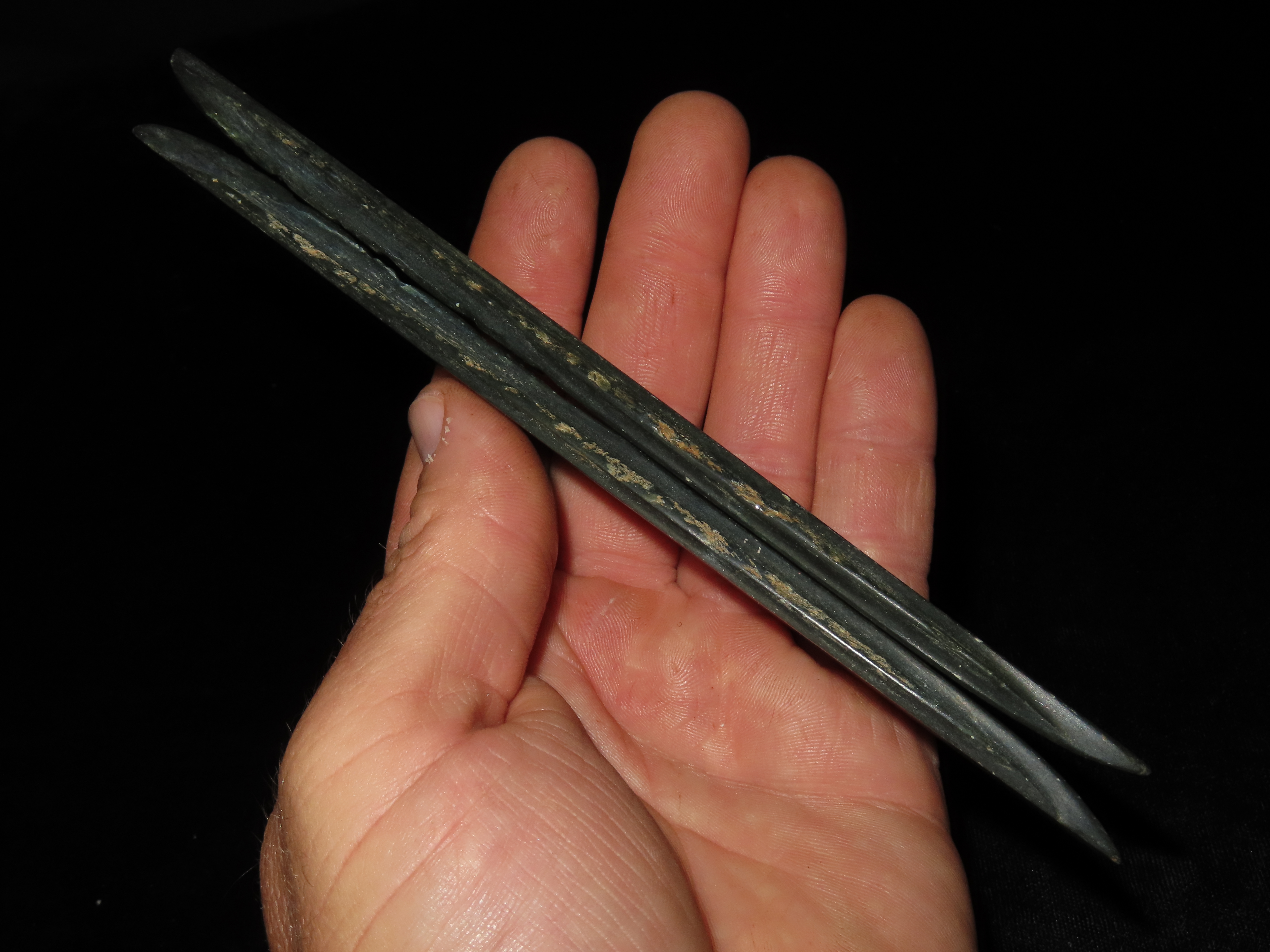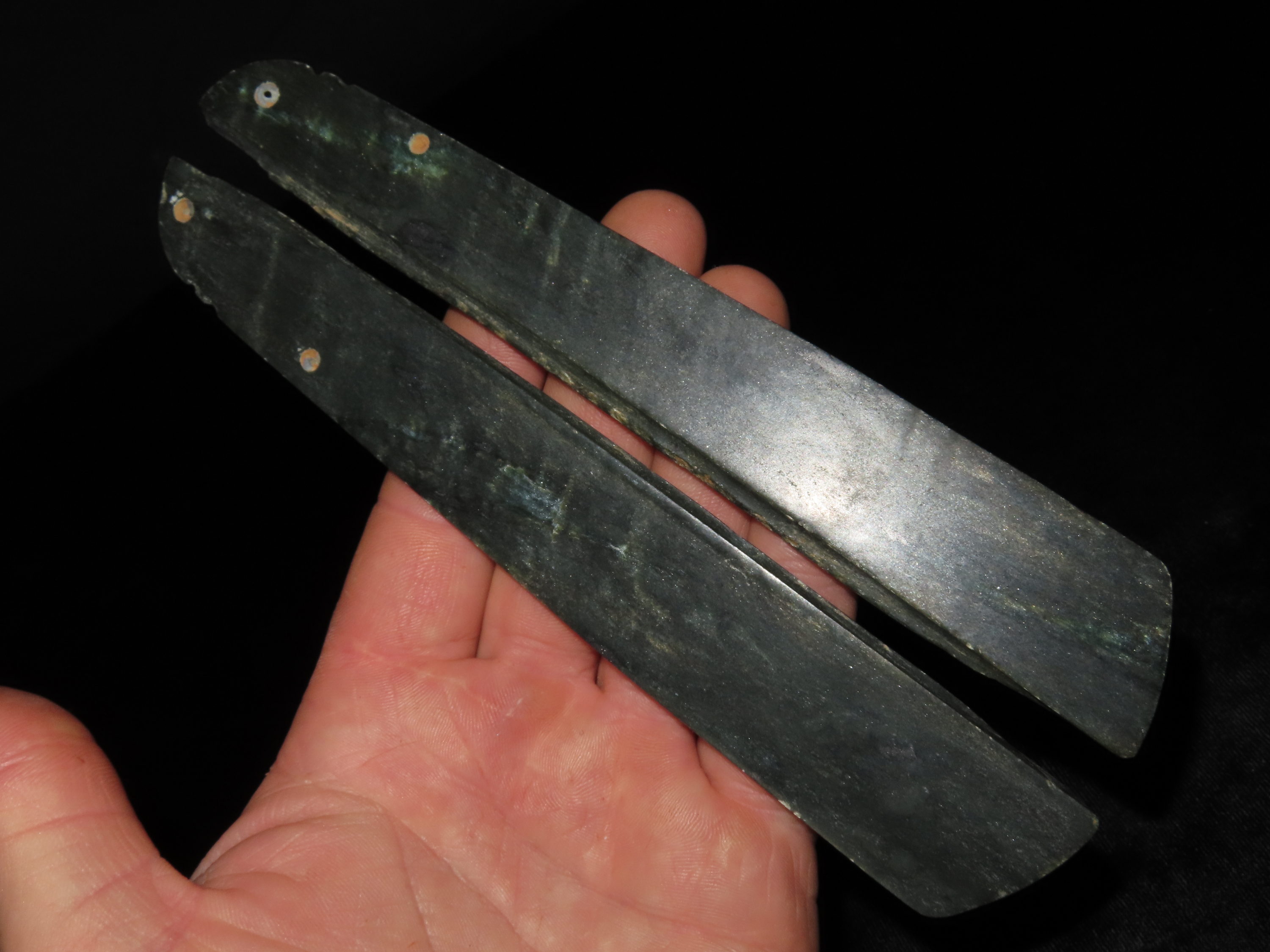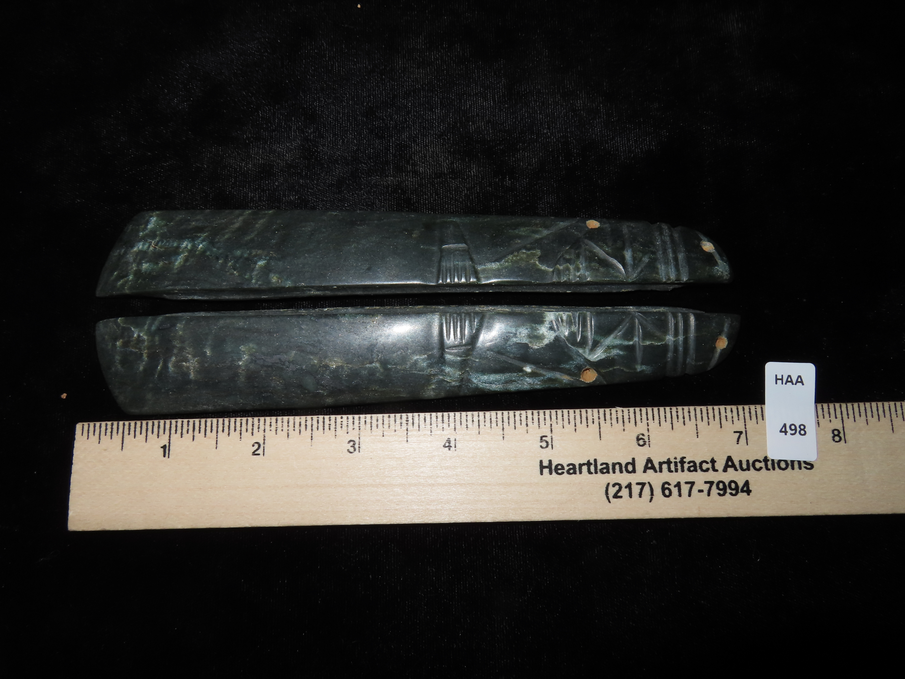 7 1/8″ Rare Split Pre-Colombian Jade Axe God Effigy Pendant, found in Costa Rica, ca. 800 BCE to 900 AD, Ex Randall May Collection