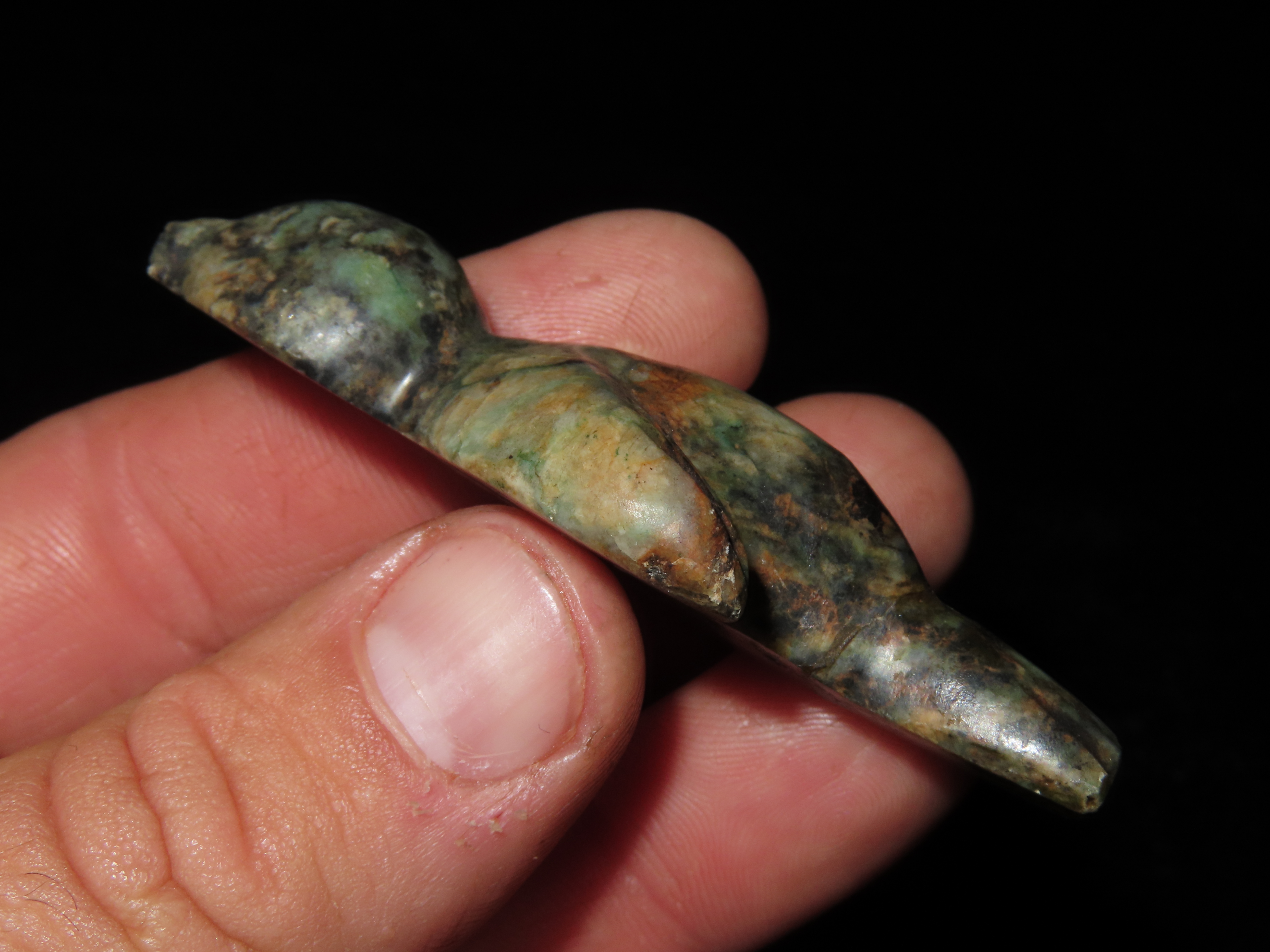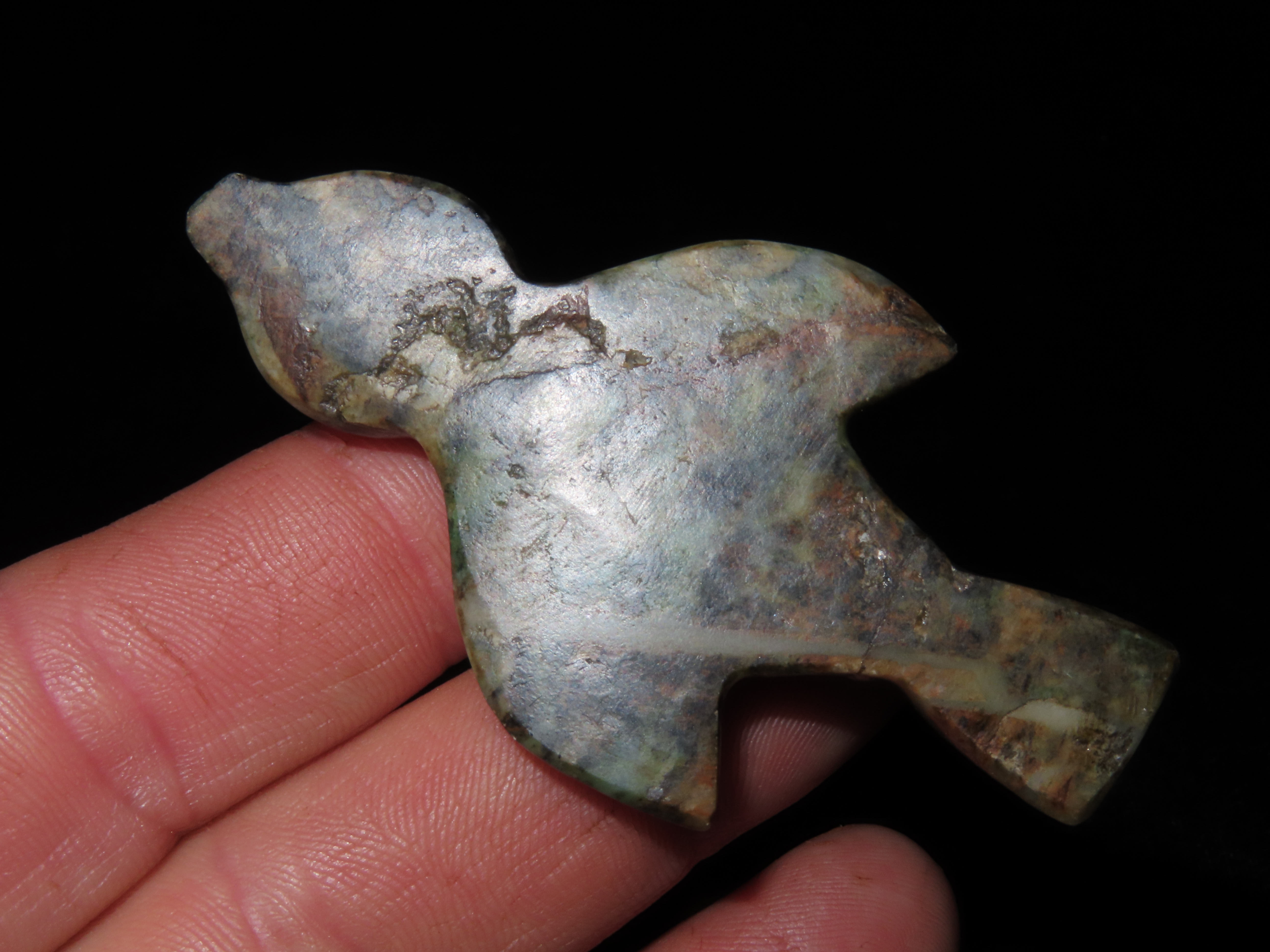 2 3/4″ Pre-Colombian Jade Bird Effigy, found in South America, Ex Randall May Collection