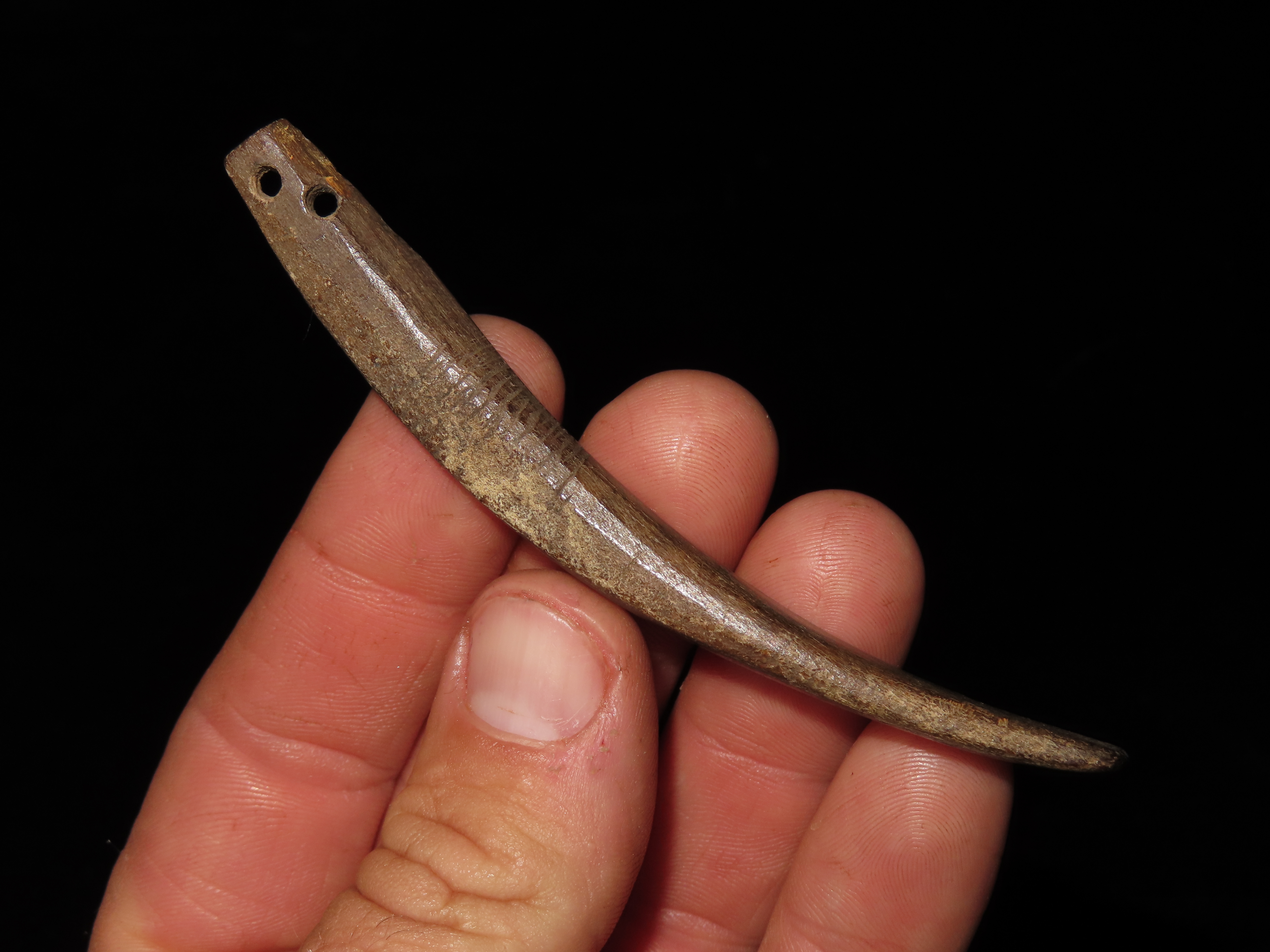 3 3/4″ Alaskan Drilled Bone Pendant, Inuit, Eskimo, Ex Nick Gatses Collection