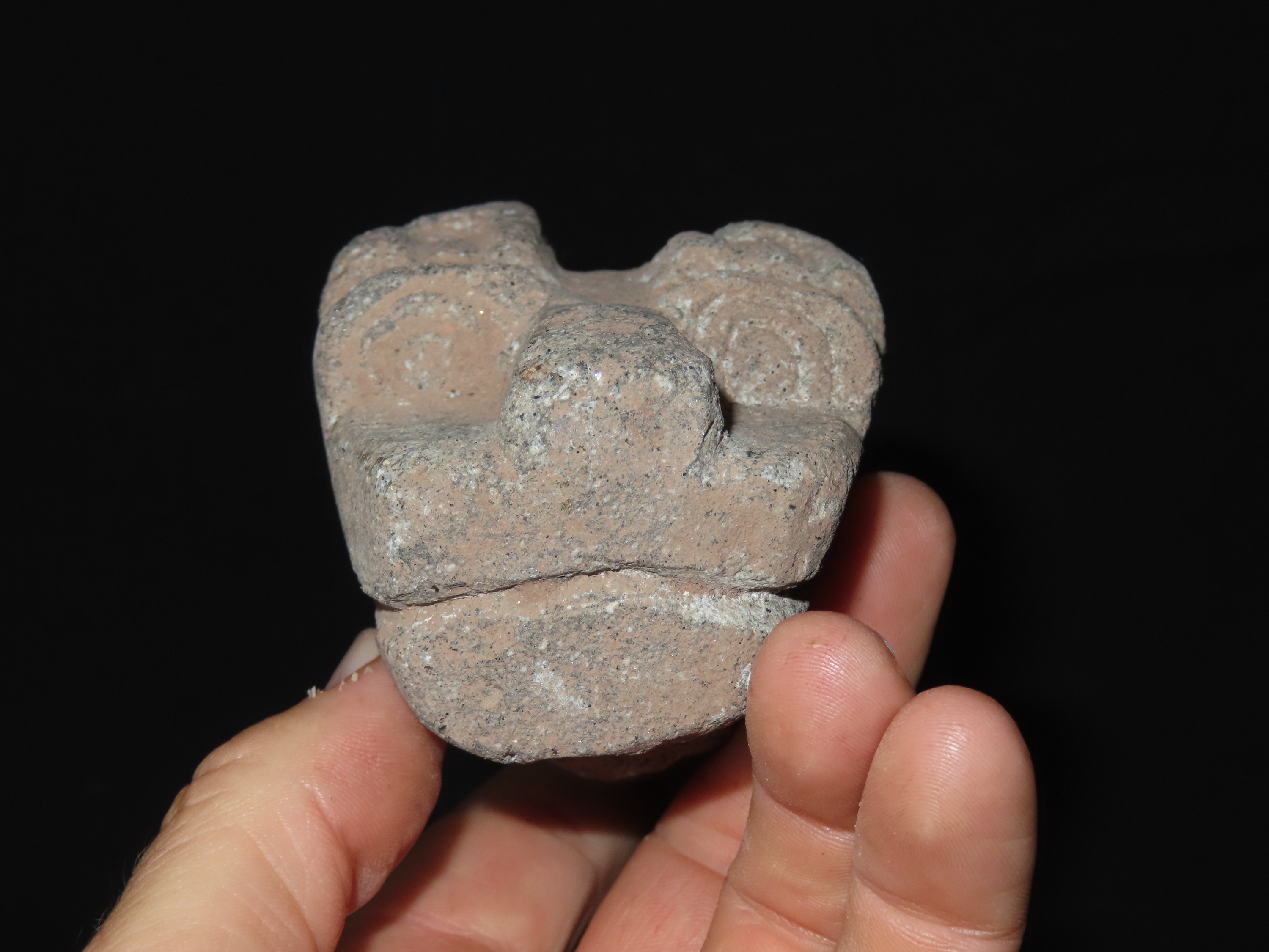 2 3/4″ x 3 1/2″ Pre-Colombian Jaguar Head Effigy, found in South America, Ex Randall May Collection