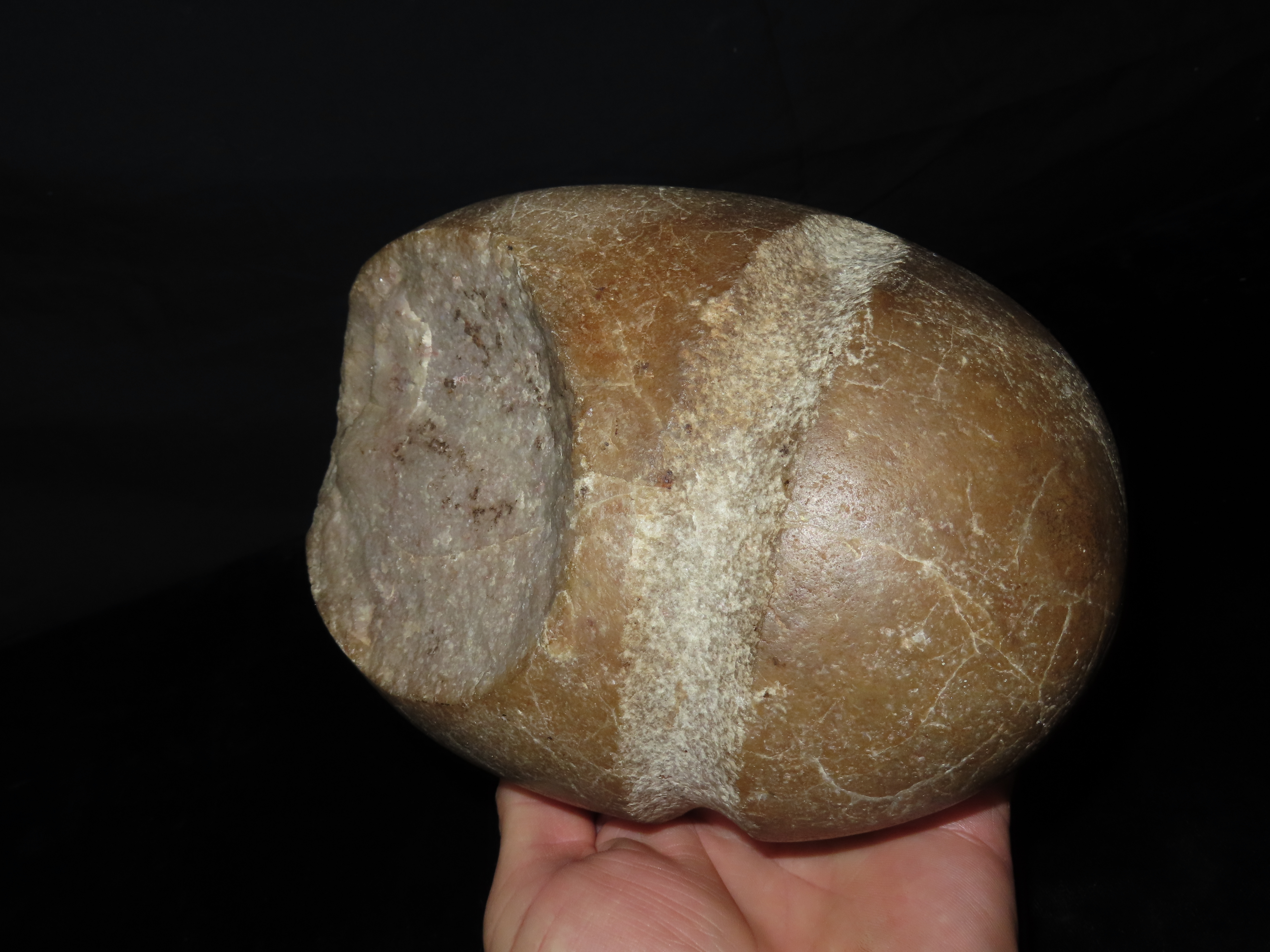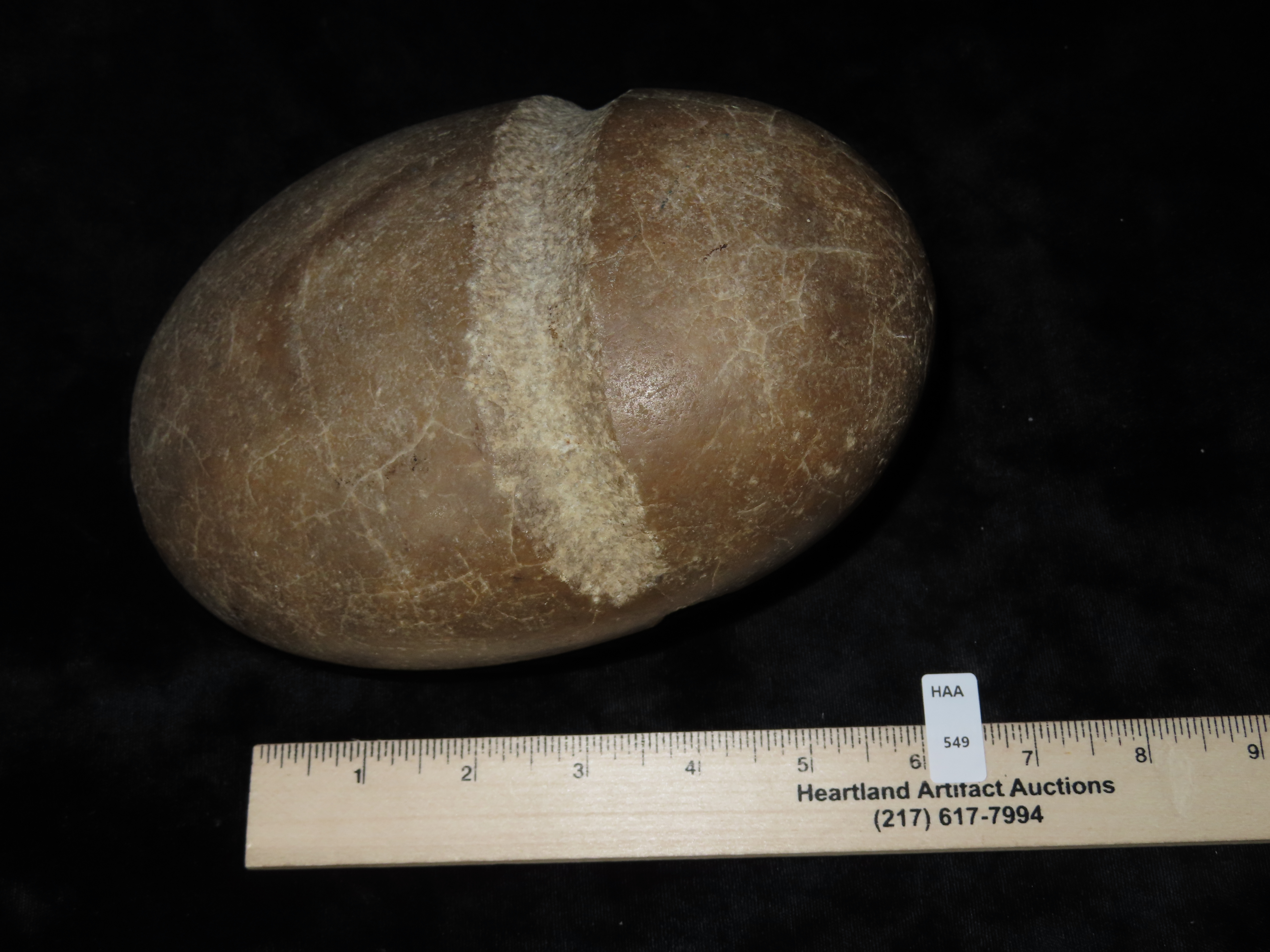 7 1/2″ Quartz Maul Head, almost fully grooved, large defect on one side, Ex Randall May Collection