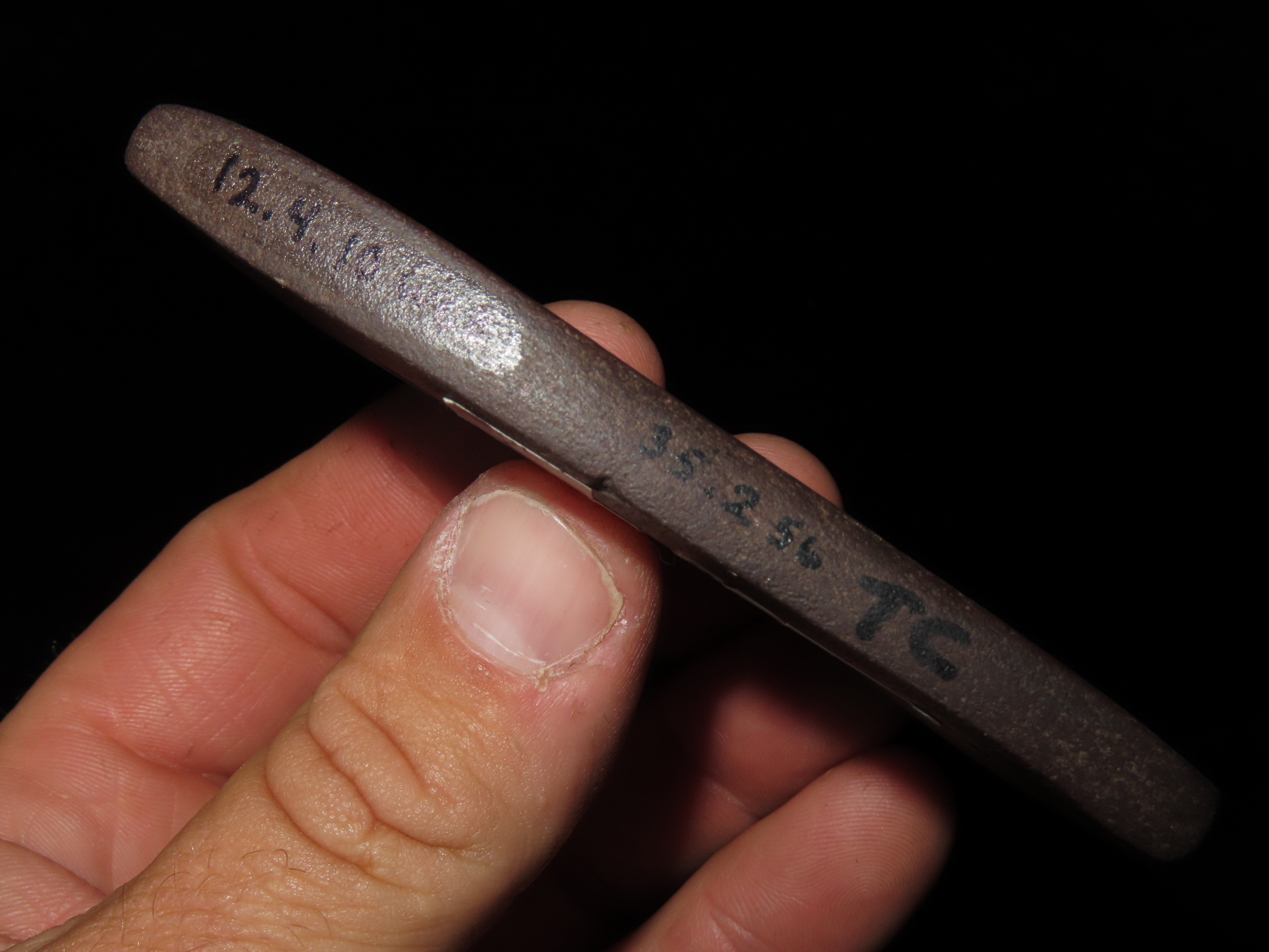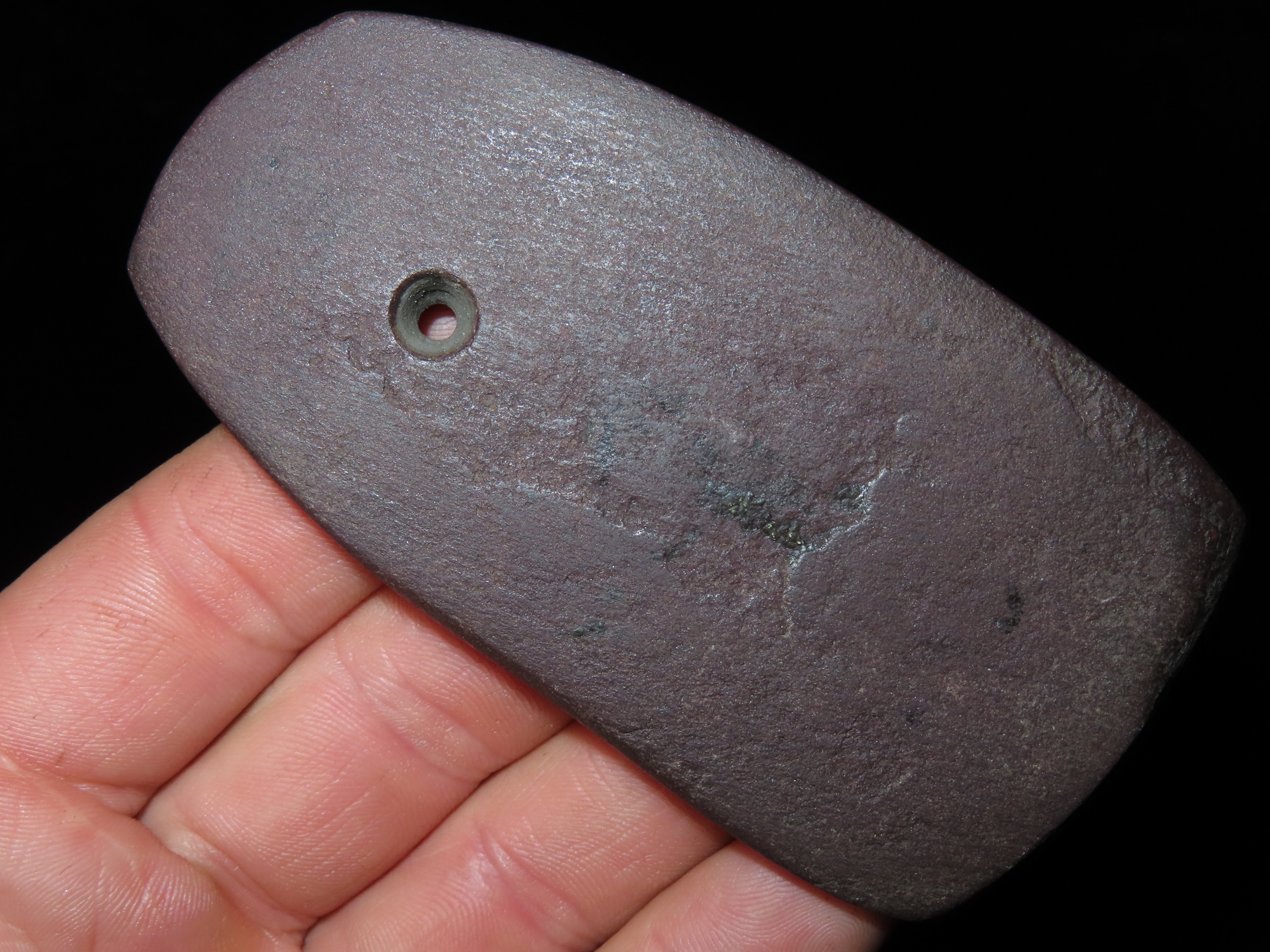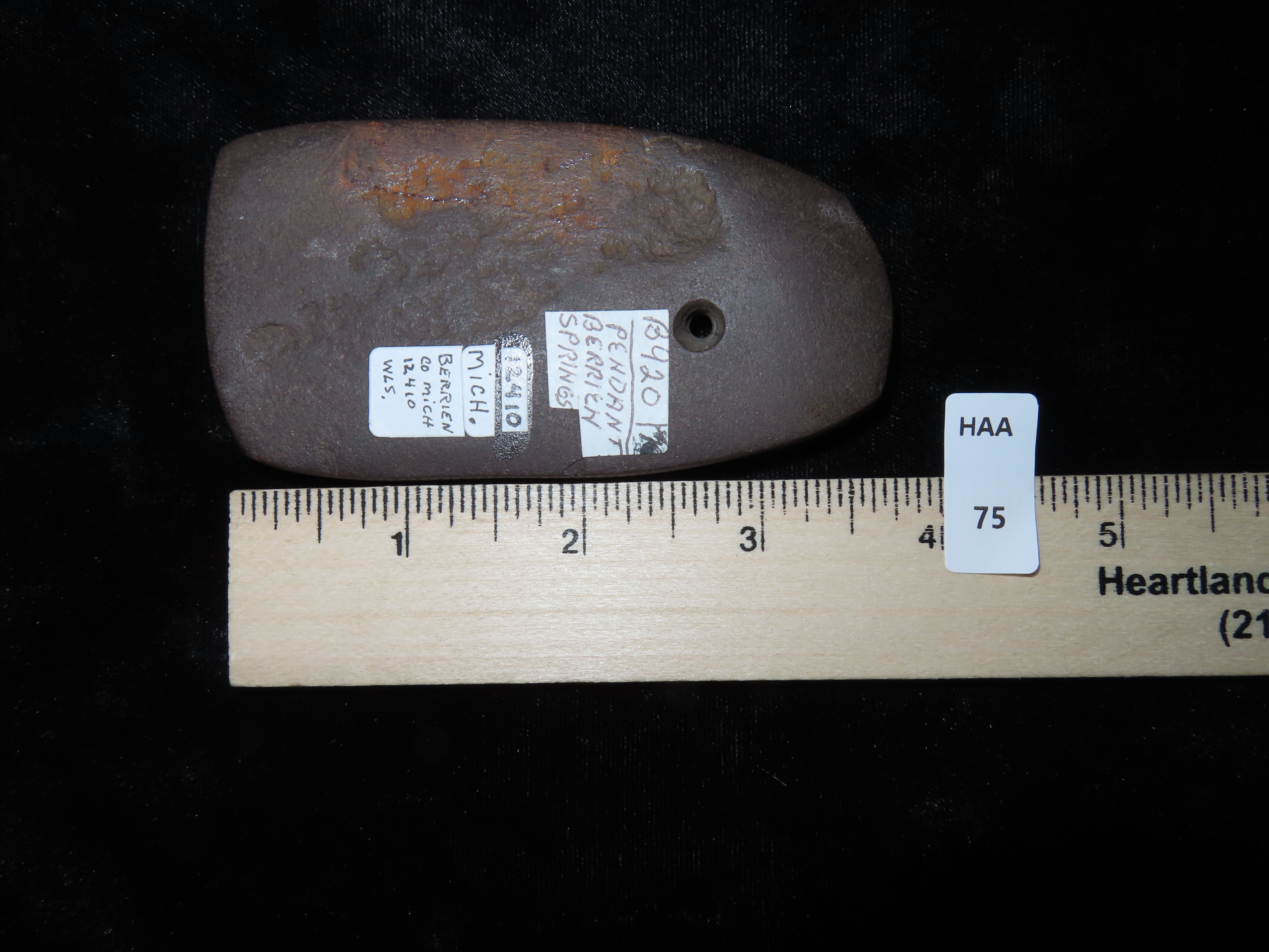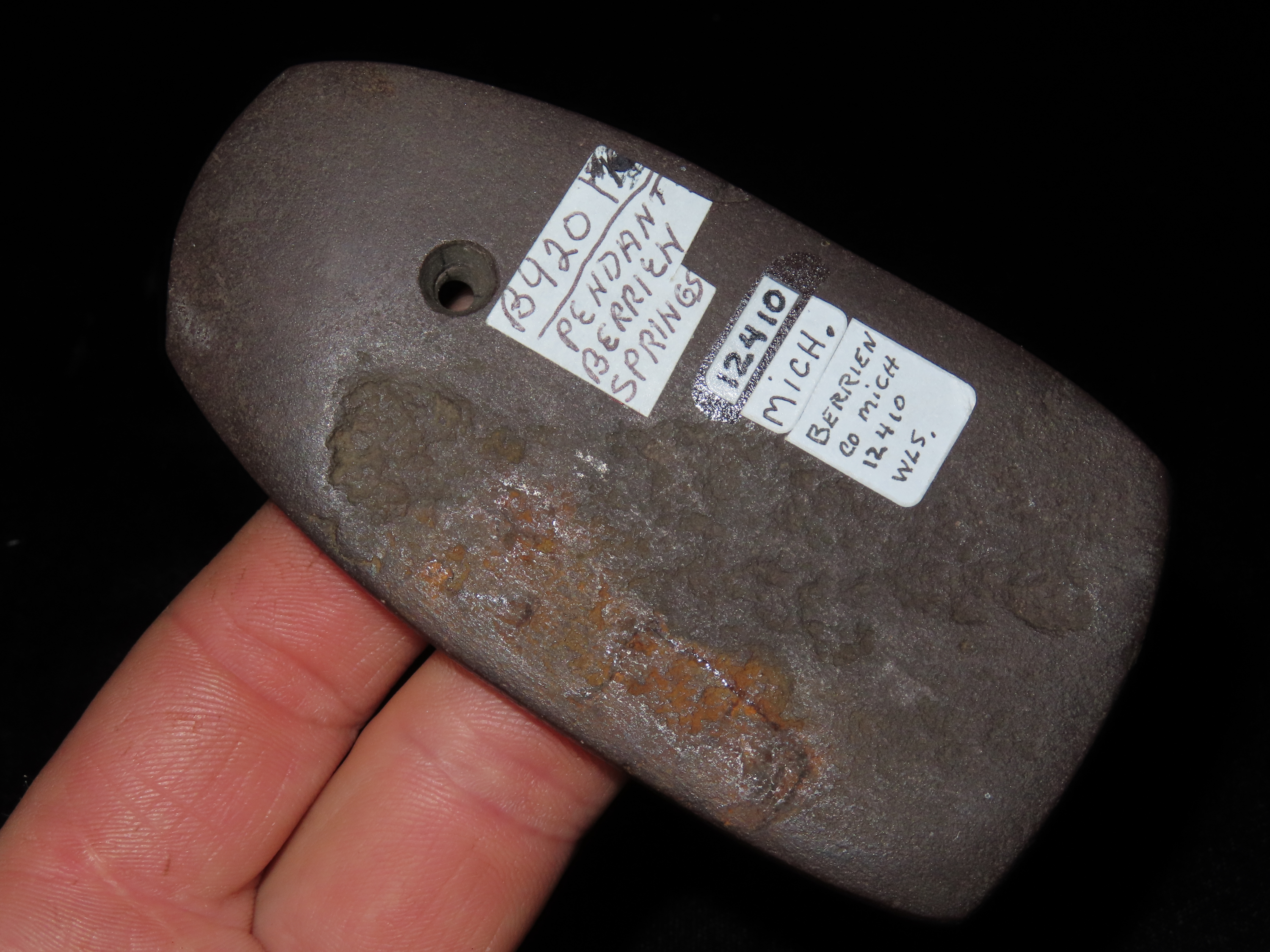 3 13/16″ Red Slate Pendant, Motley COA, found in Berrian Co., Michigan, Ex Bill Shaw Collection