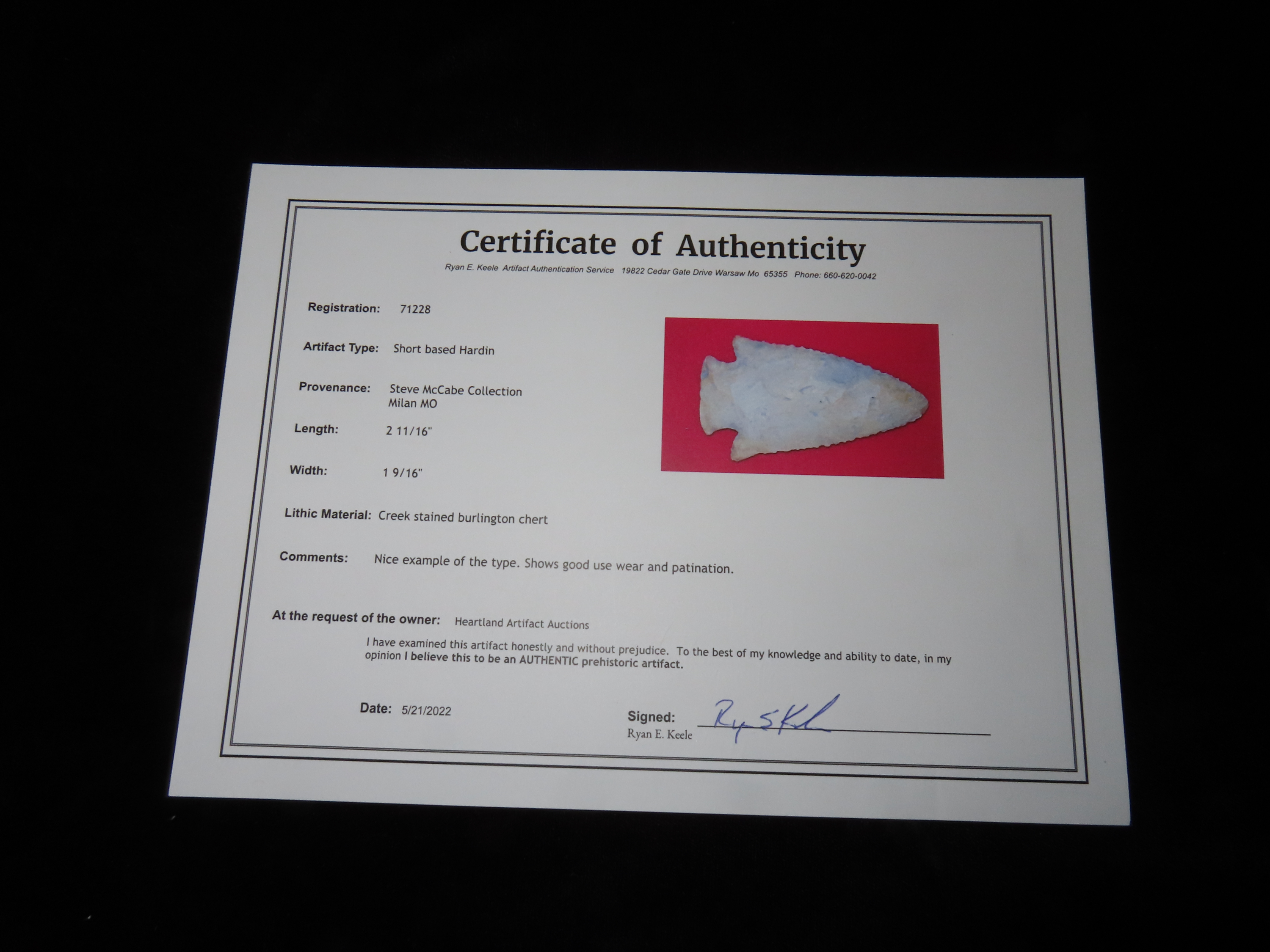 2 11/16" Short Based Hardin, Keele COA, Ex Steve McCabe Collection