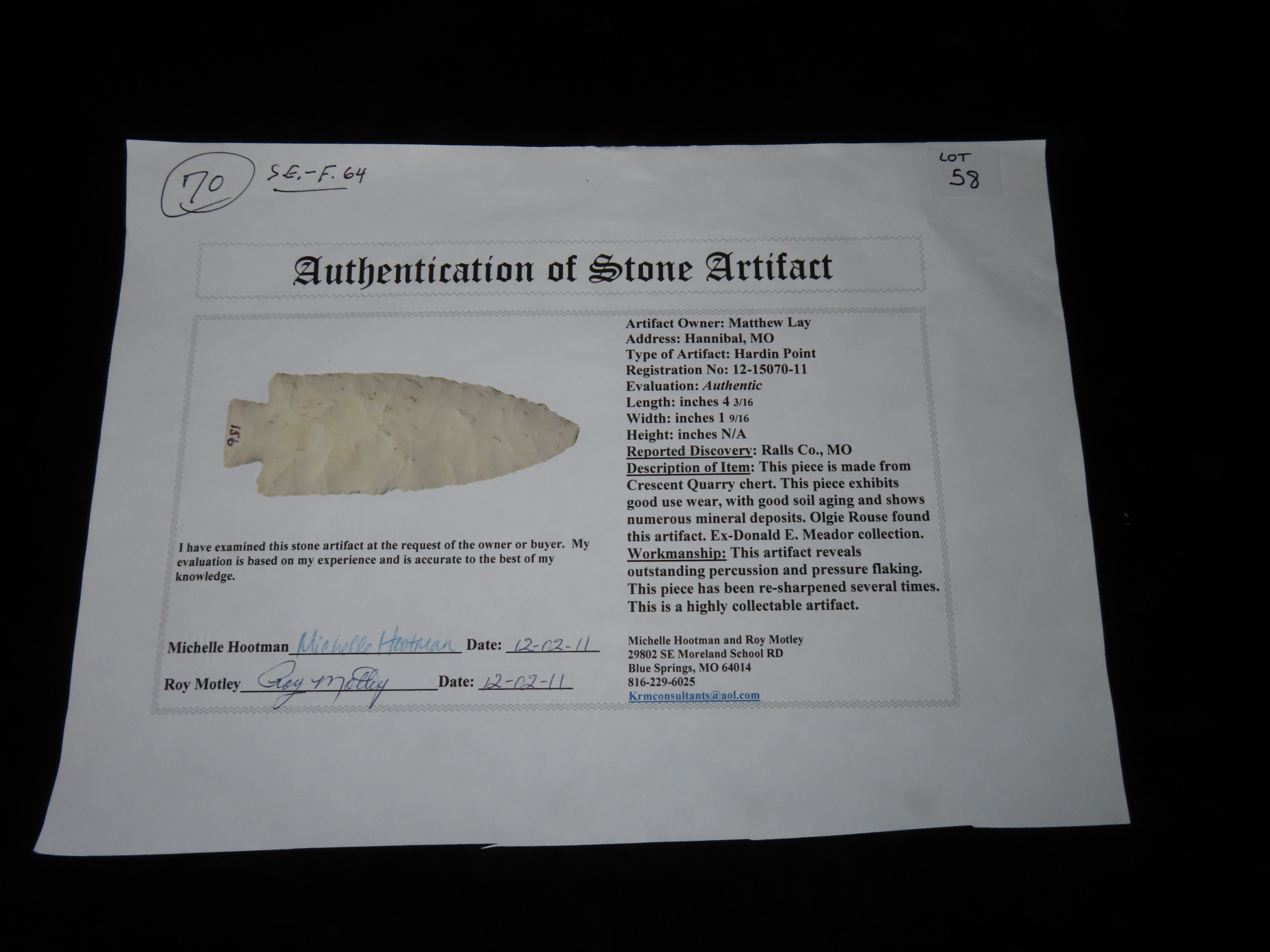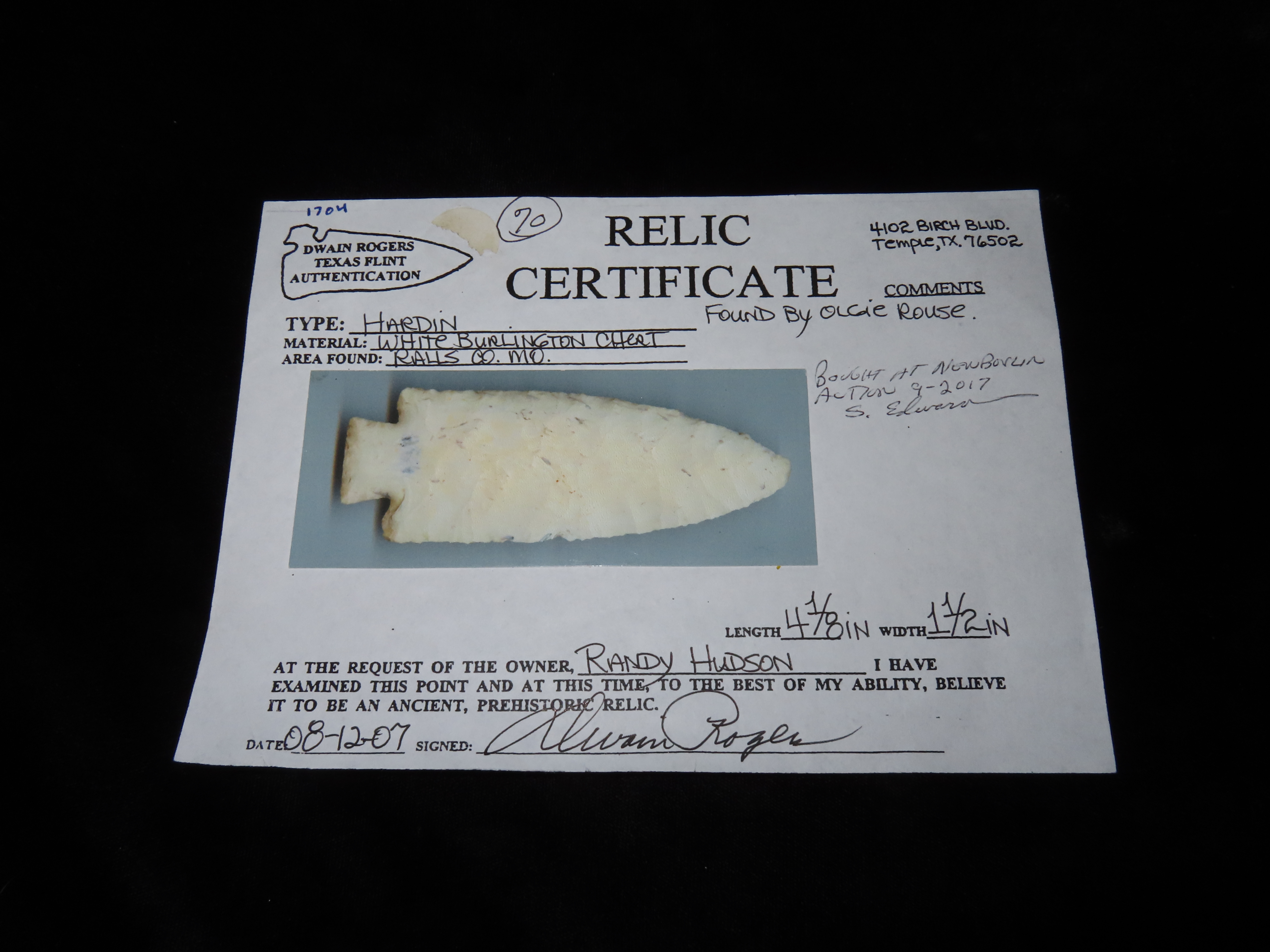 4 18″ Hardin, 2xCOA-Rogers/Motley, found by Olgie Rouse in Ralls Co., Missouri, Ex Donald Meador, Ex Randy Hudson, Ex Stan Edwards- purchased in November 2017 at auction)